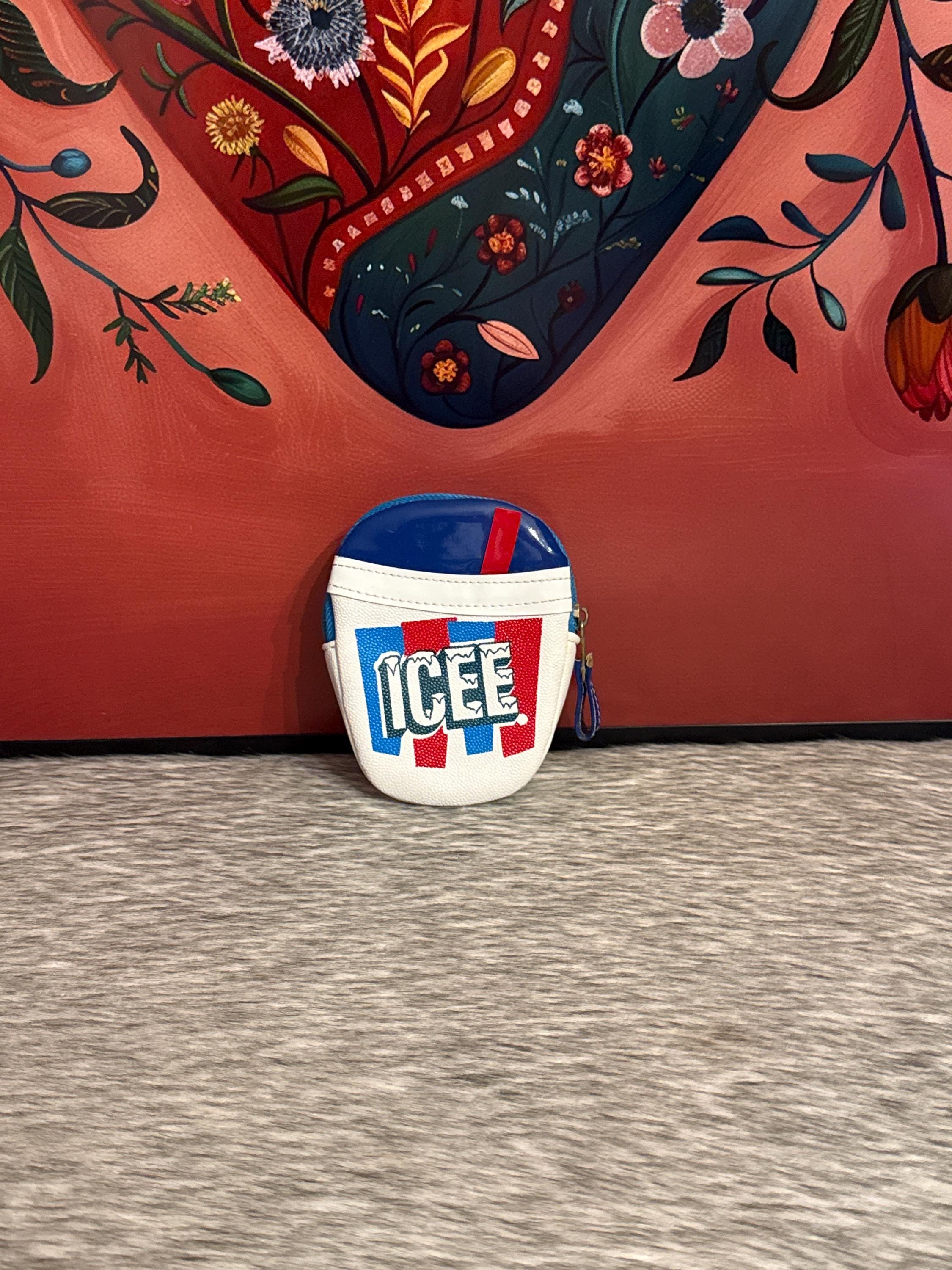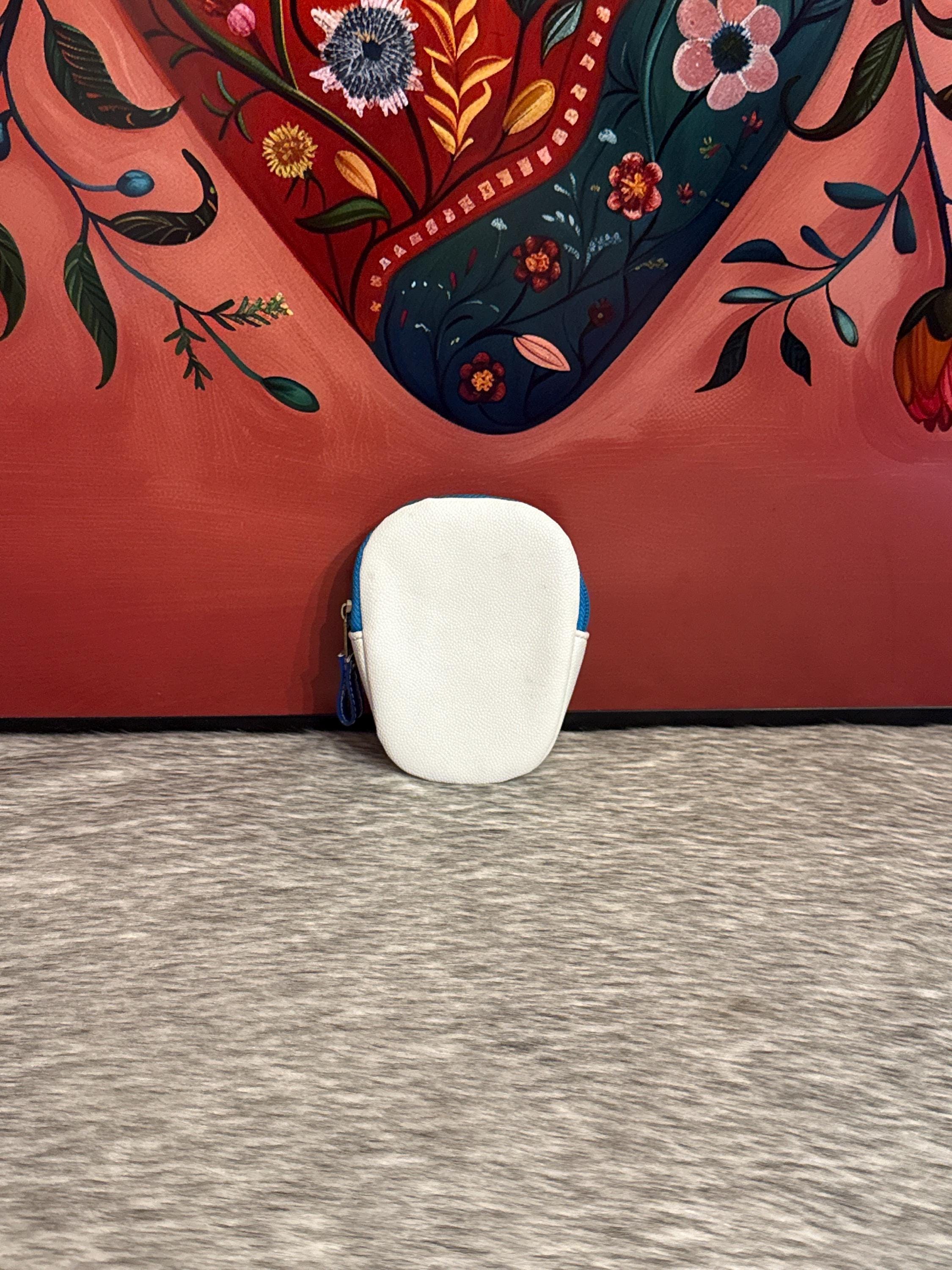 Ice-colored coin purse bag, the coin purse bag measures approximately 4 inches long by 3 inches wide. Made in Mexico.