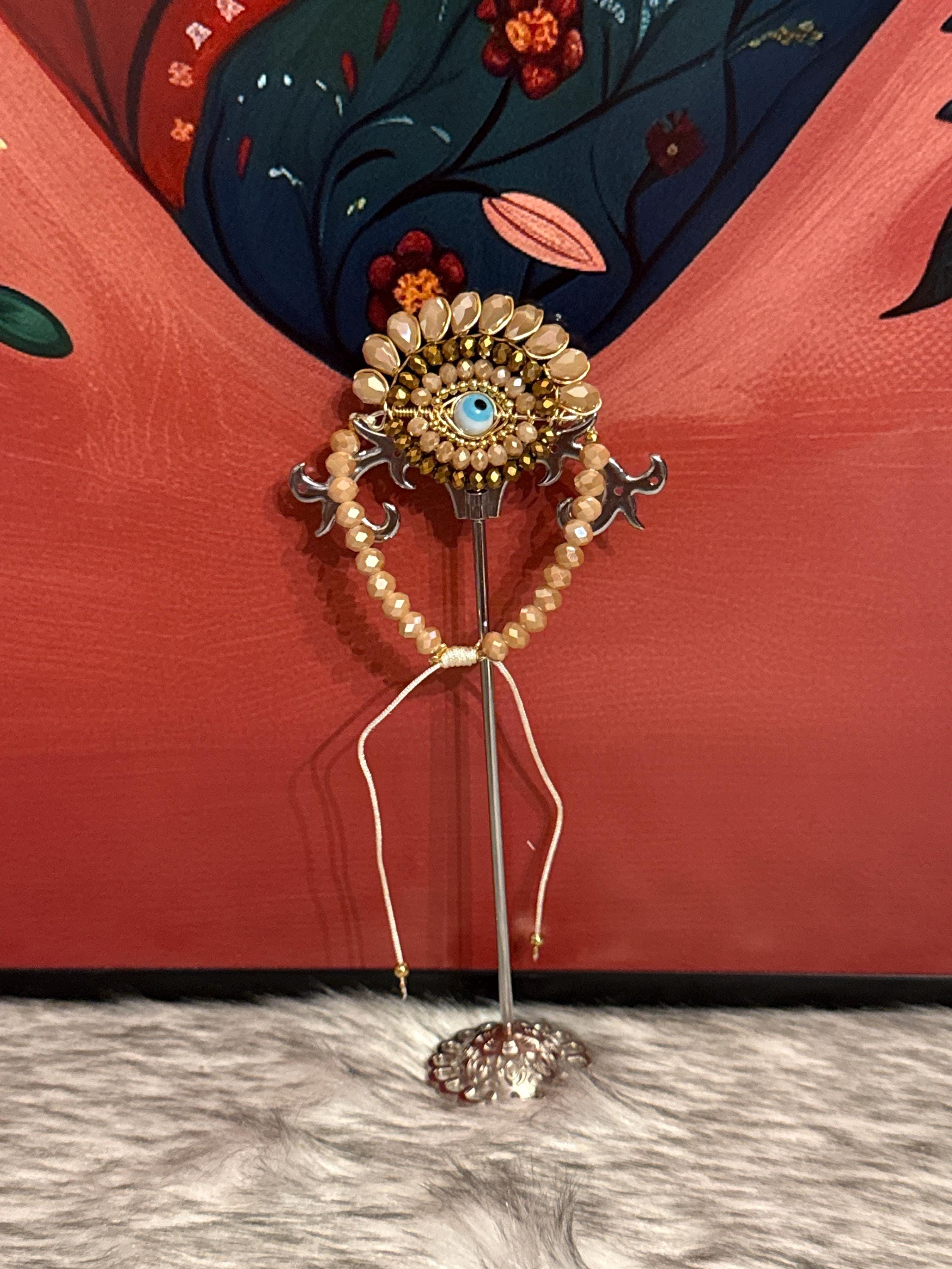 Turkish eye bracelets made with Czech crystals and silk thread, the bracelets are adjustable to any size.
