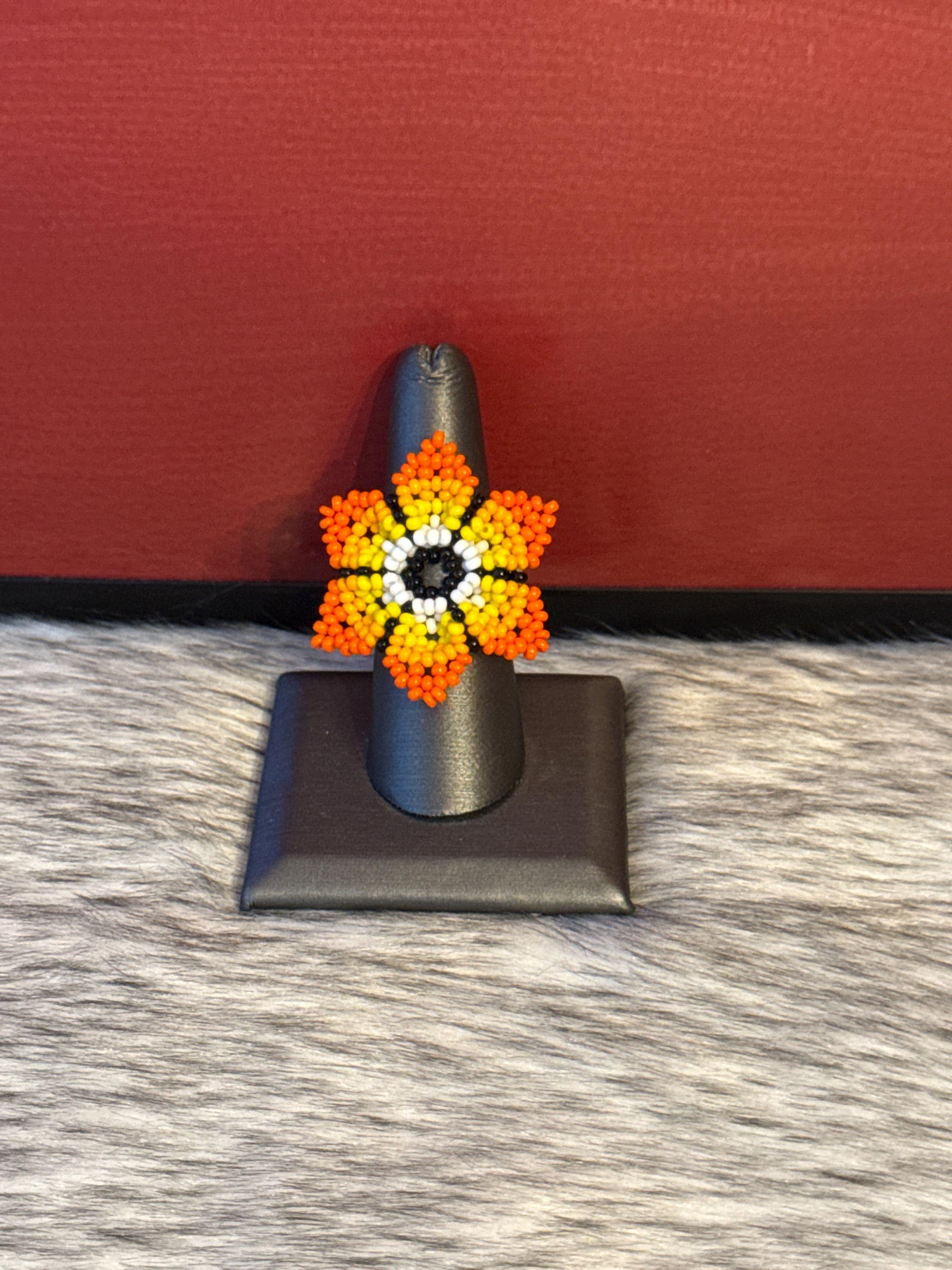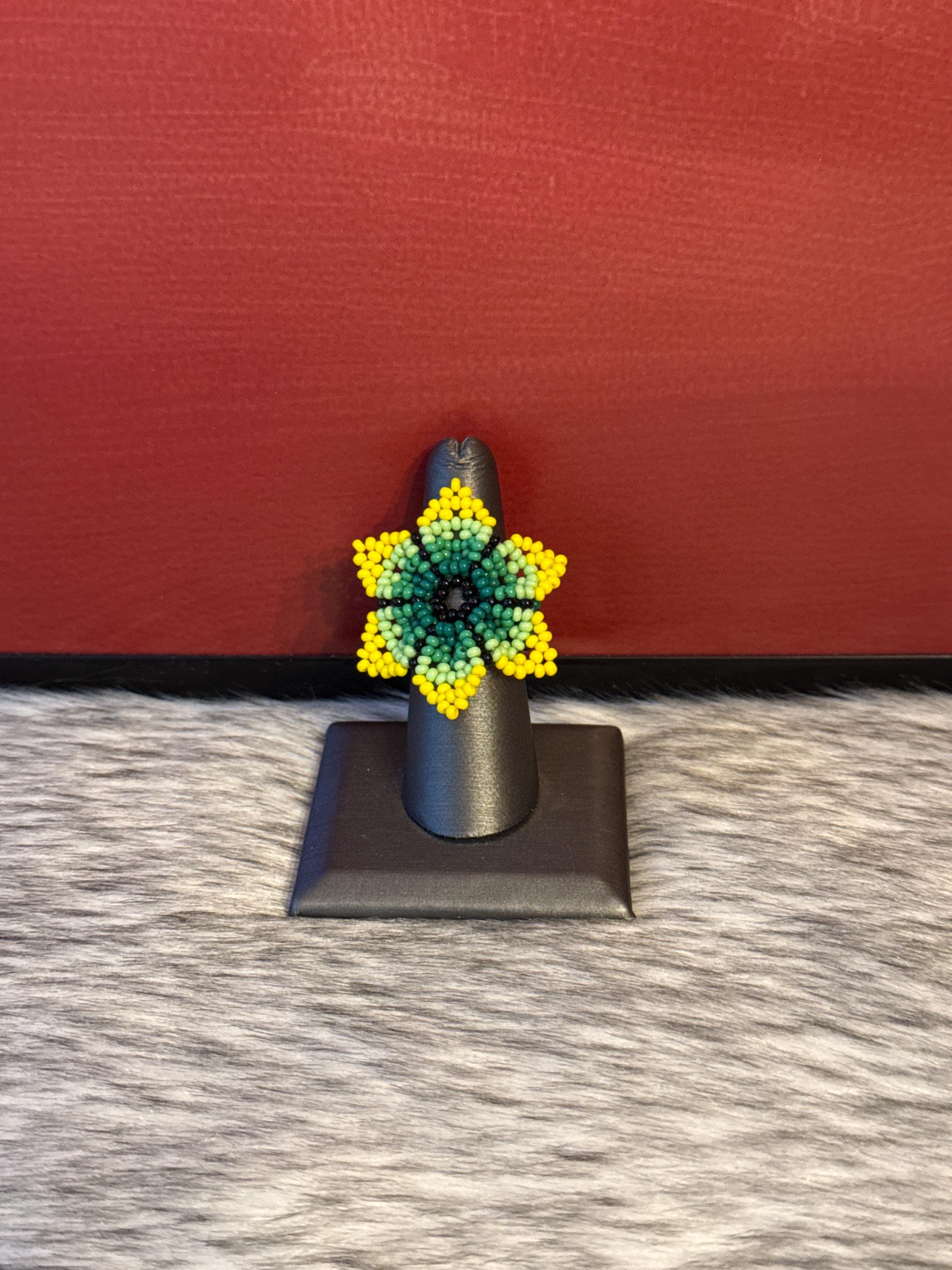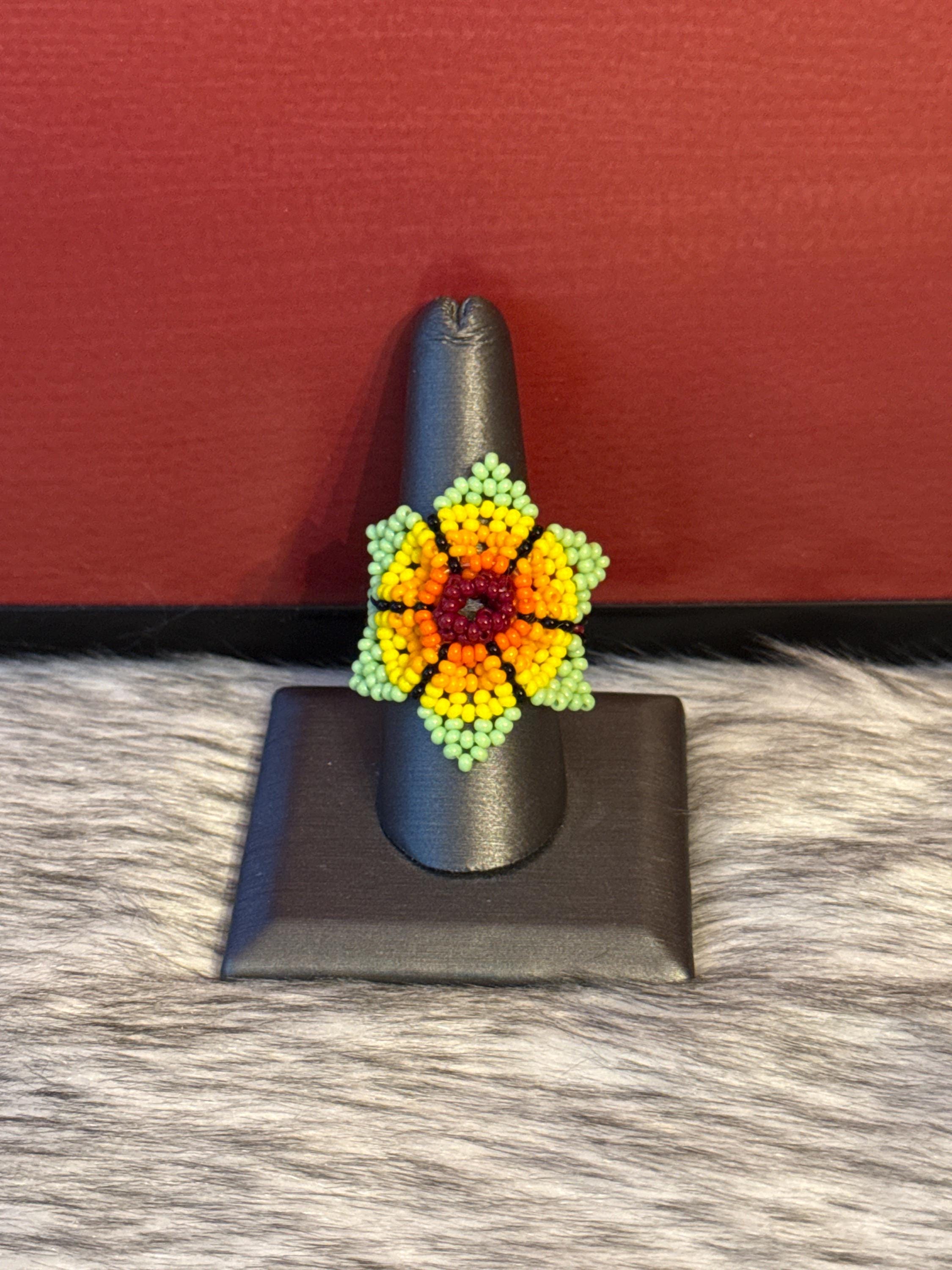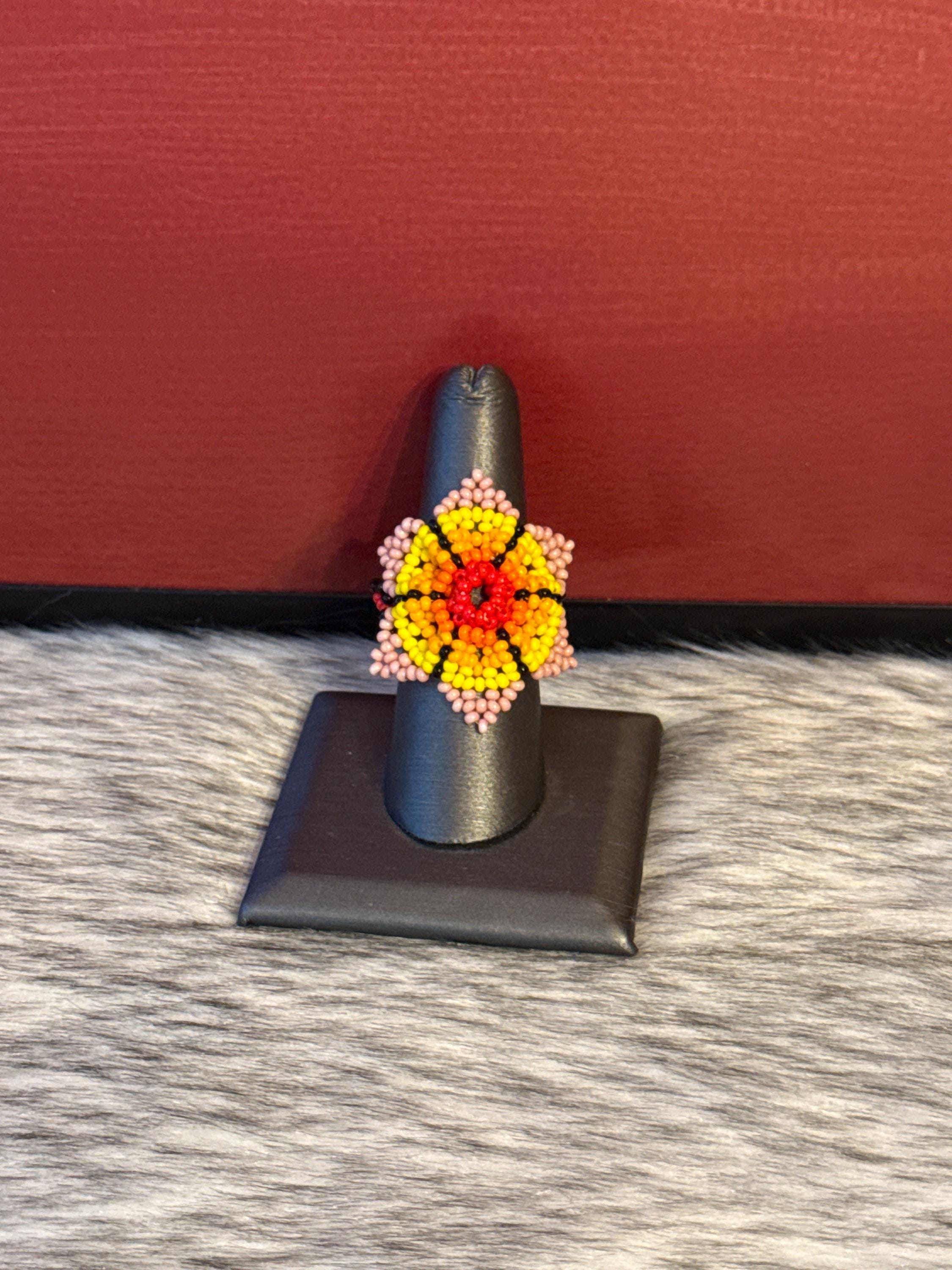 Beautiful handmade flower rings made with glass beads, the rings are in sizes 8 to 11.