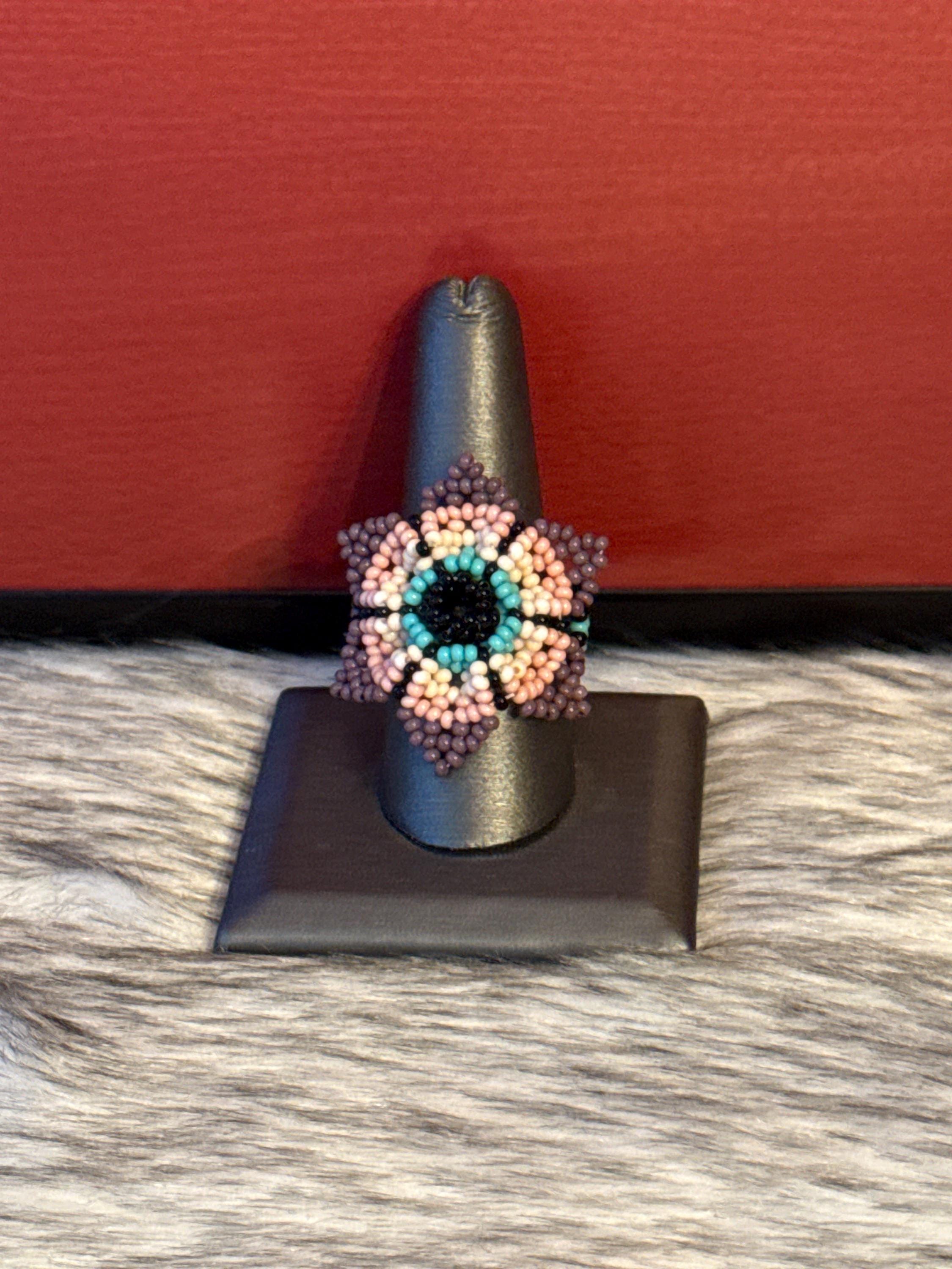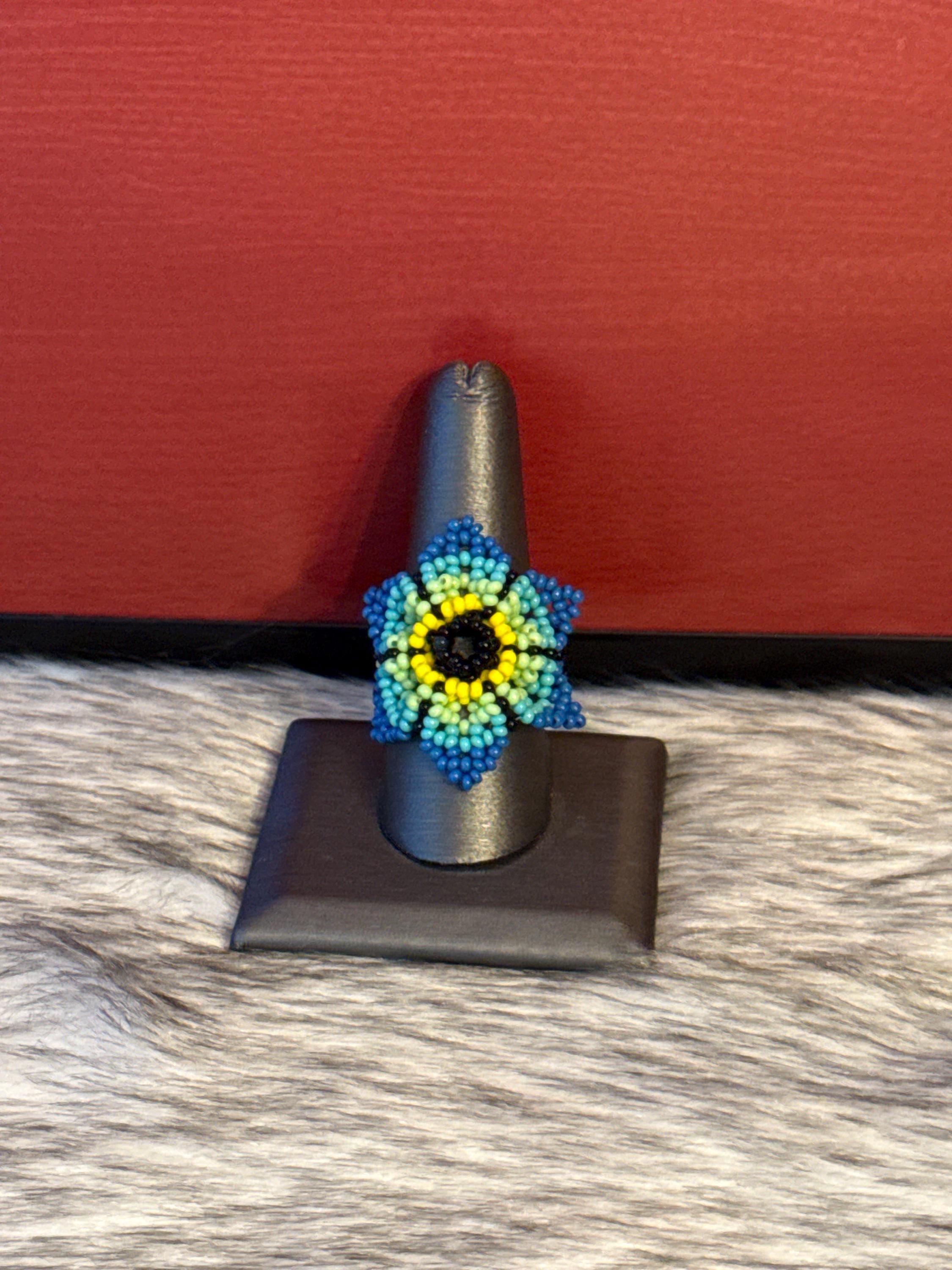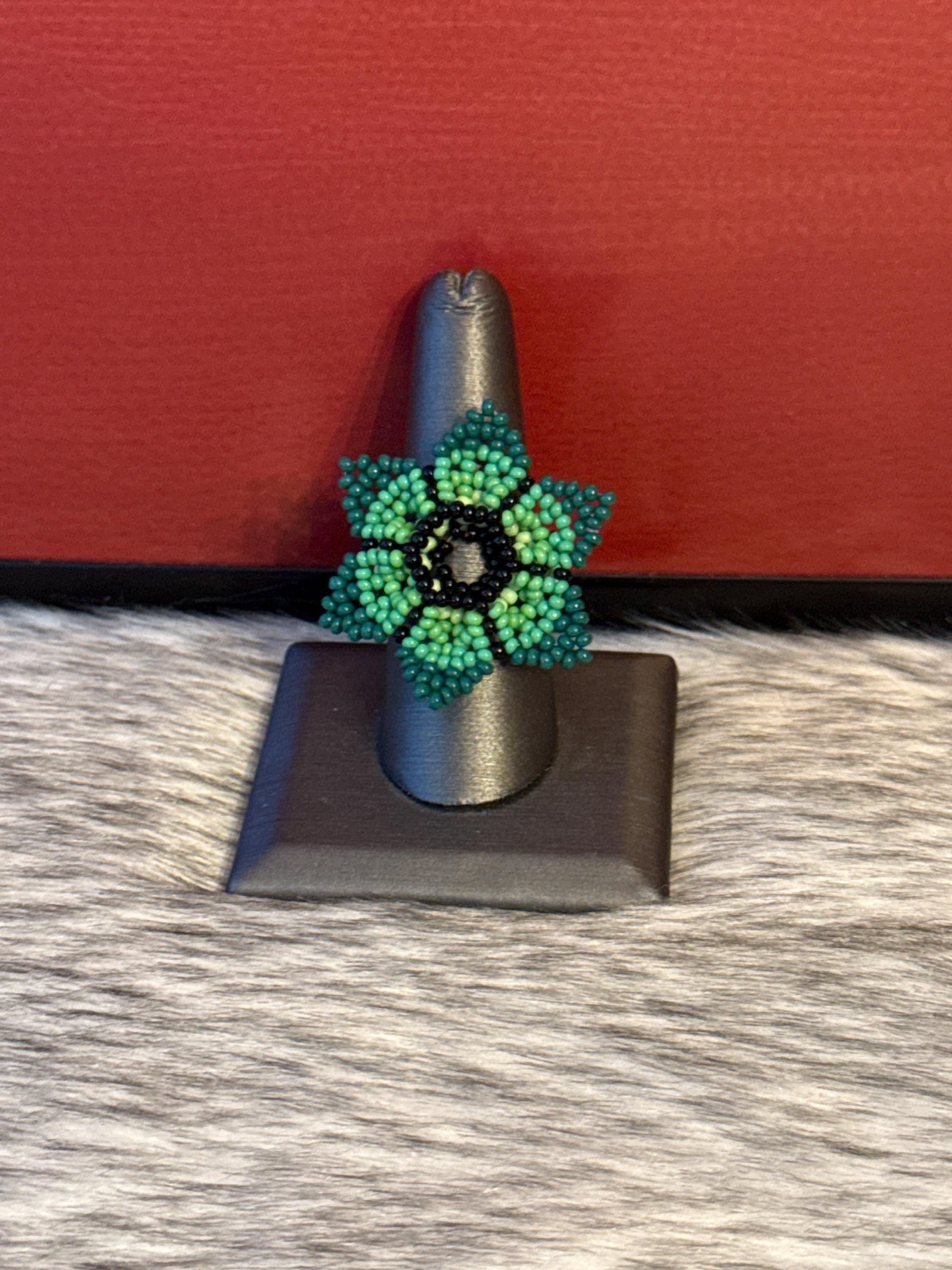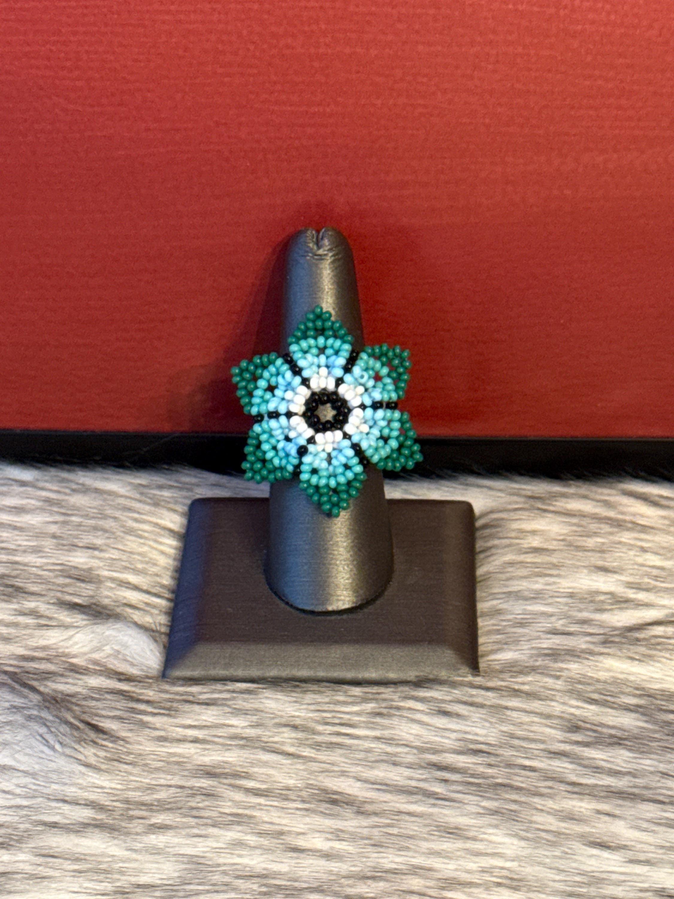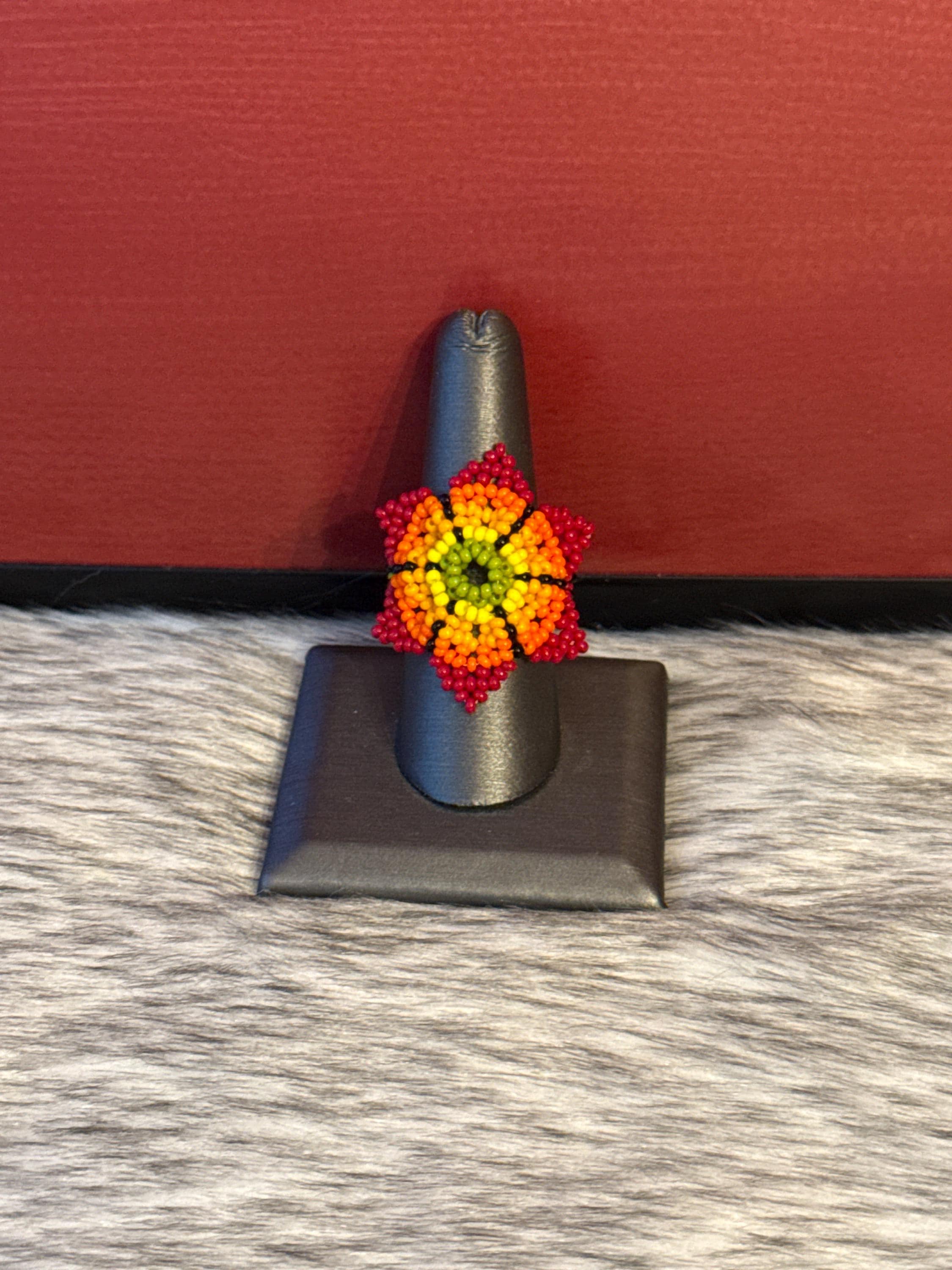 Beautiful handmade flower rings made with glass beads, the rings are in sizes 8 to 11.
