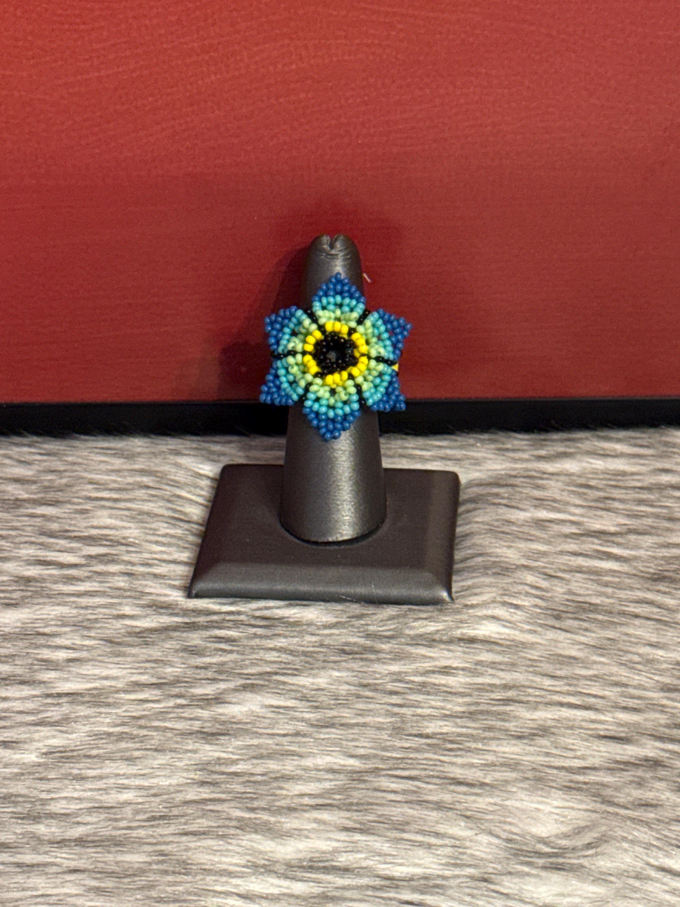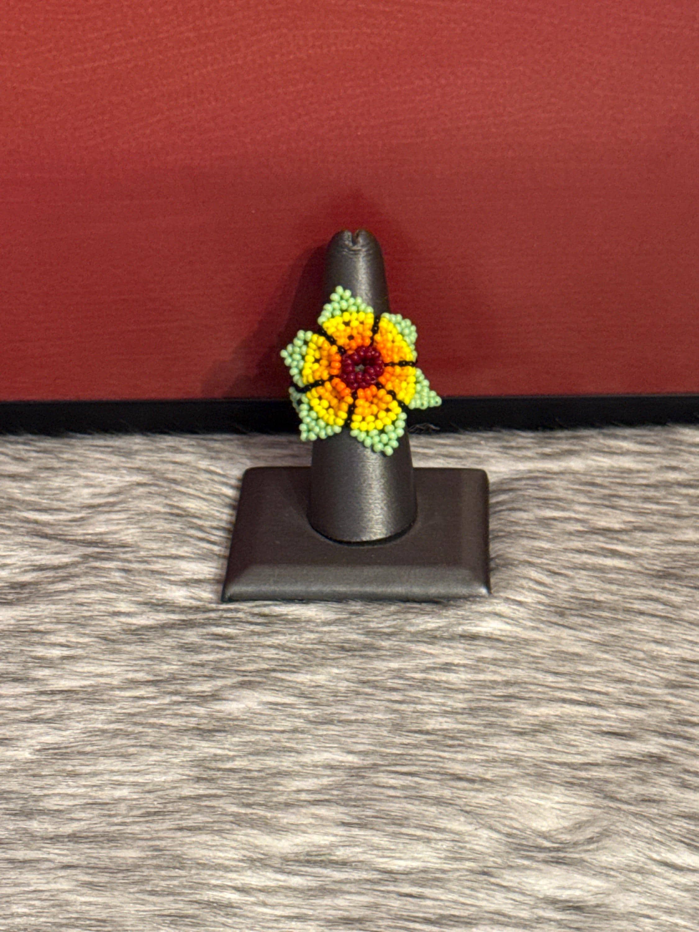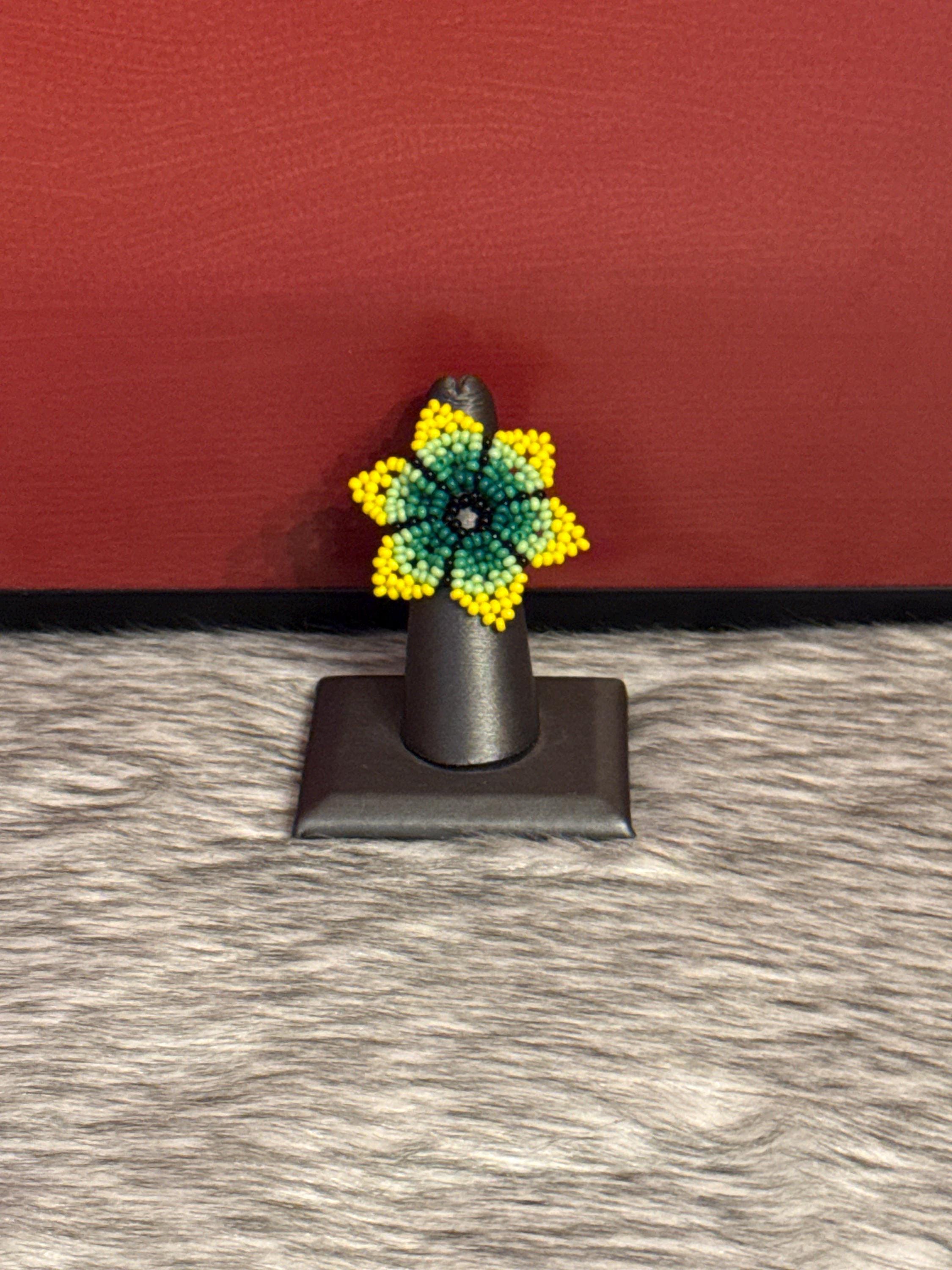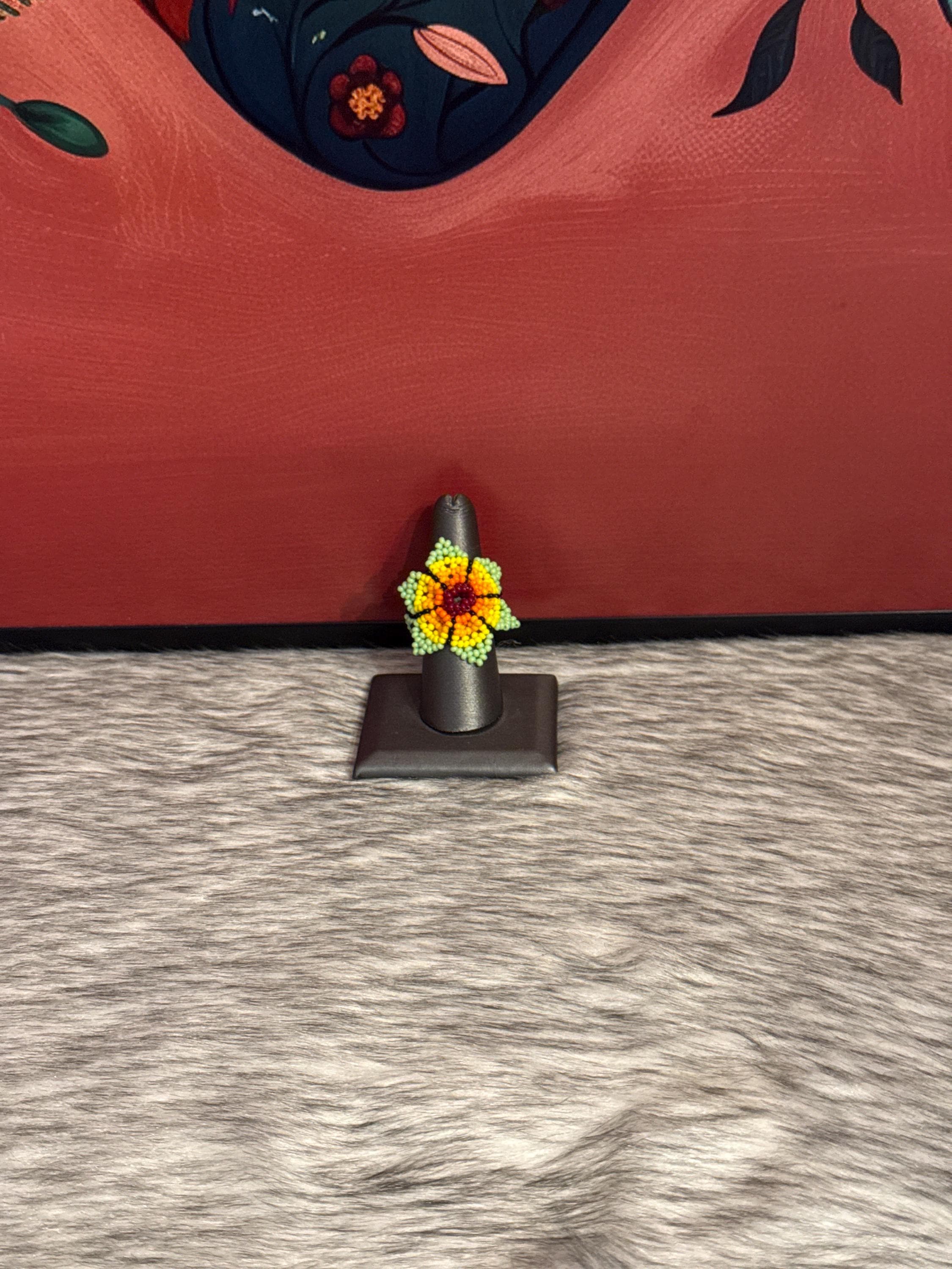 Beautiful handmade flower rings crafted with glass beads, the rings are in sizes 8 to 11.