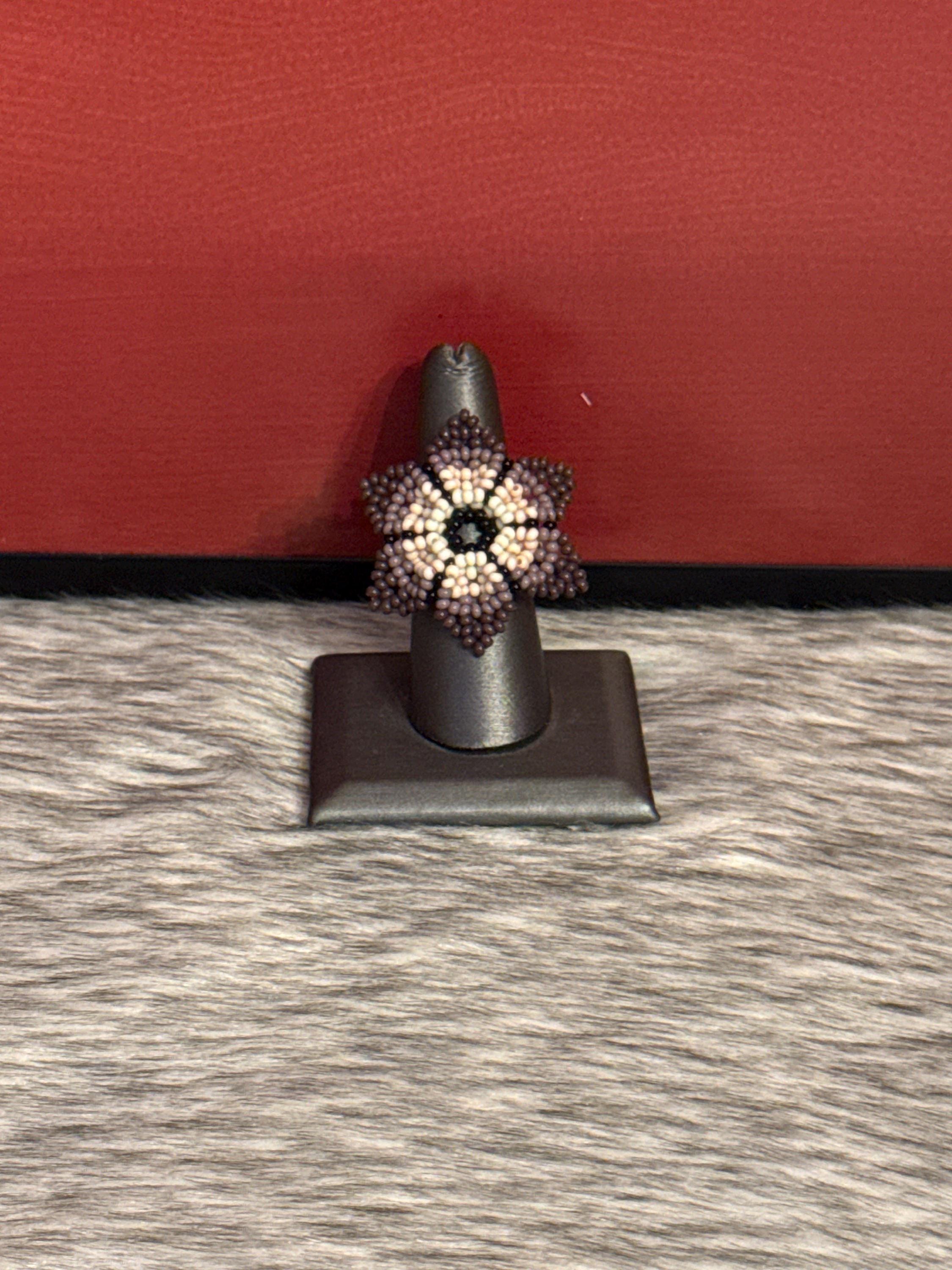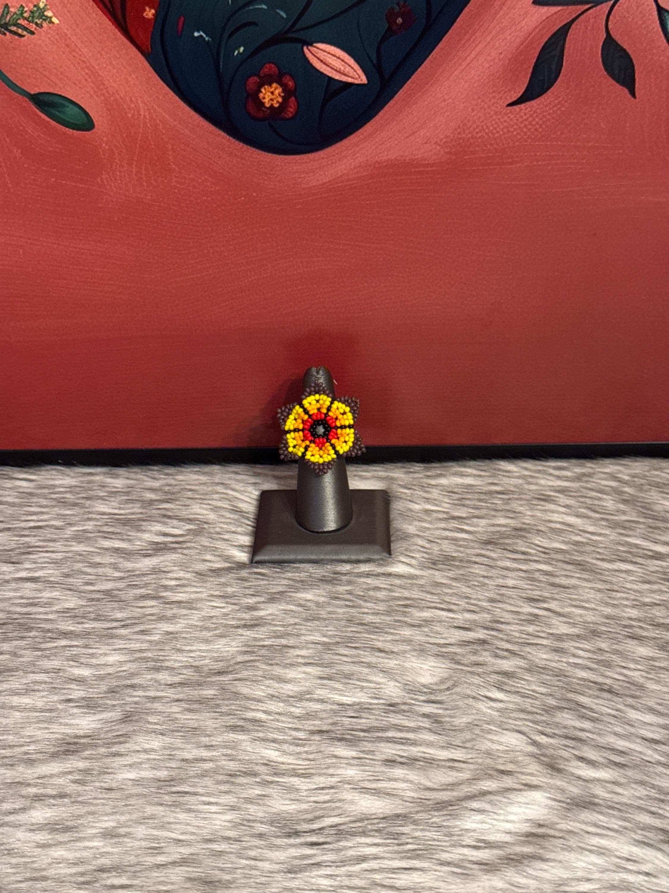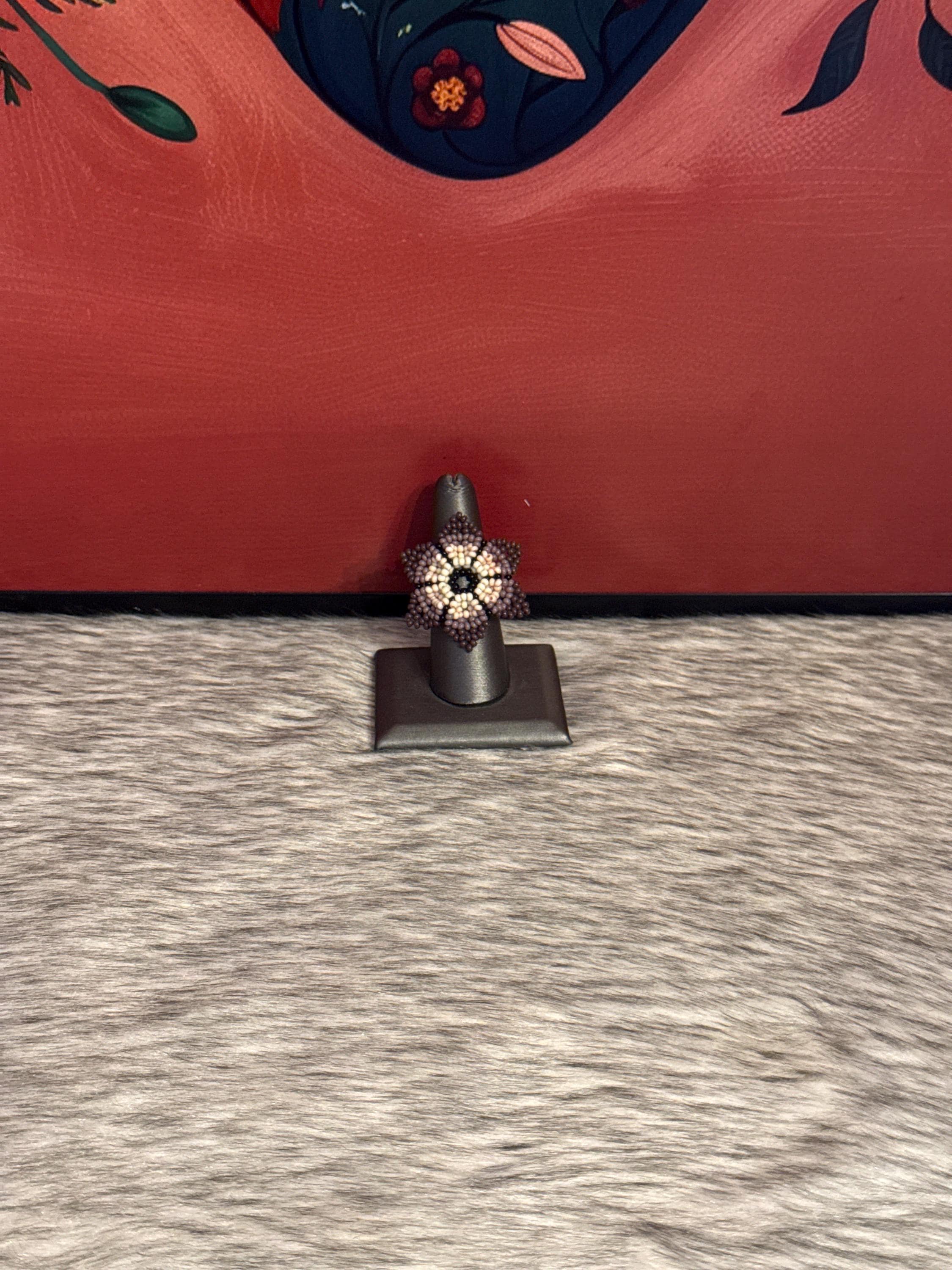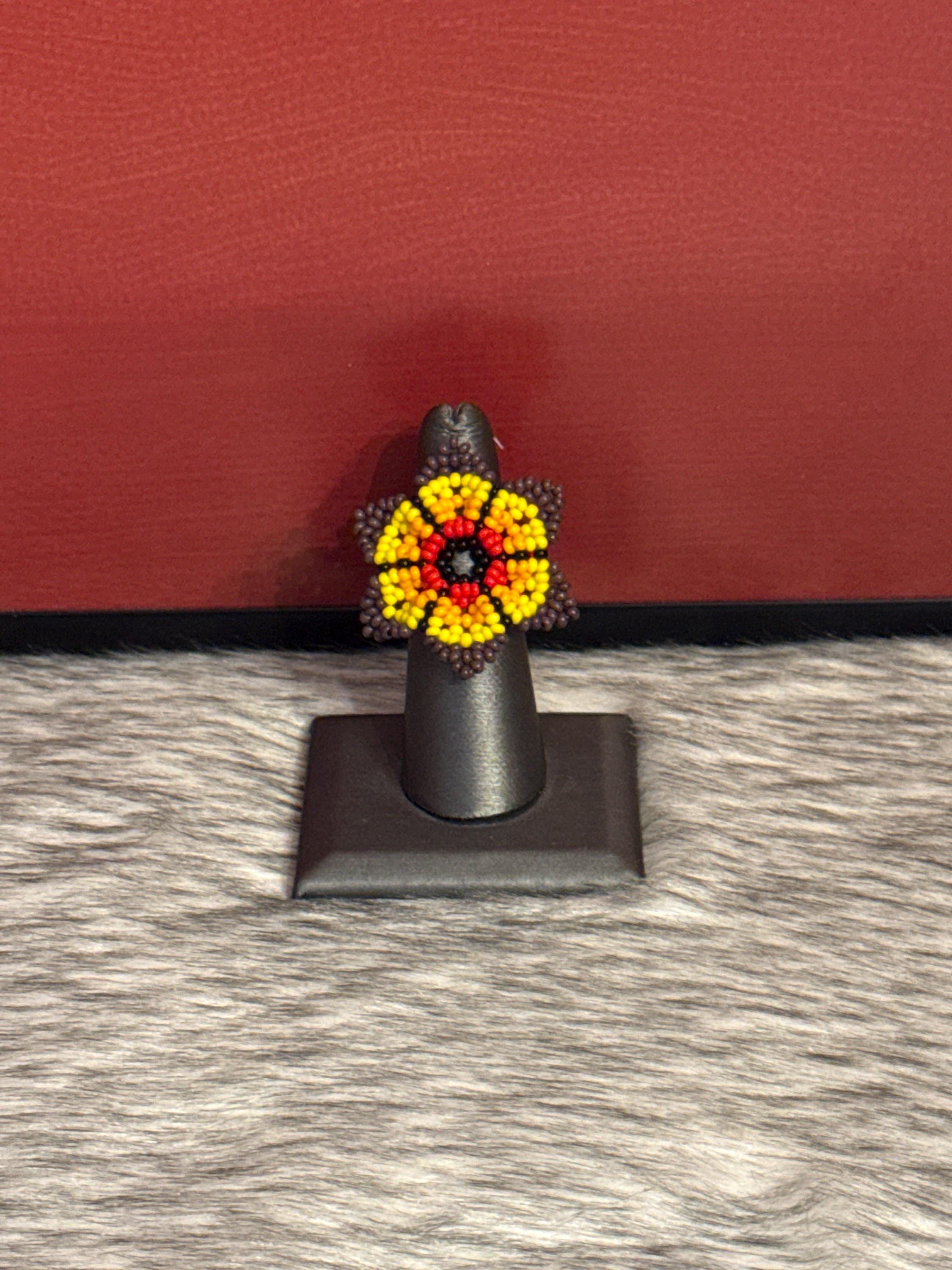 Beautiful handmade flower rings crafted with glass beads, the rings are in sizes 8 to 11.