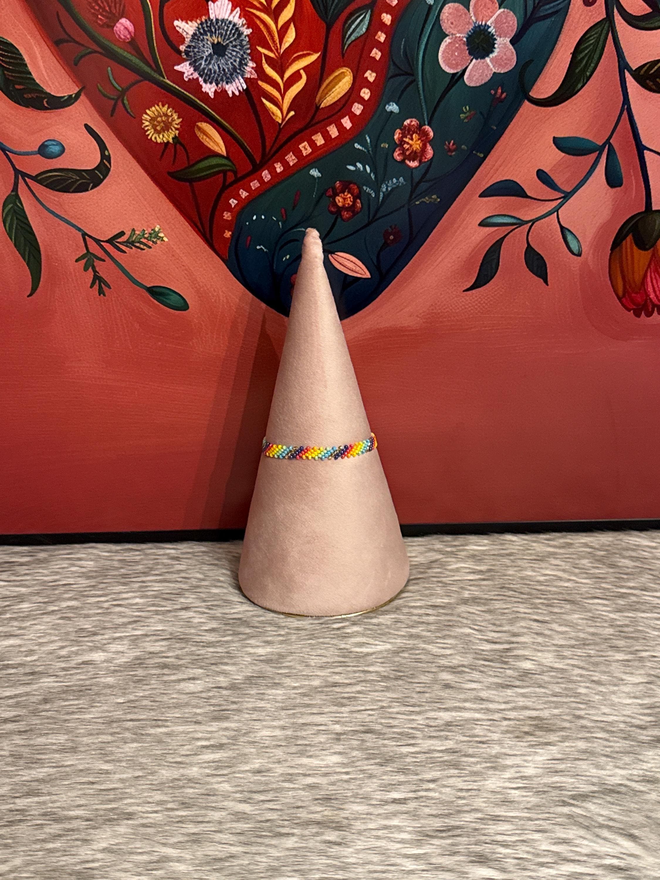 Beautiful Huichol bracelets made with beads by Mexican artisans, the bracelets measure approximately 6.5 inches long.
