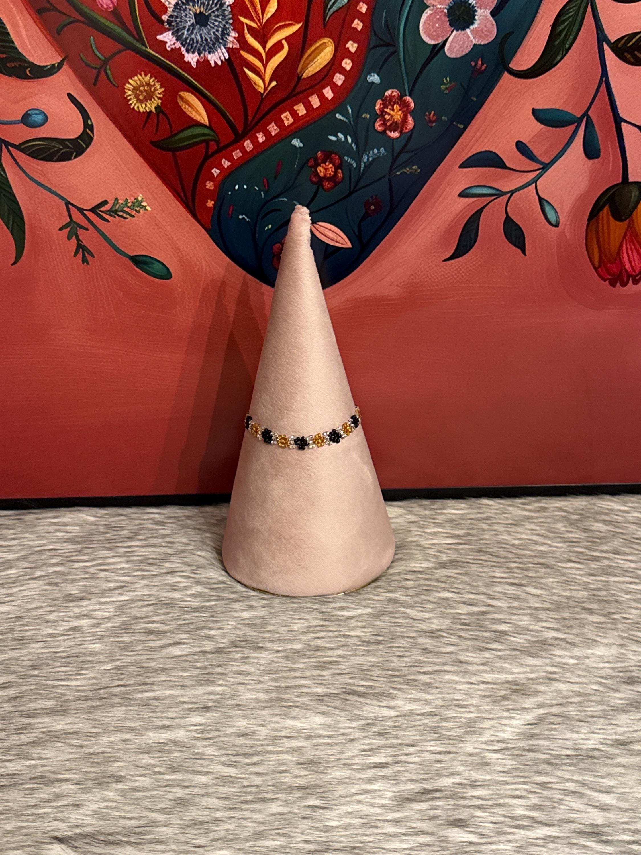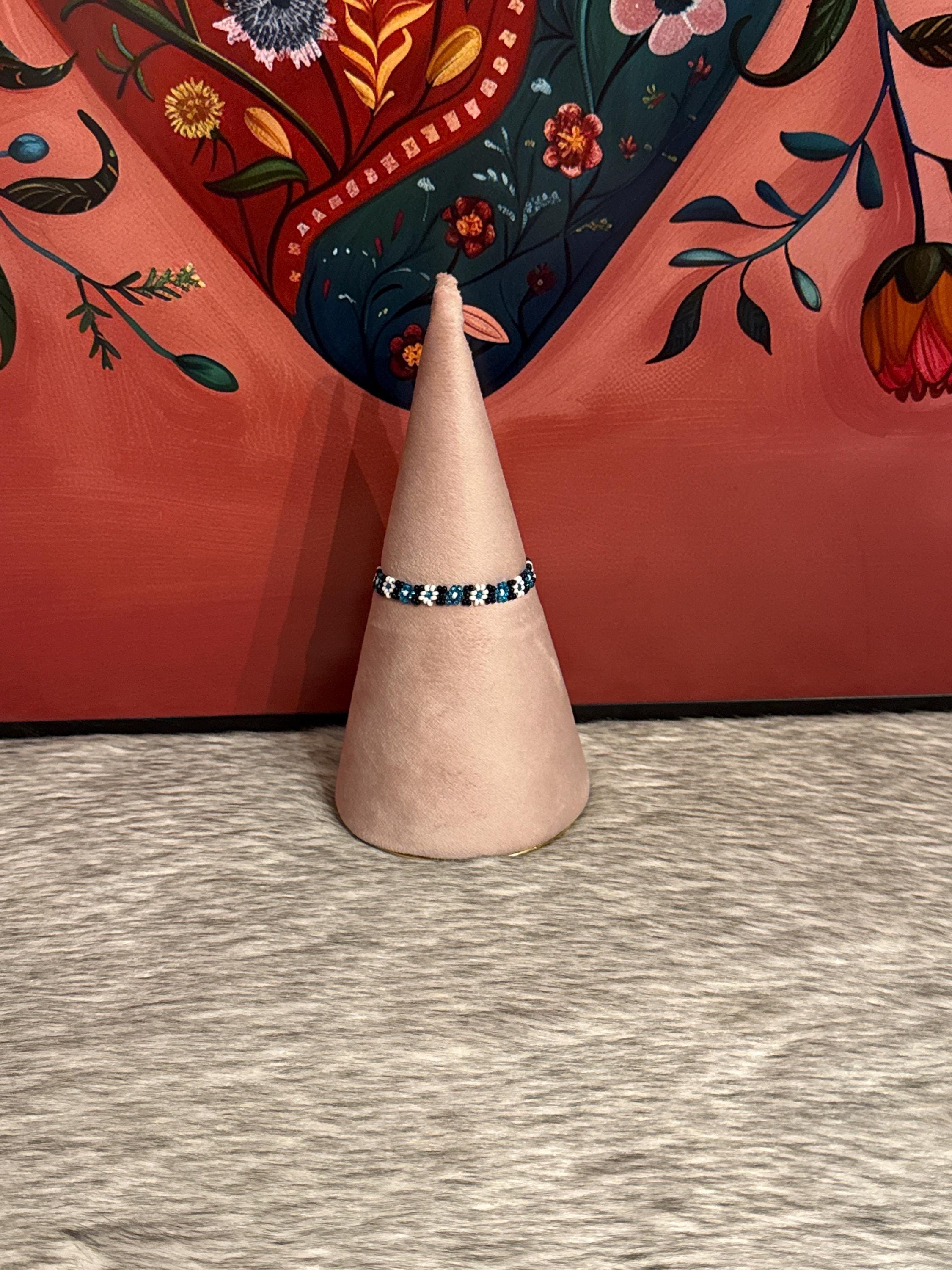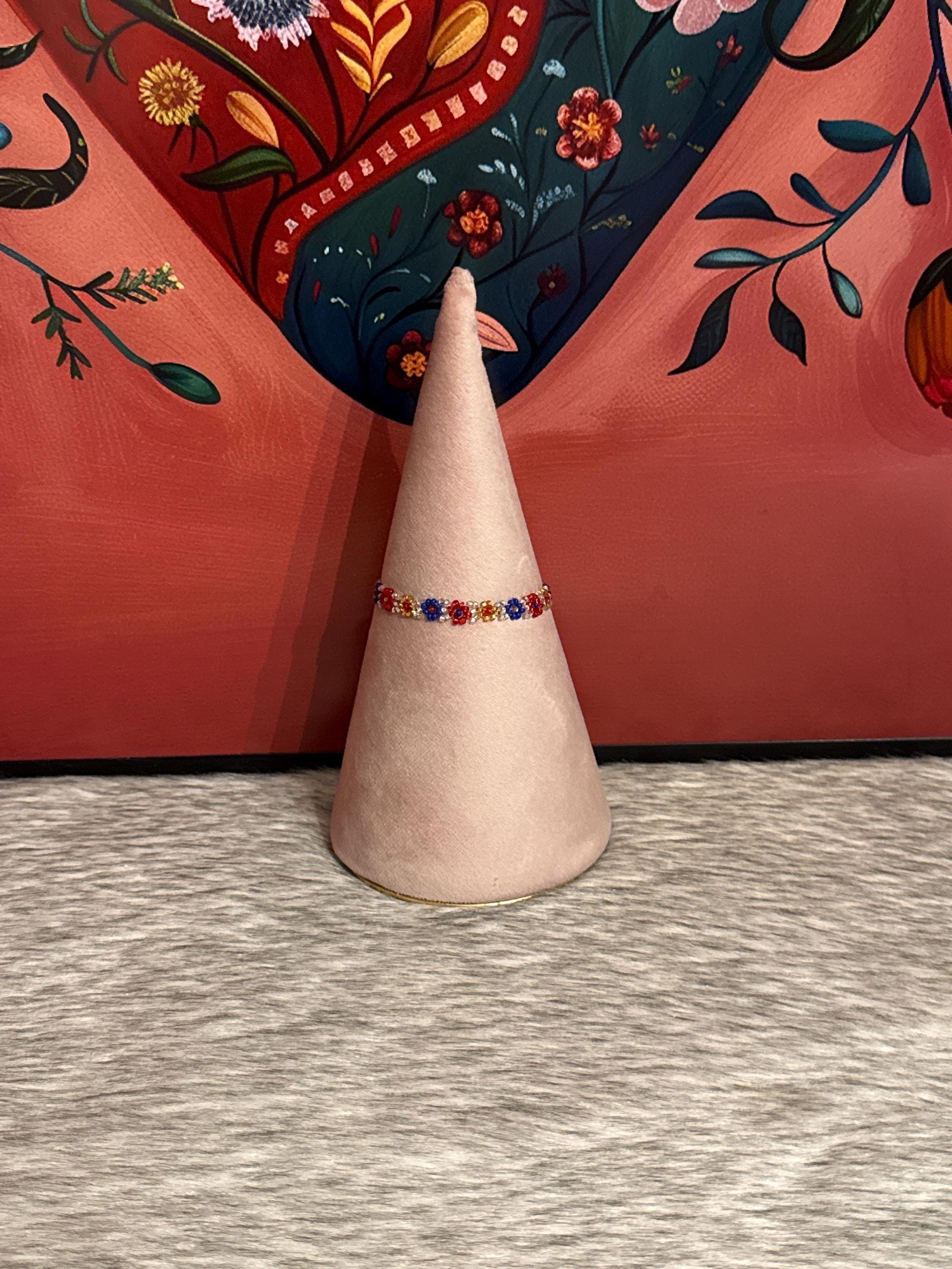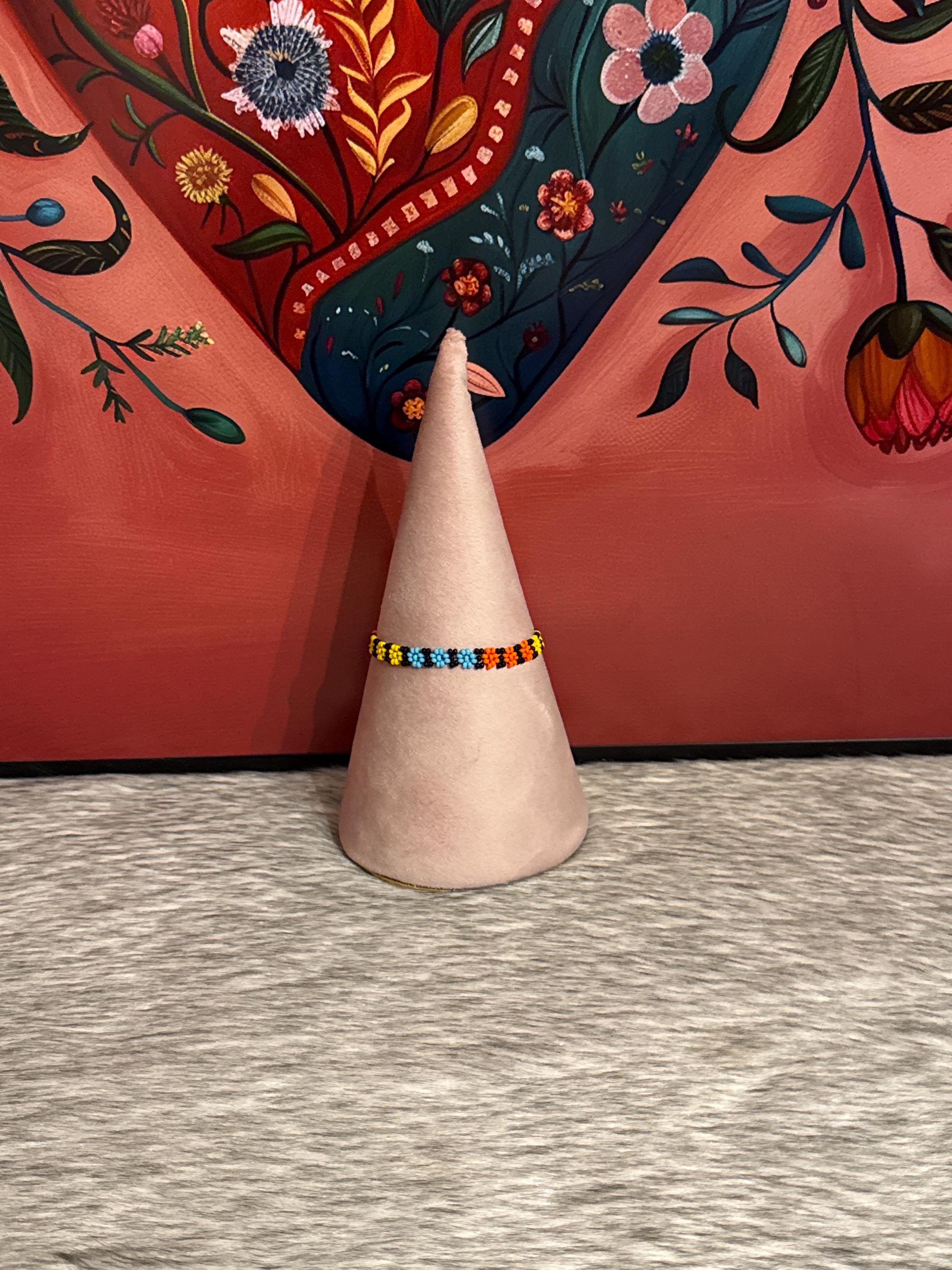 The bracelets measure approximately 6.5 to 7 inches long. Handmade with glass beads called chaquiras.