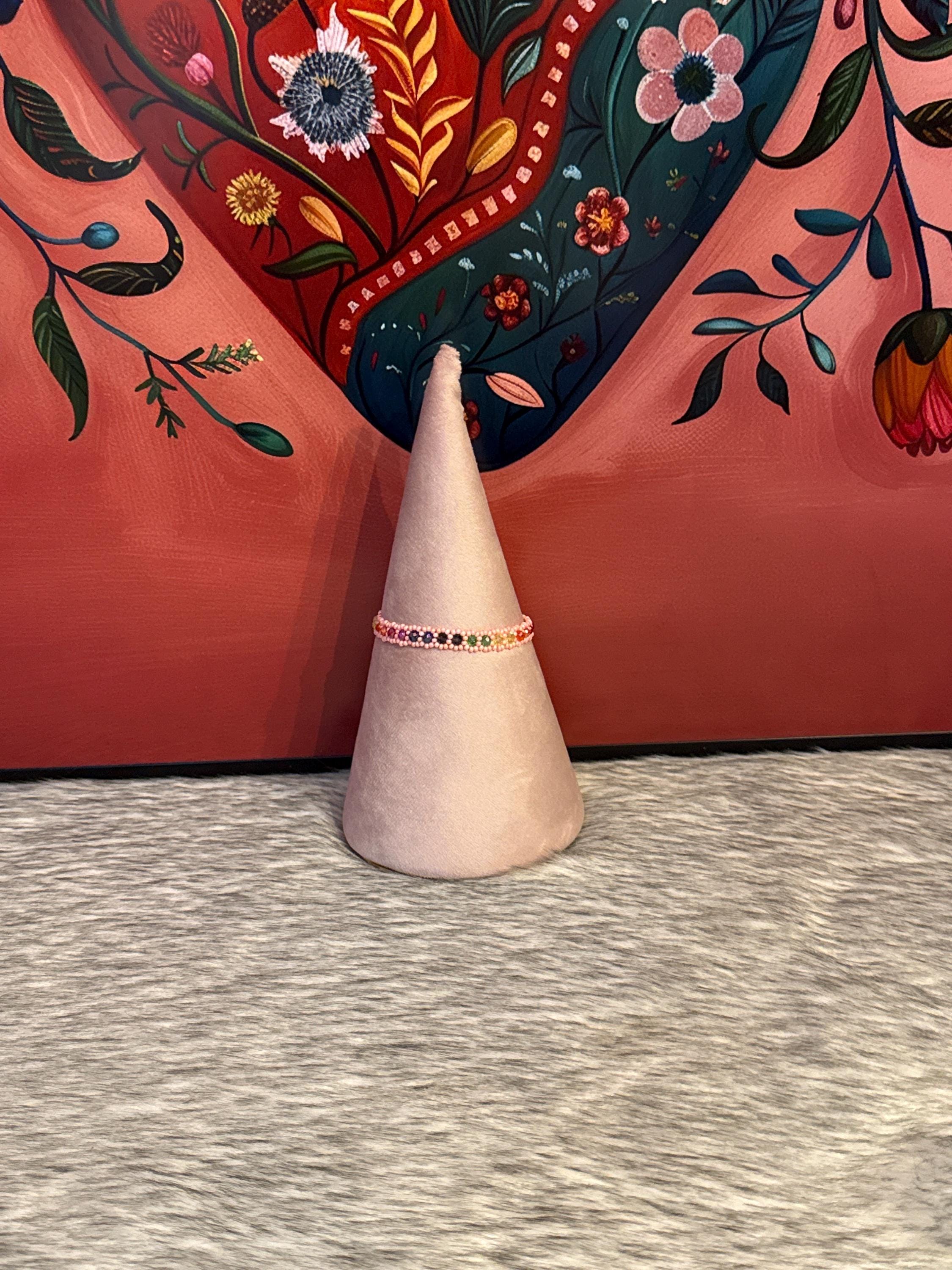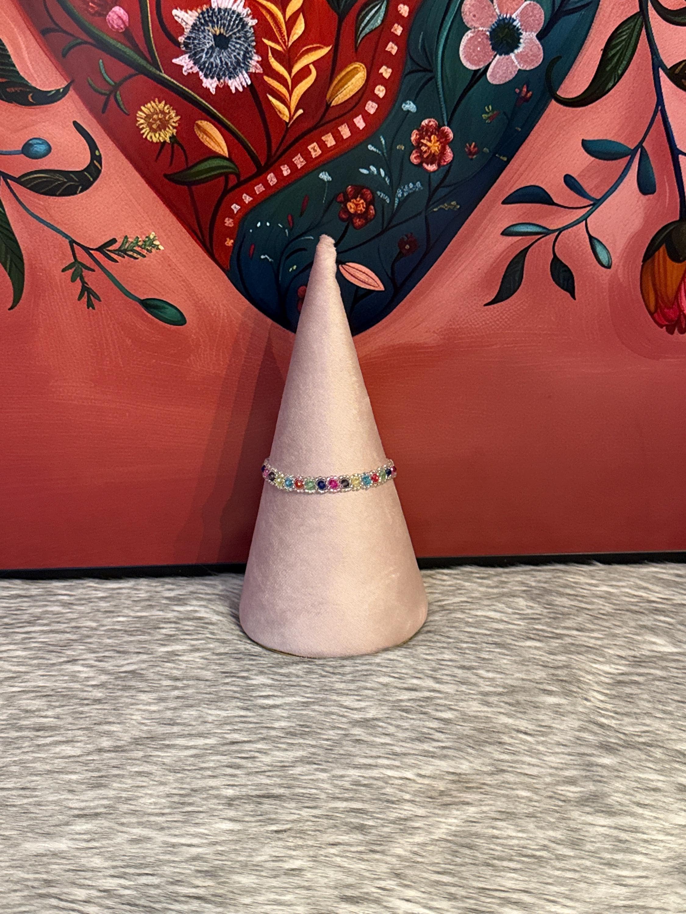 This is a lovely rainbow bracelet. I put it on as soon as I opened the package, and I haven't taken it off yet. The bracelet is perfect for adding sparkle and color to my days.