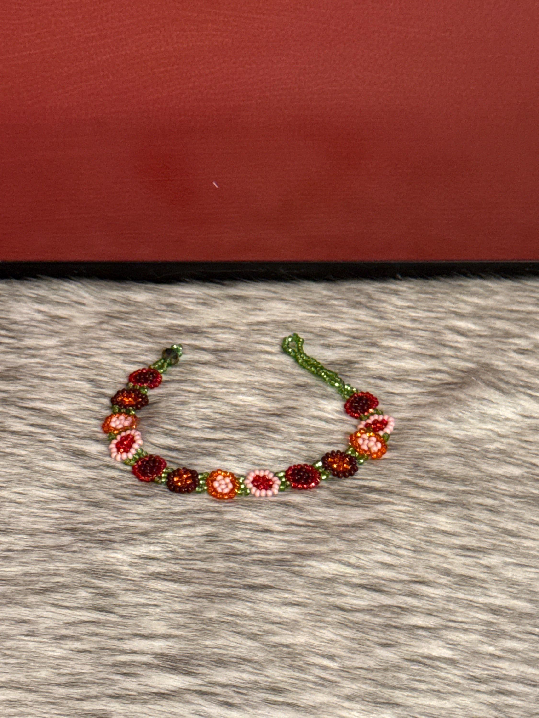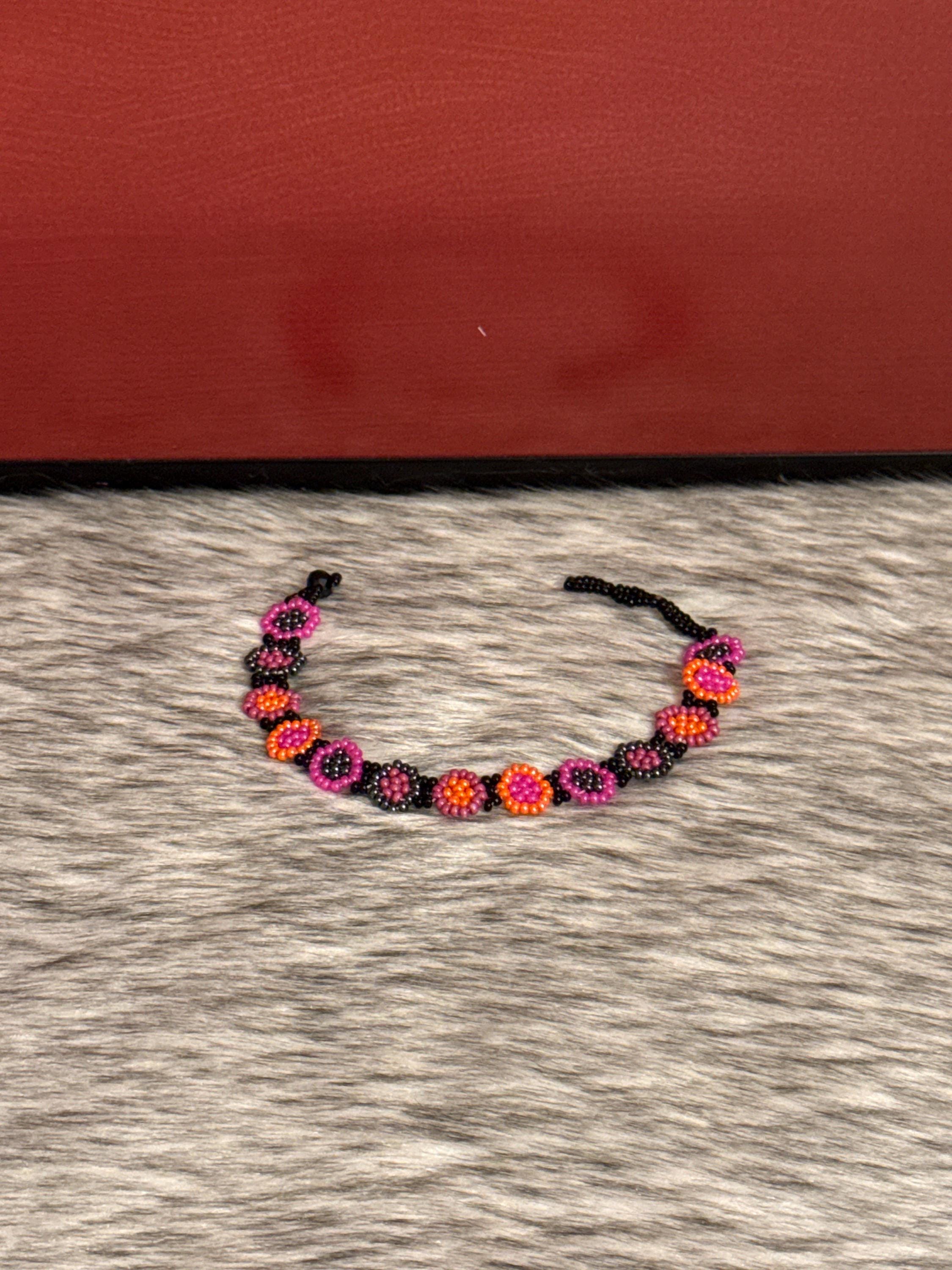 This is a fun little bracelet that is great for layering with other small beaded bracelets. I love the pink and red colors that really make it stand out when wearing it.