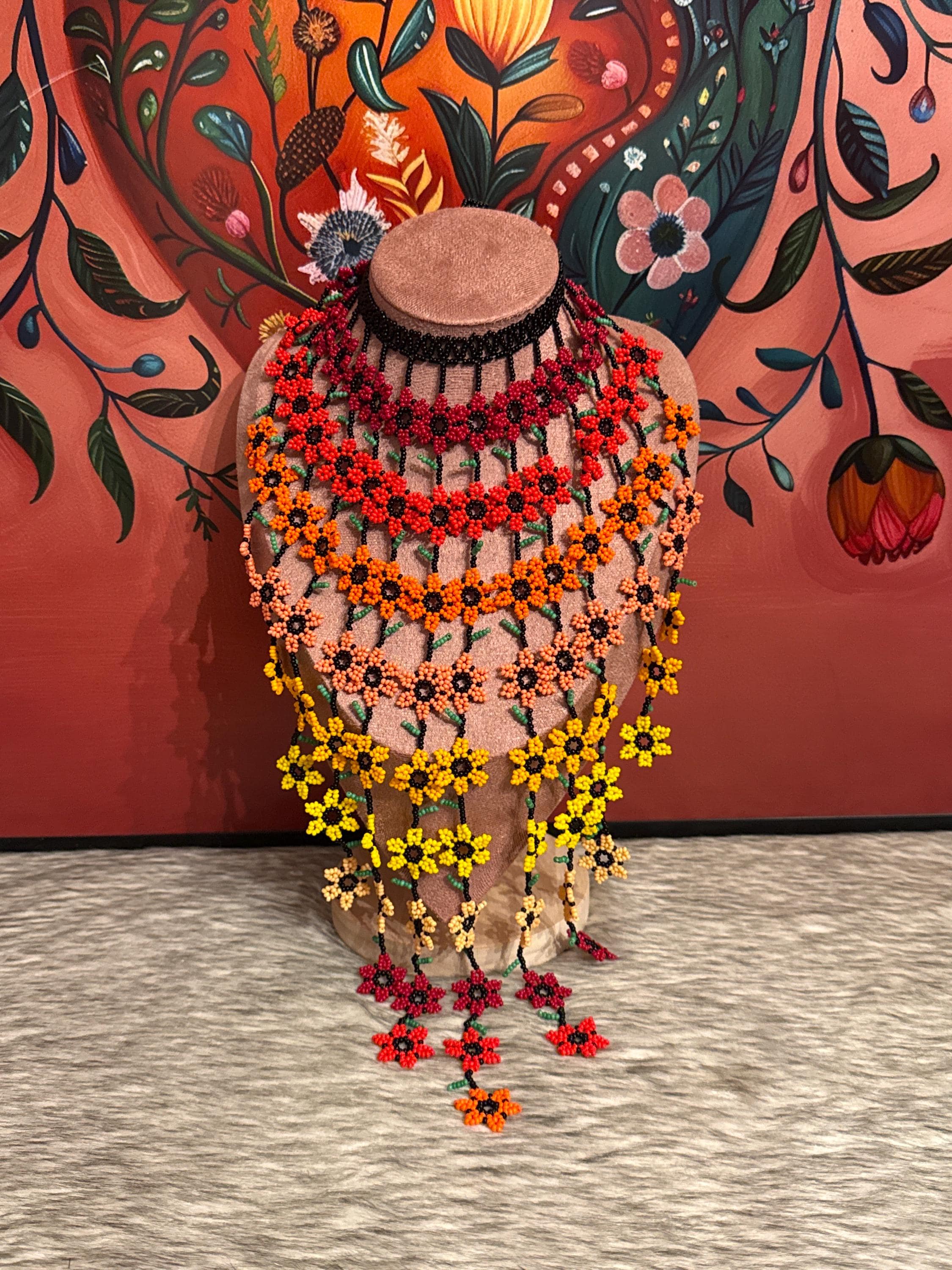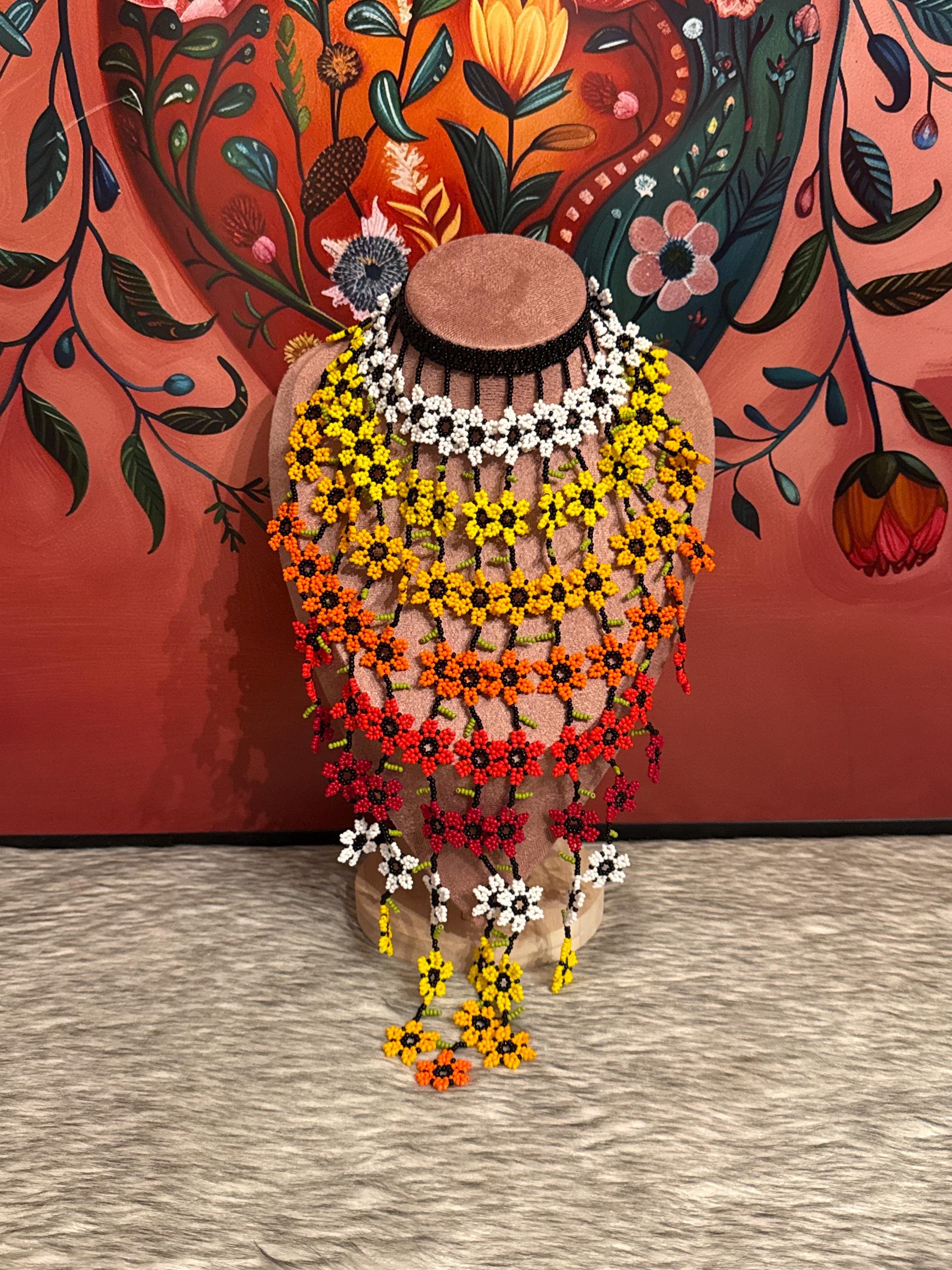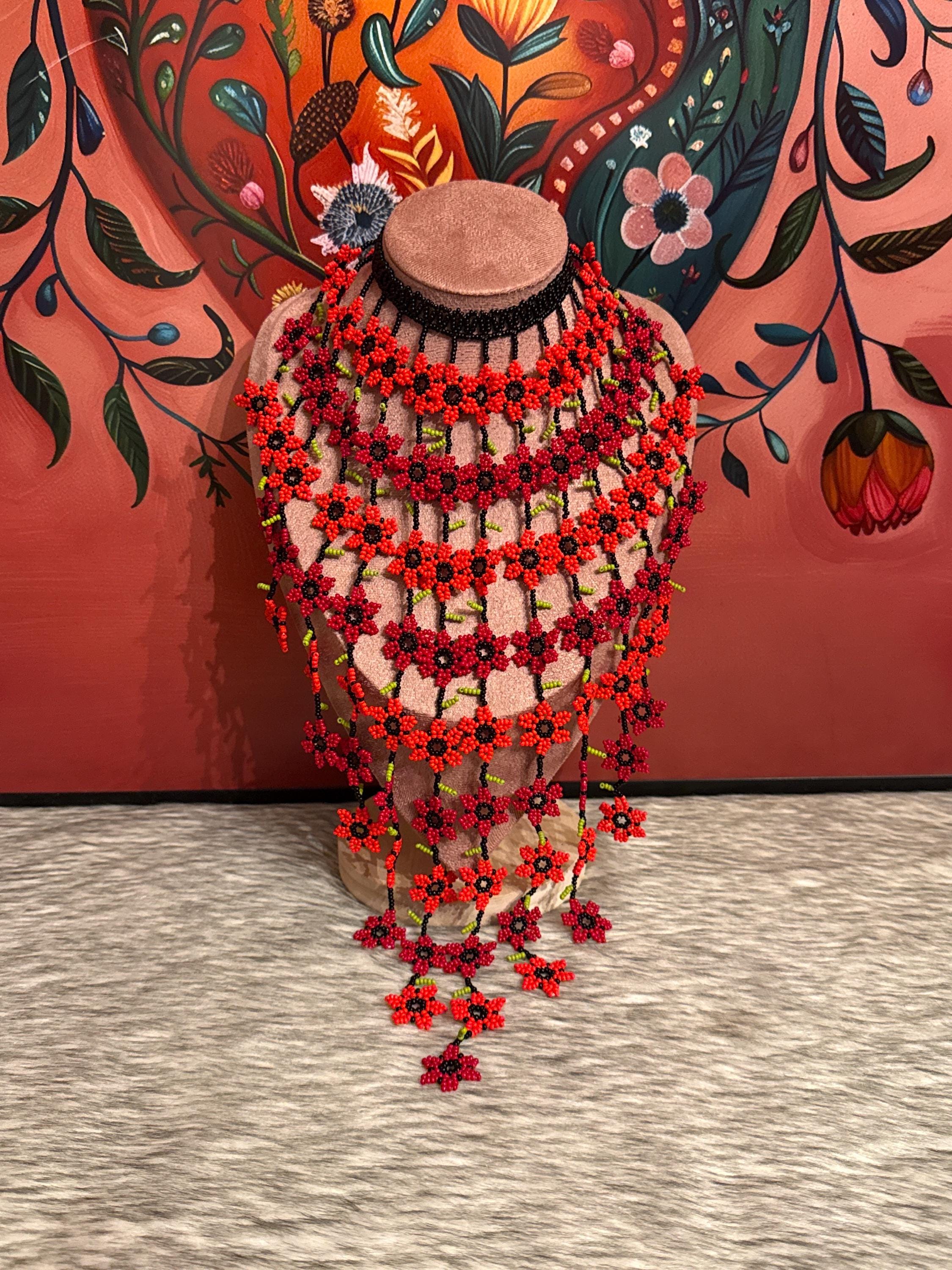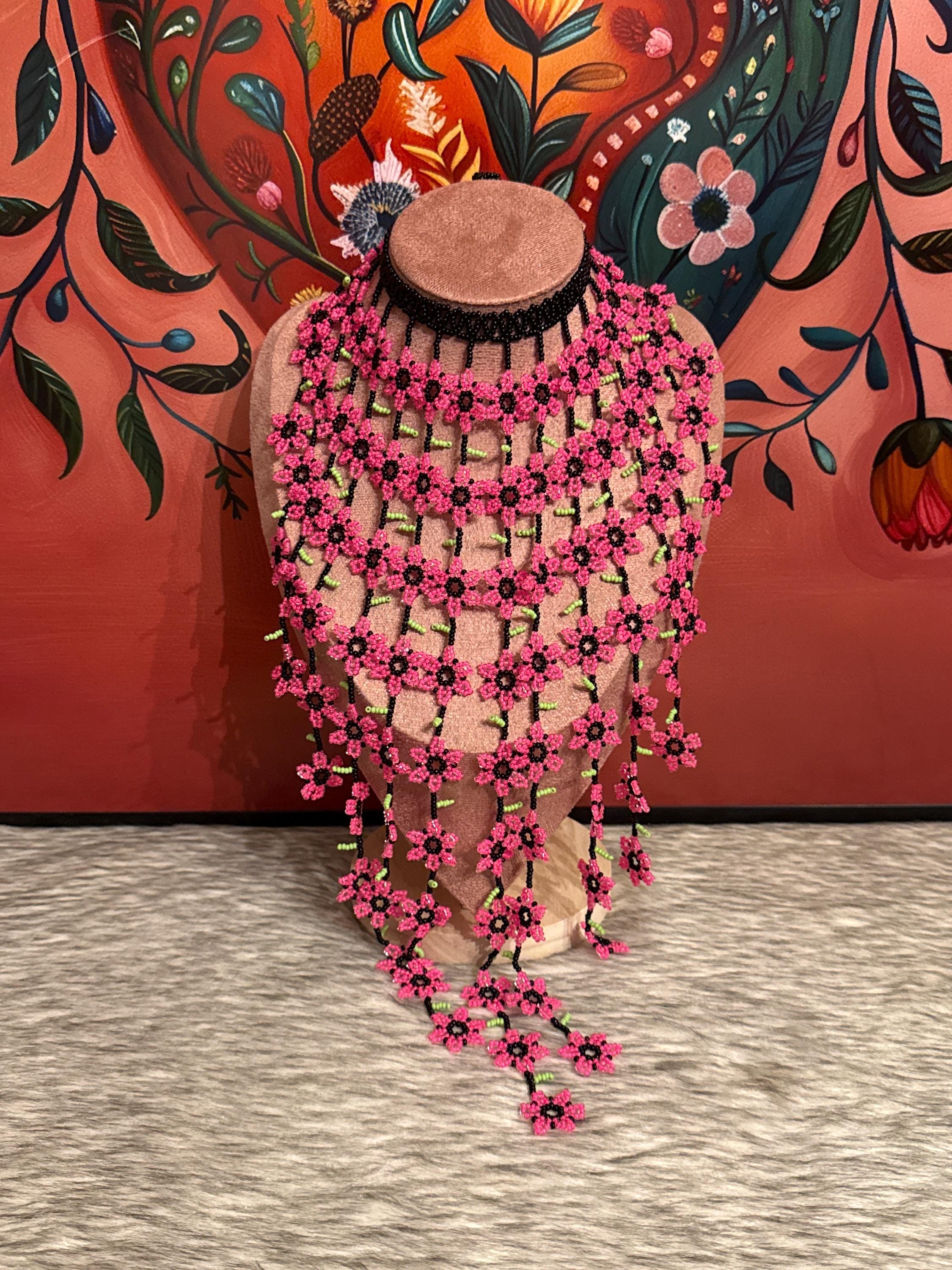 Beautiful set of flower waterfall necklace with earrings, handmade by Mexican artisans.