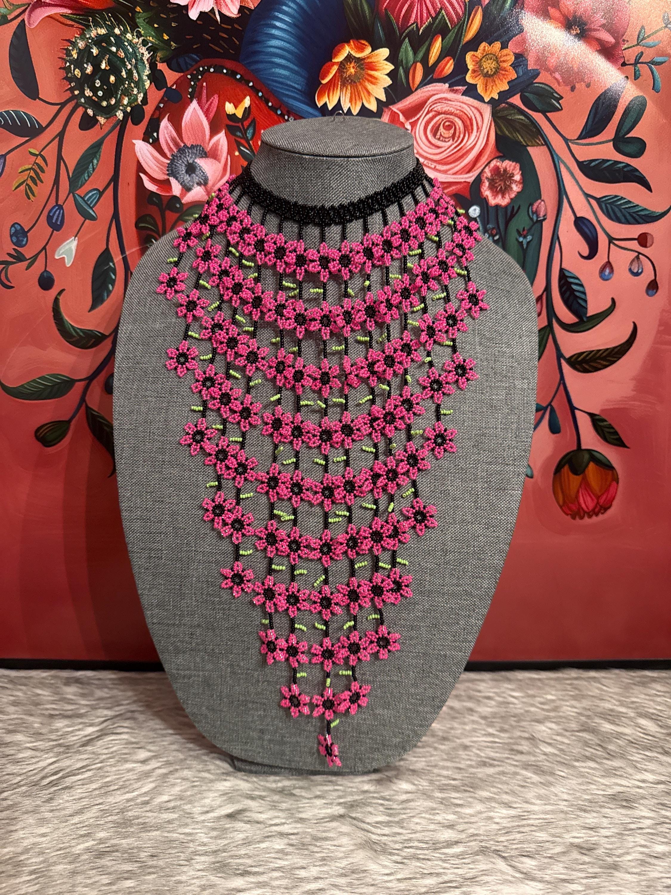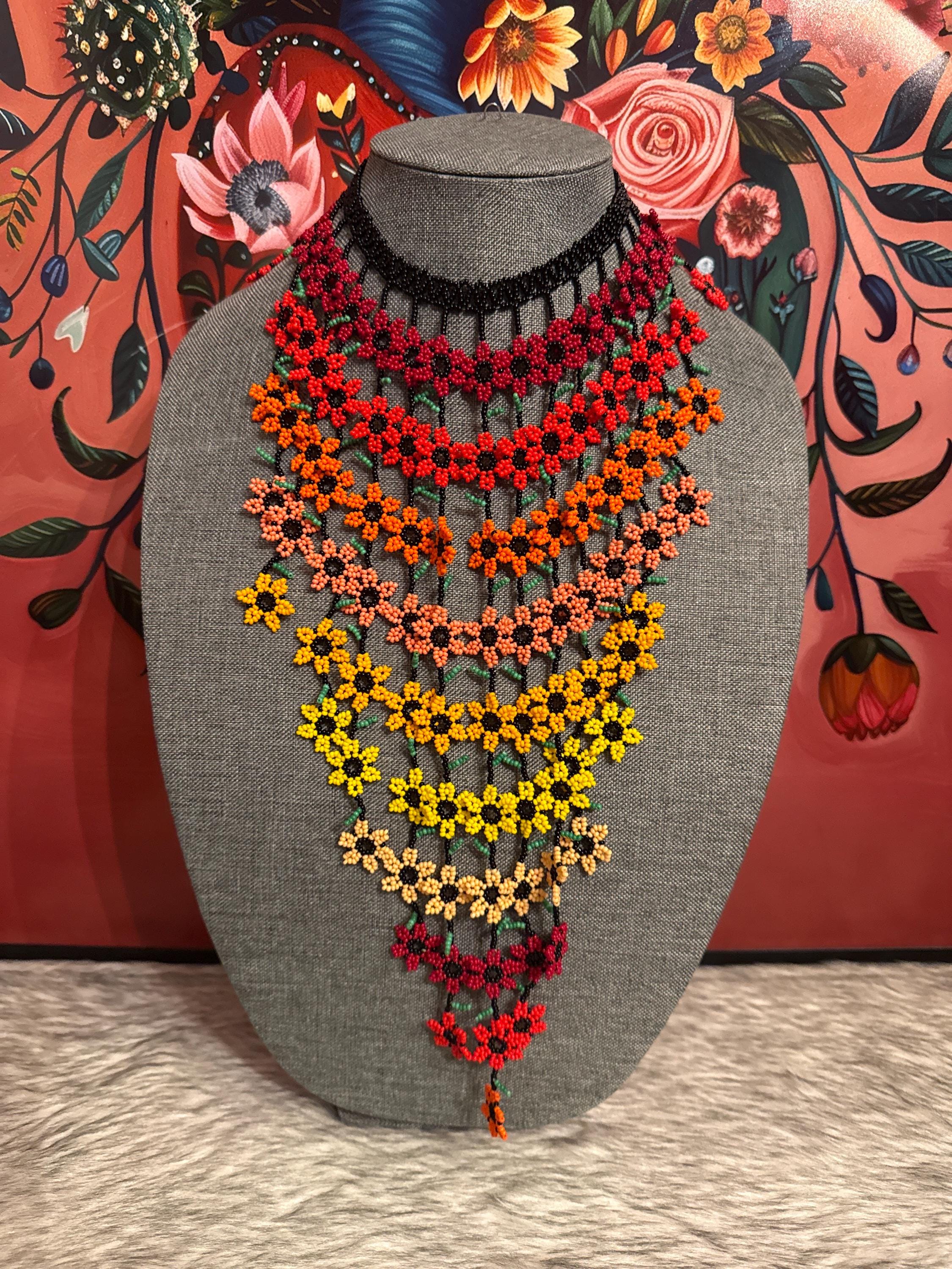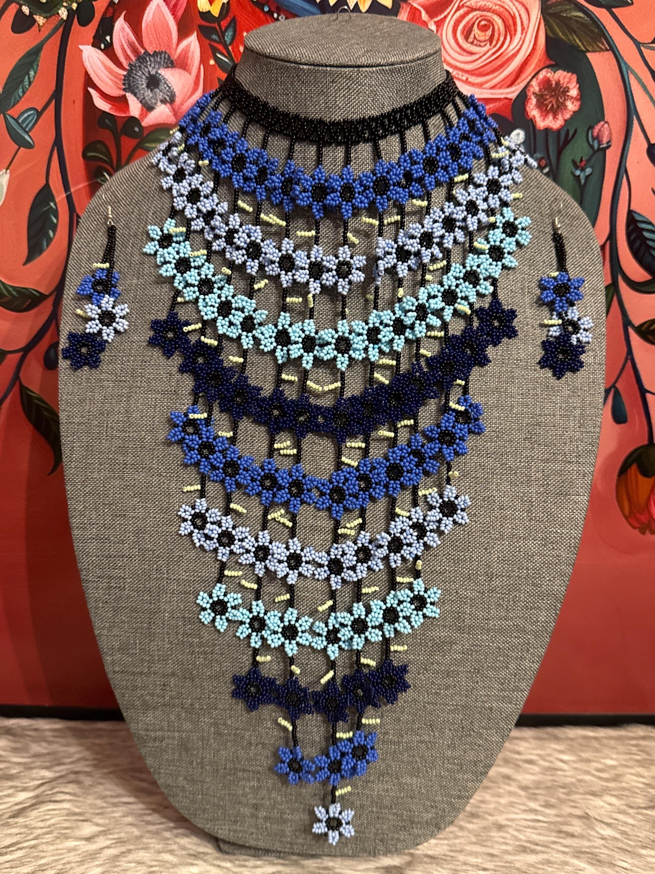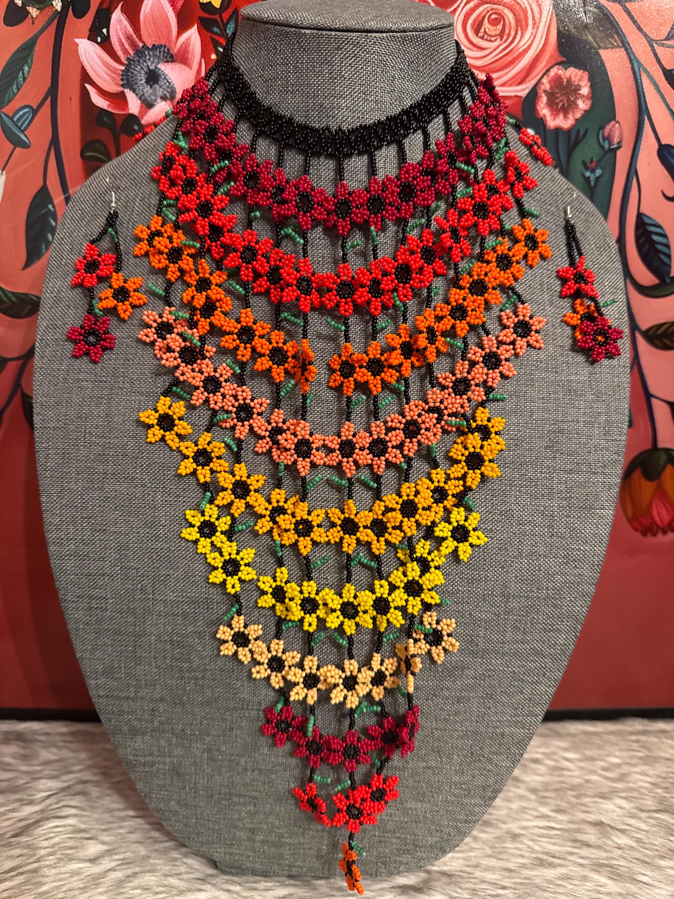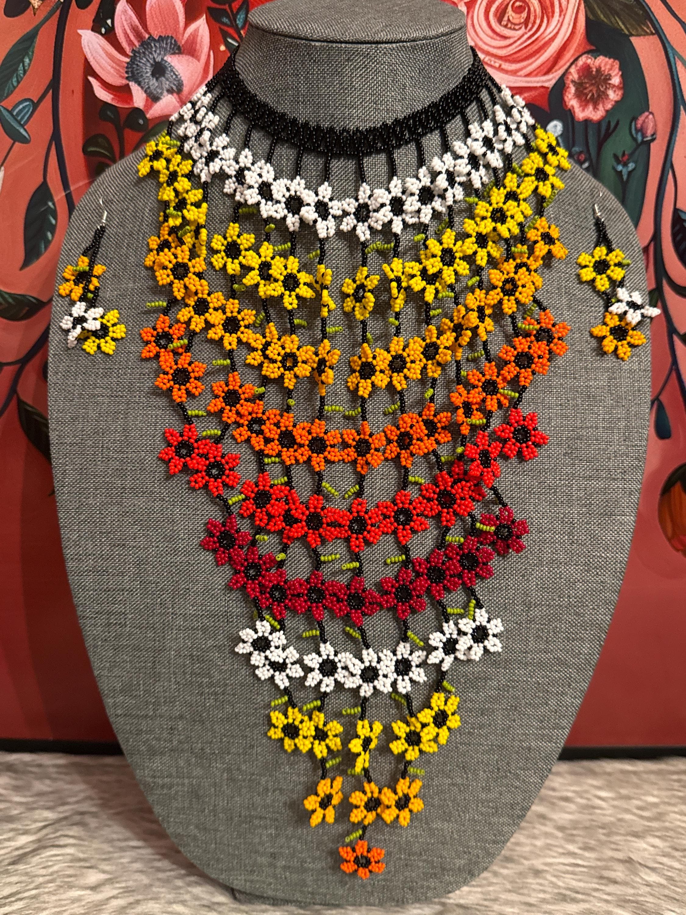 hermoso set de collar cascada de flores con aretes ,hechos a mano por artesanos mexicanos.