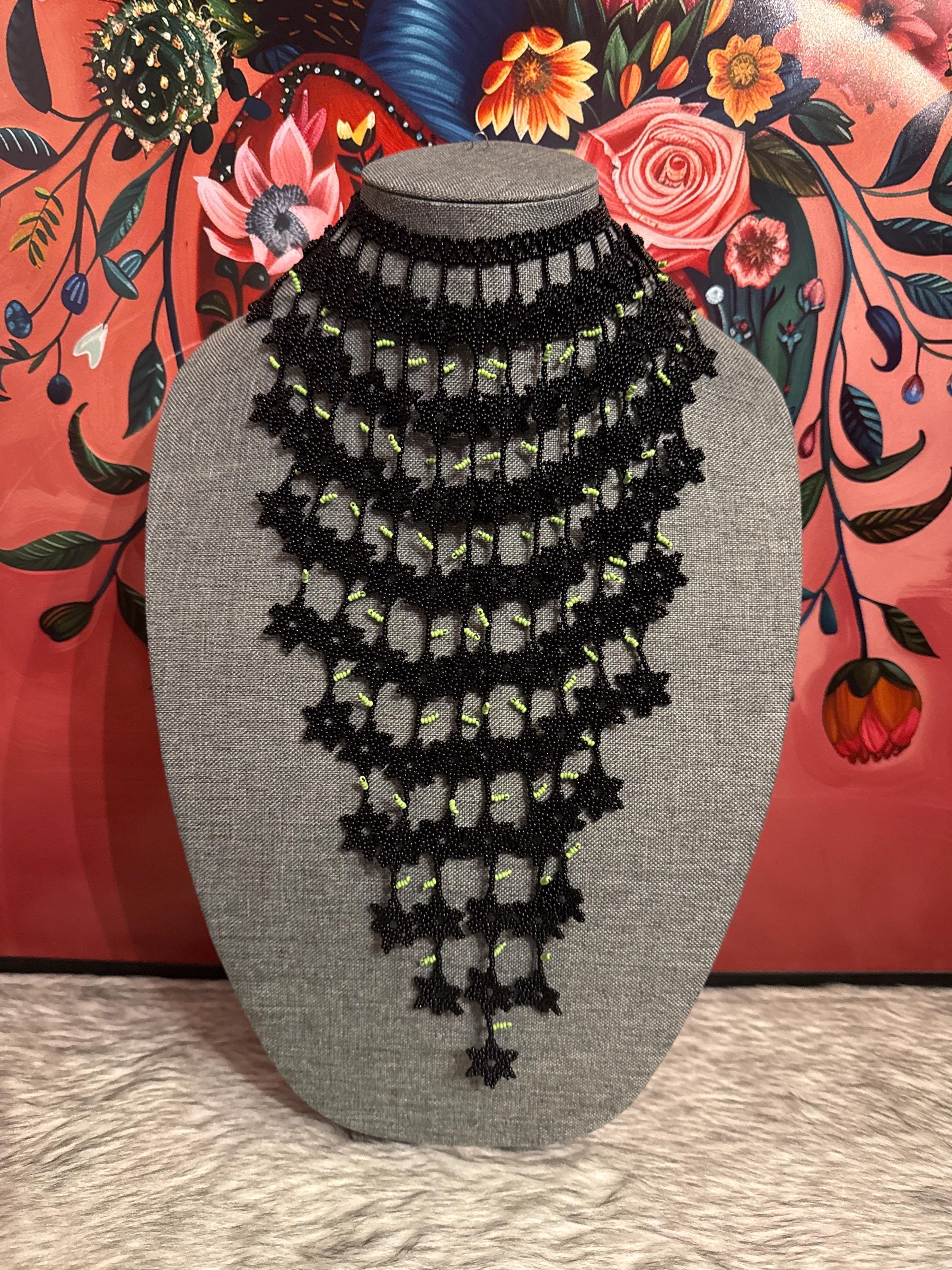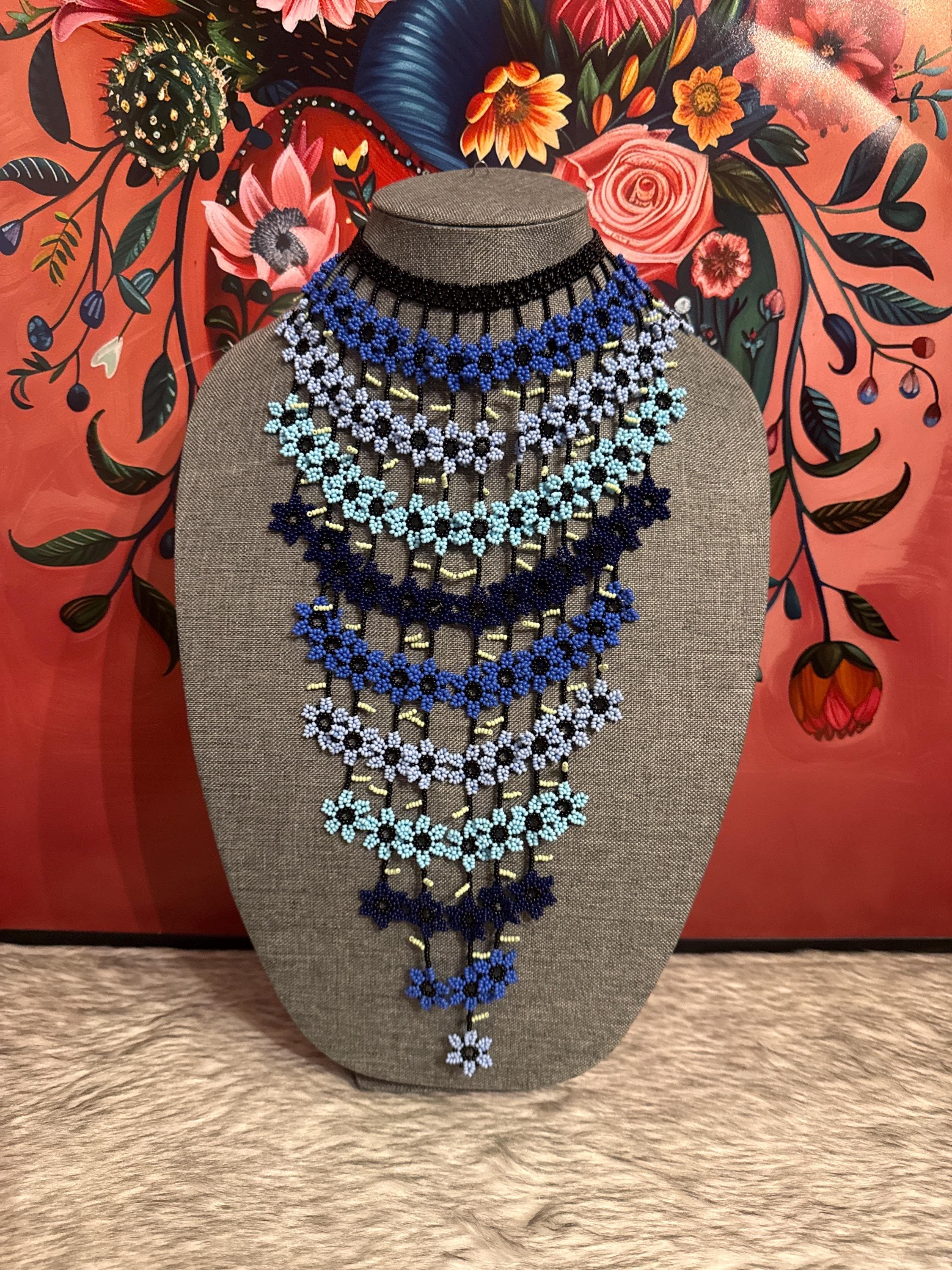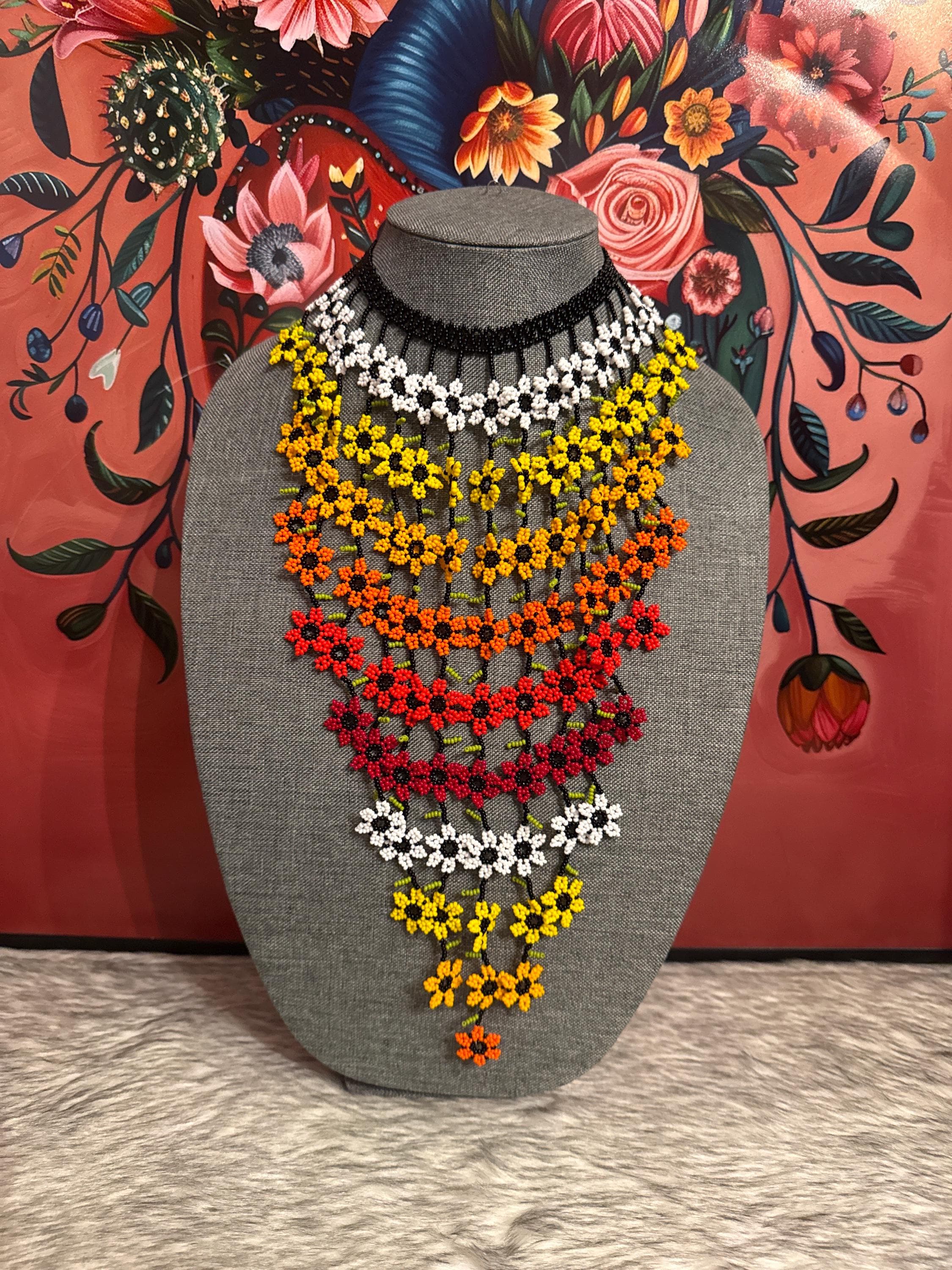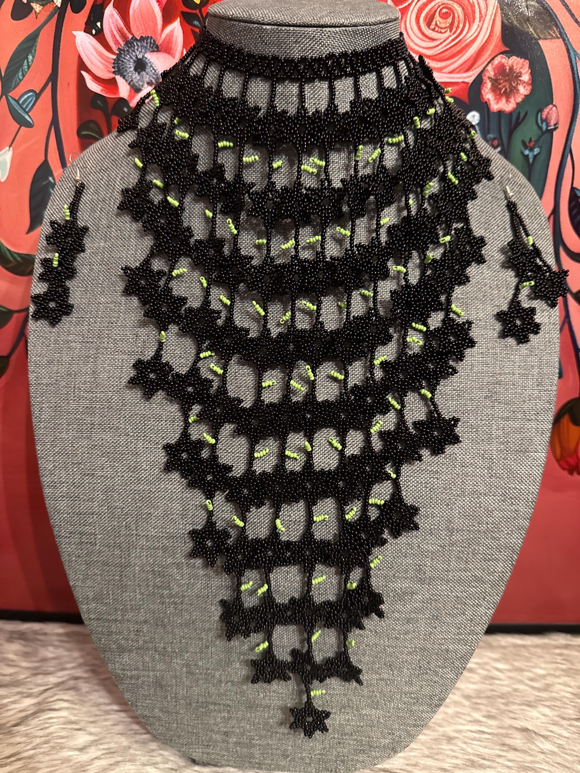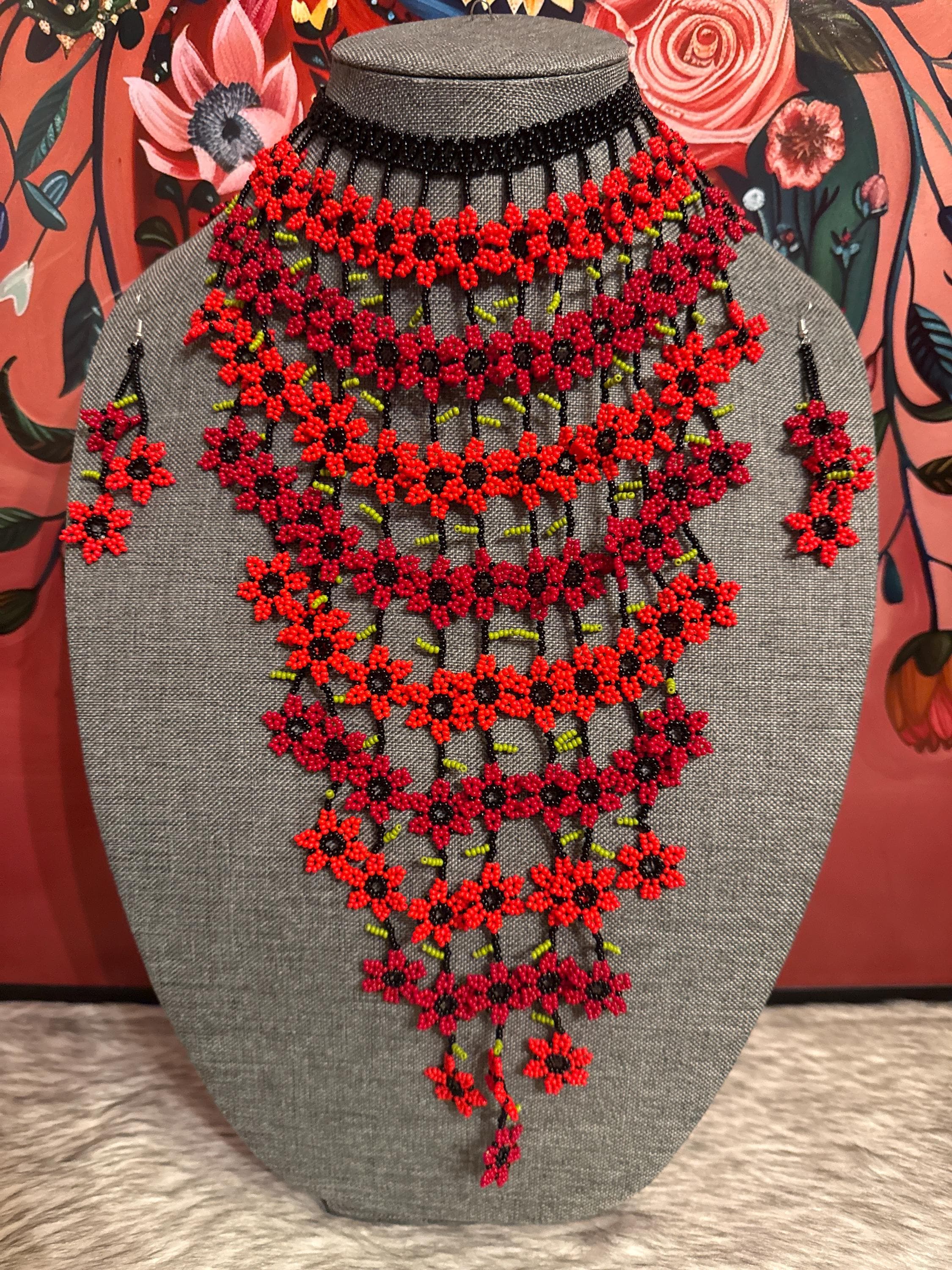 hermoso set de collar cascada de flores con aretes ,hechos a mano por artesanos mexicanos.