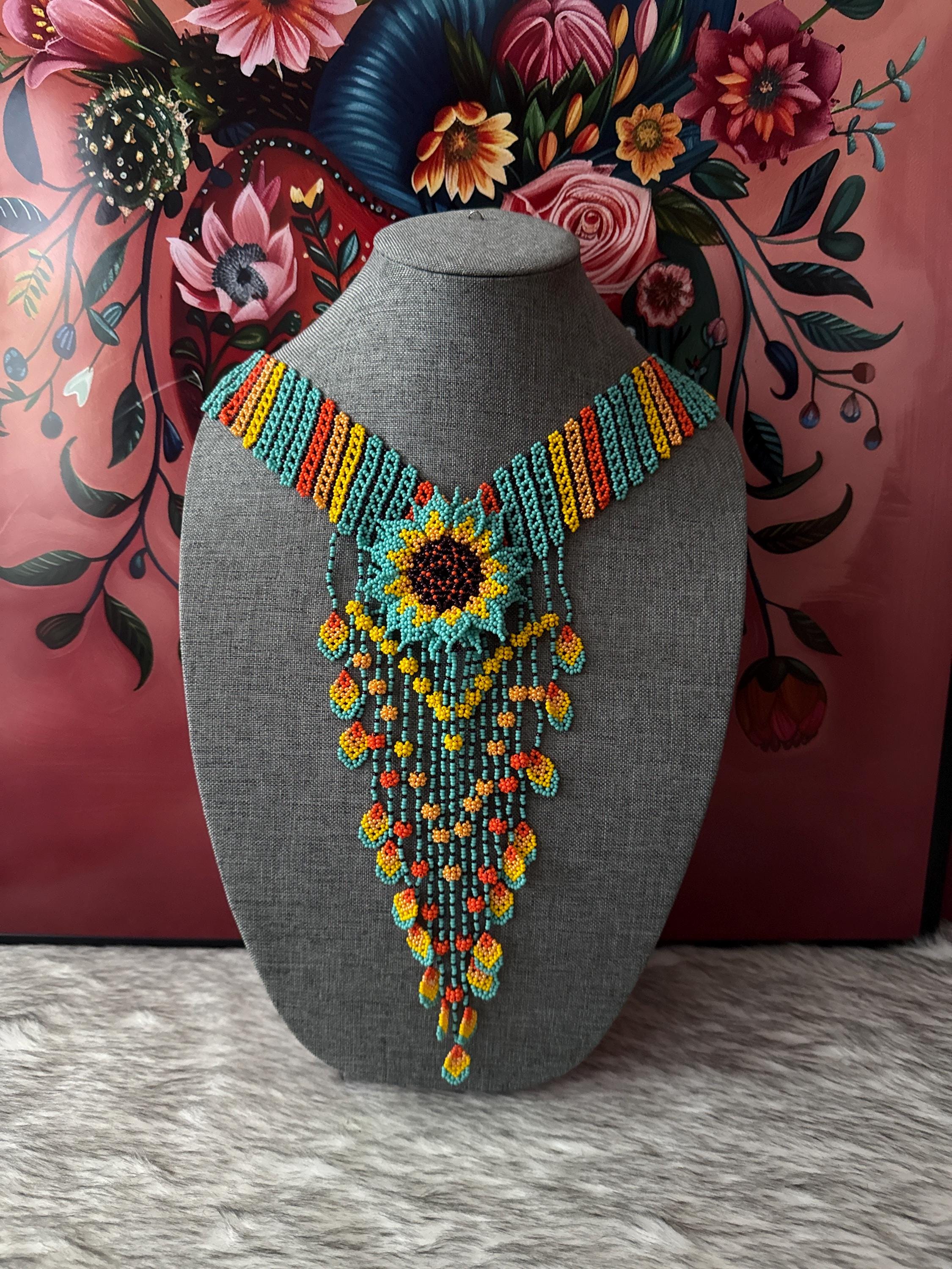All our pieces are genuine and each chaquira is handcrafted by artisans from the most representative areas of Huichol art. Beautiful handmade necklace with beads by Mexican artisans.