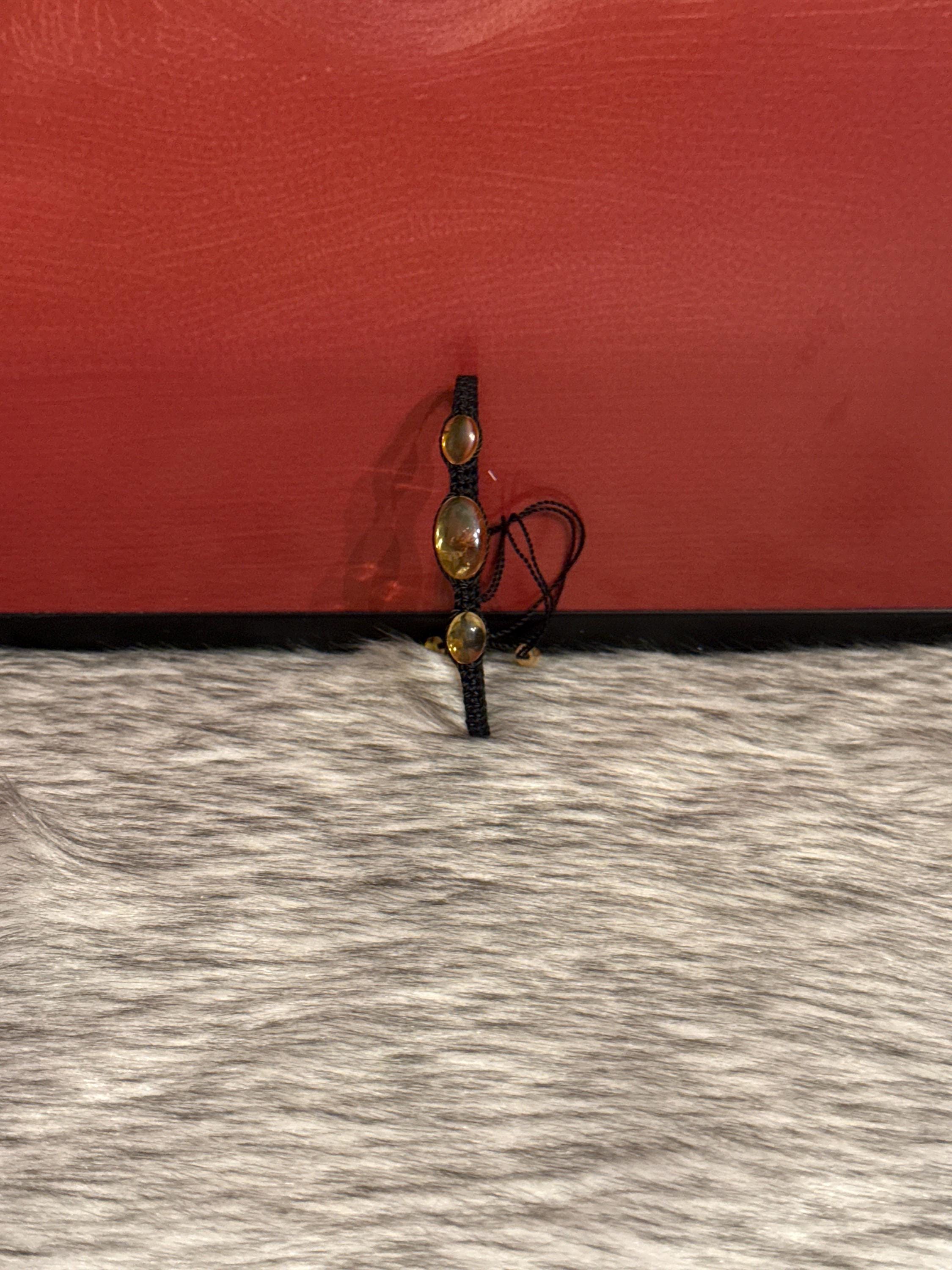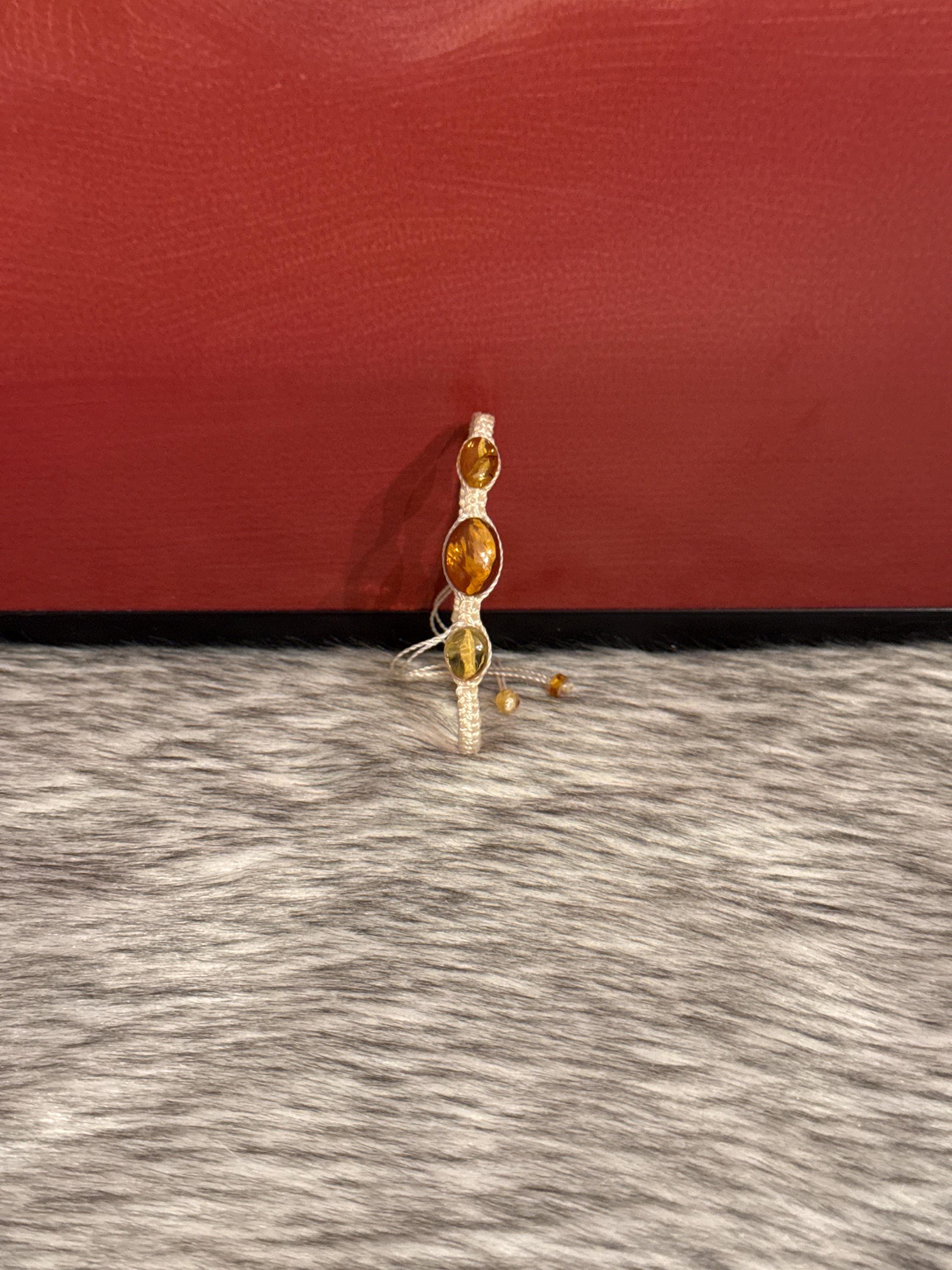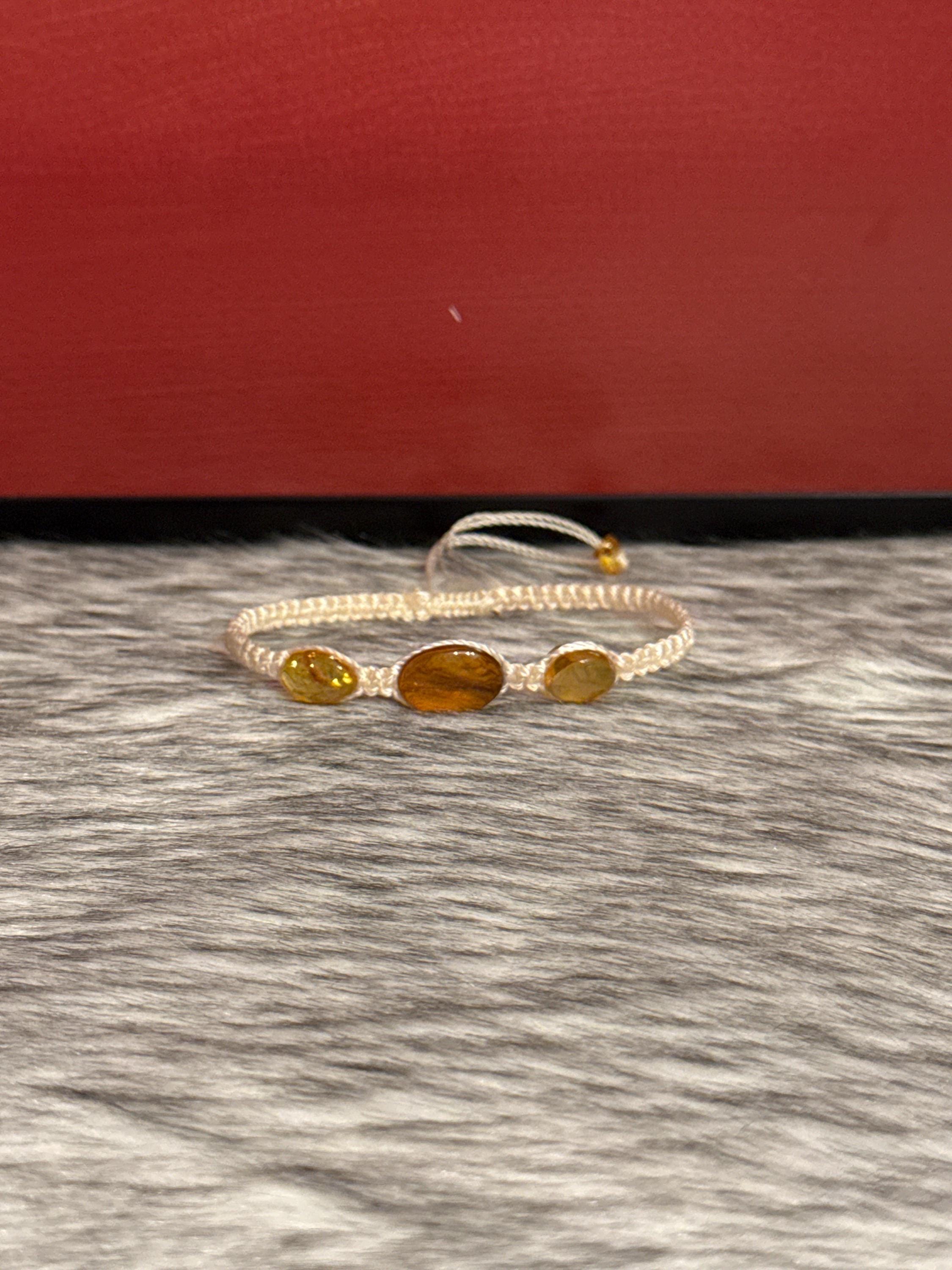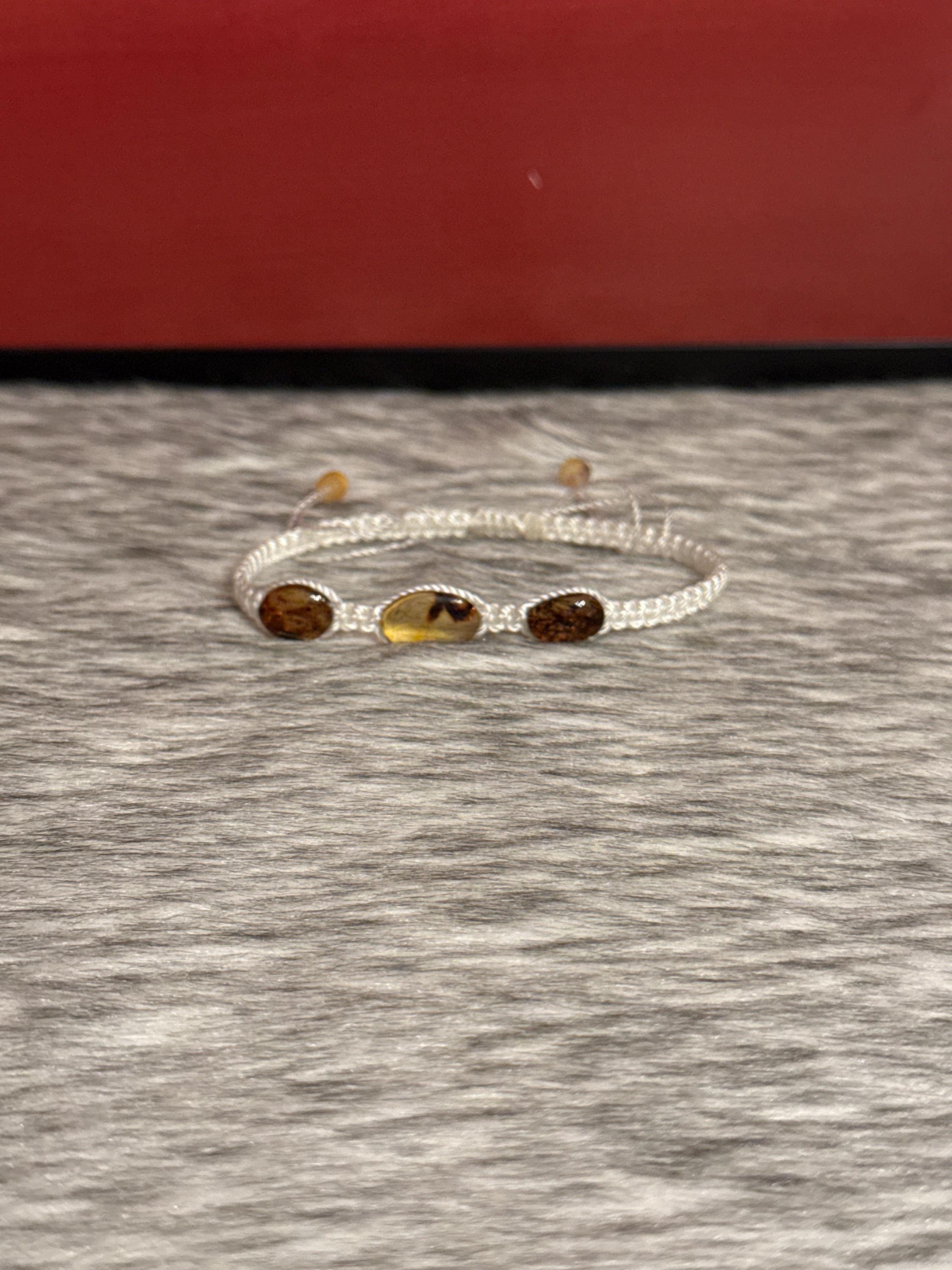 Macrame-style silk thread woven bracelets with natural amber. The selected color will be sent, but the shape, size, and color of the amber may vary.