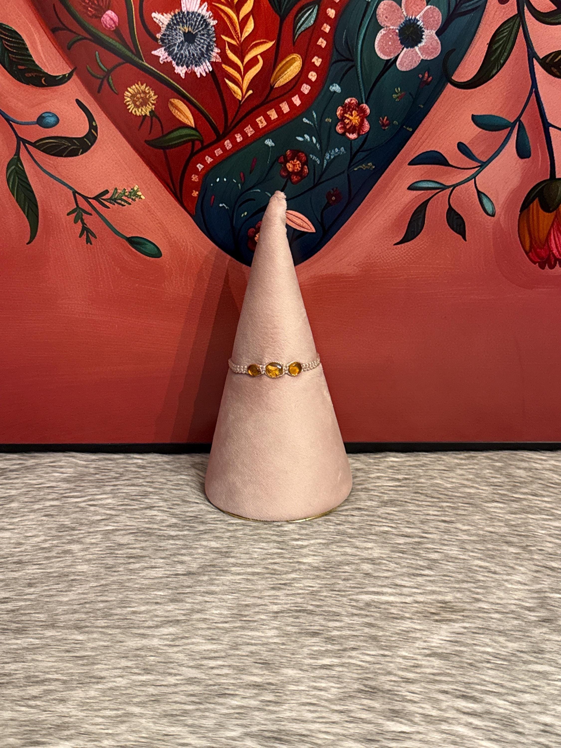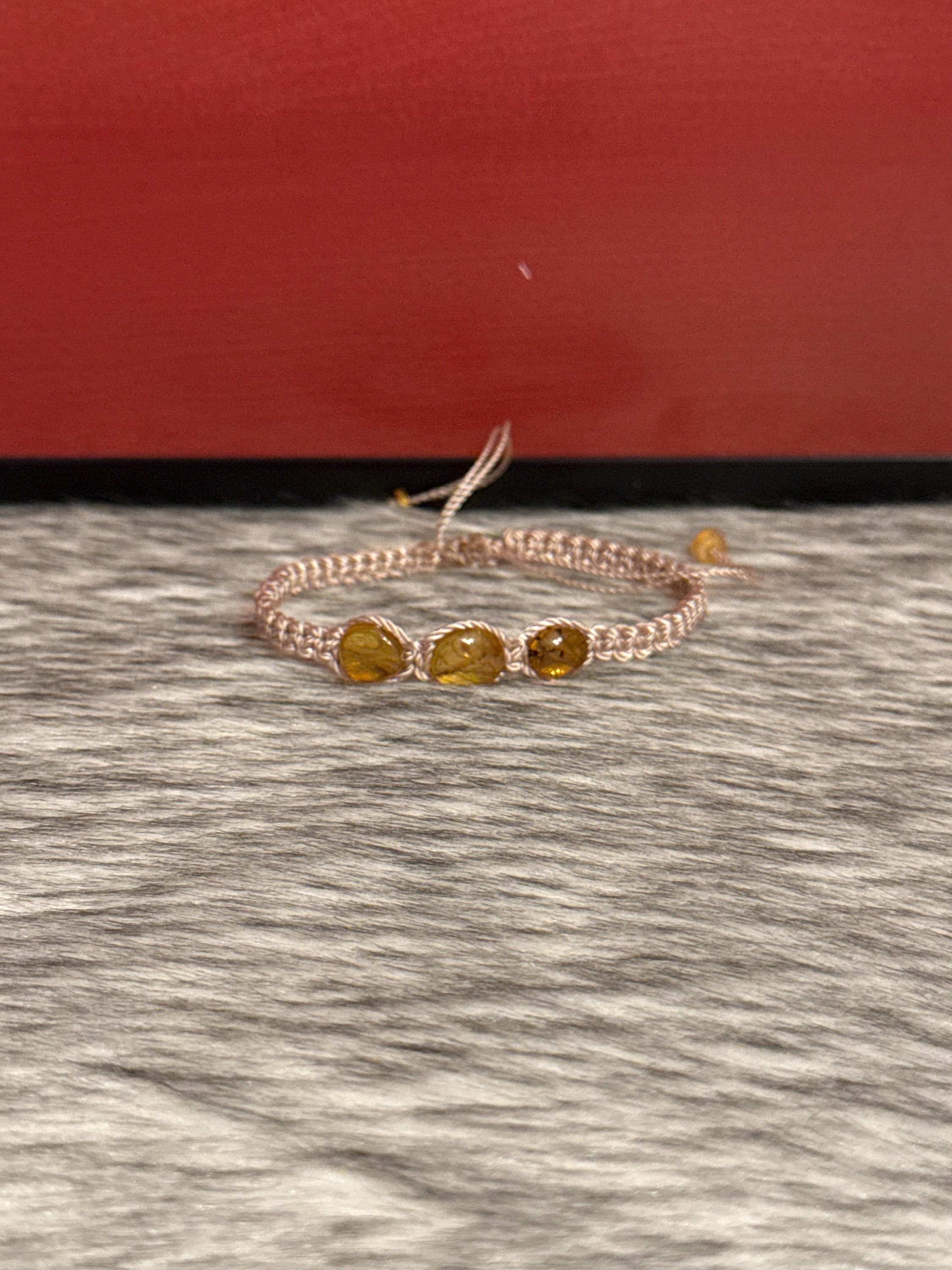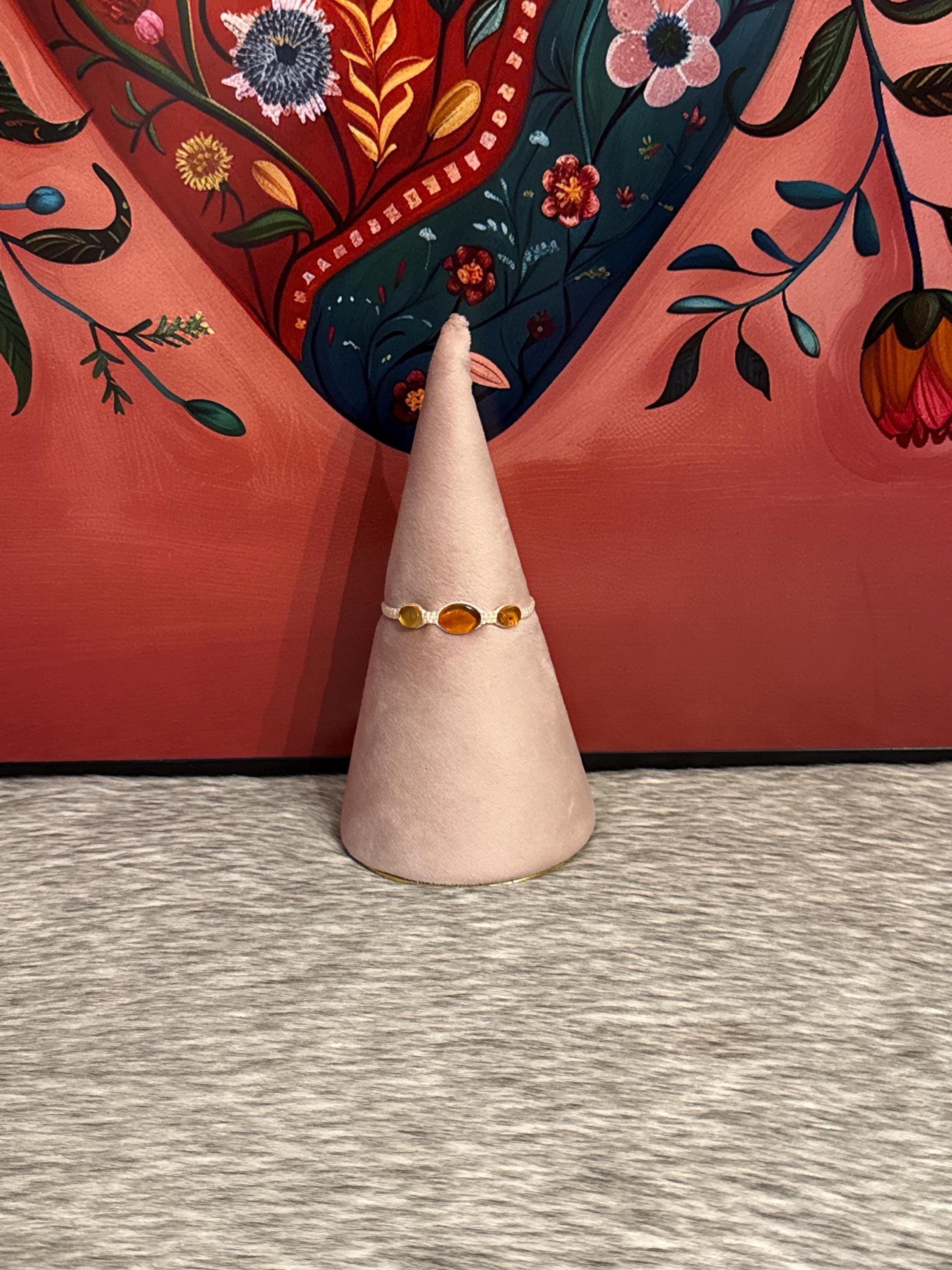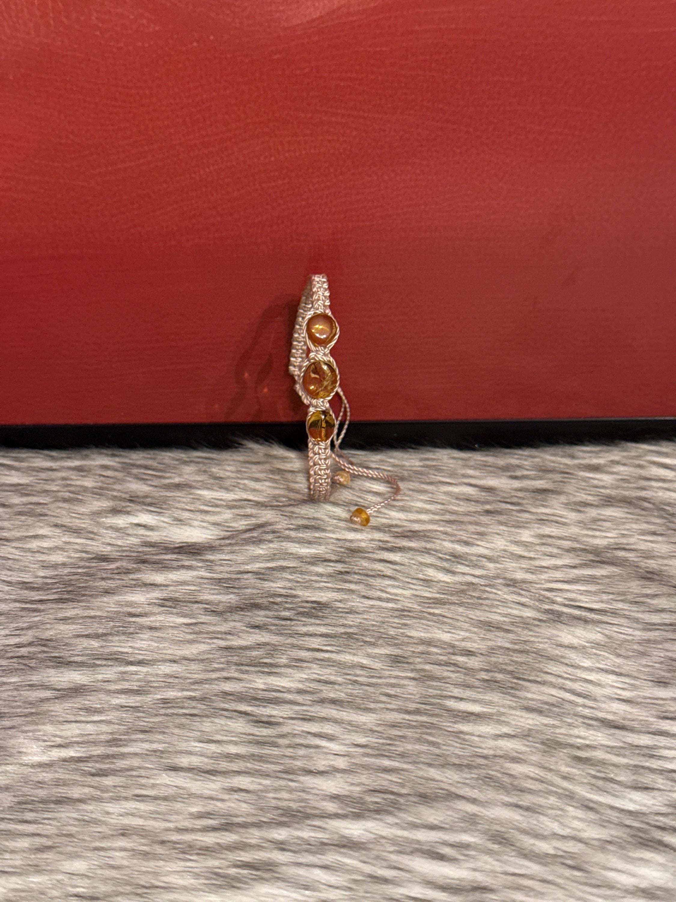 Macrame-style silk thread woven bracelets with natural amber. The selected color will be sent, but the shape, size, and color of the amber may vary.