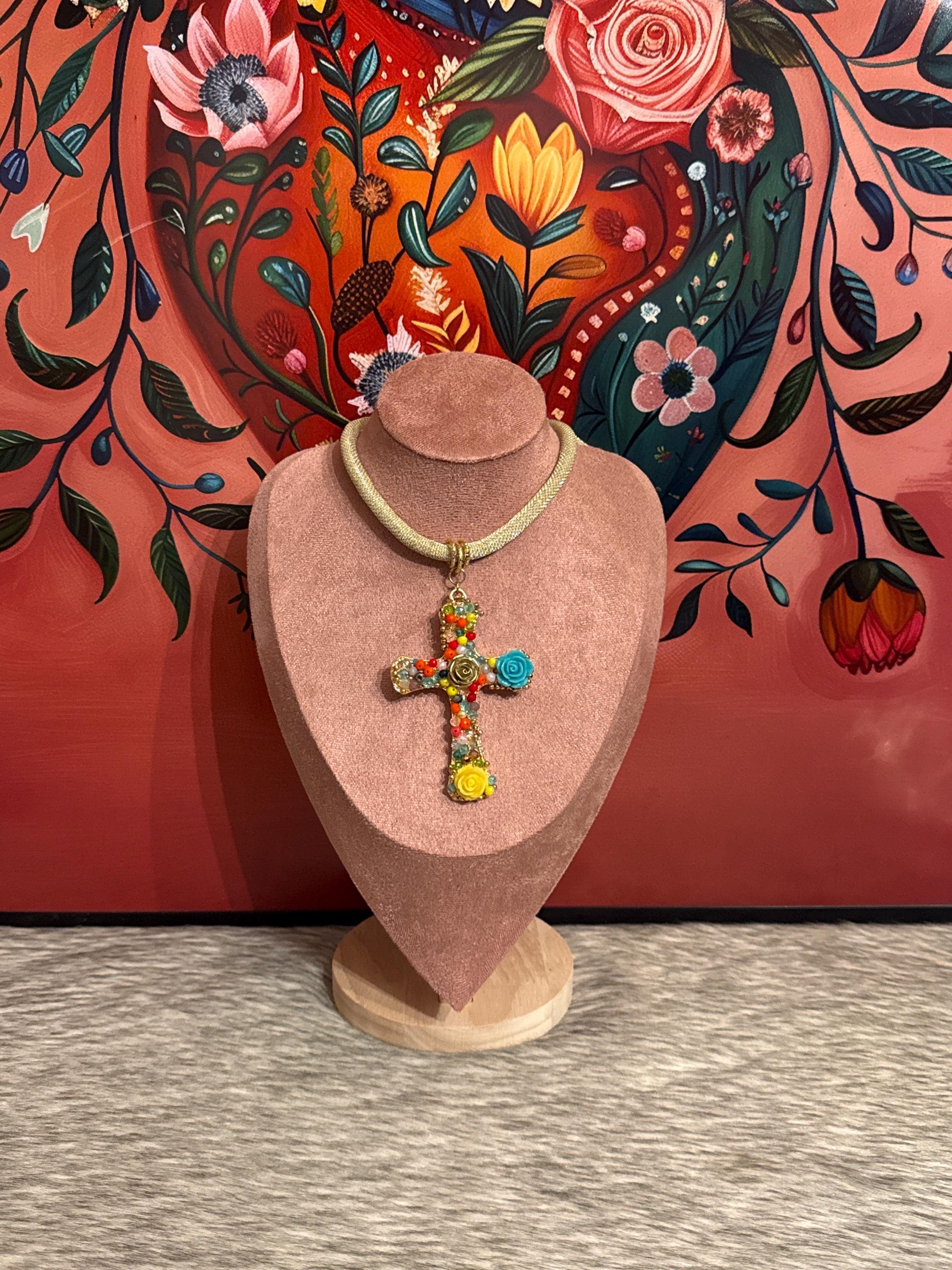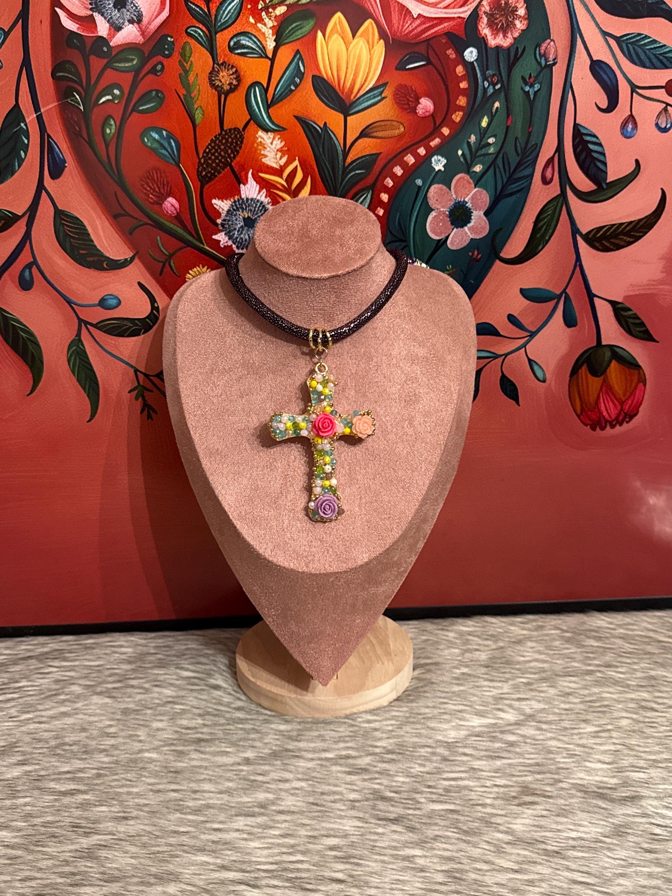 Beautiful sets of synthetic leather necklaces and charms crafted with Czech crystal and hand-painted porcelain flowers.