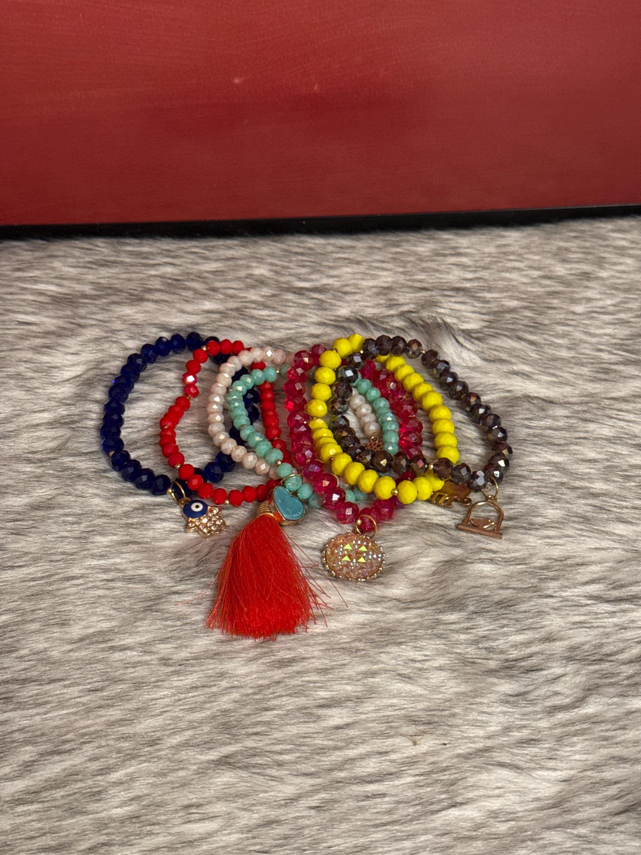 Beautiful weekly set of 7 crystal bracelets with earrings, handmade by Mexican artisans.