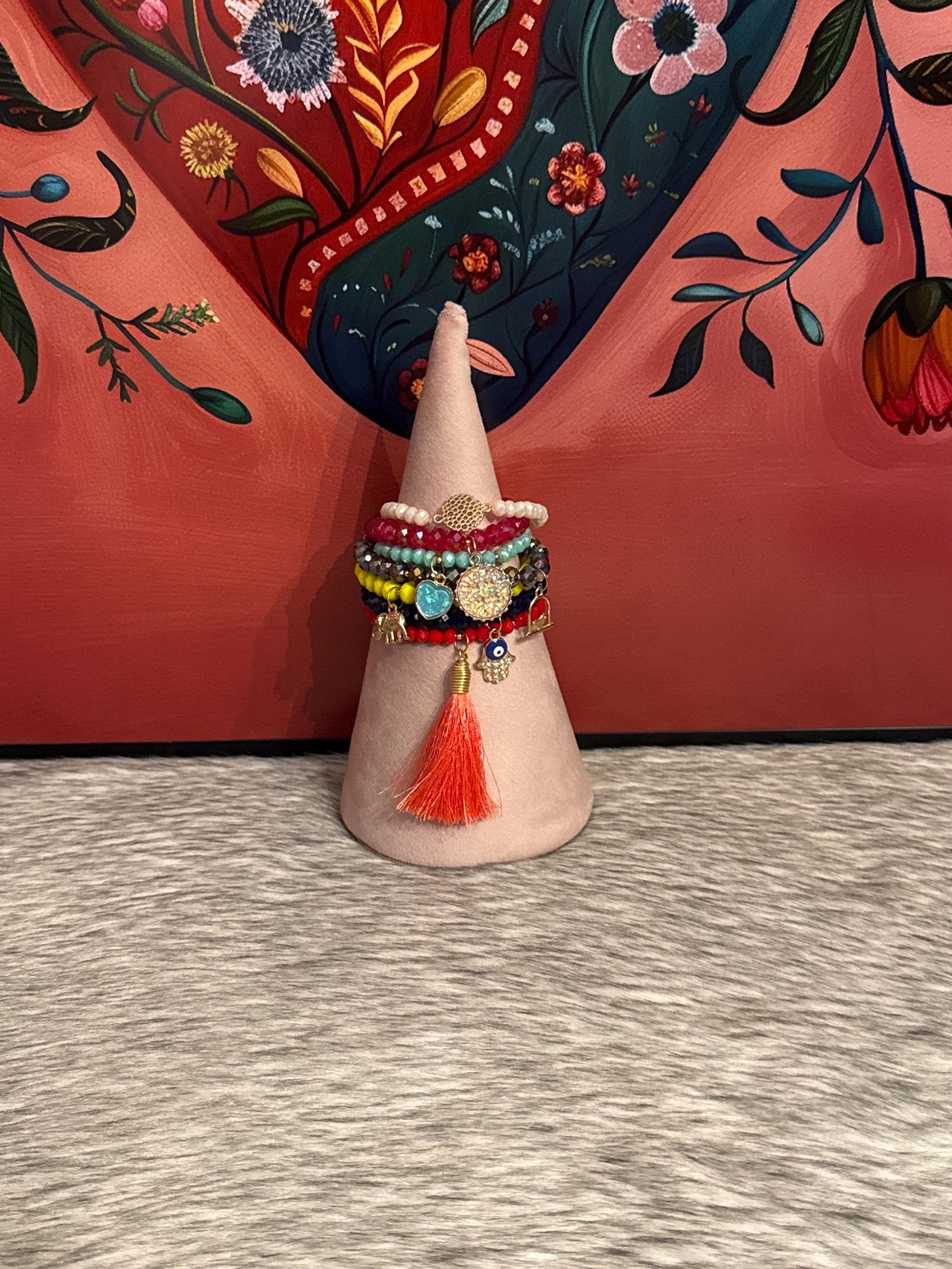 Beautiful weekly set of 7 crystal bracelets with earrings, handmade by Mexican artisans.