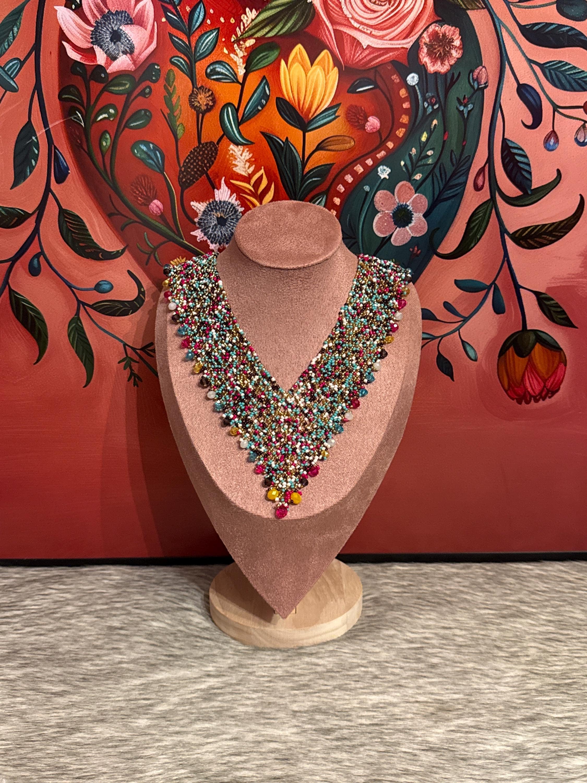 Beautiful V-shaped choker set, made with beads and Czech crystal, jewelry made by Mexican artisans.