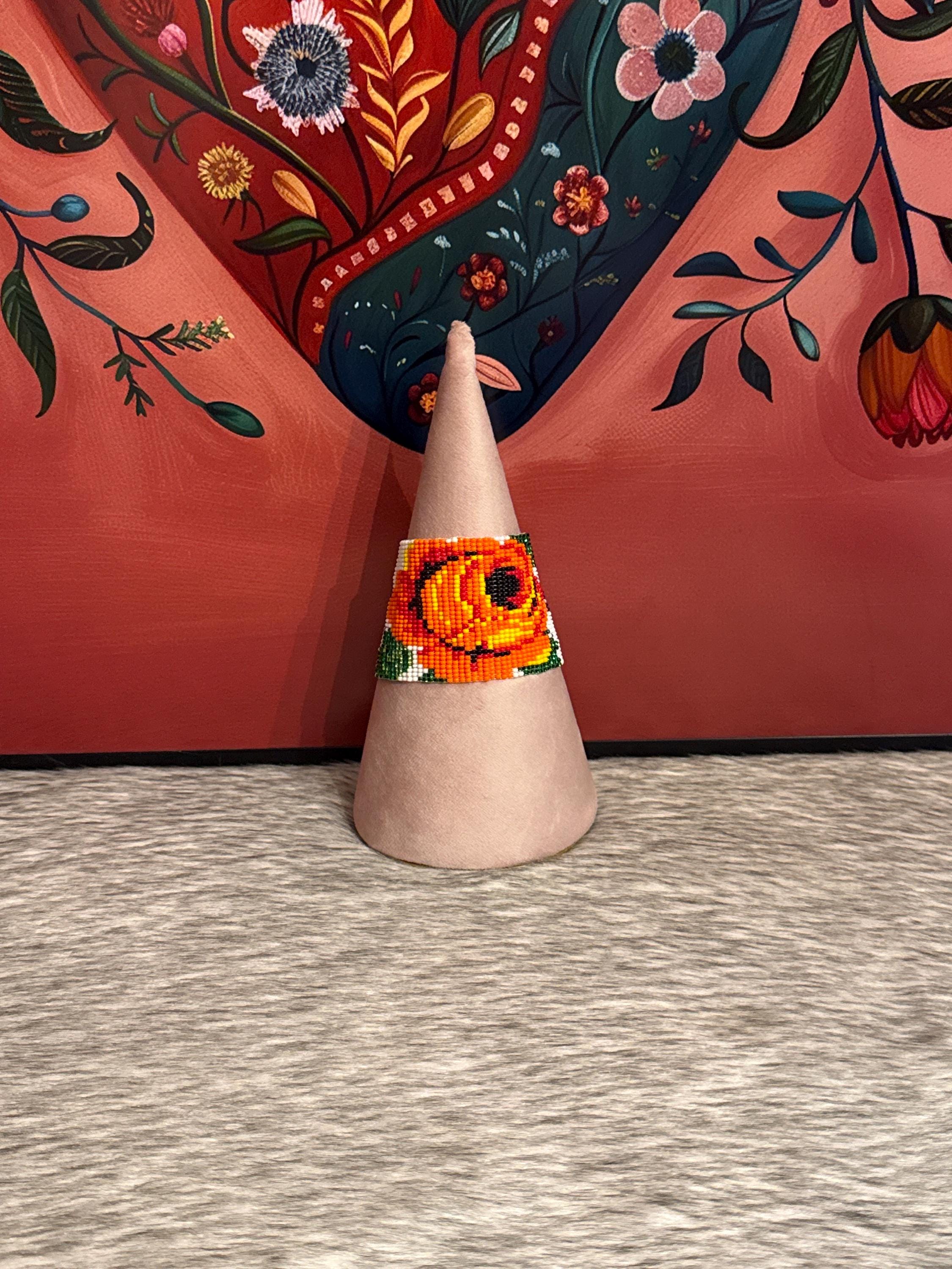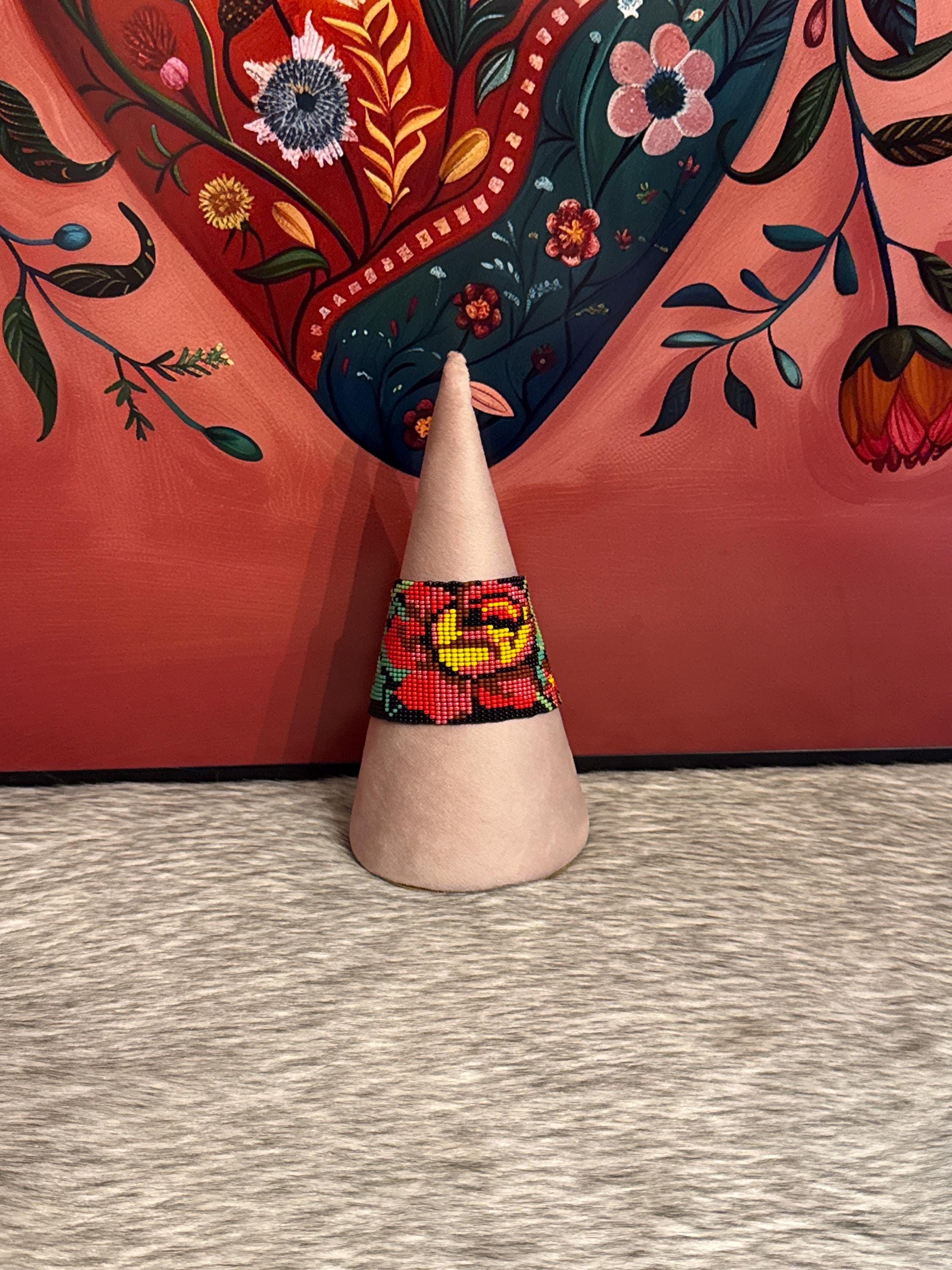 Beautiful bracelets made with flower patterns, made with seed beads by Mexican artisans, the bracelets measure approximately 7 inches long by 2 inches wide.