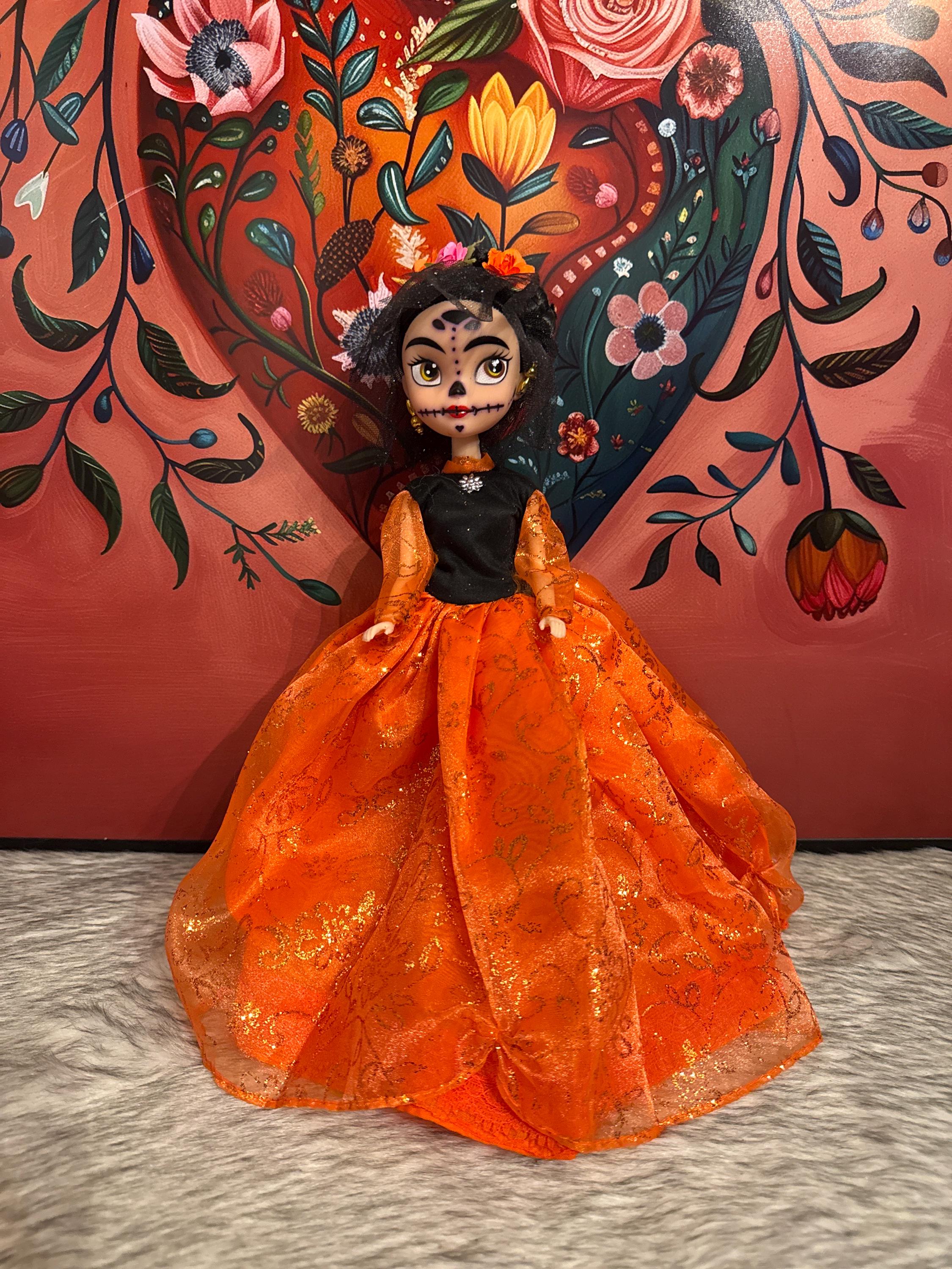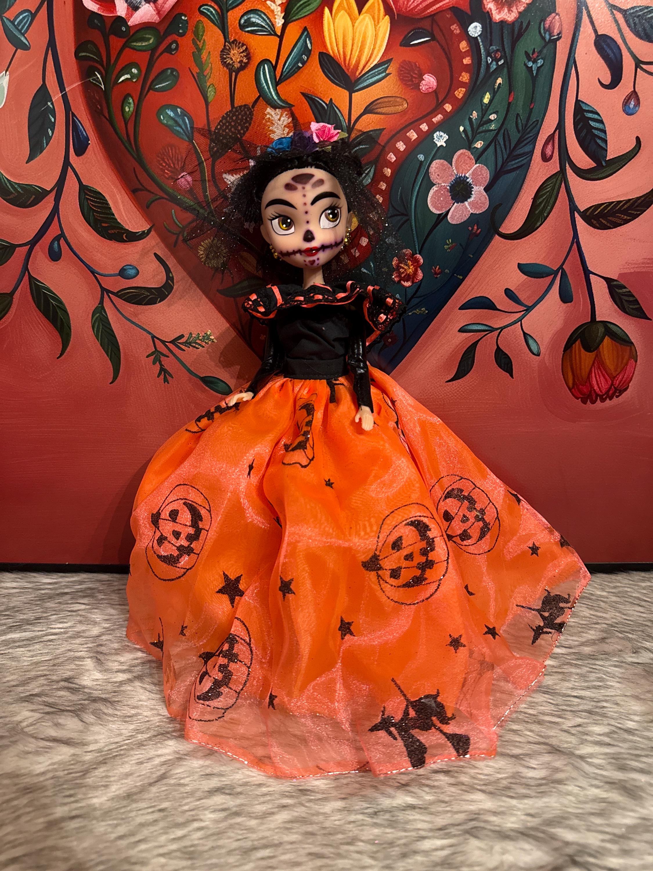 Such a beautiful doll, I absolutely love it. I was looking for a small Day of the Dead doll for decorations and this is perfect. The detail on the dress & the make up is fabulous. So happy that I purchased this. Thank you!
