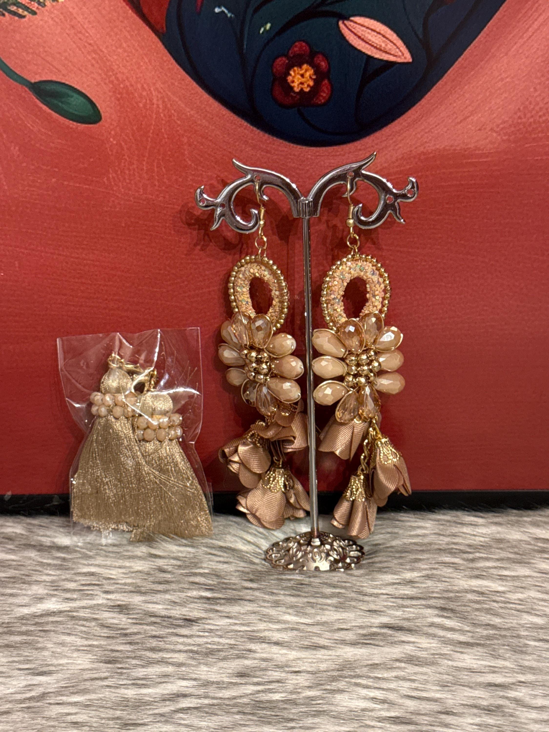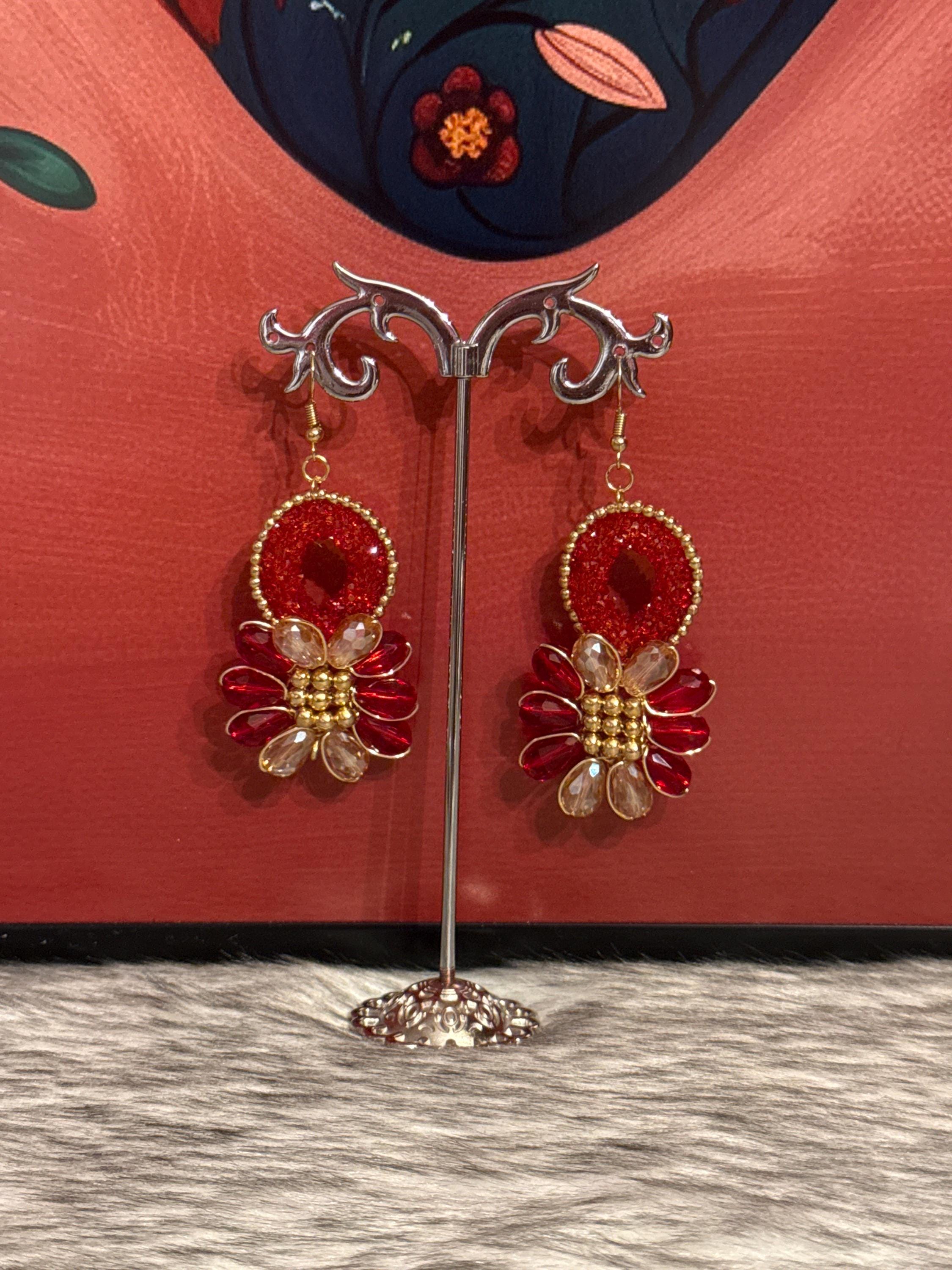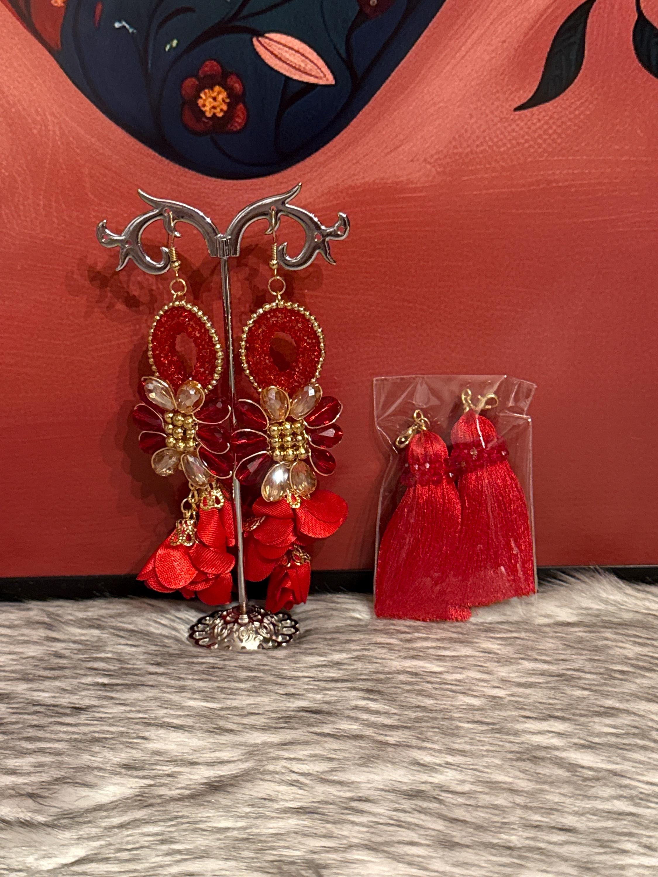 Beautiful earrings, 4 options in 1, change them as you wish. These beautiful earrings give you 4 different ways to wear them, made with crystal and worked in wire wrapping technique, 14k gold plated.