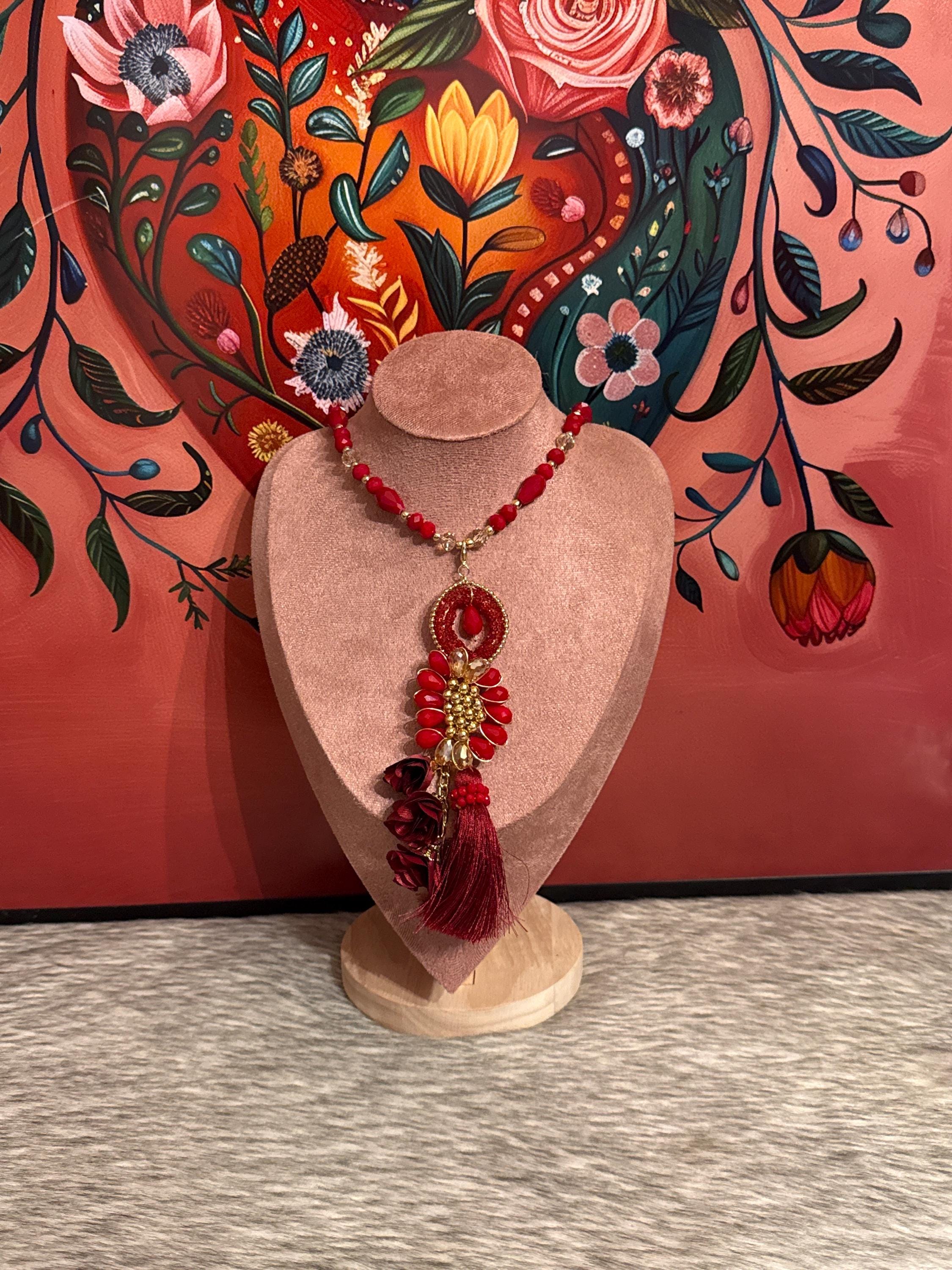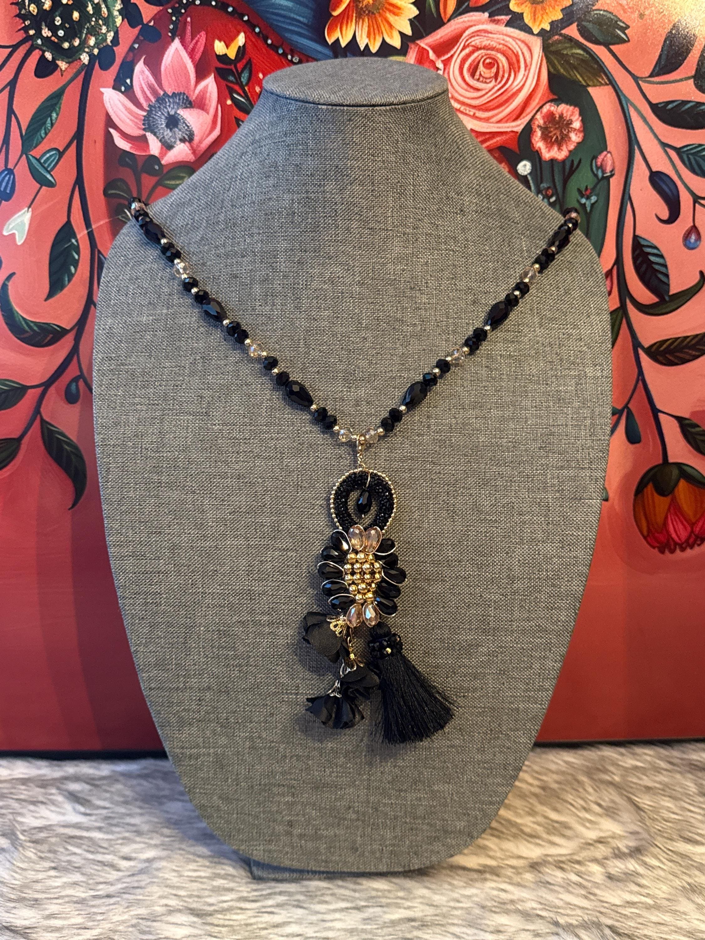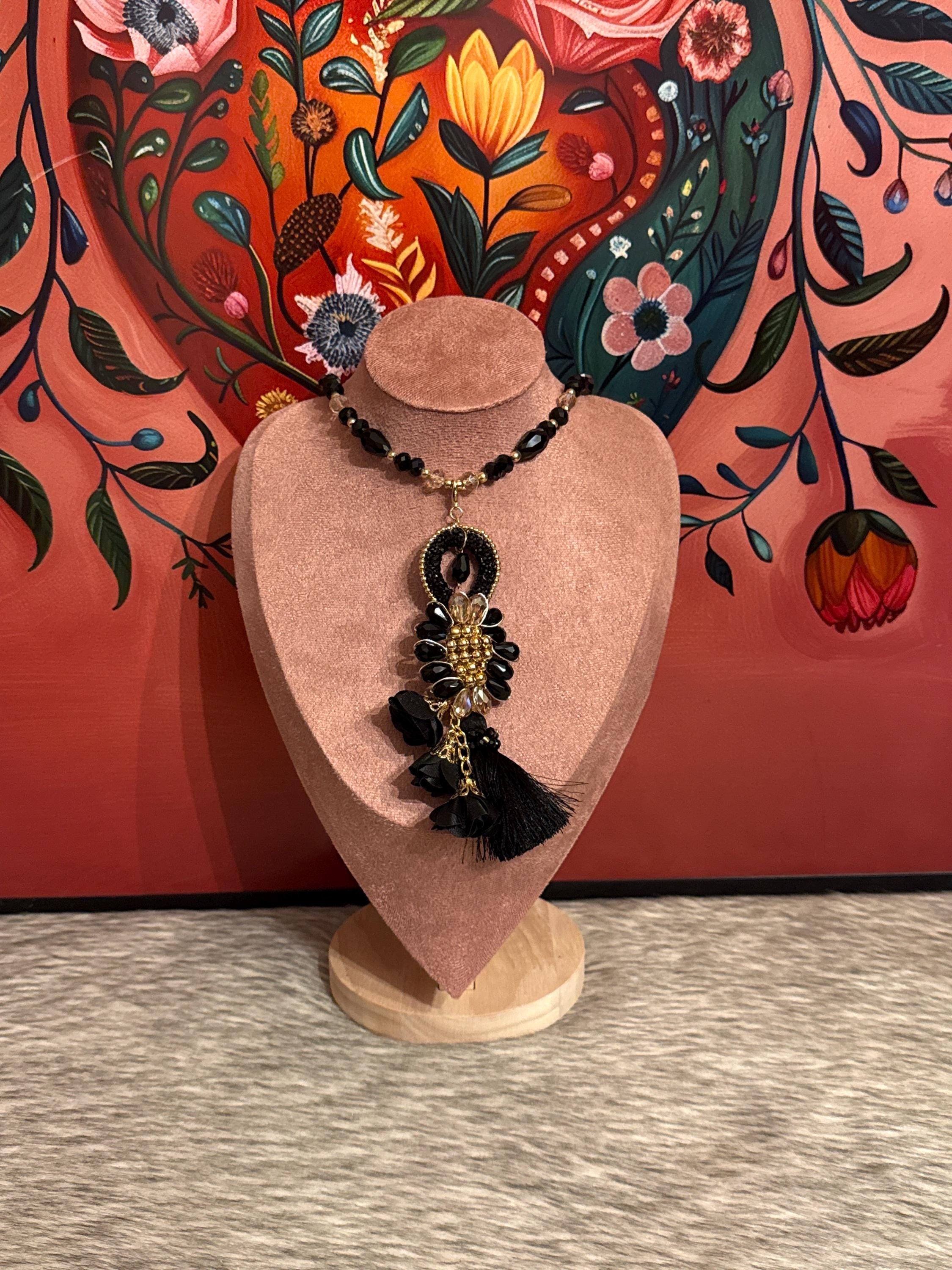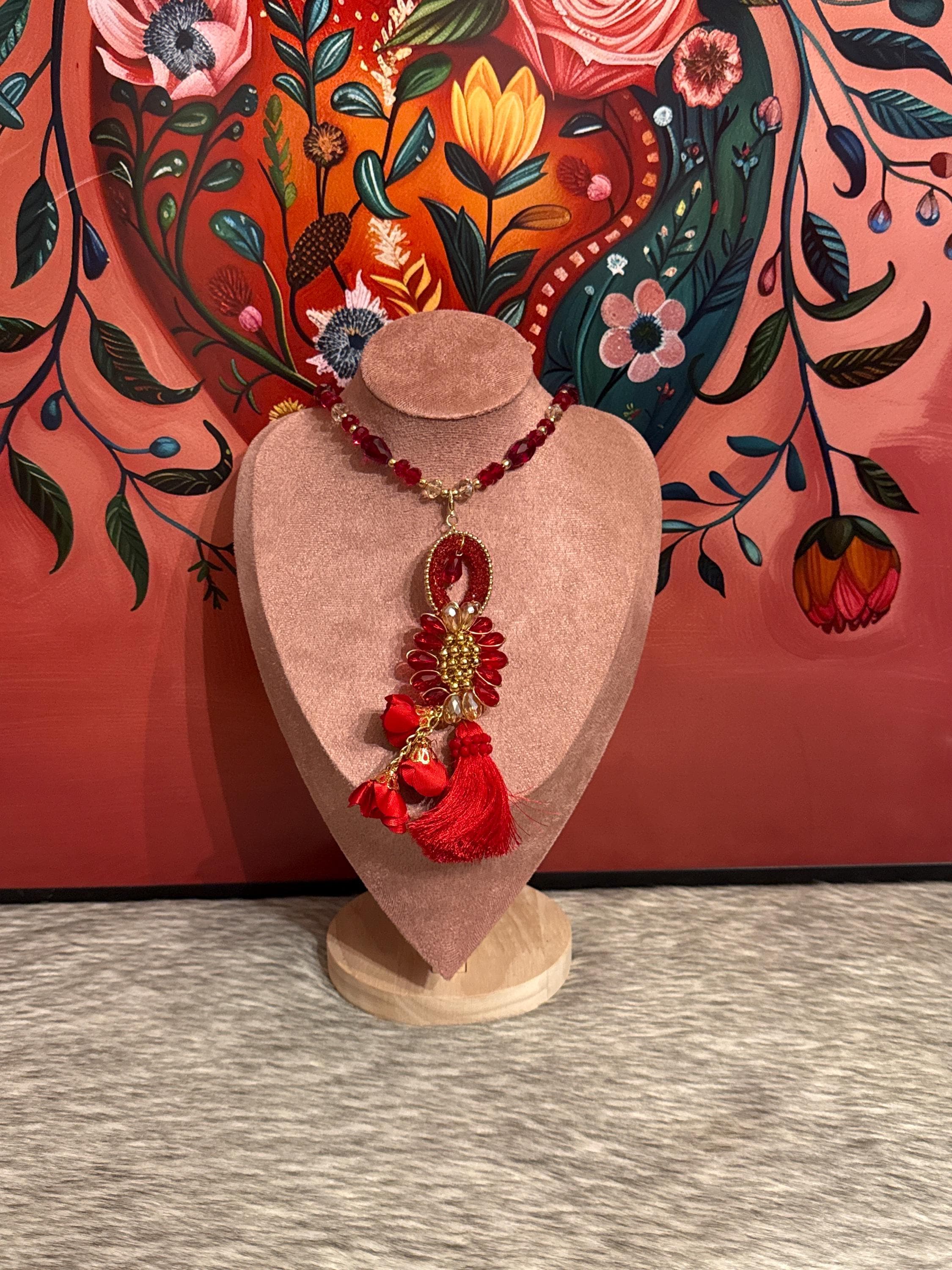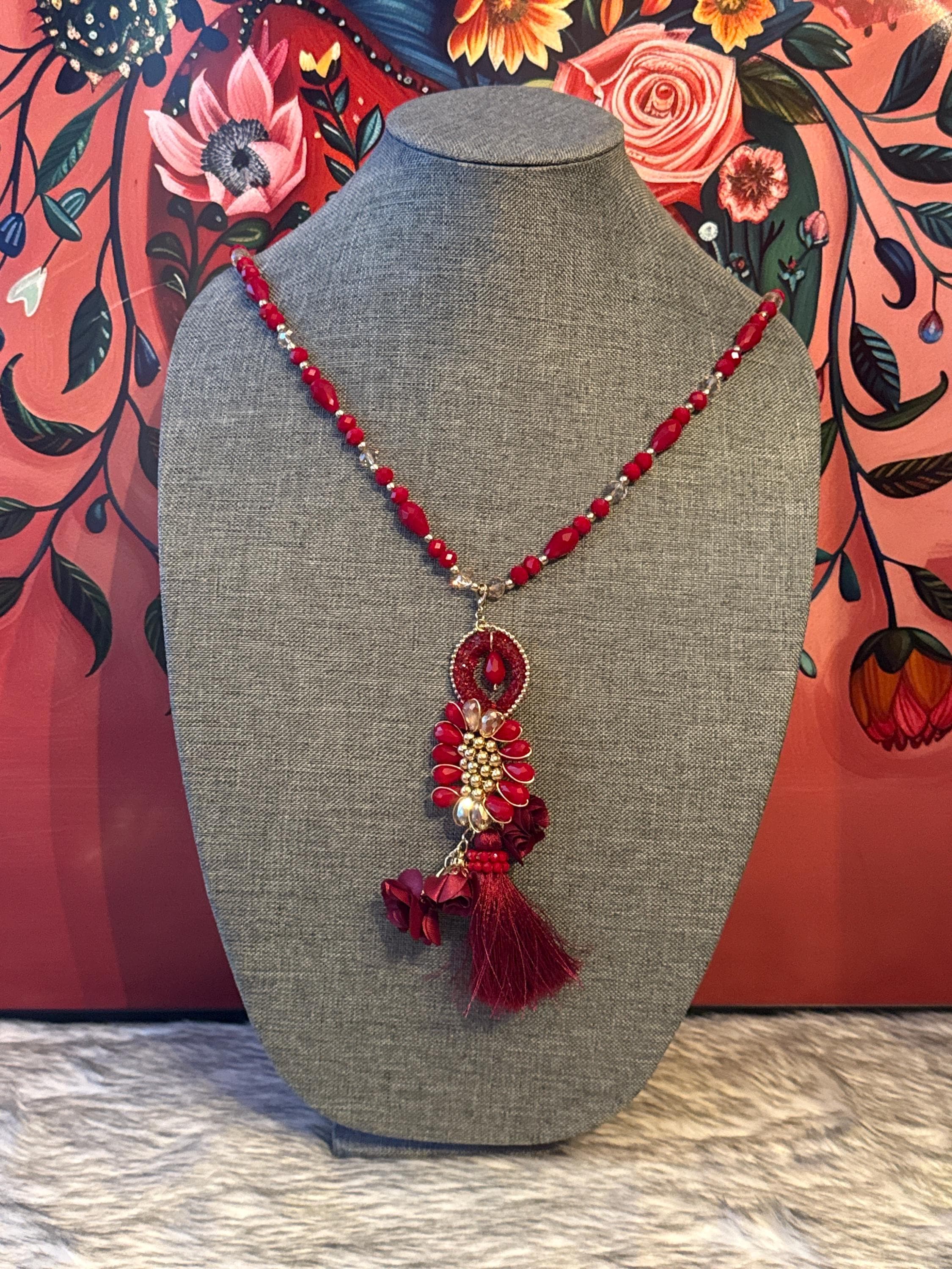 Beautiful 8-in-1 necklace and 4-in-1 earring set, made with Czech crystal and silk flowers and specks, worked using the wire wrap technique, materials made of 14k gold plating.