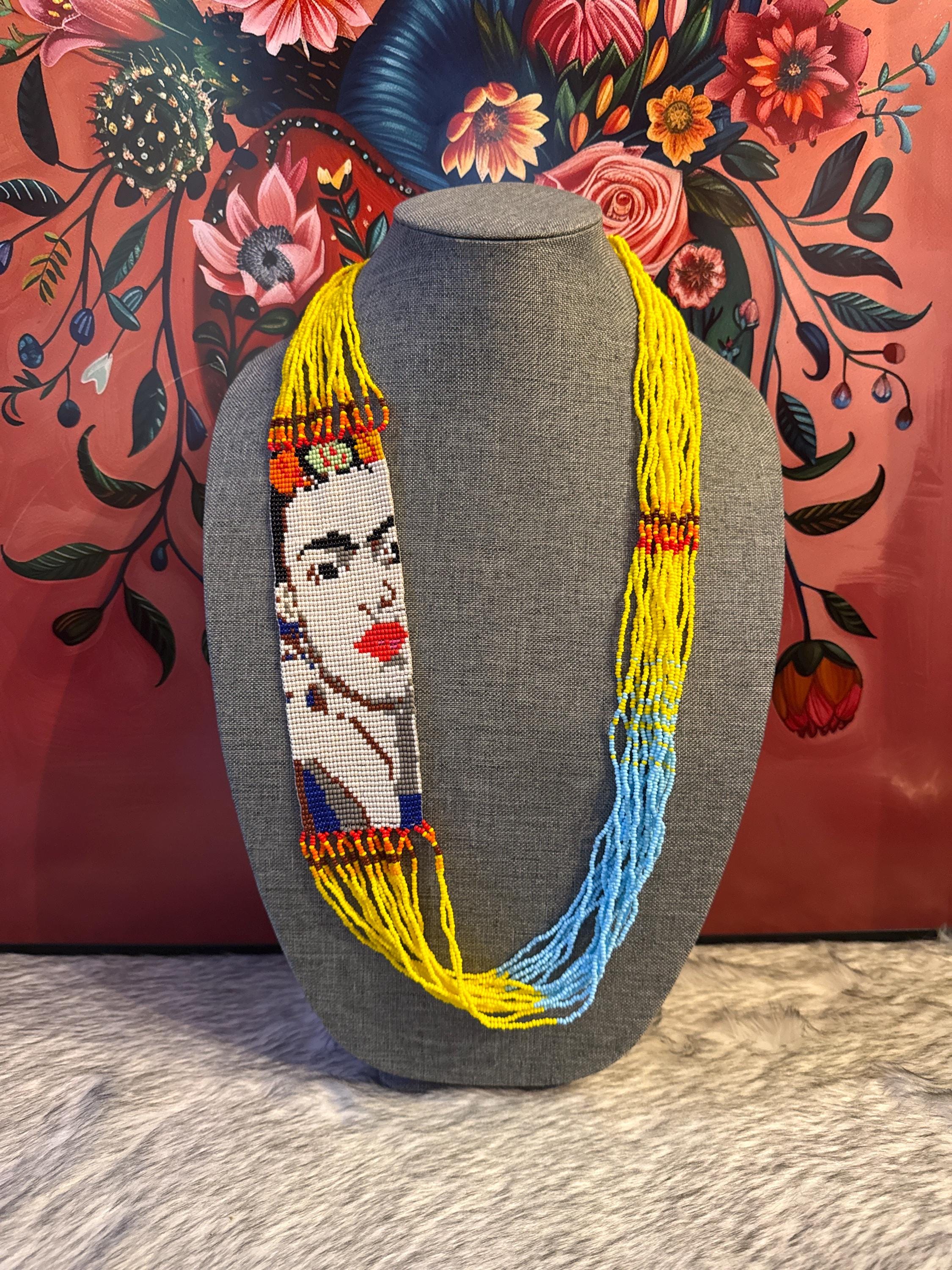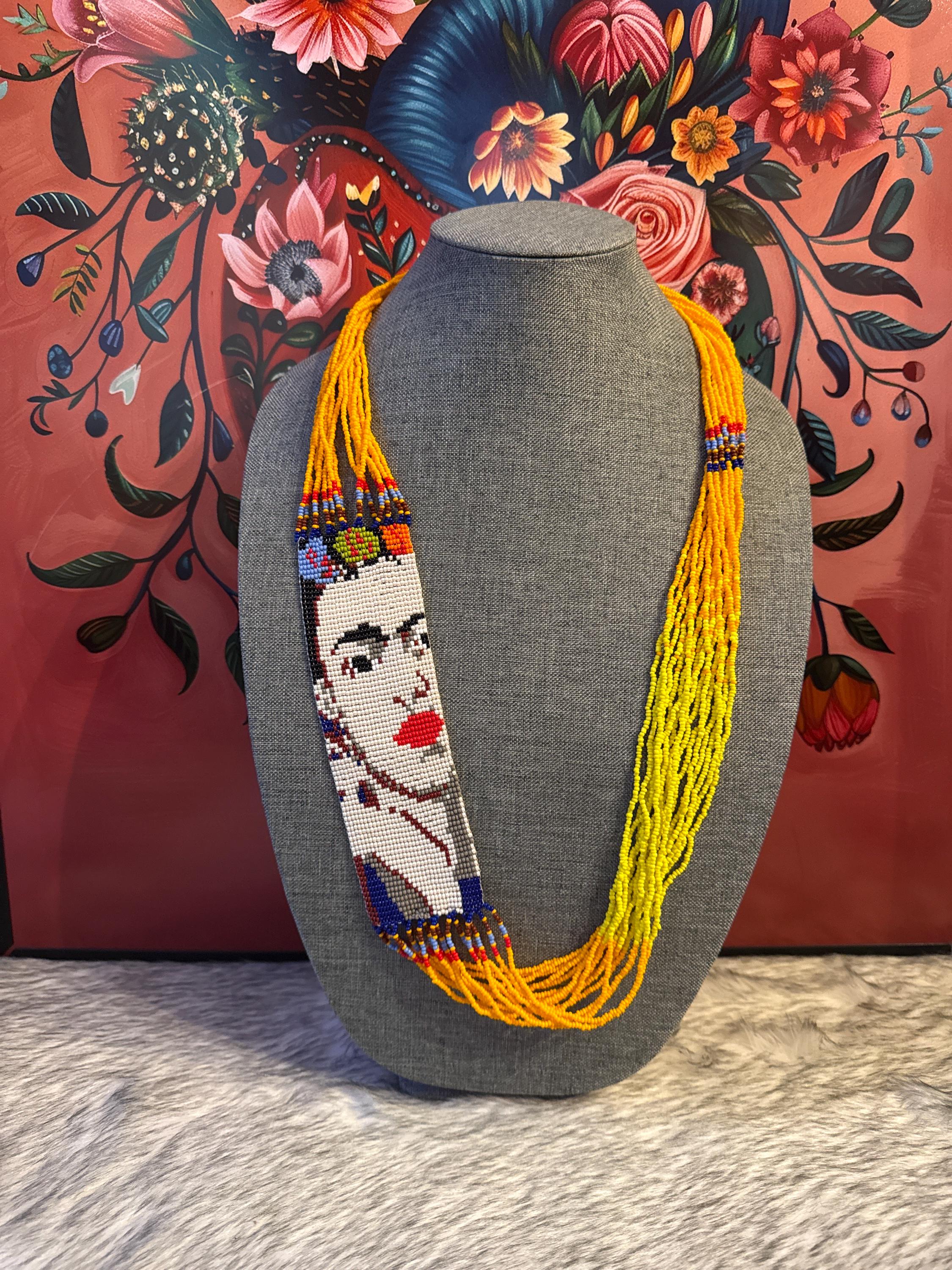 Beautiful Frida necklace made with beads by Mexican artisans.