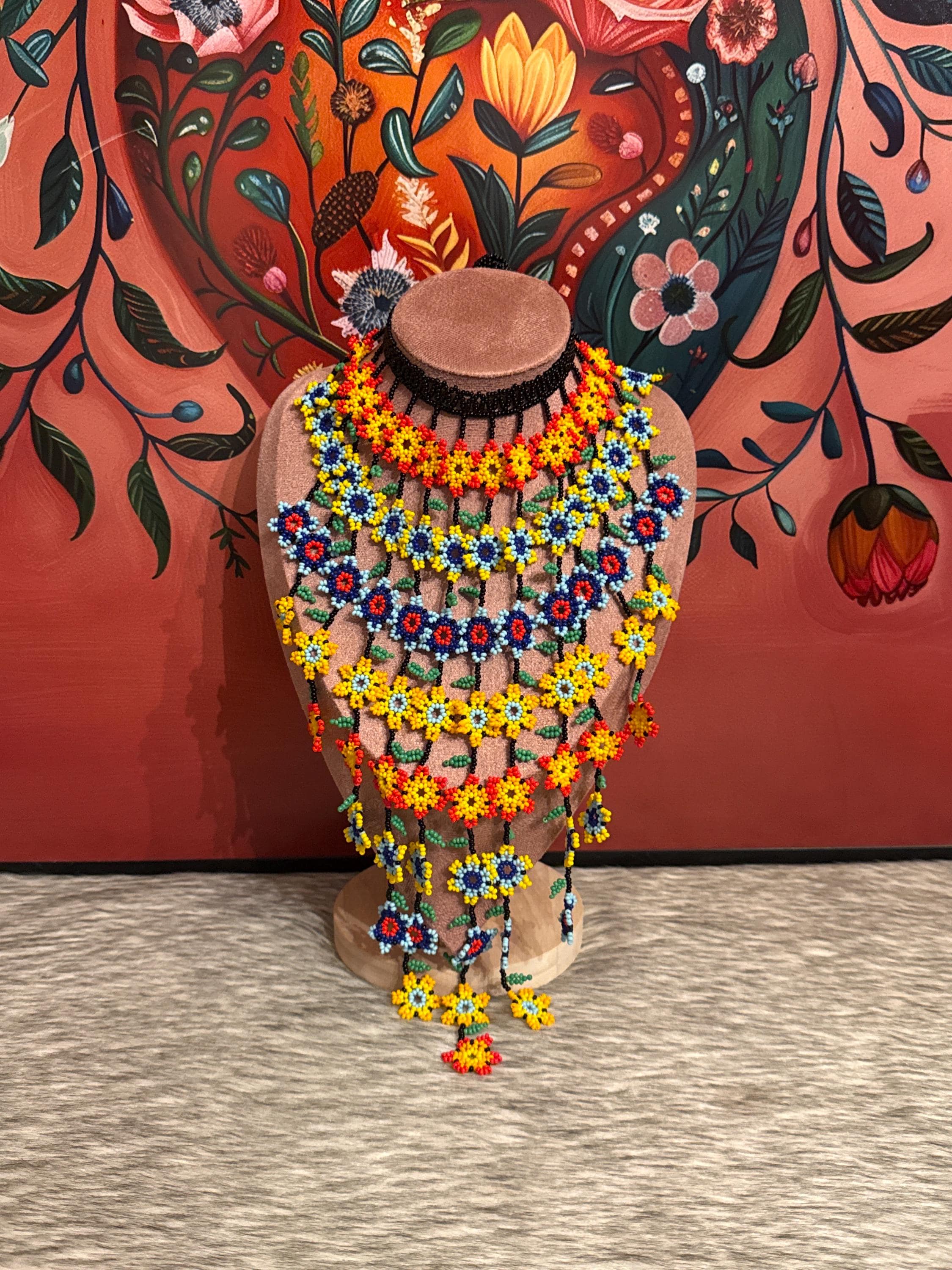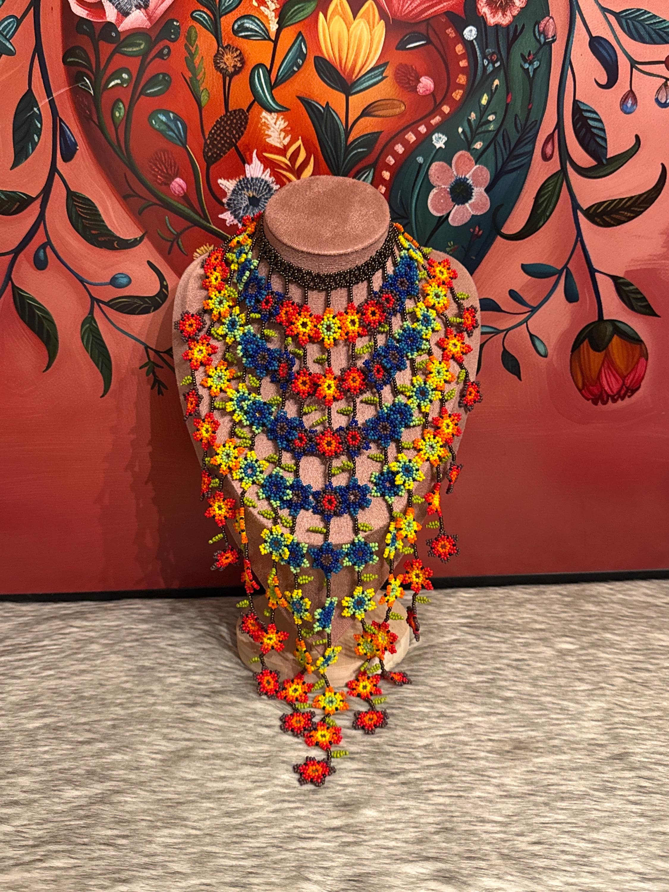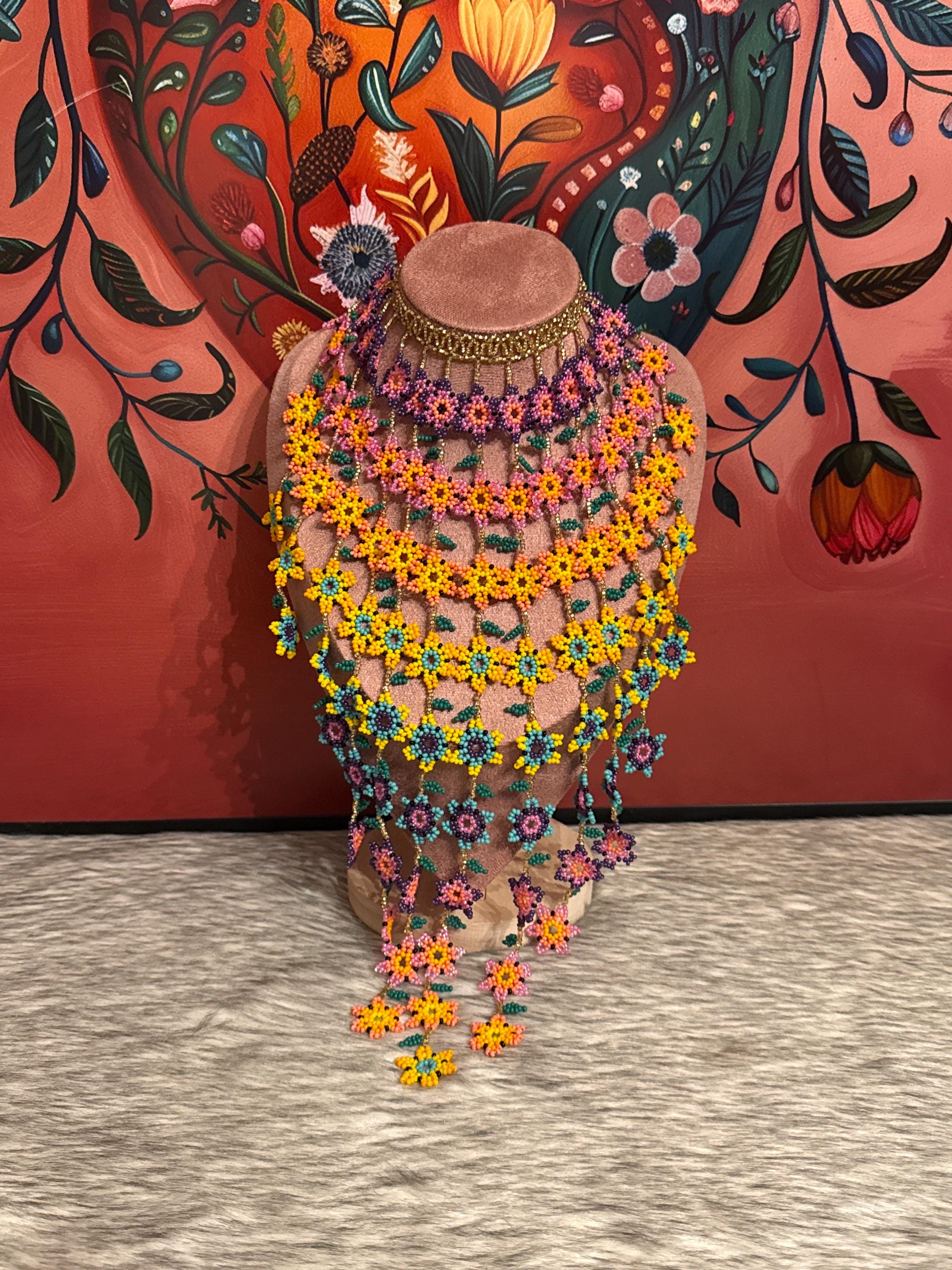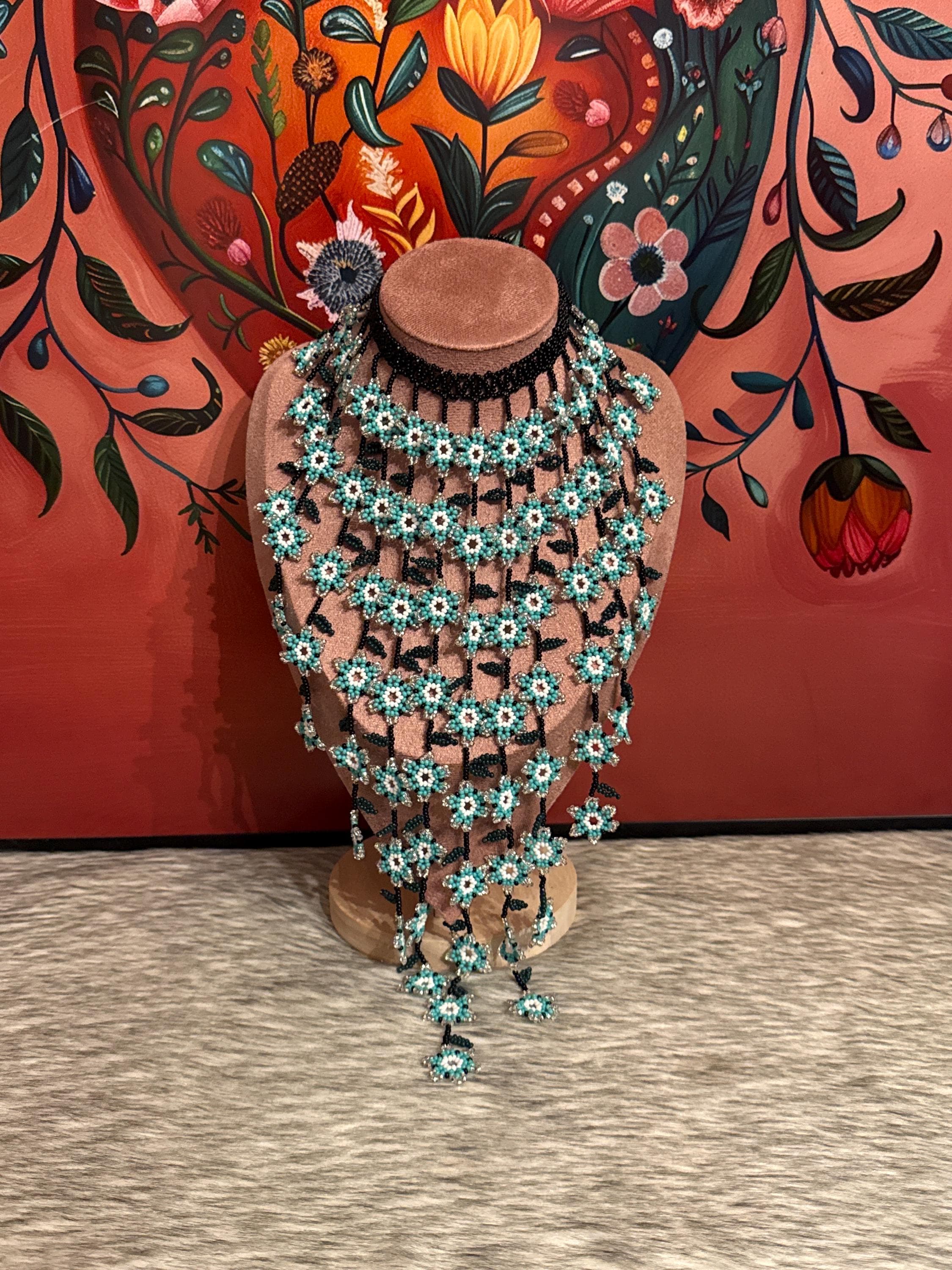 Beautiful waterfall necklace of flowers handmade by Mexican artisans.