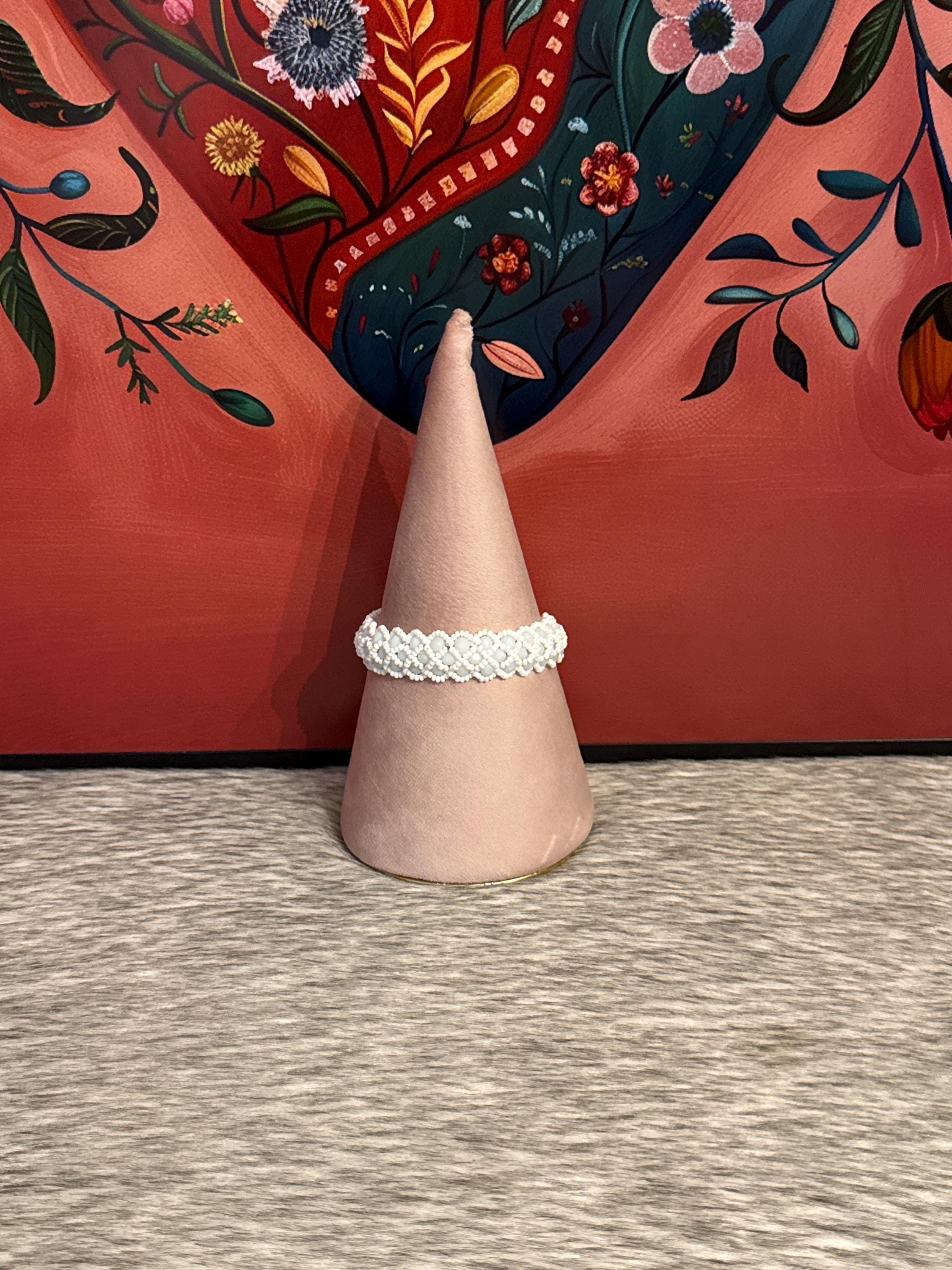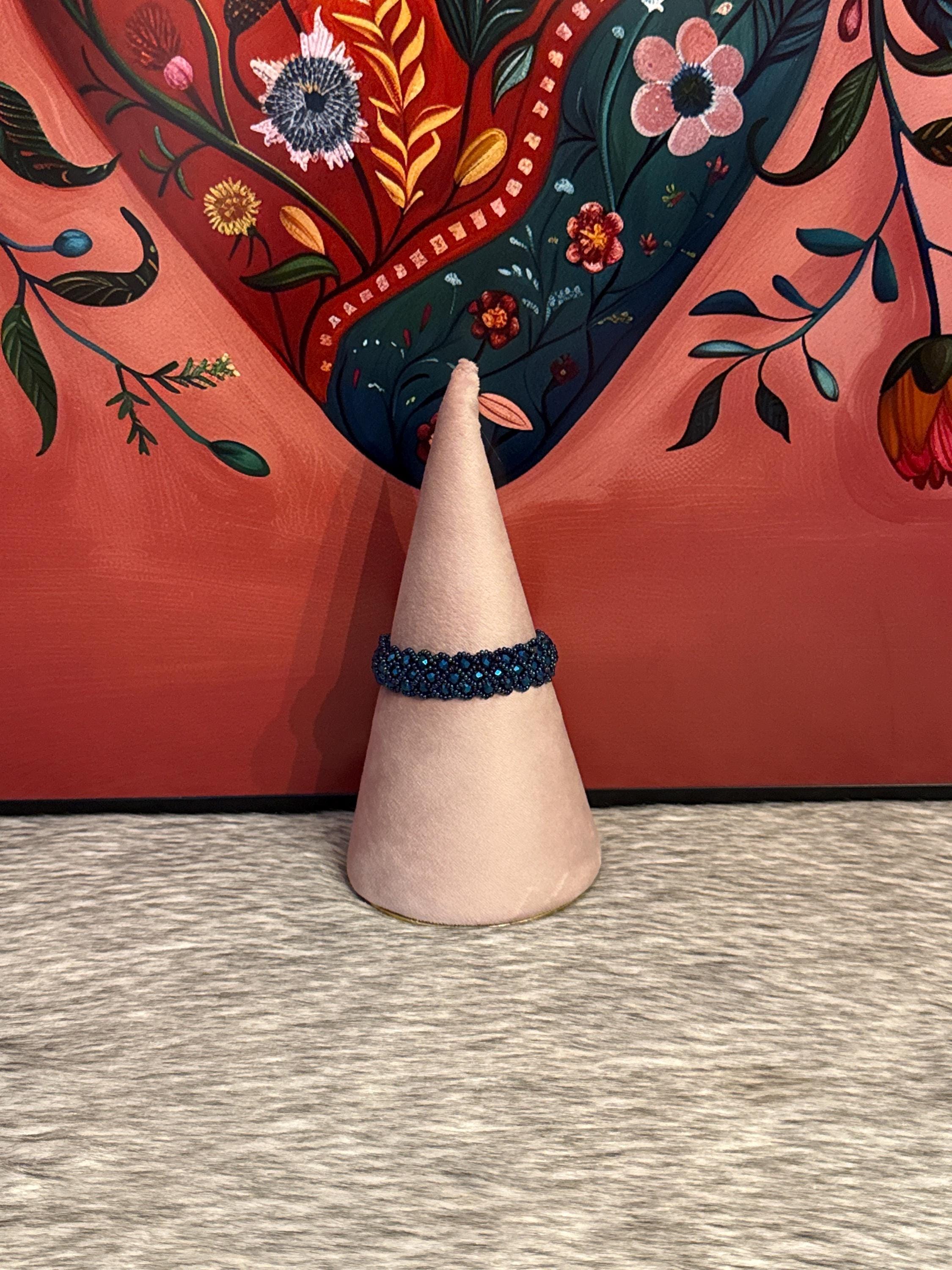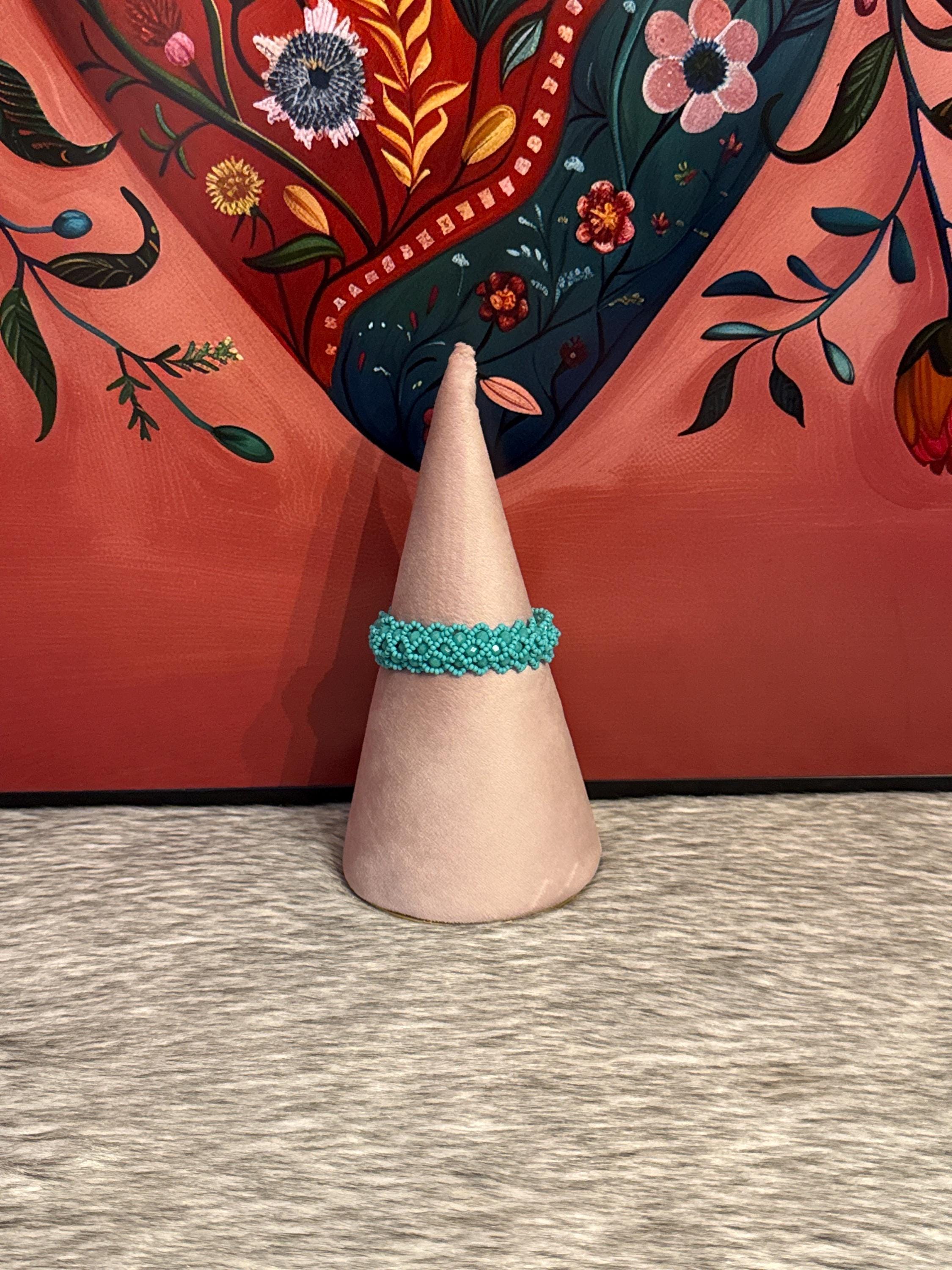 Beautiful intertwined bracelets with glass and seed beads, the bracelets measure approximately 7 inches long.