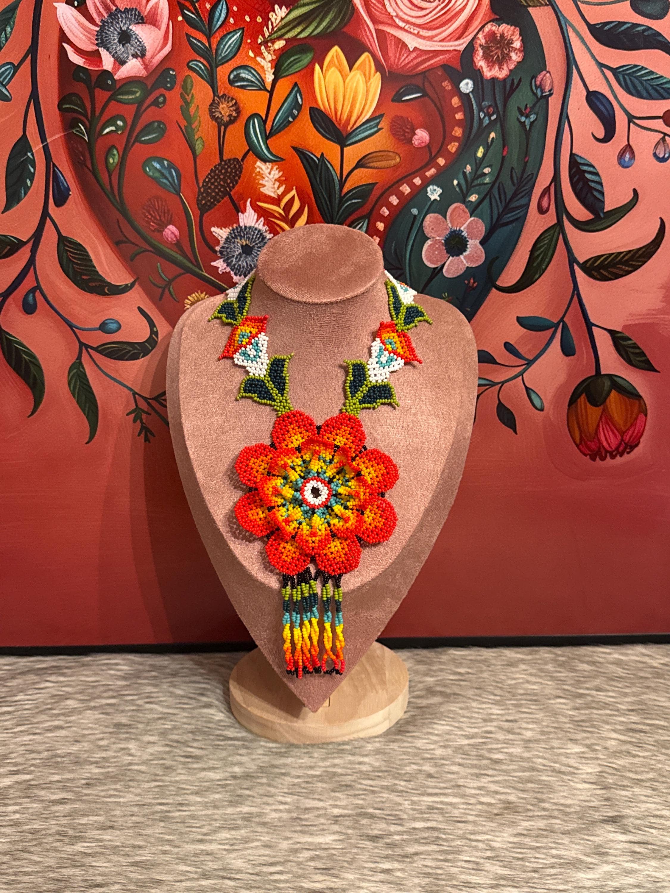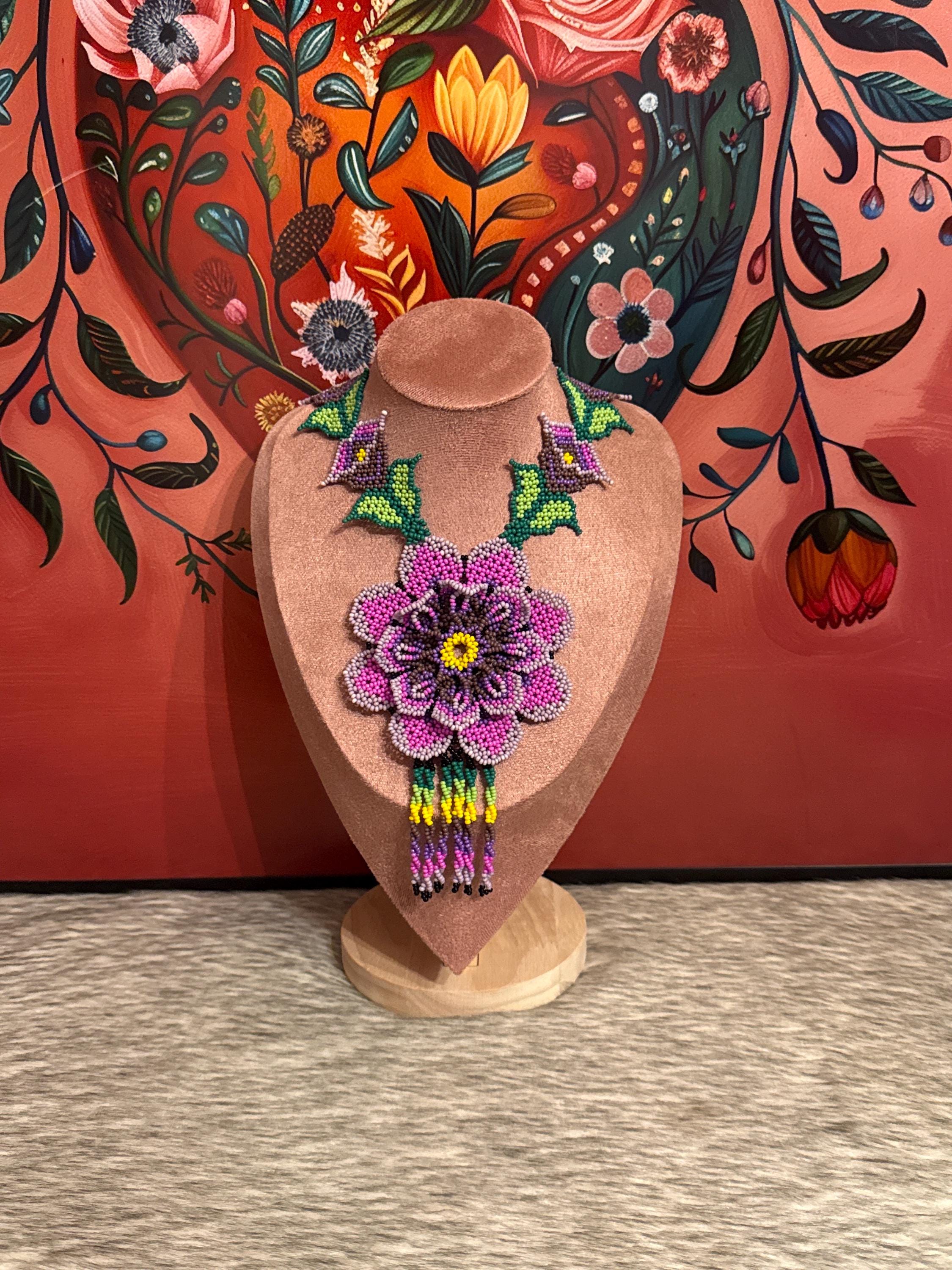 Beautiful large 3D flower necklaces, handmade with beads by Mexican artisans
