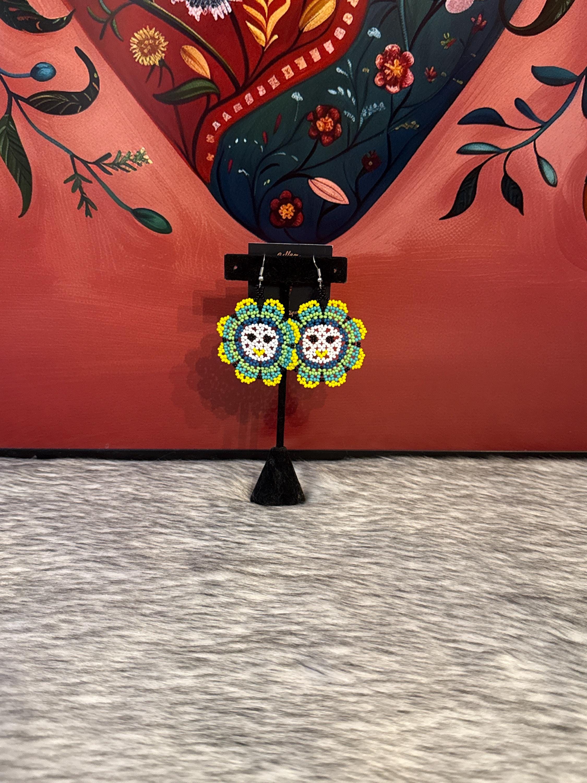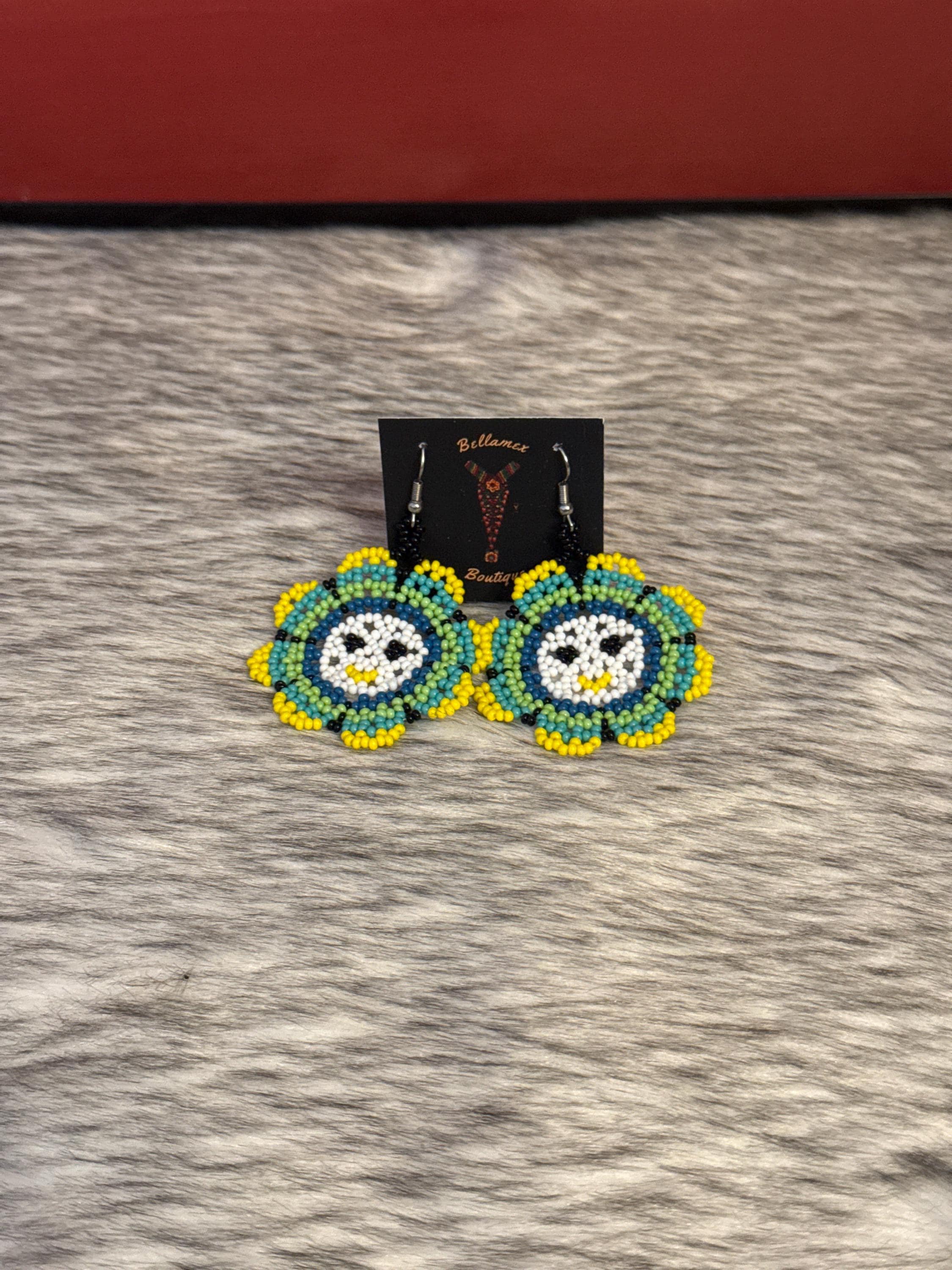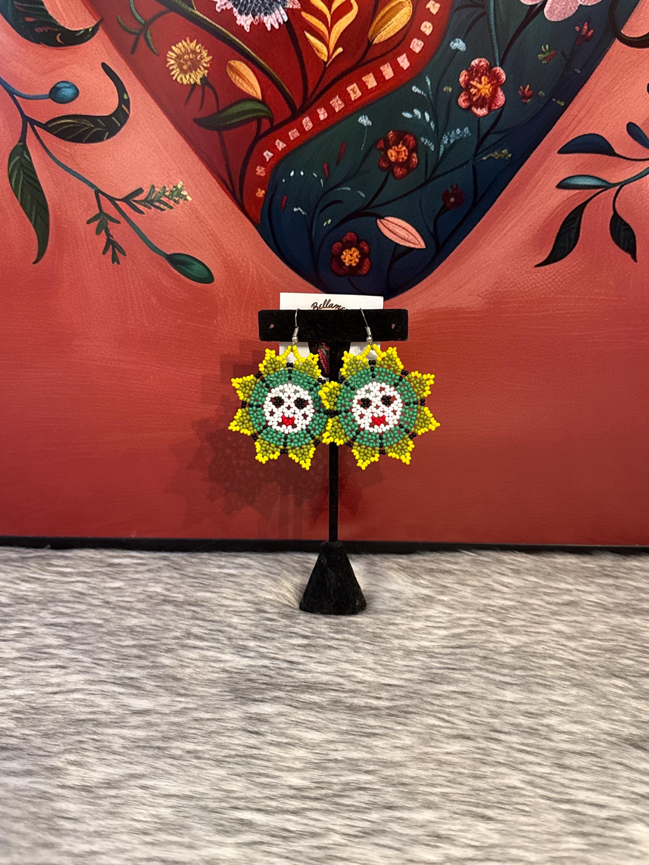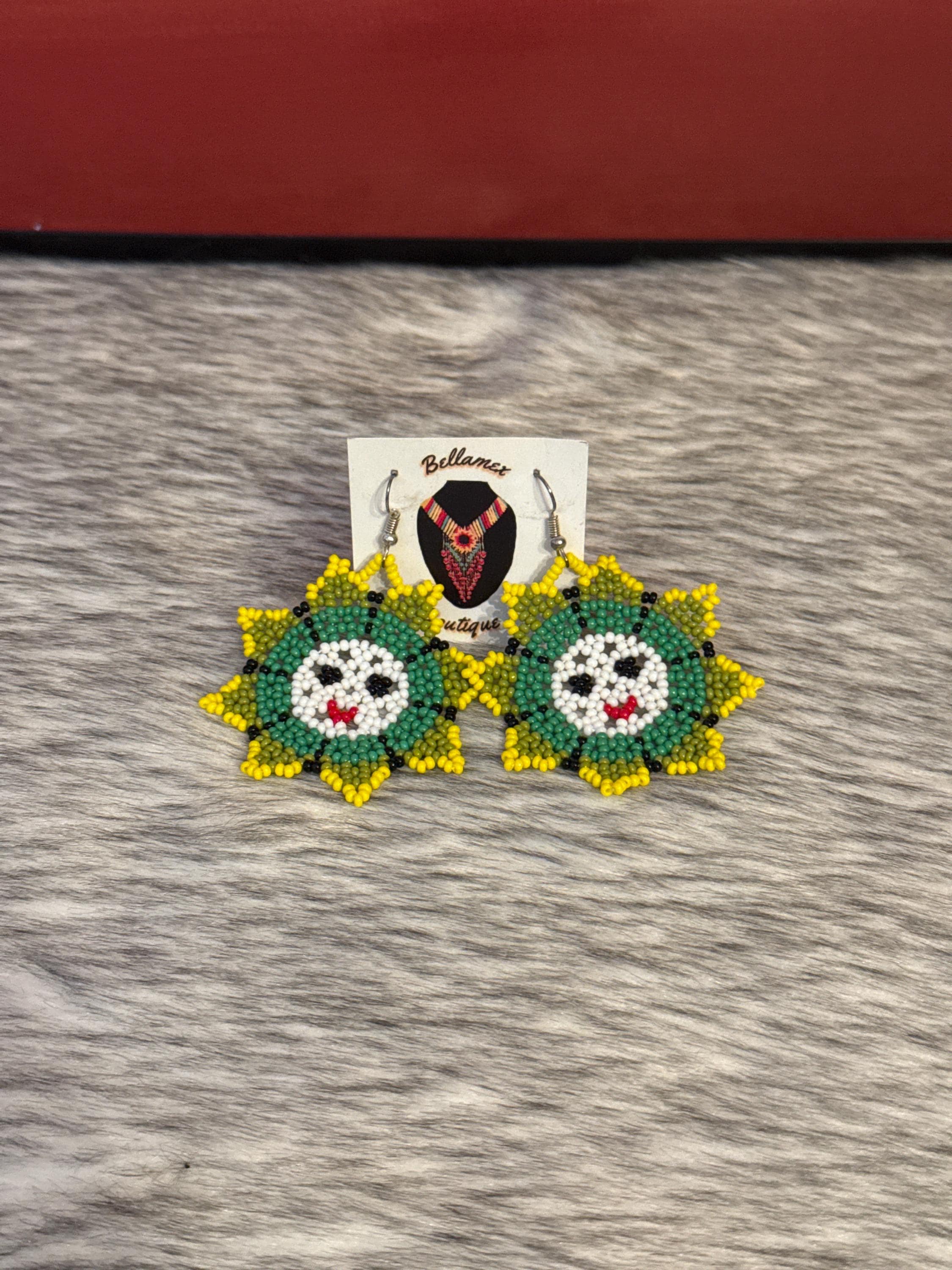 Beautiful sun-shaped earrings made with seed beads by Mexican artisans.
