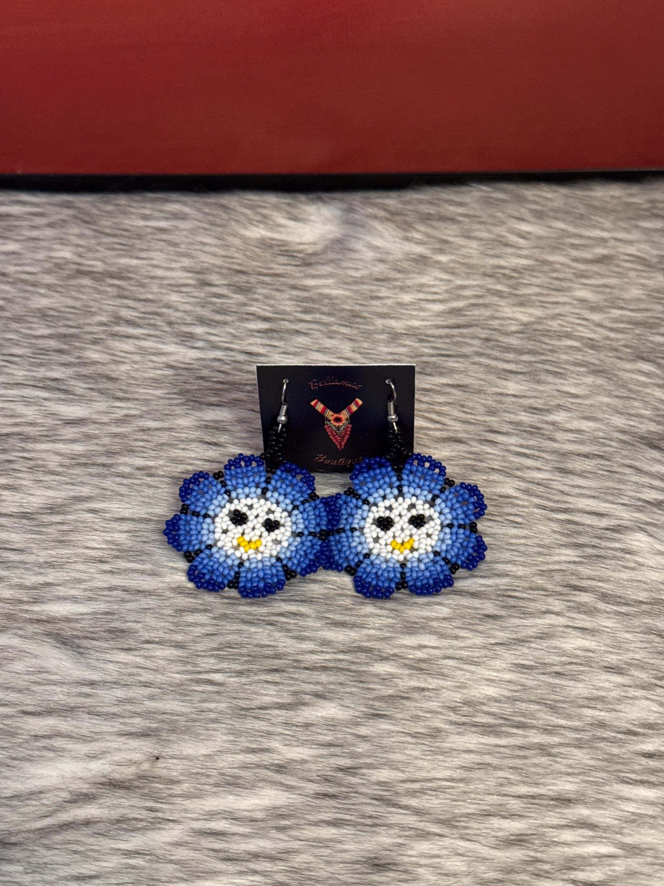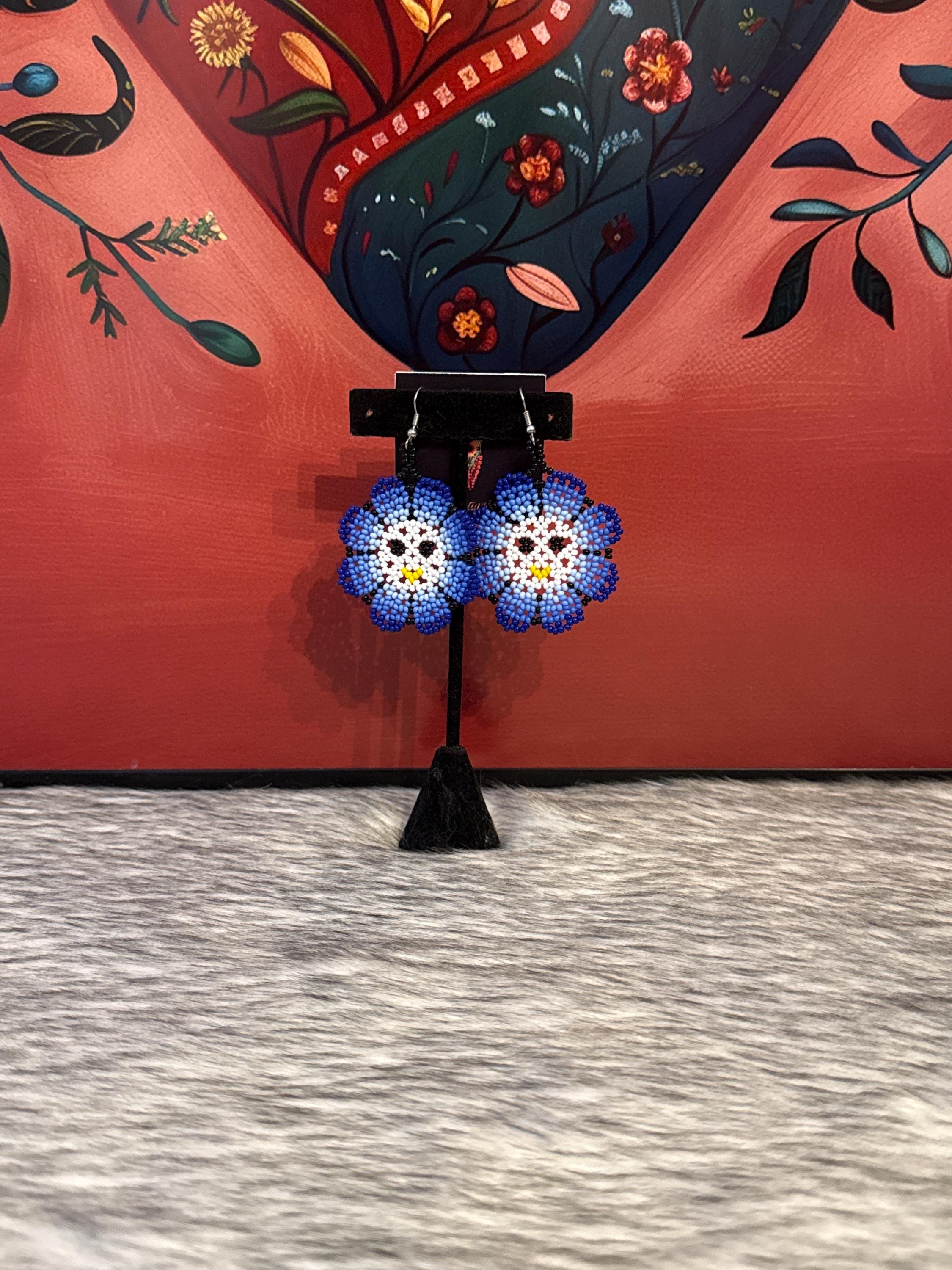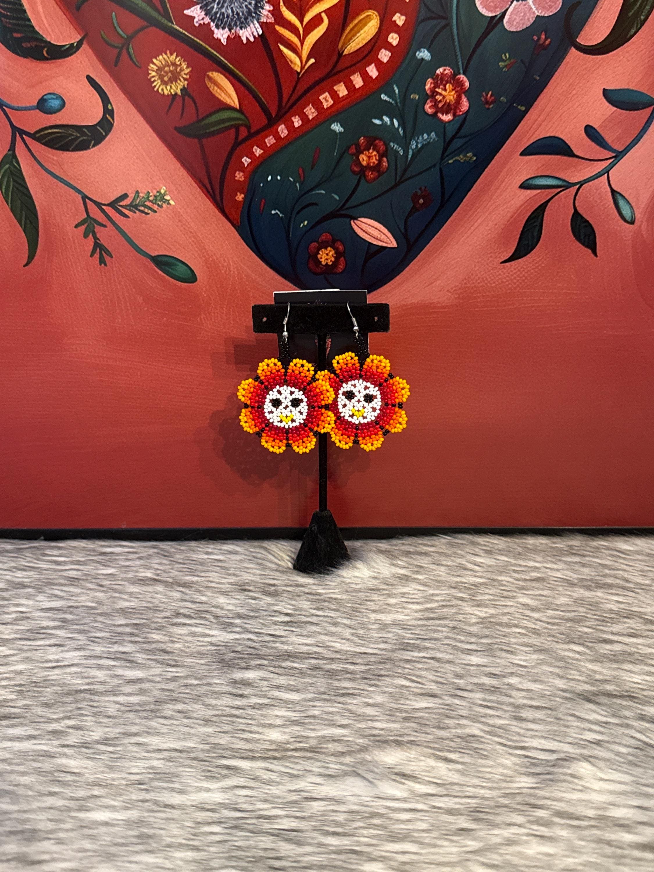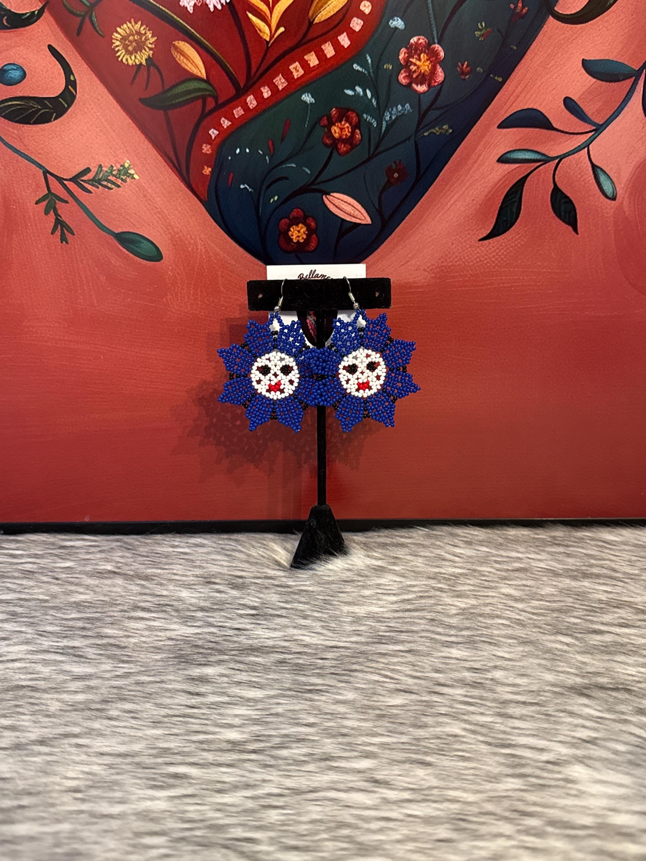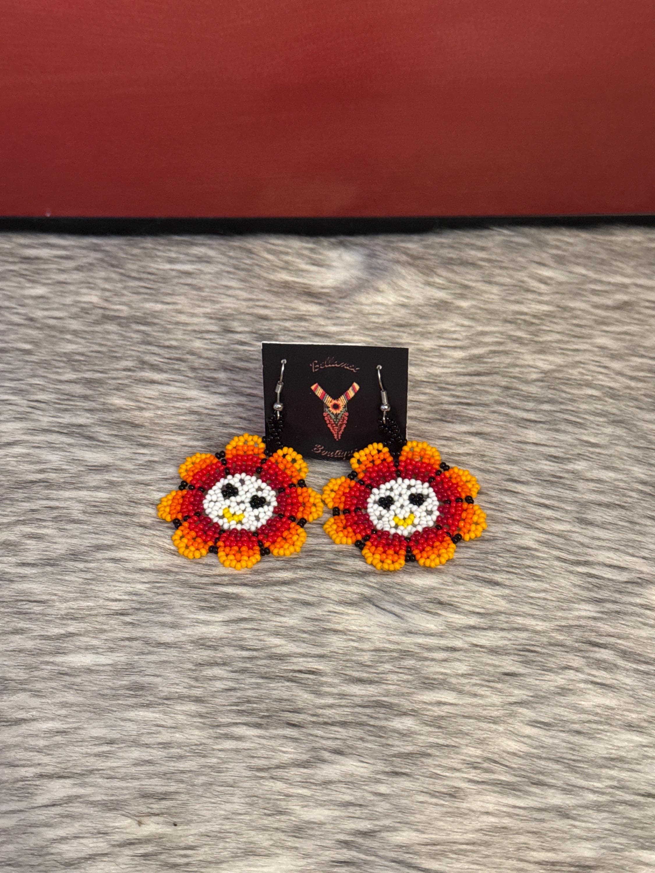 Beautiful sun-shaped earrings made with seed beads by Mexican artisans.
