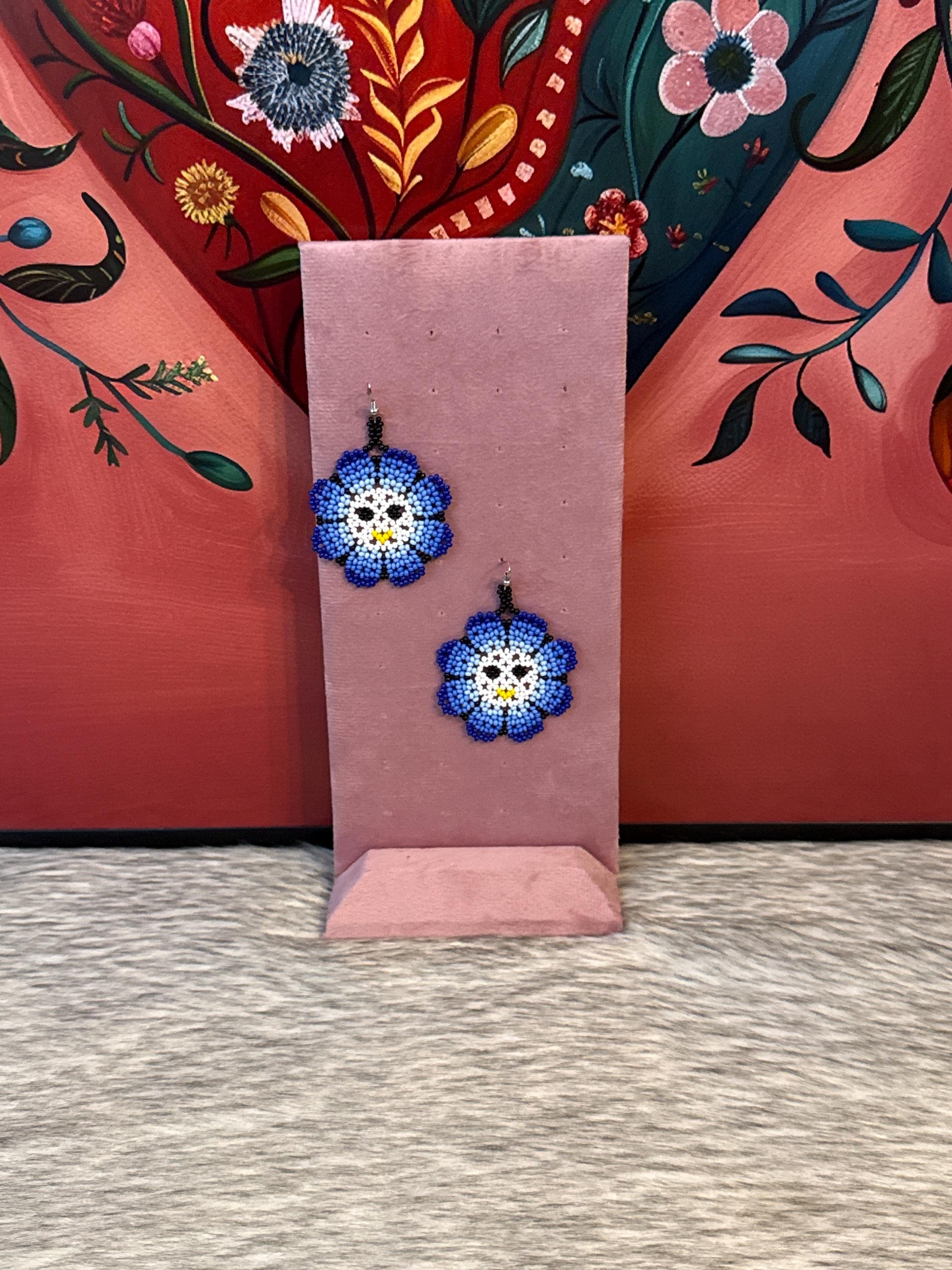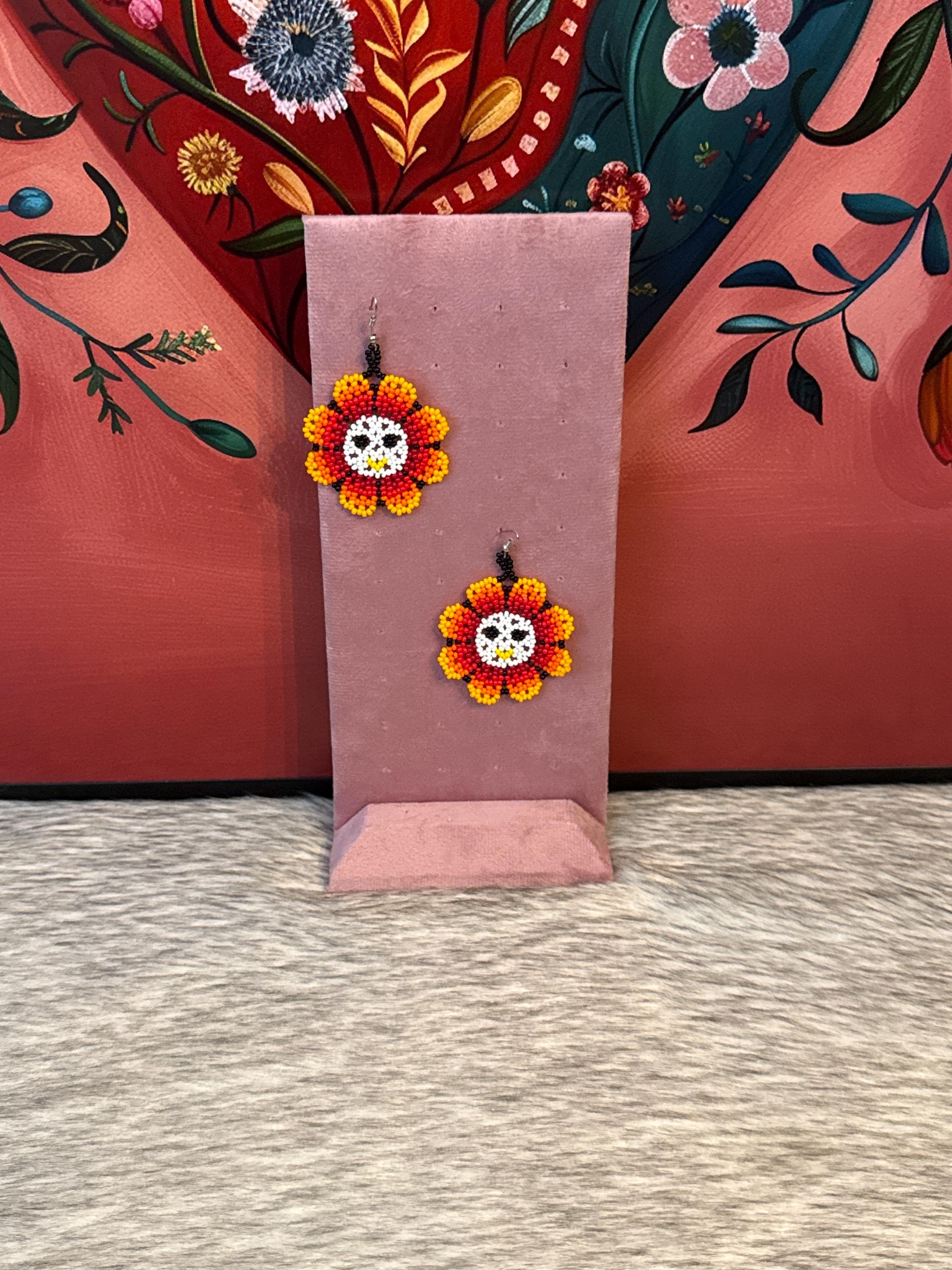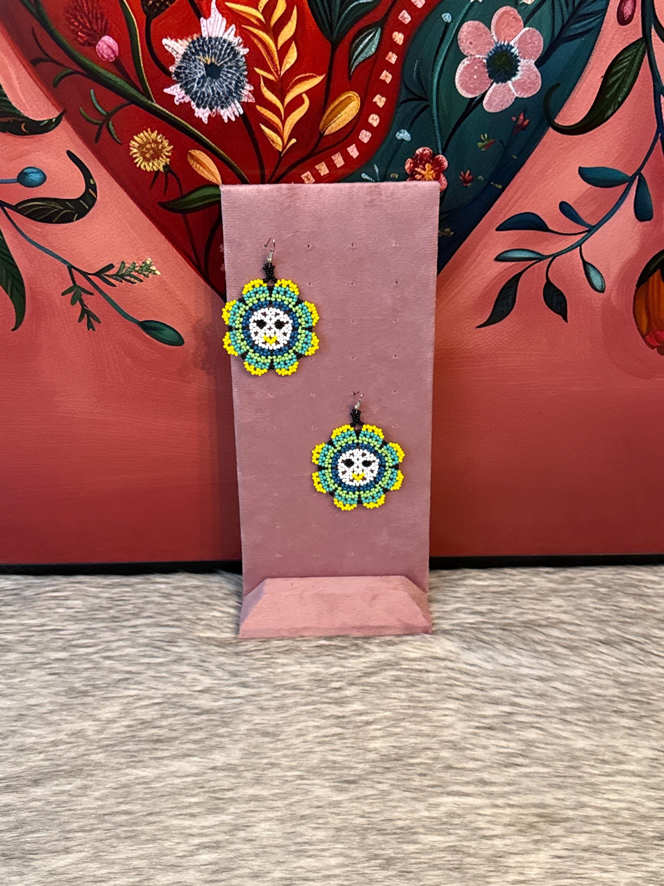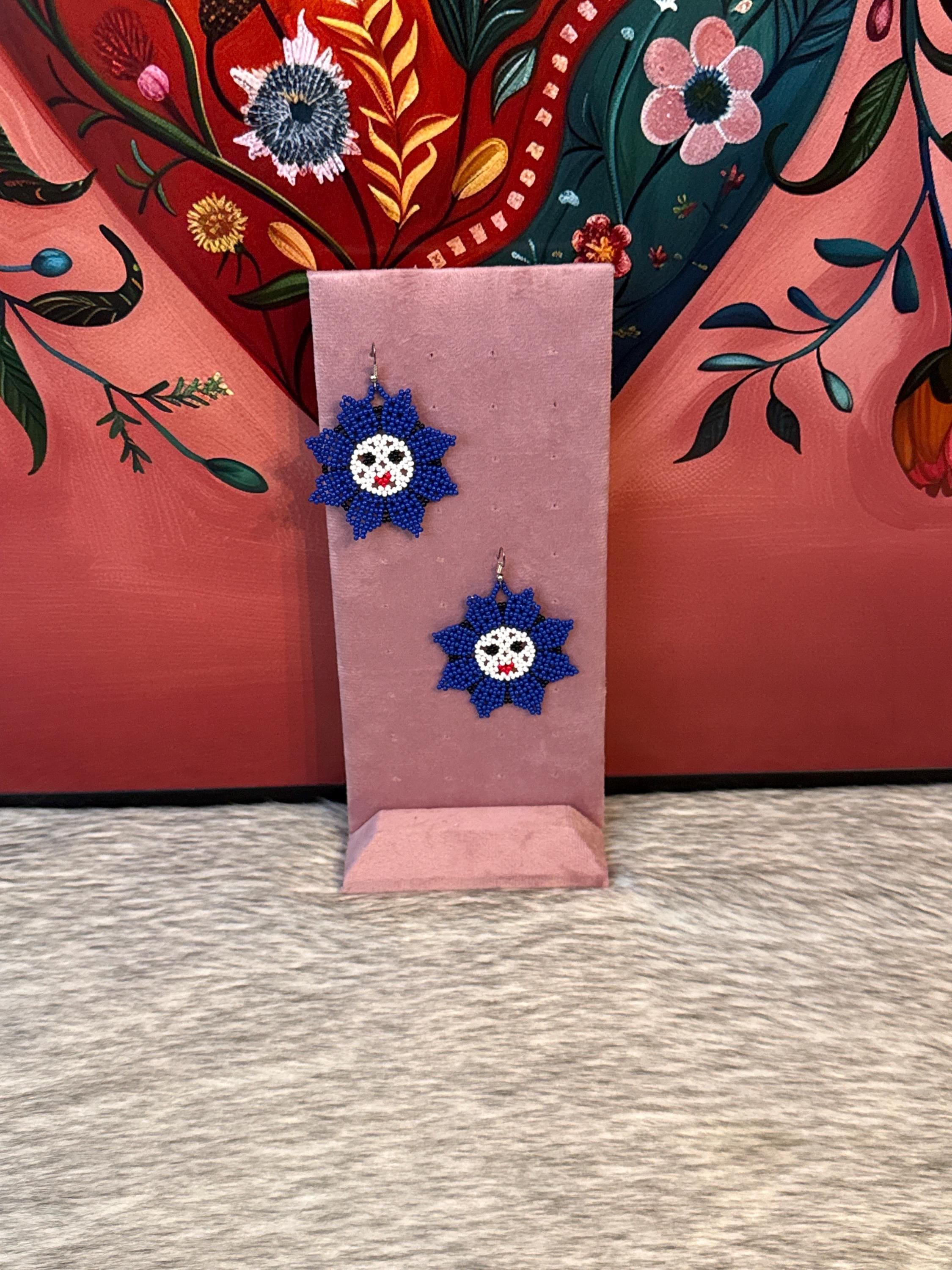 Beautiful sun-shaped earrings made with seed beads by Mexican artisans.