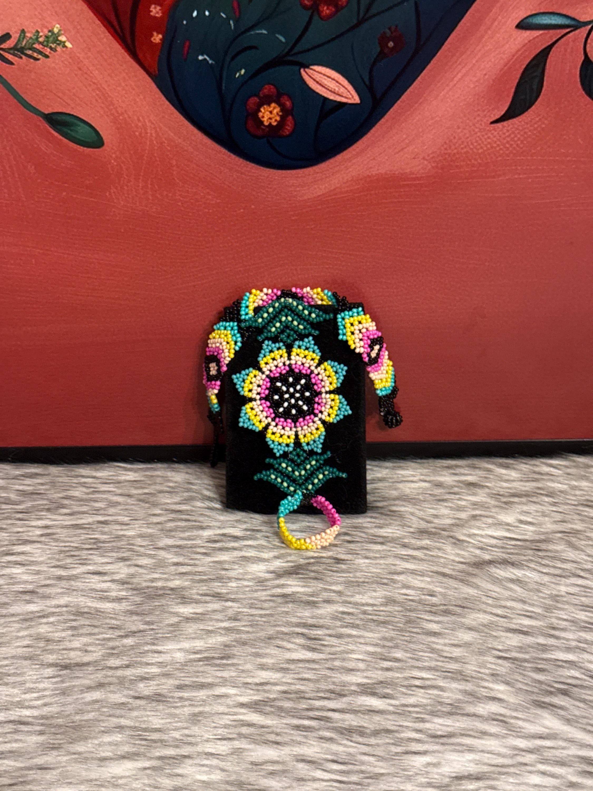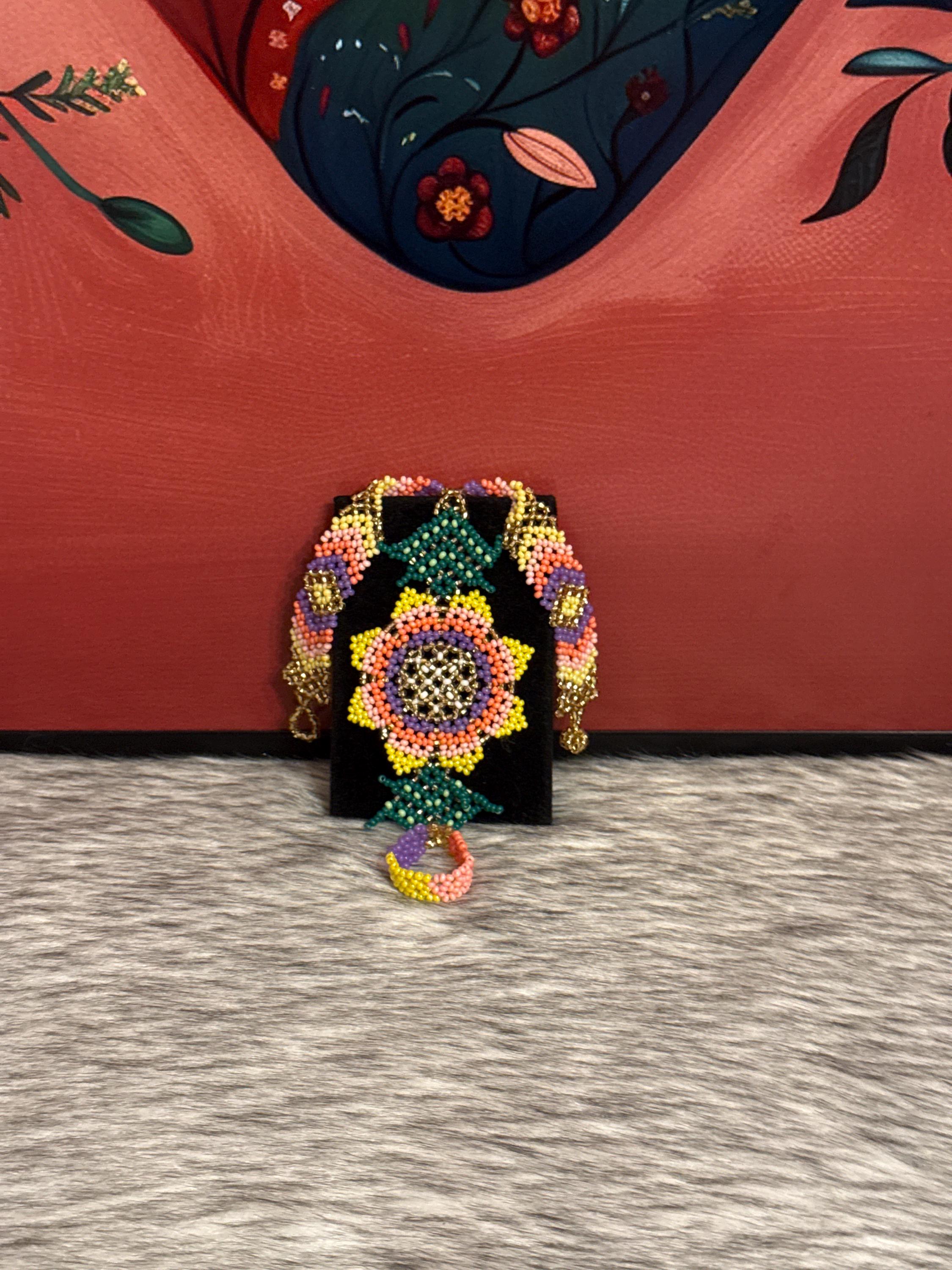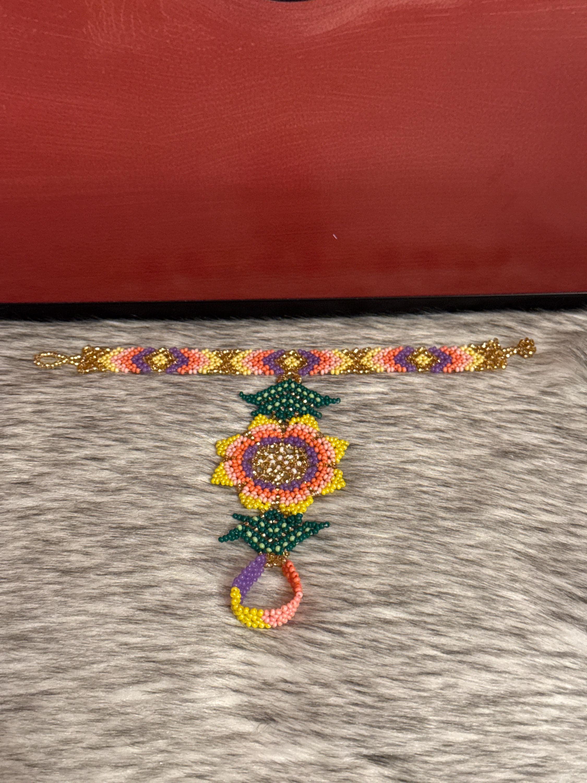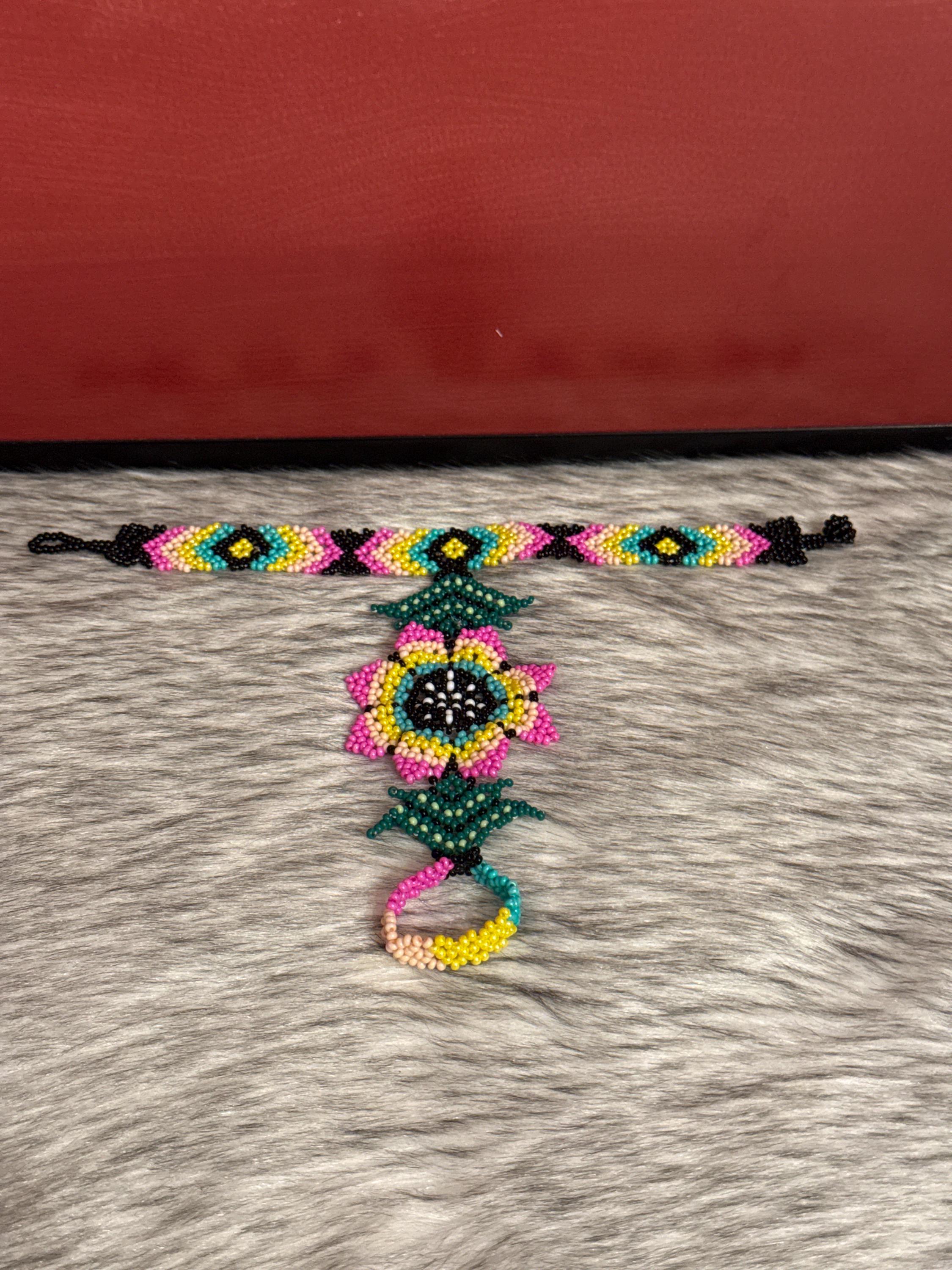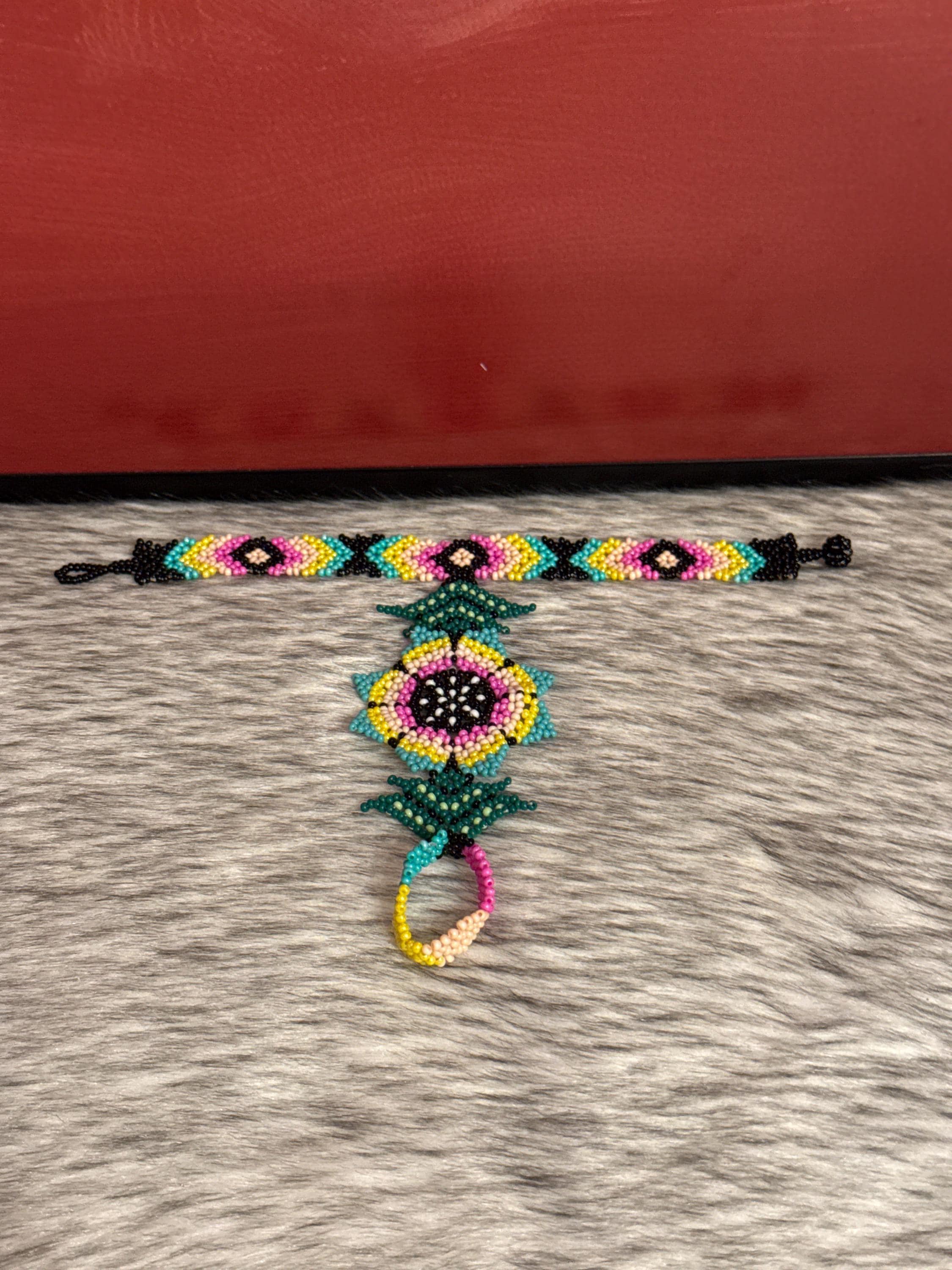 Beautiful flower bracelets with integrated ring, handmade with beads, the bracelets measure approximately 6 to 8 inches long and the rings come in size 8/9 approximately.
