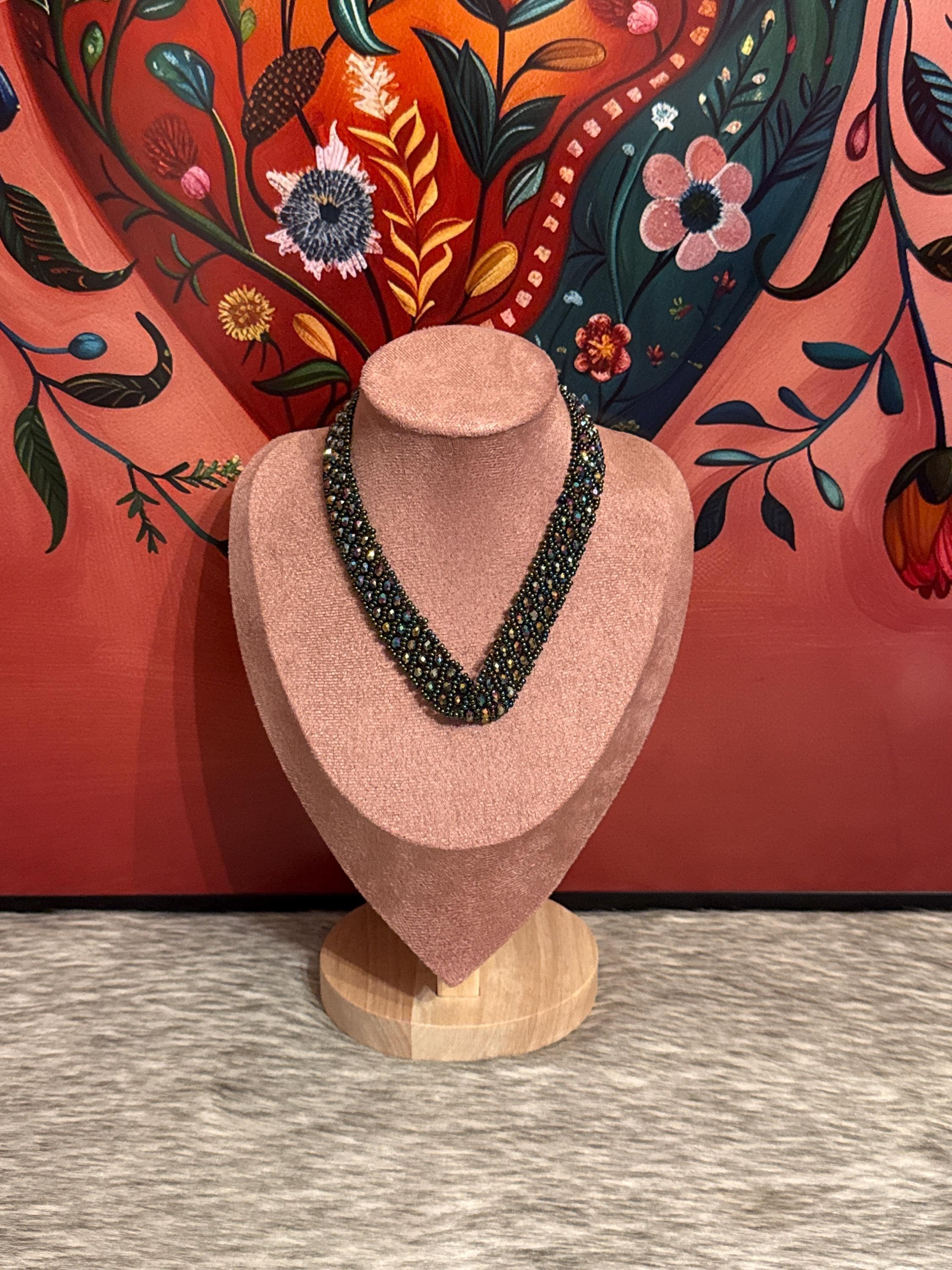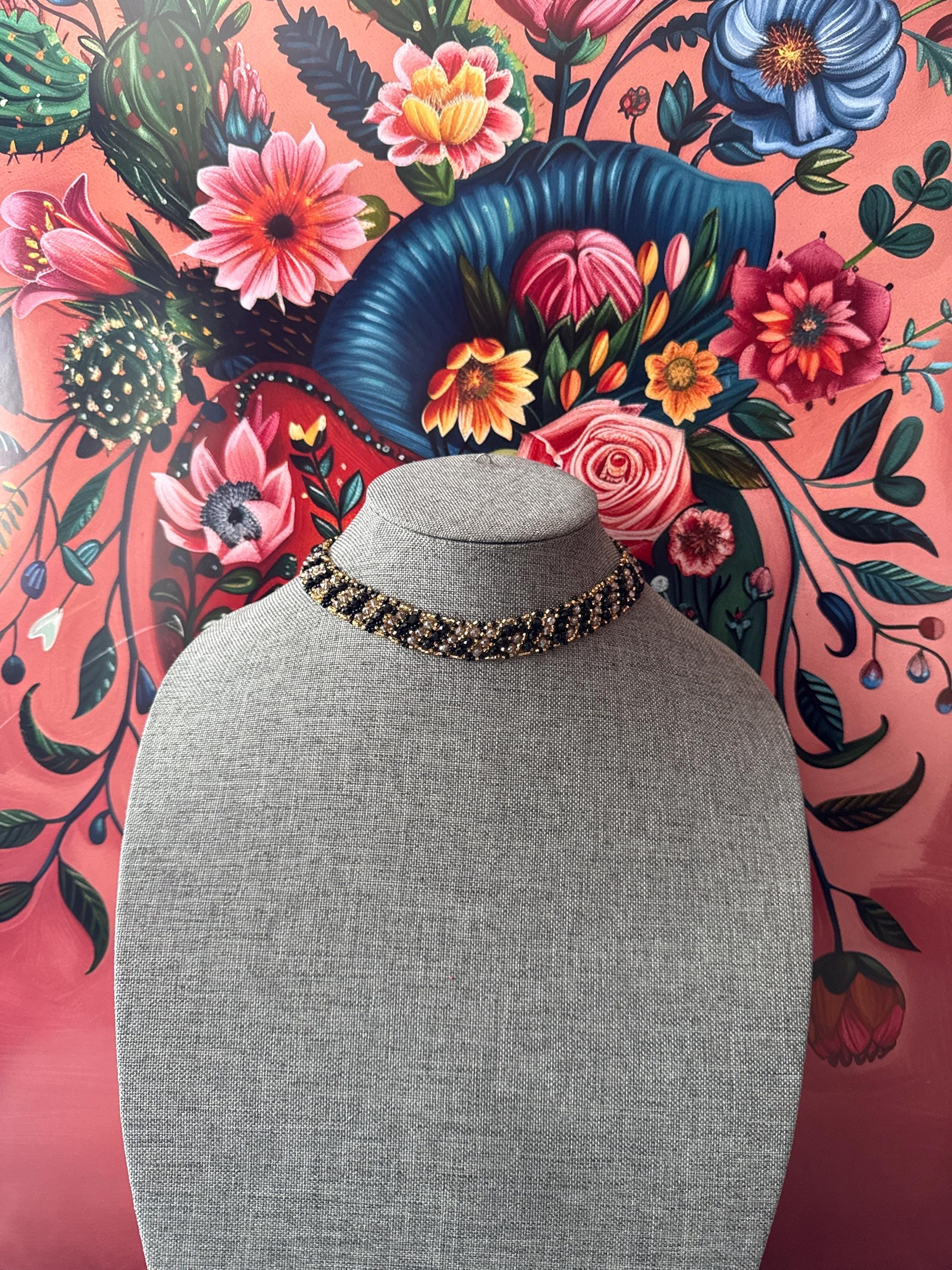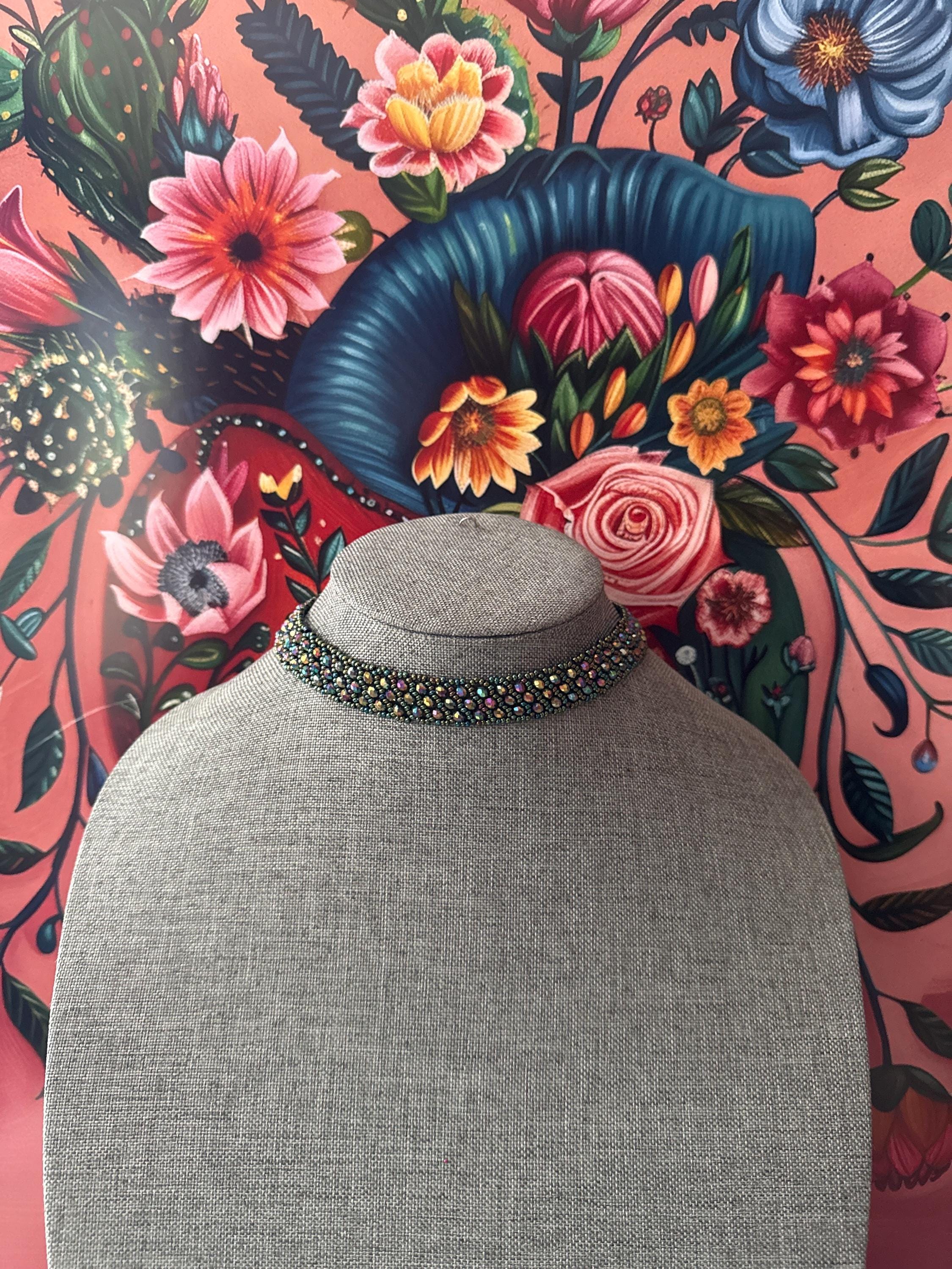 Beautiful choker, bracelet, and earring set made with crystals and beads, handmade by Mexican artisans.