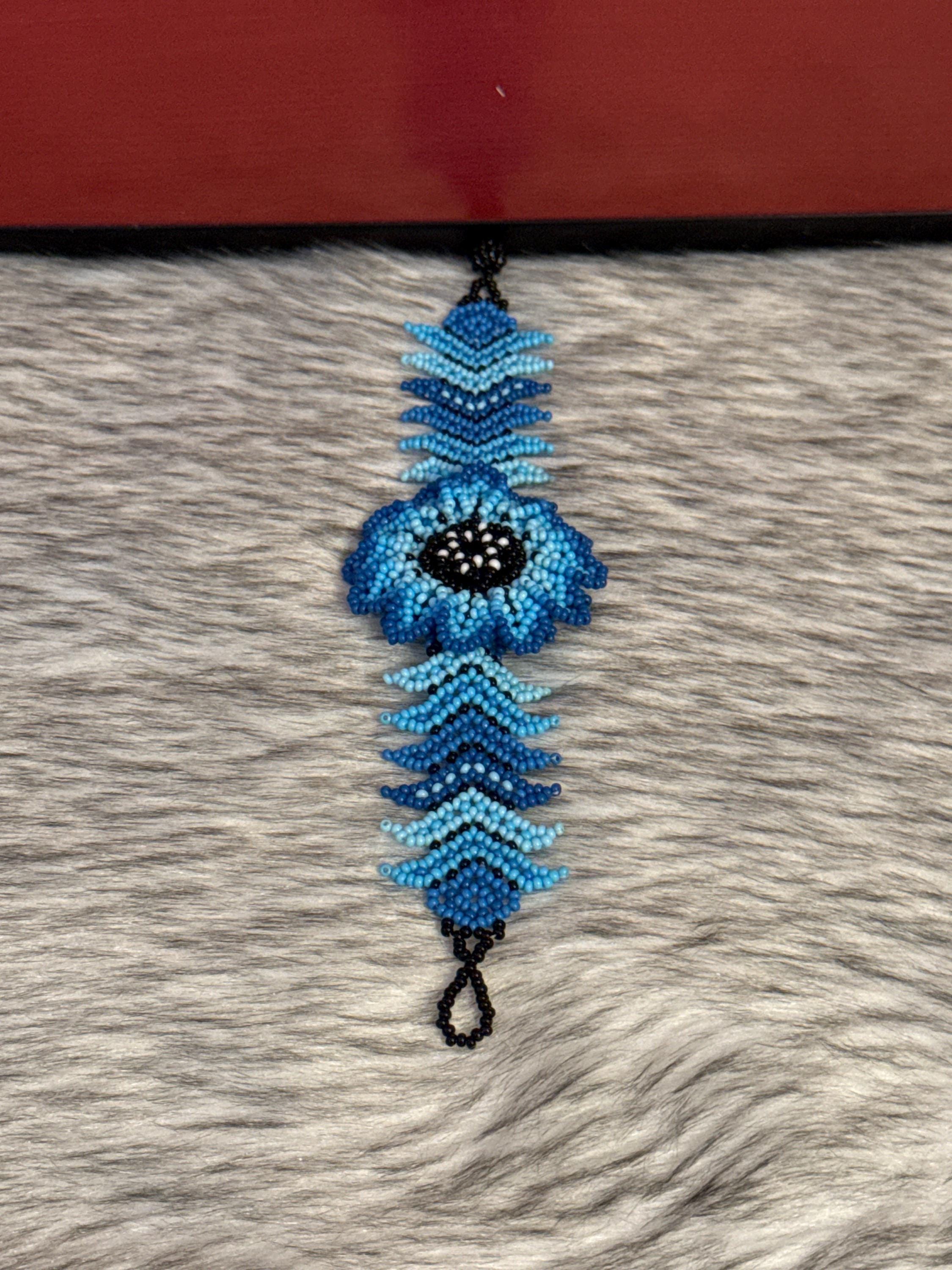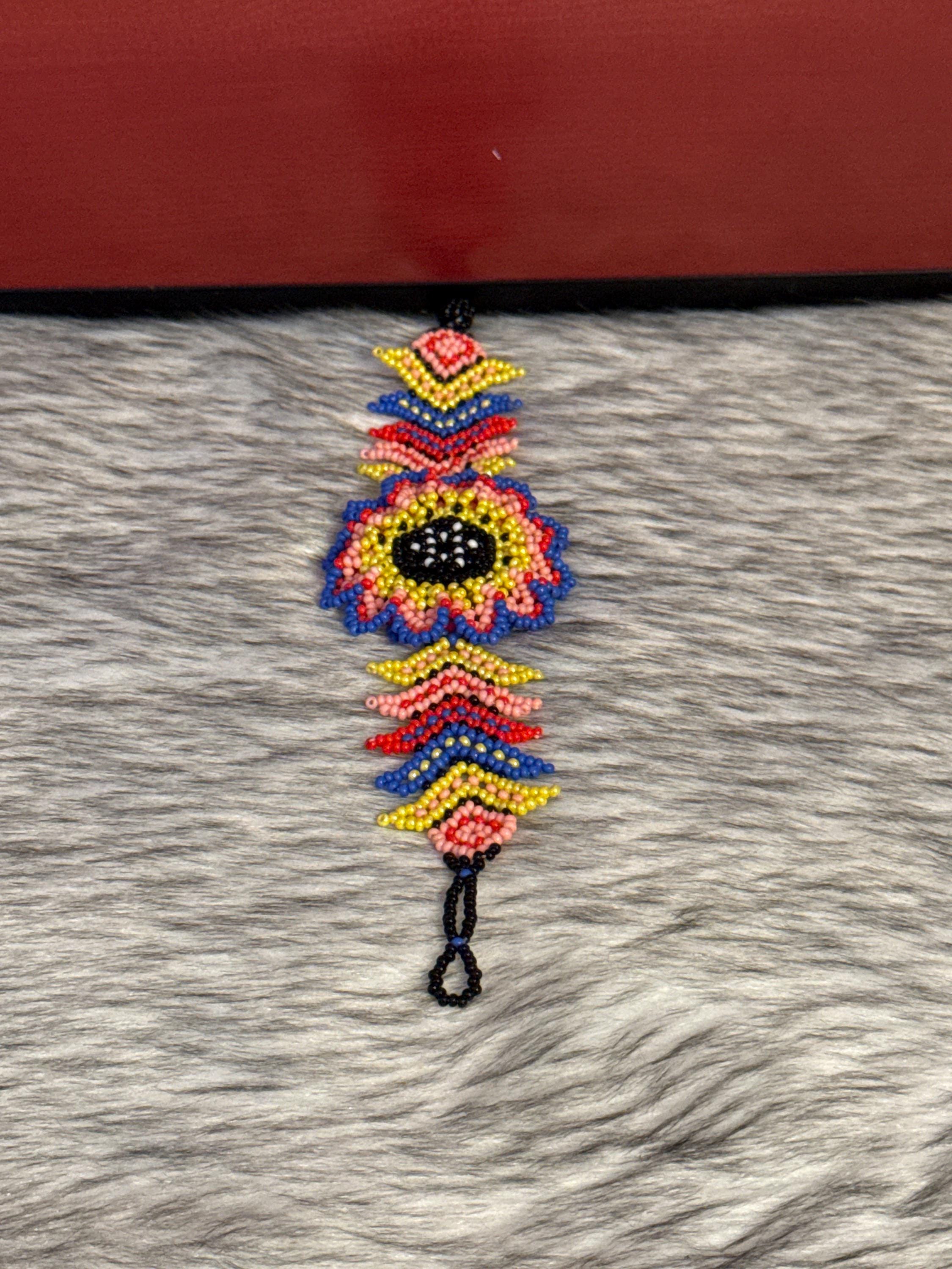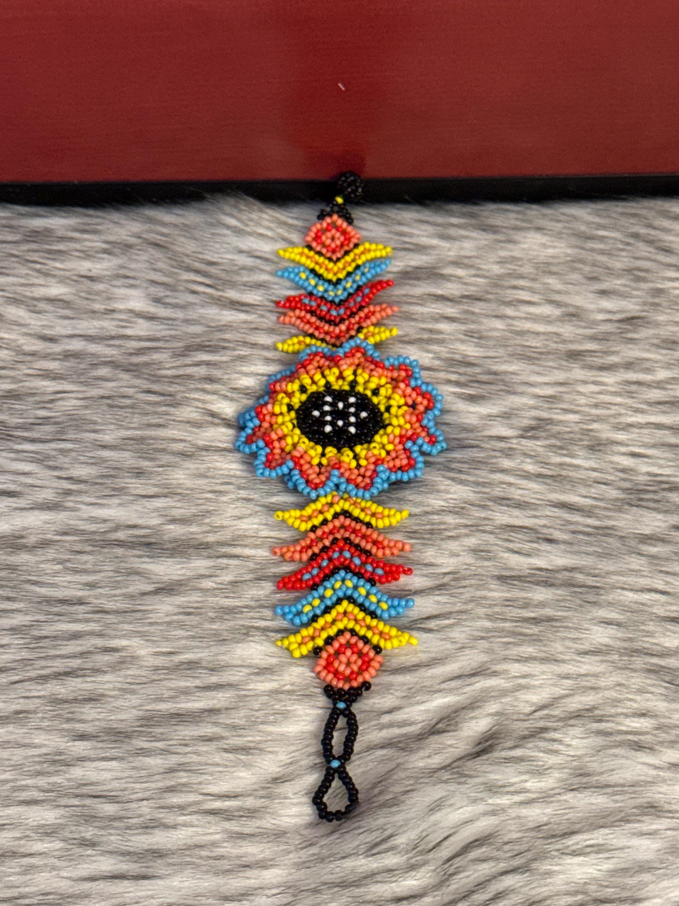 Beautiful Huichol flower-shaped bracelets, made with beads by Mexican artisans. The bracelets measure approximately 7.5 to 8 inches long.