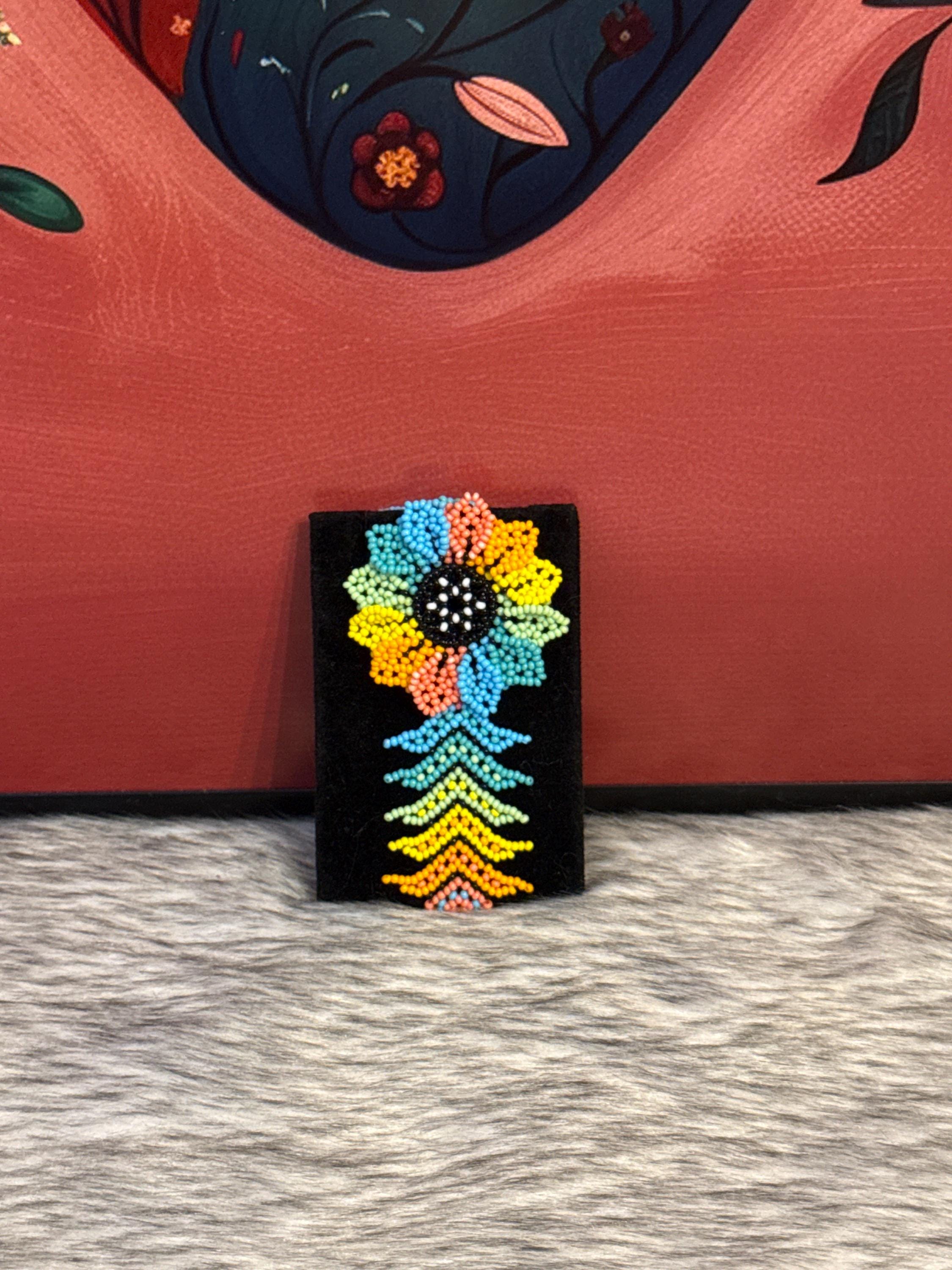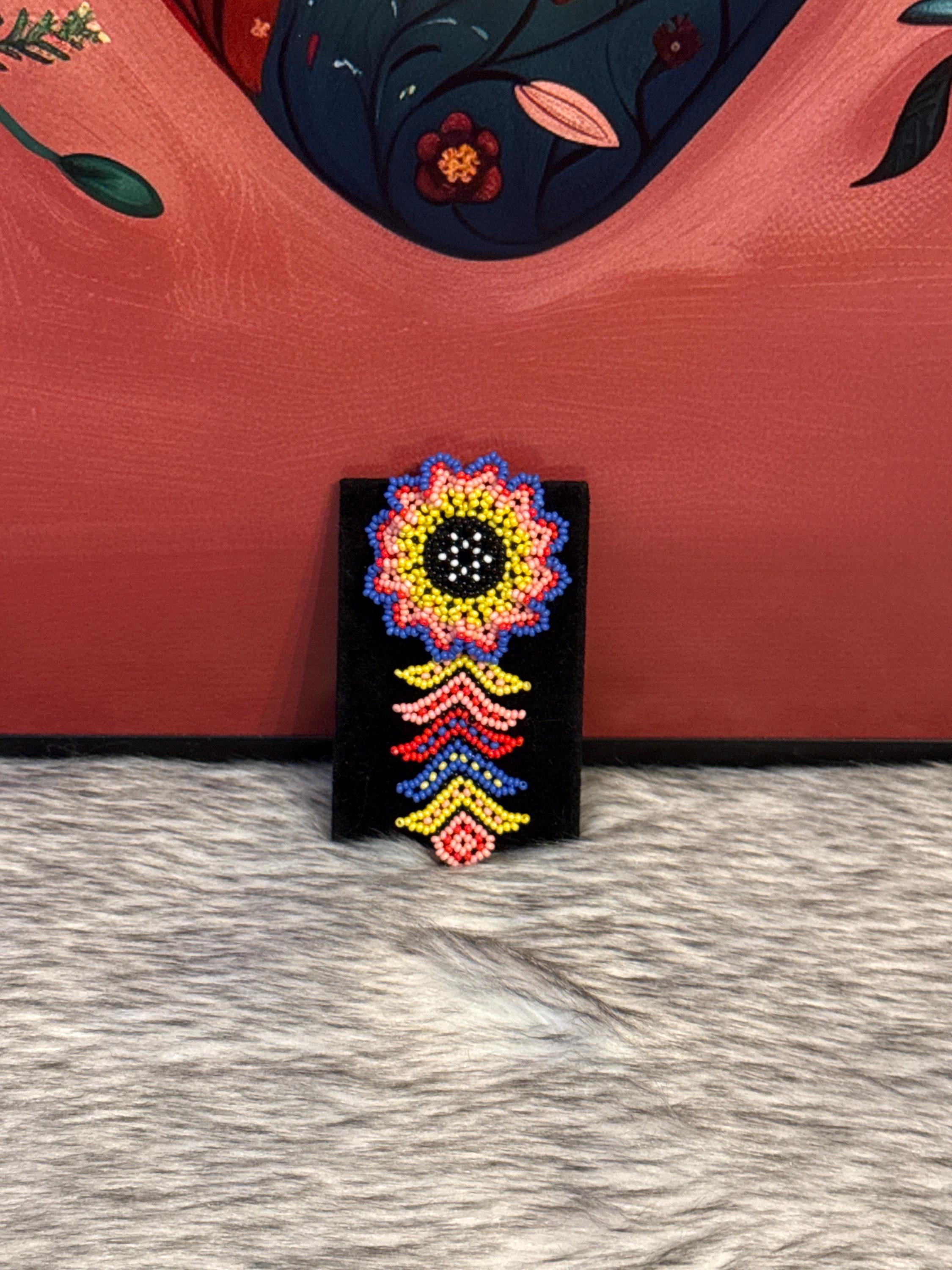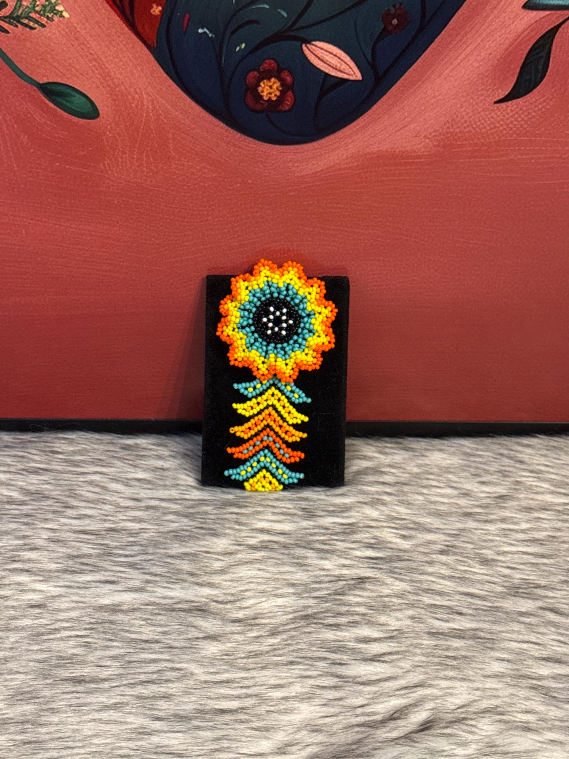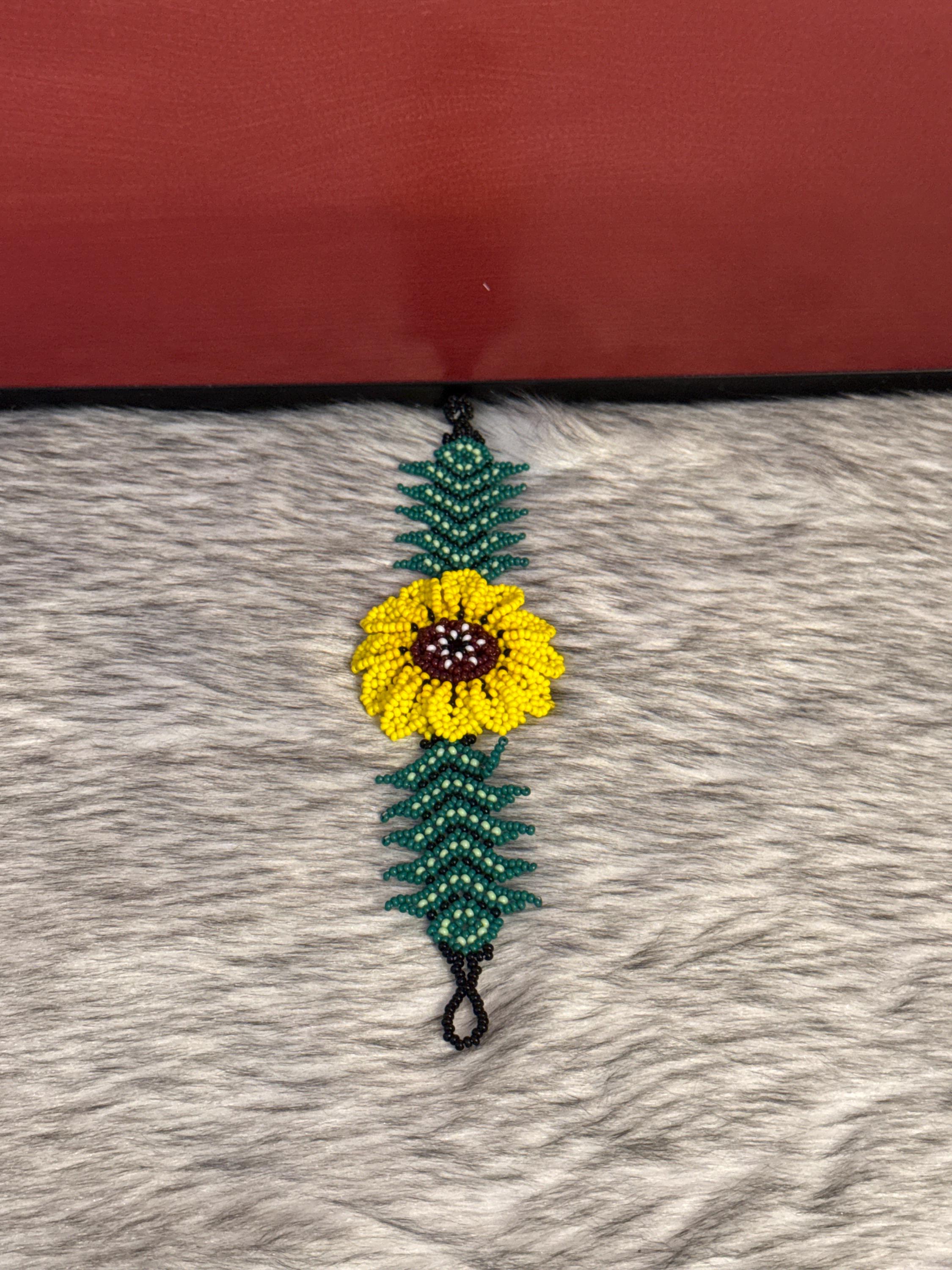 Beautiful Huichol flower-shaped bracelets, made with beads by Mexican artisans. The bracelets measure approximately 7.5 to 8 inches long.