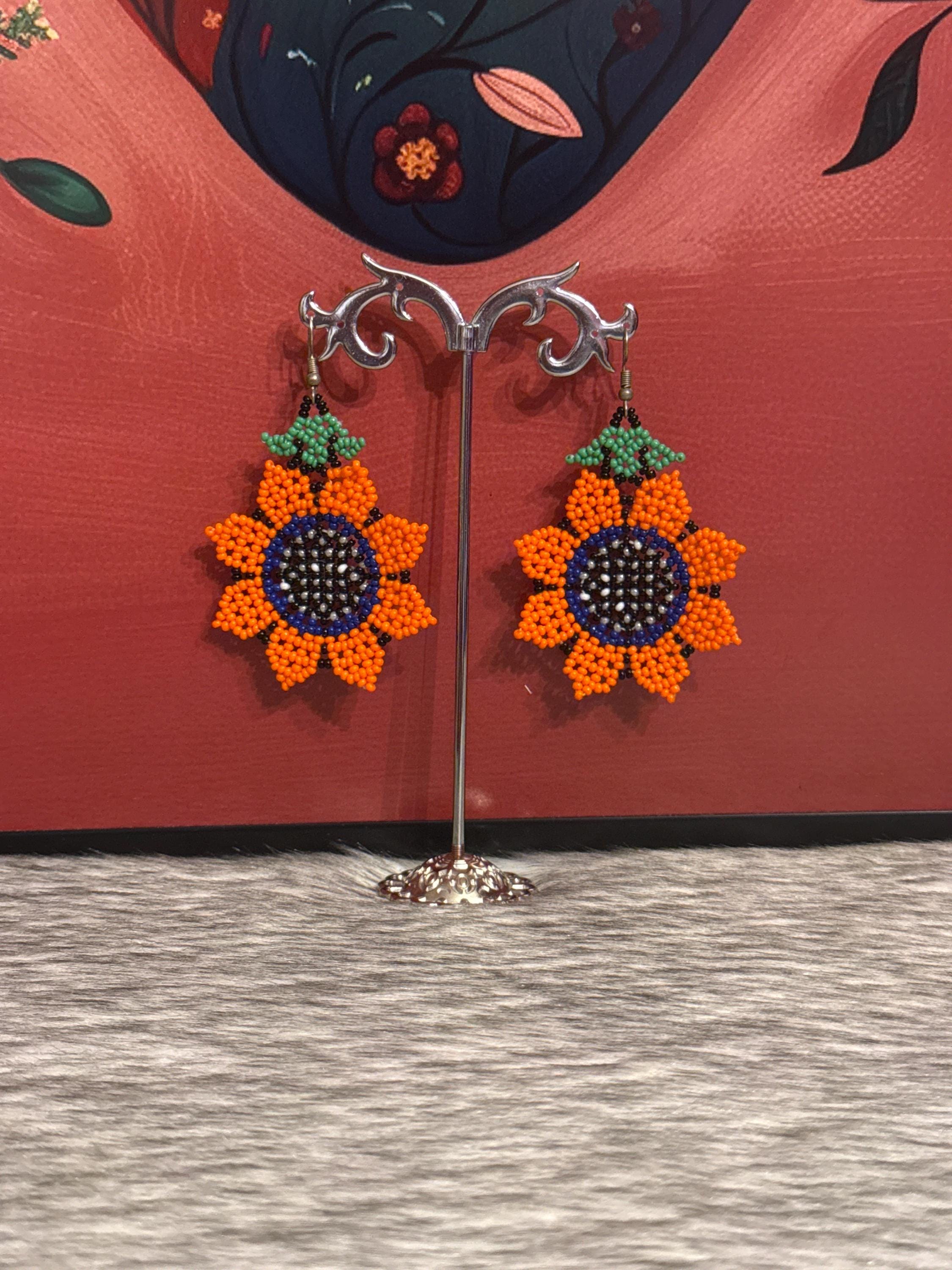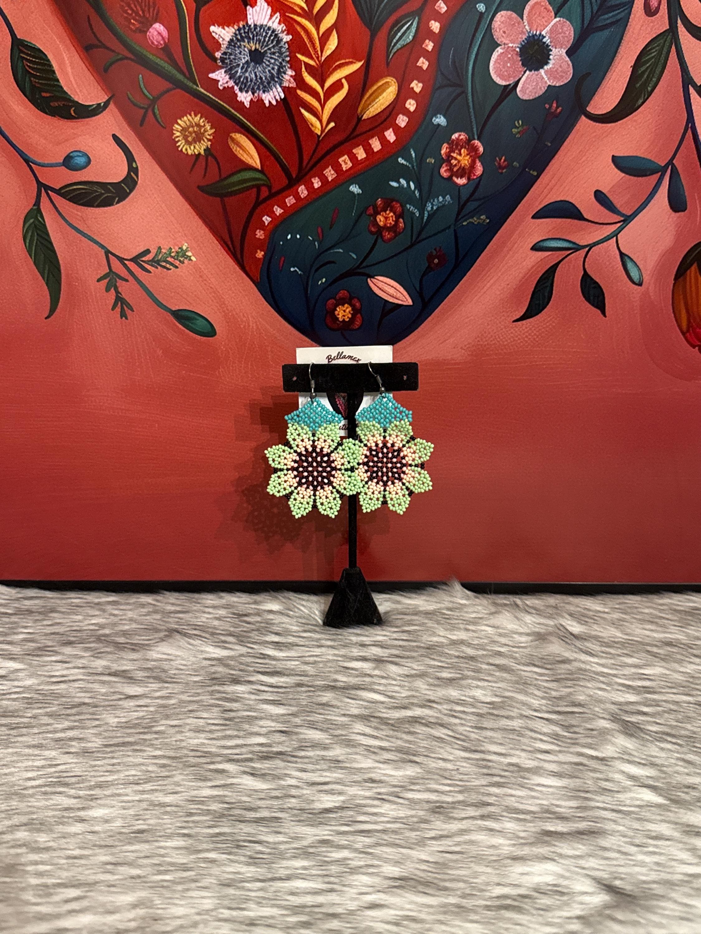 Beautiful flower-shaped earrings, made with beads by Mexican artisans