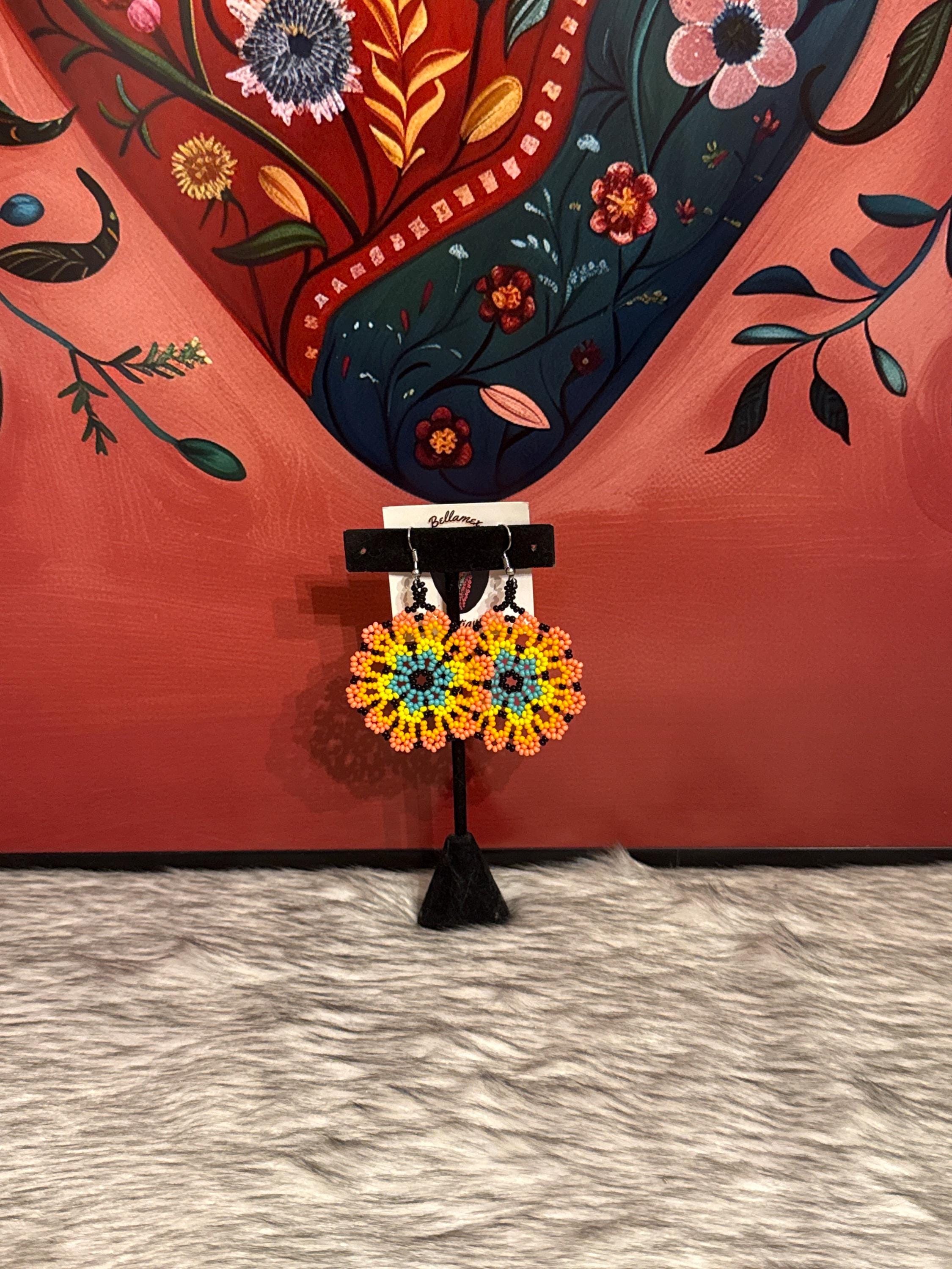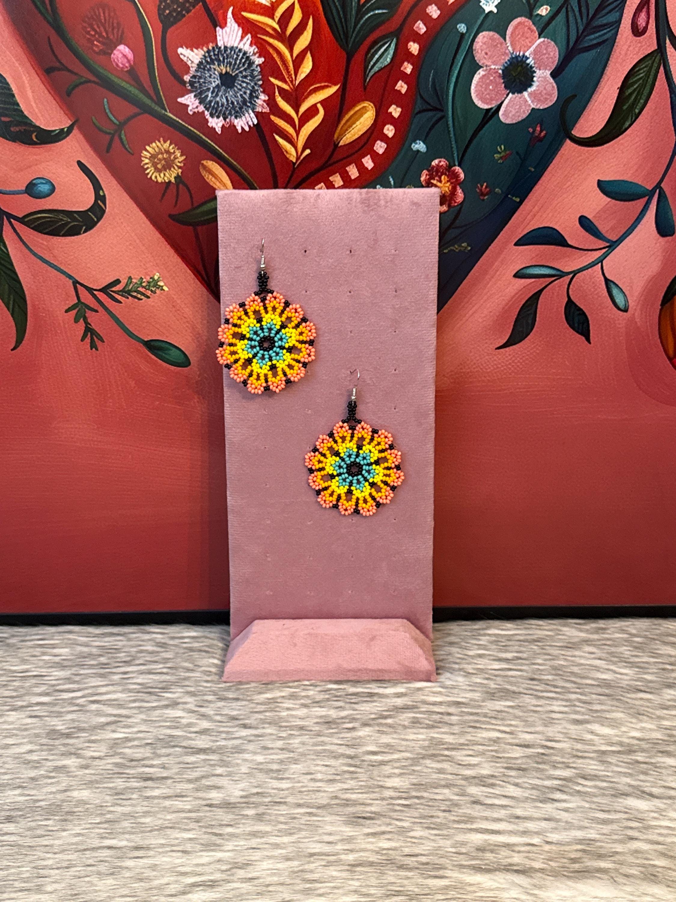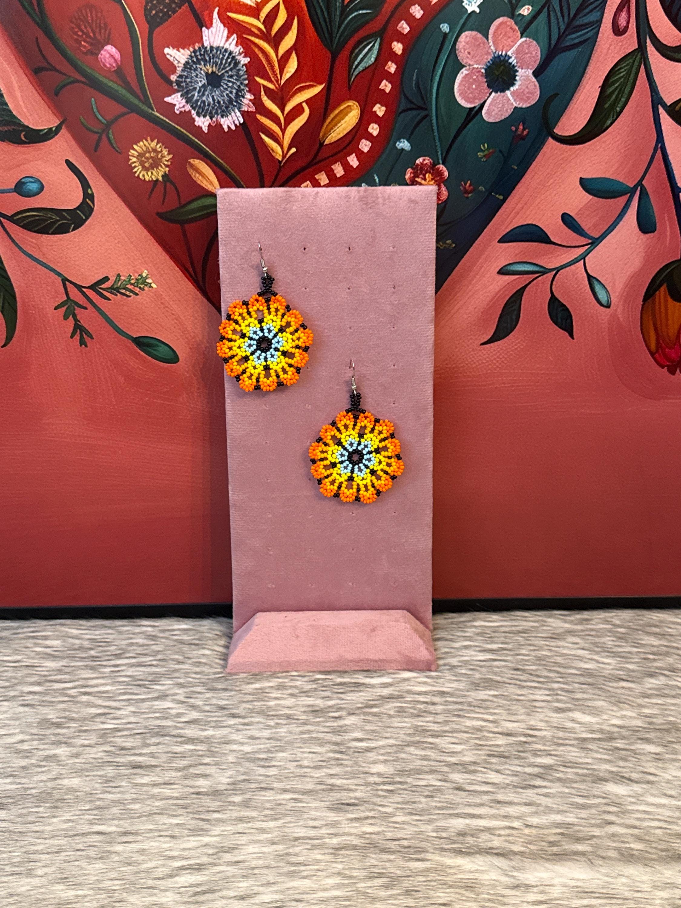 Beautiful flower earrings, made with beads by Mexican artisans.