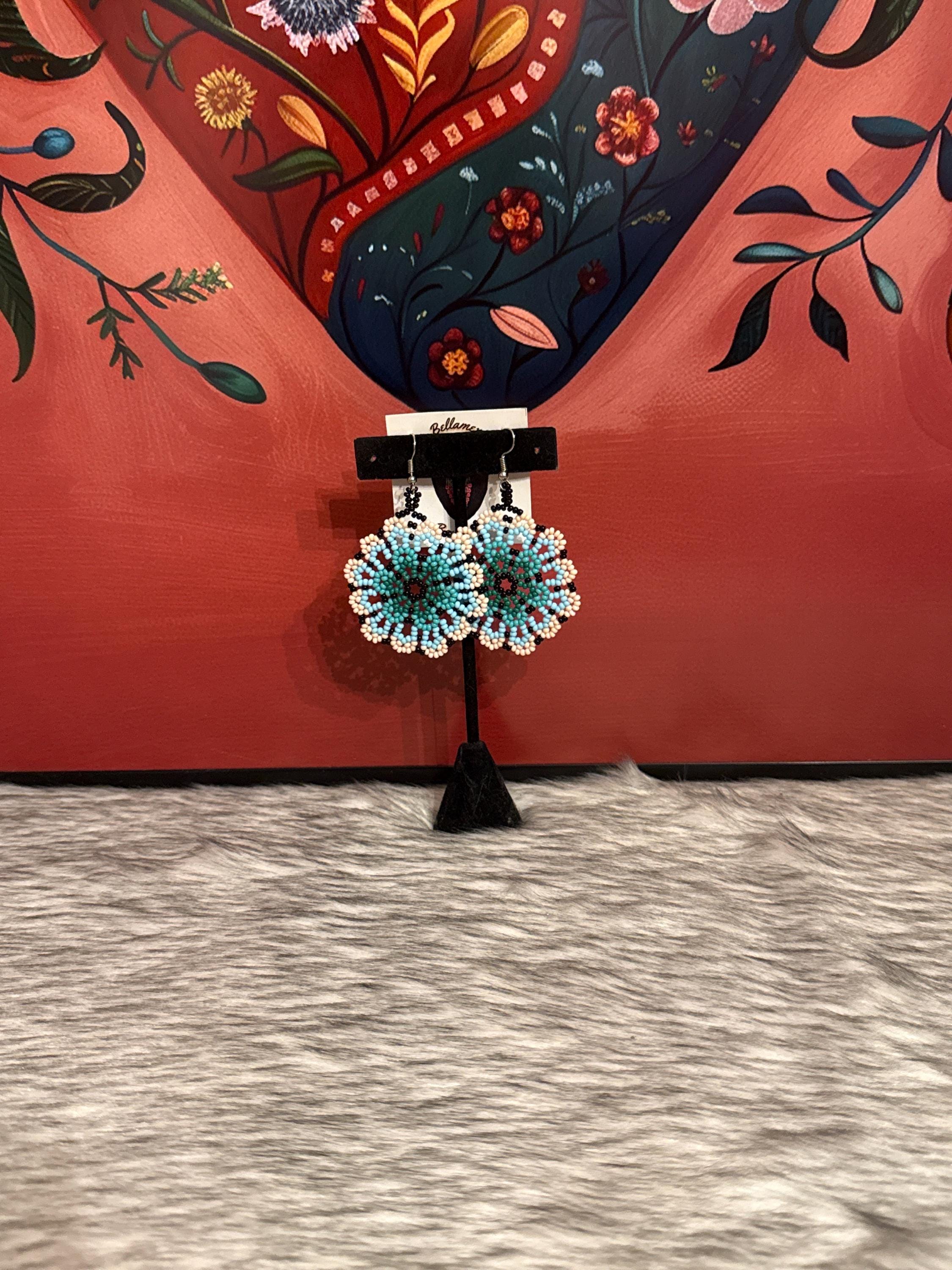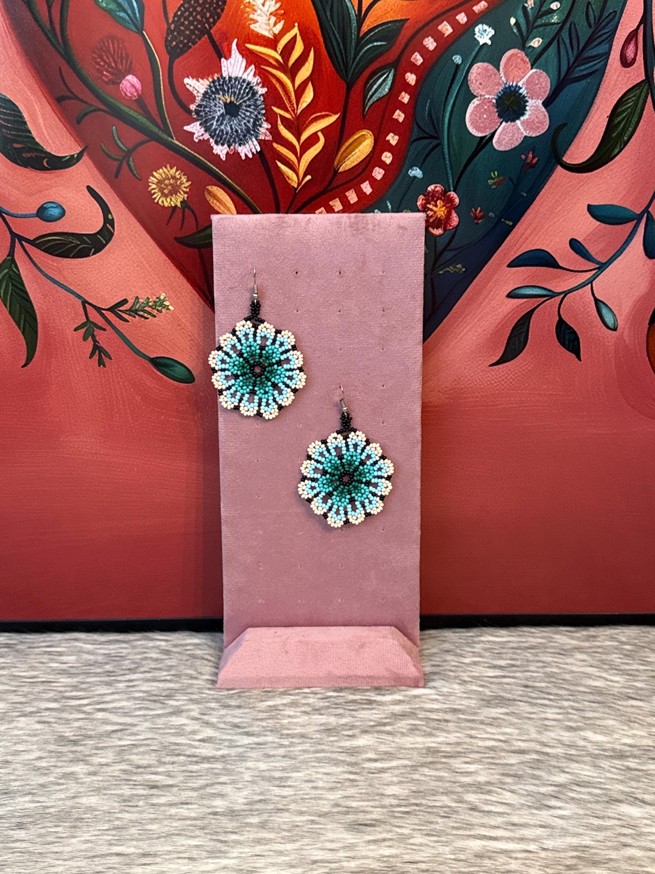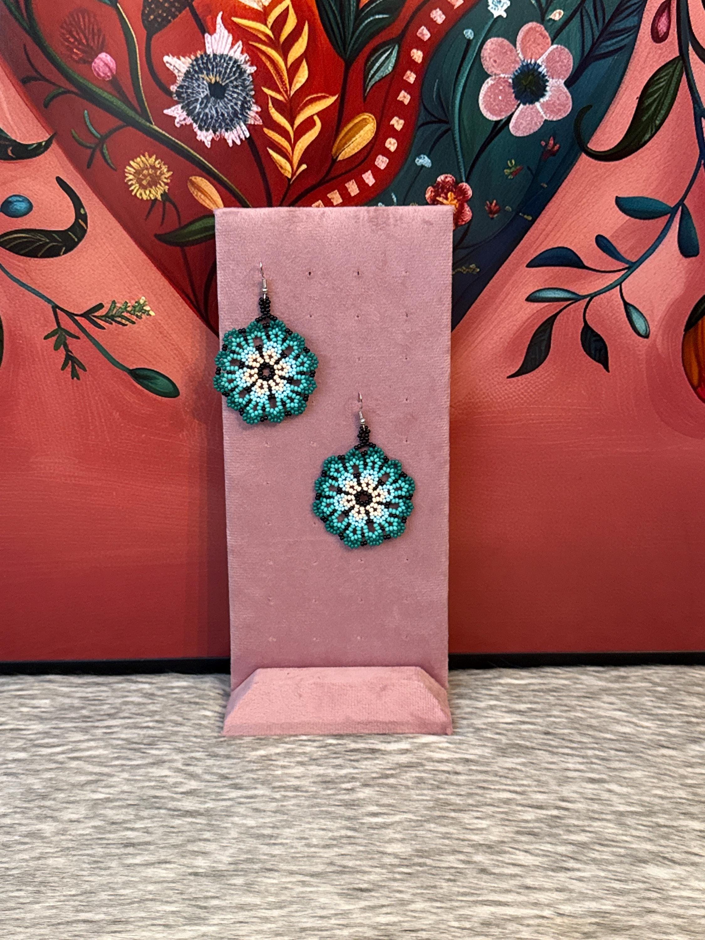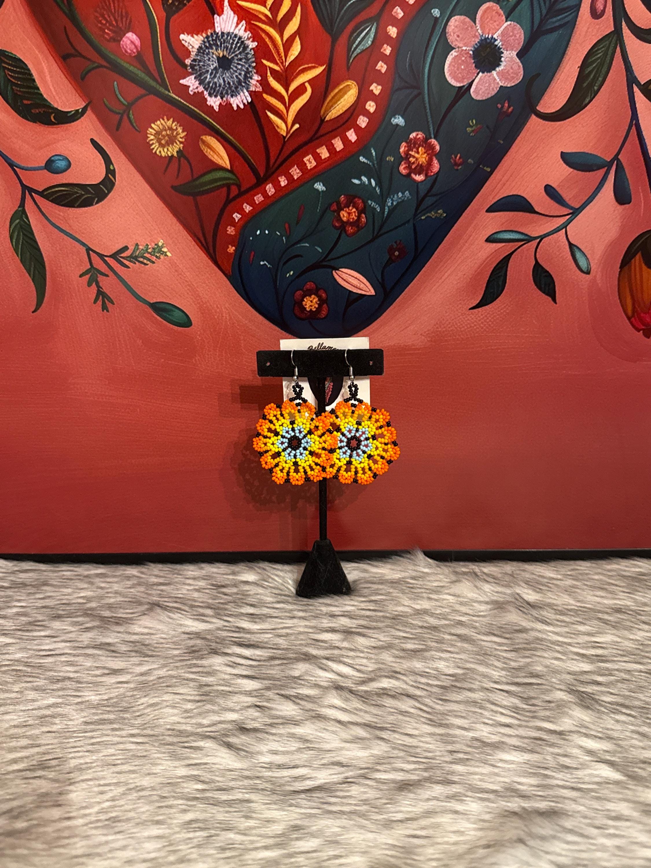 Beautiful flower earrings, made with beads by Mexican artisans.