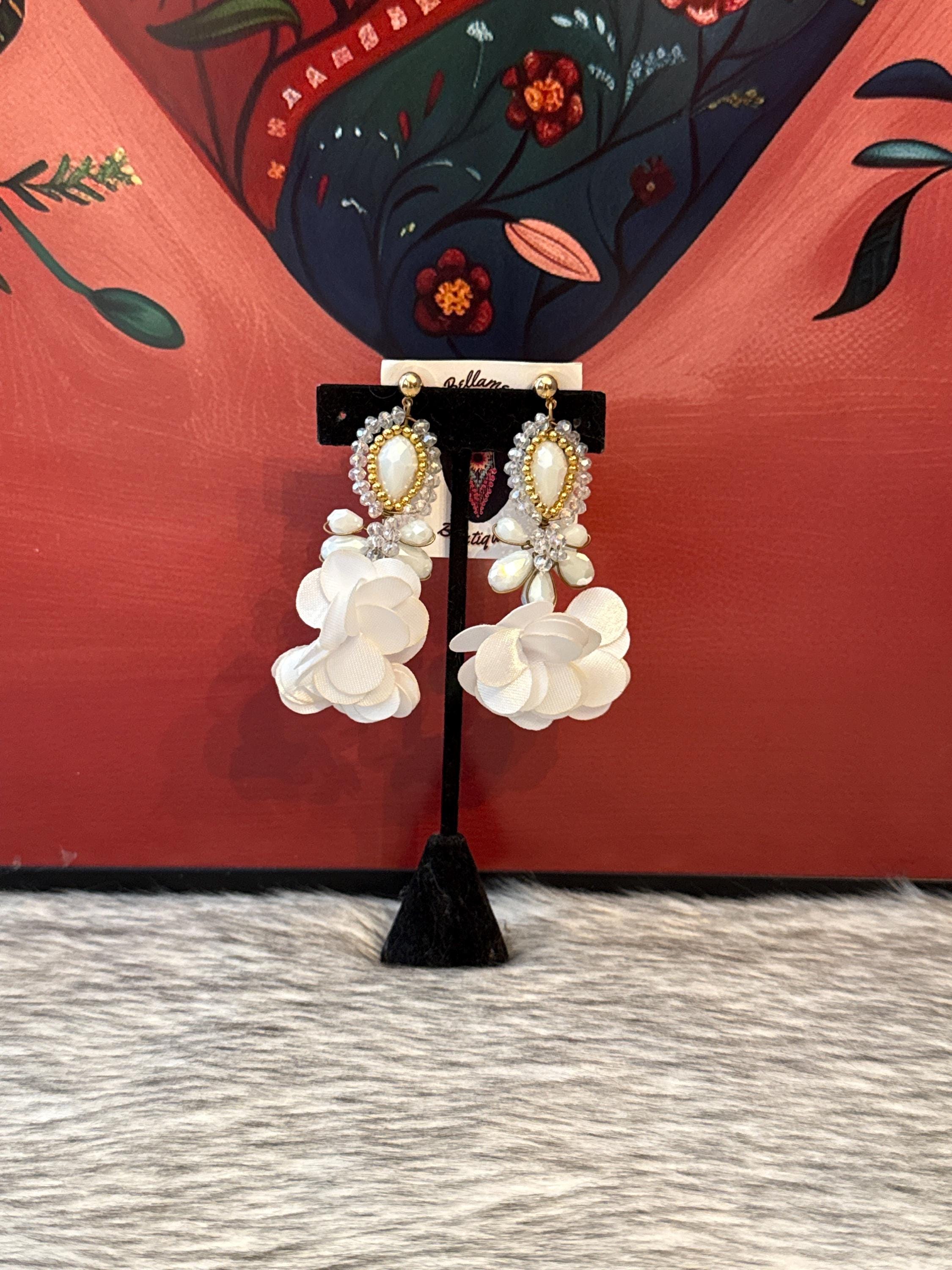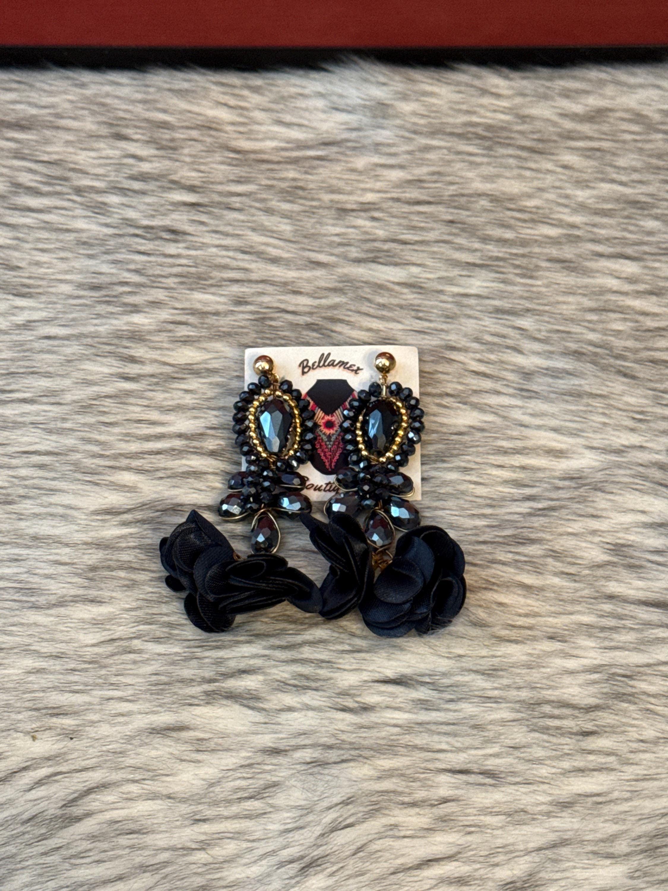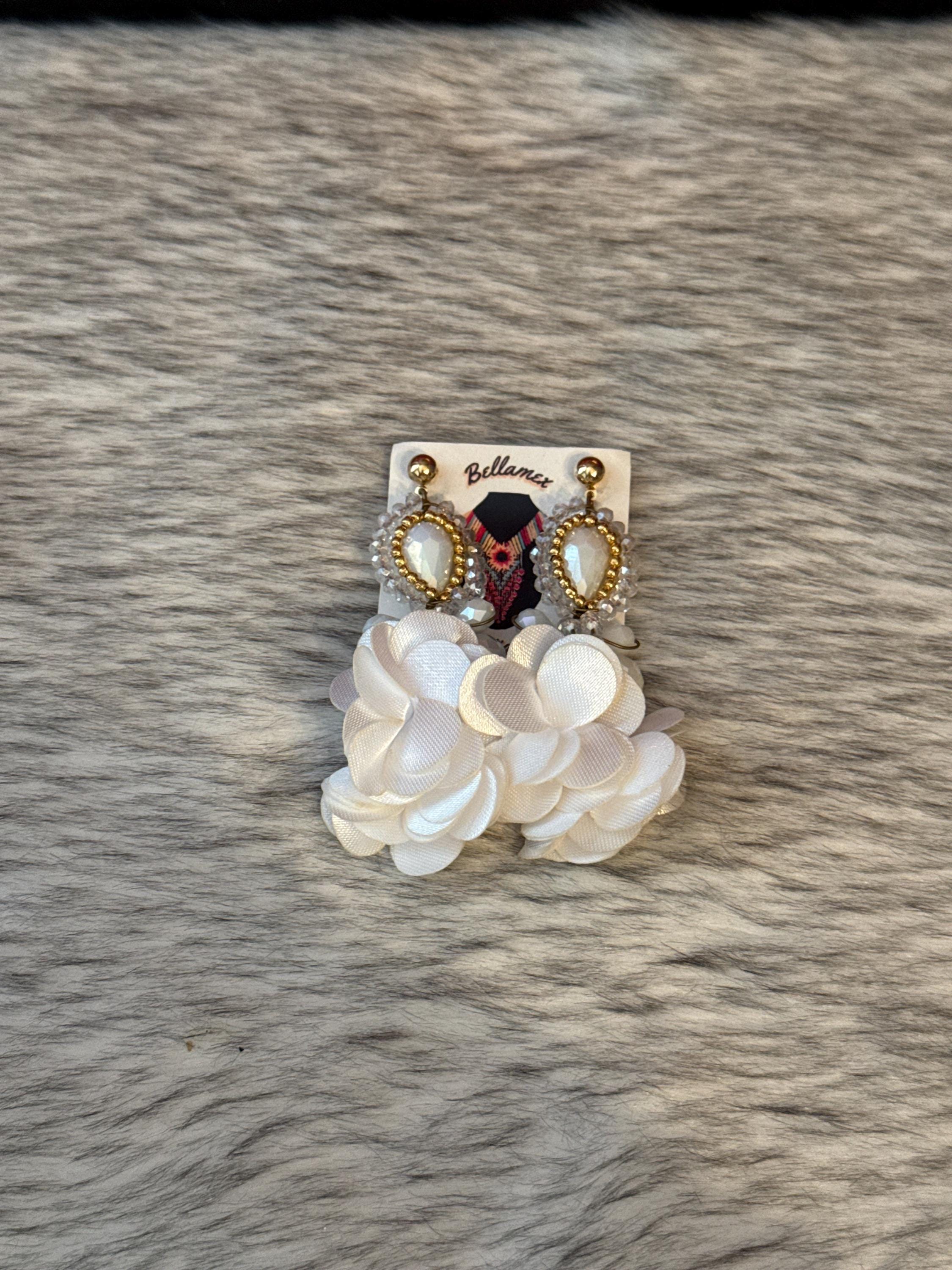 Beautiful crystal earrings in wire wrapping technique, made with Czech crystals and silk flowers, handmade by Mexican artisans.