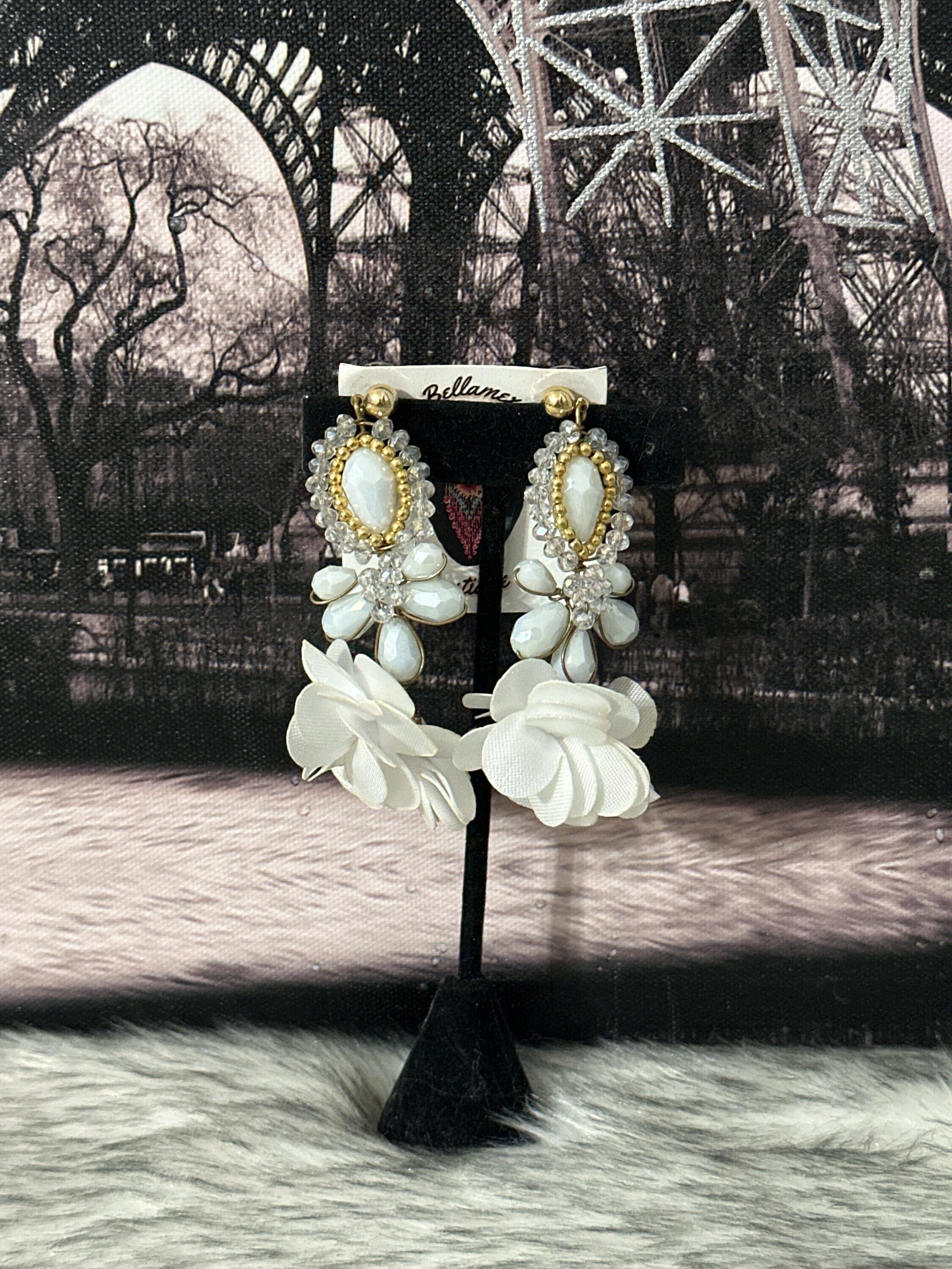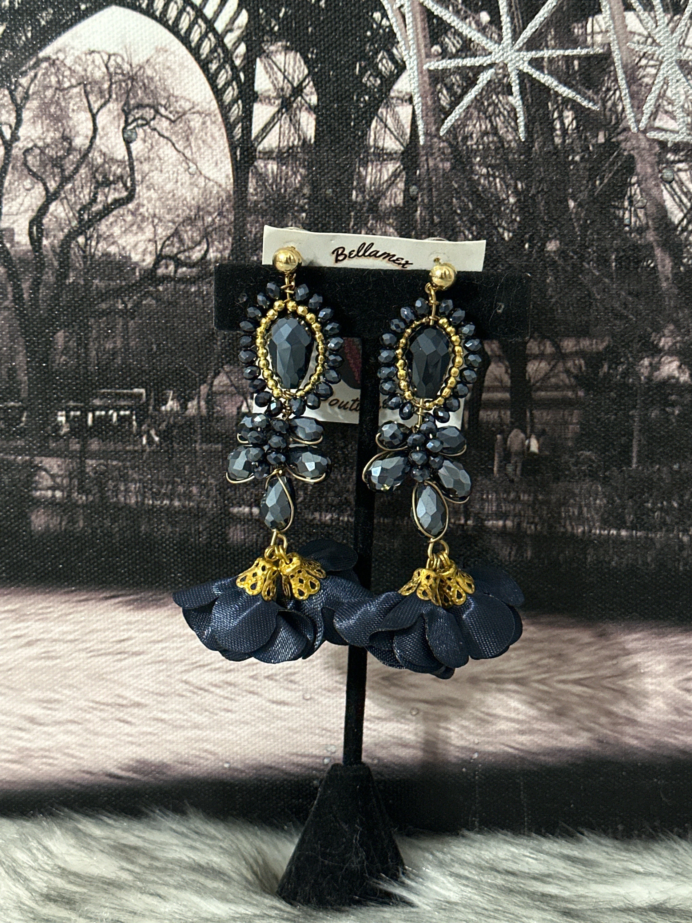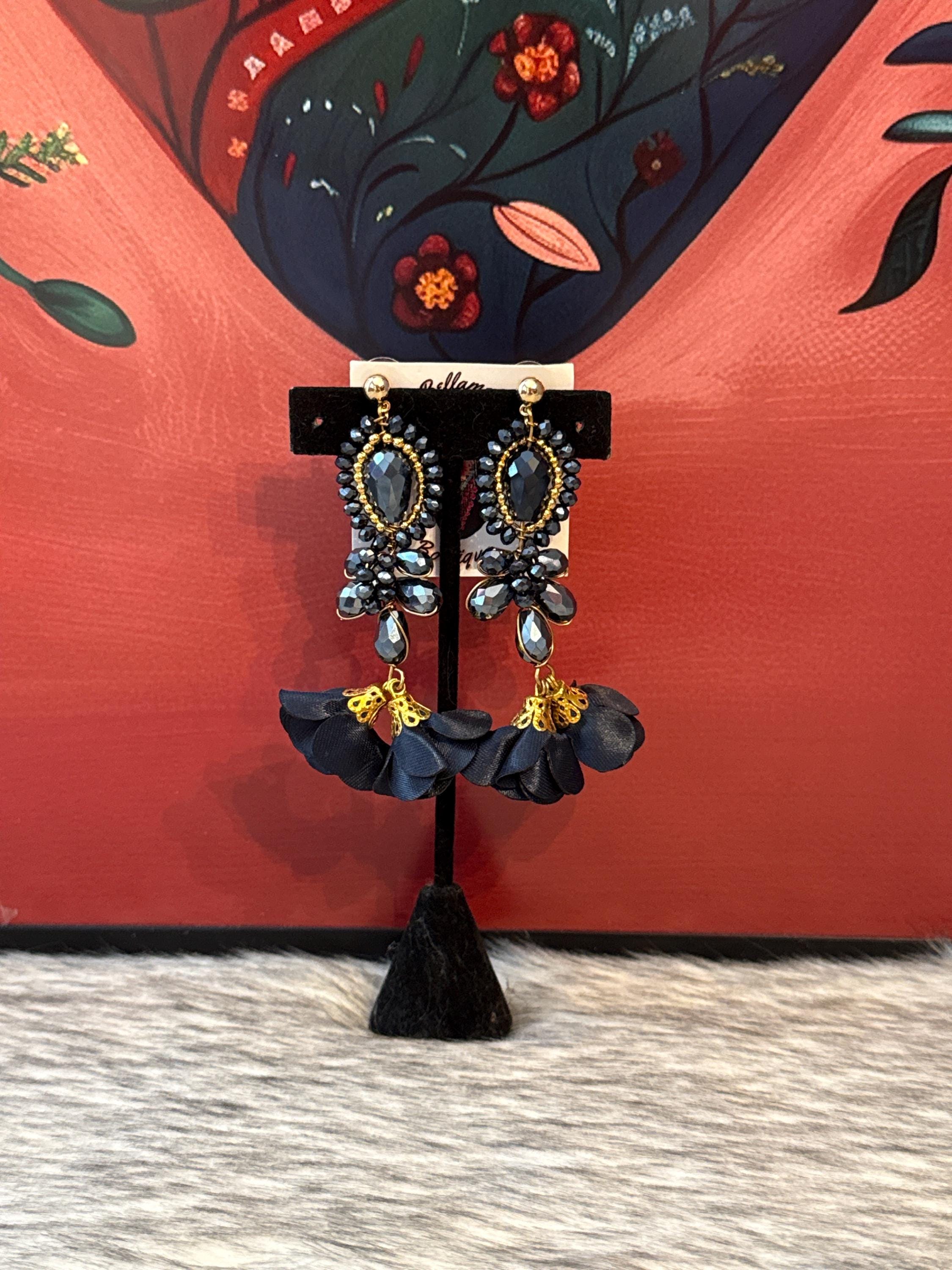 Beautiful crystal earrings in wire wrapping technique, made with Czech crystals and silk flowers, handmade by Mexican artisans.