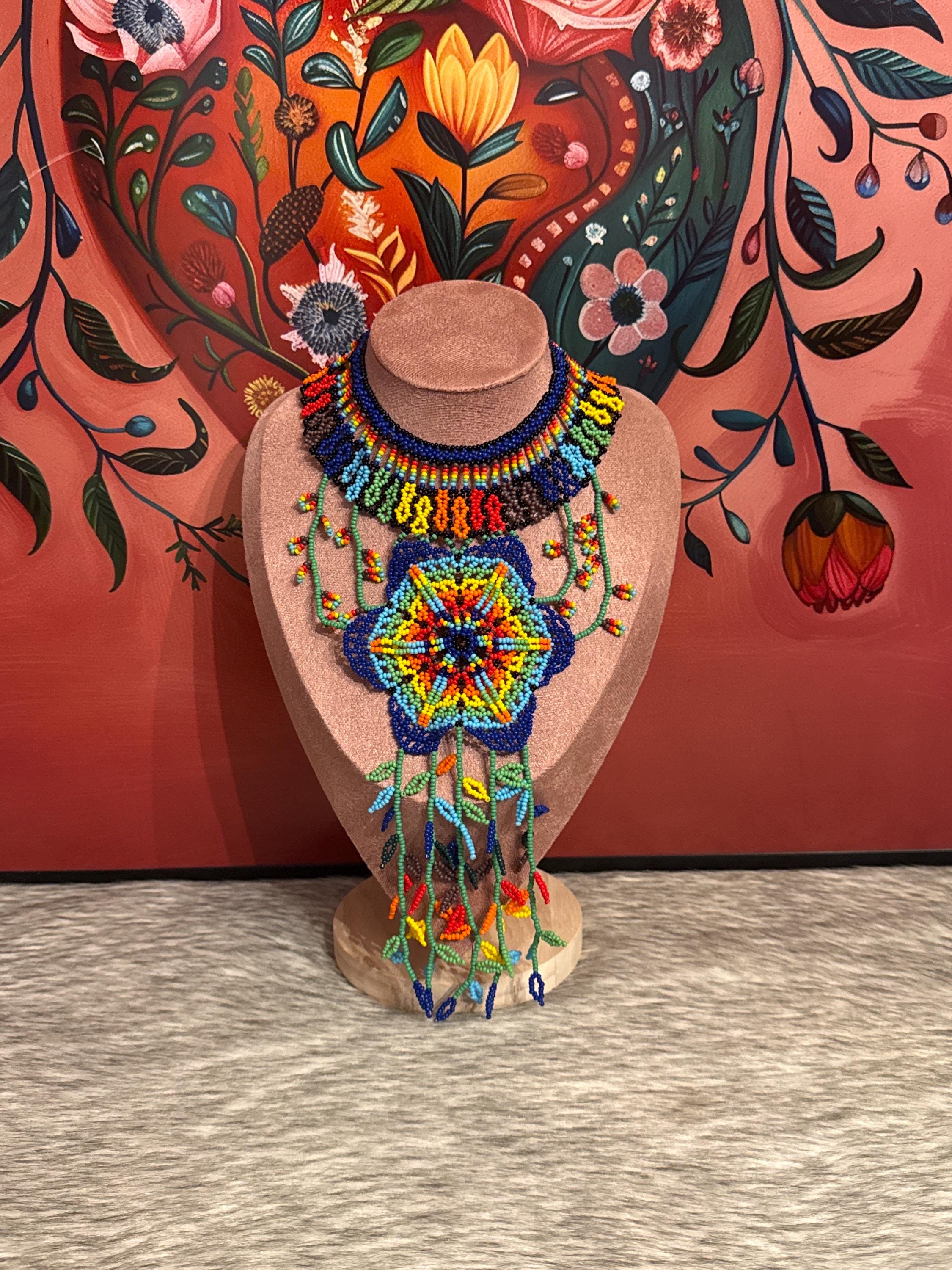 Beautiful necklace and earring set, handmade with seed beads by Mexican artisans, artisanal jewelry.