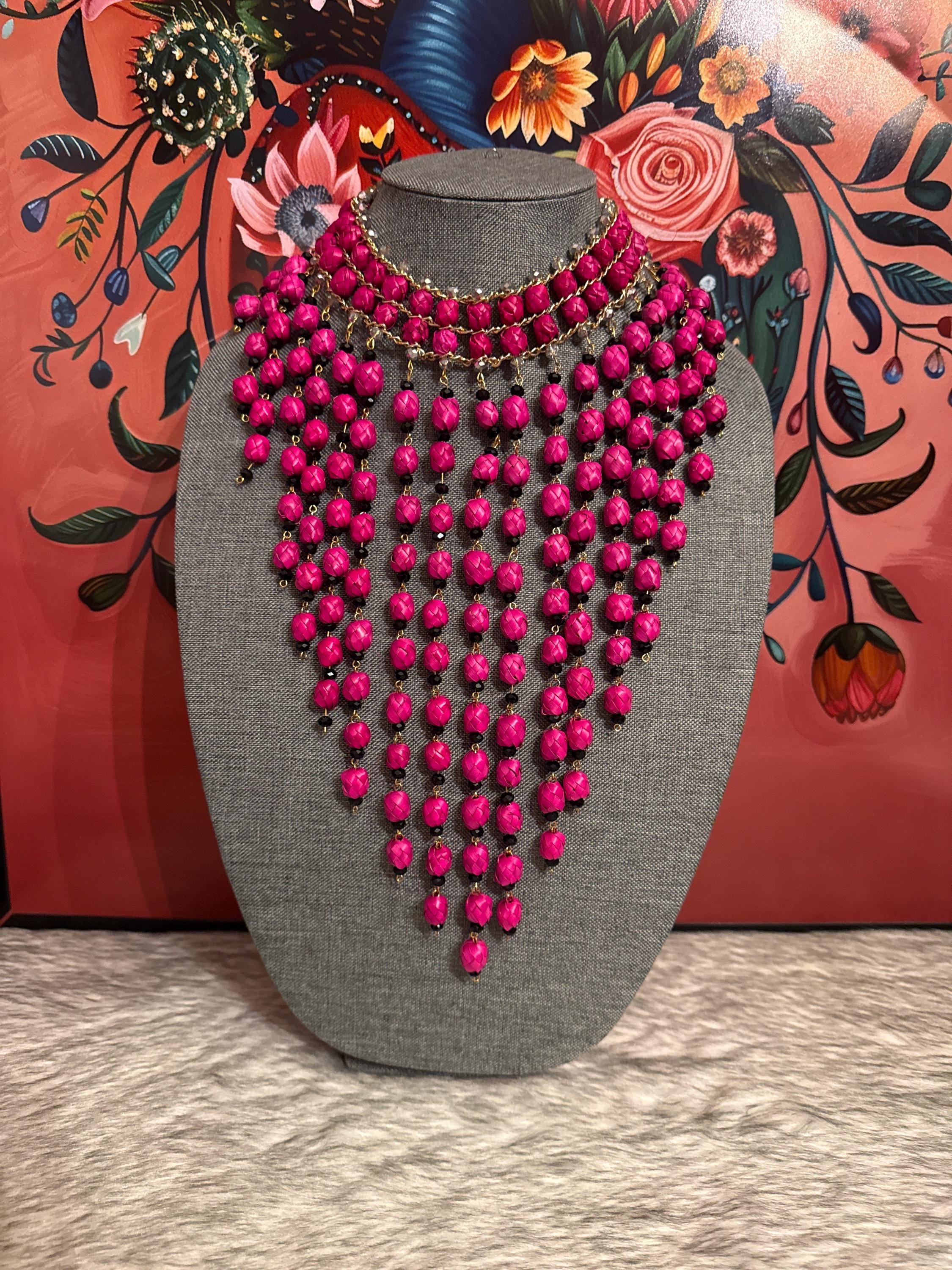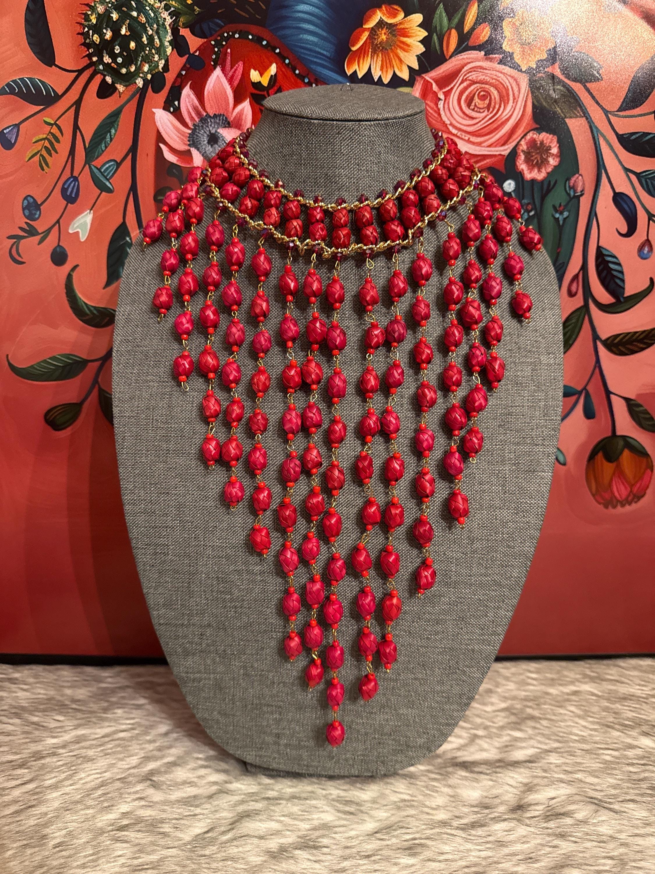 Beautiful necklaces made from palm leaves in the shape of little barrels, handmade by Mexican artisans.