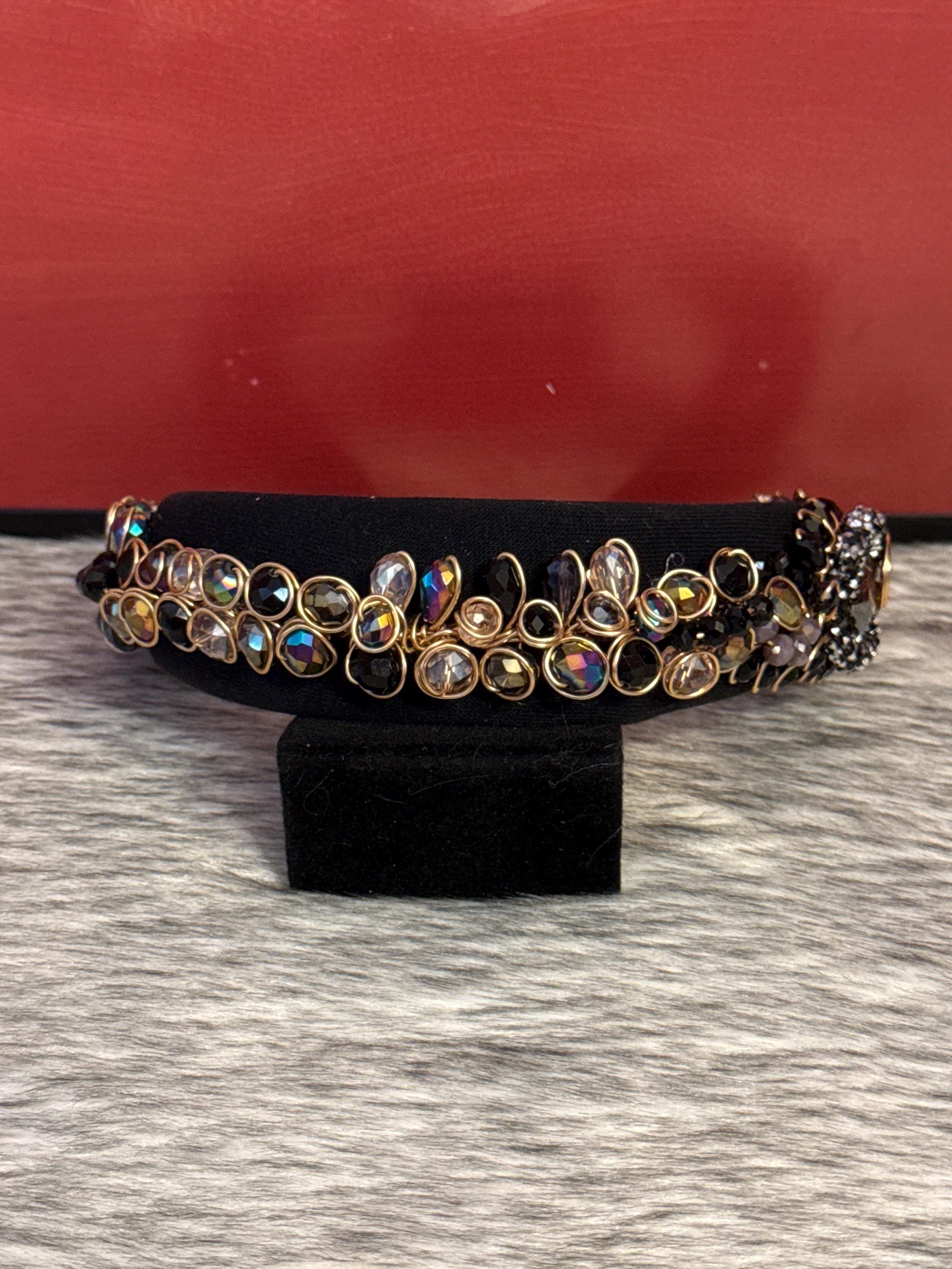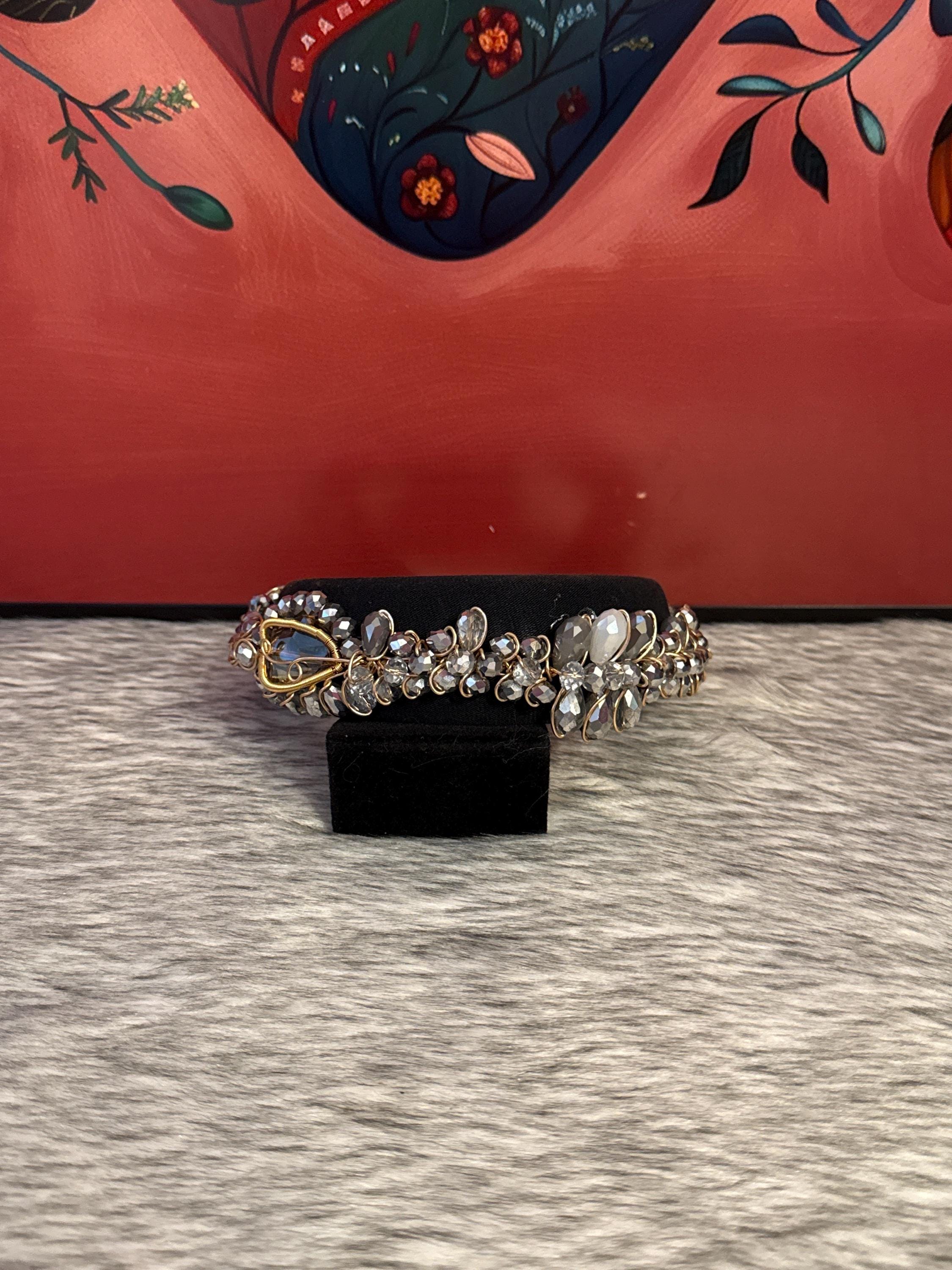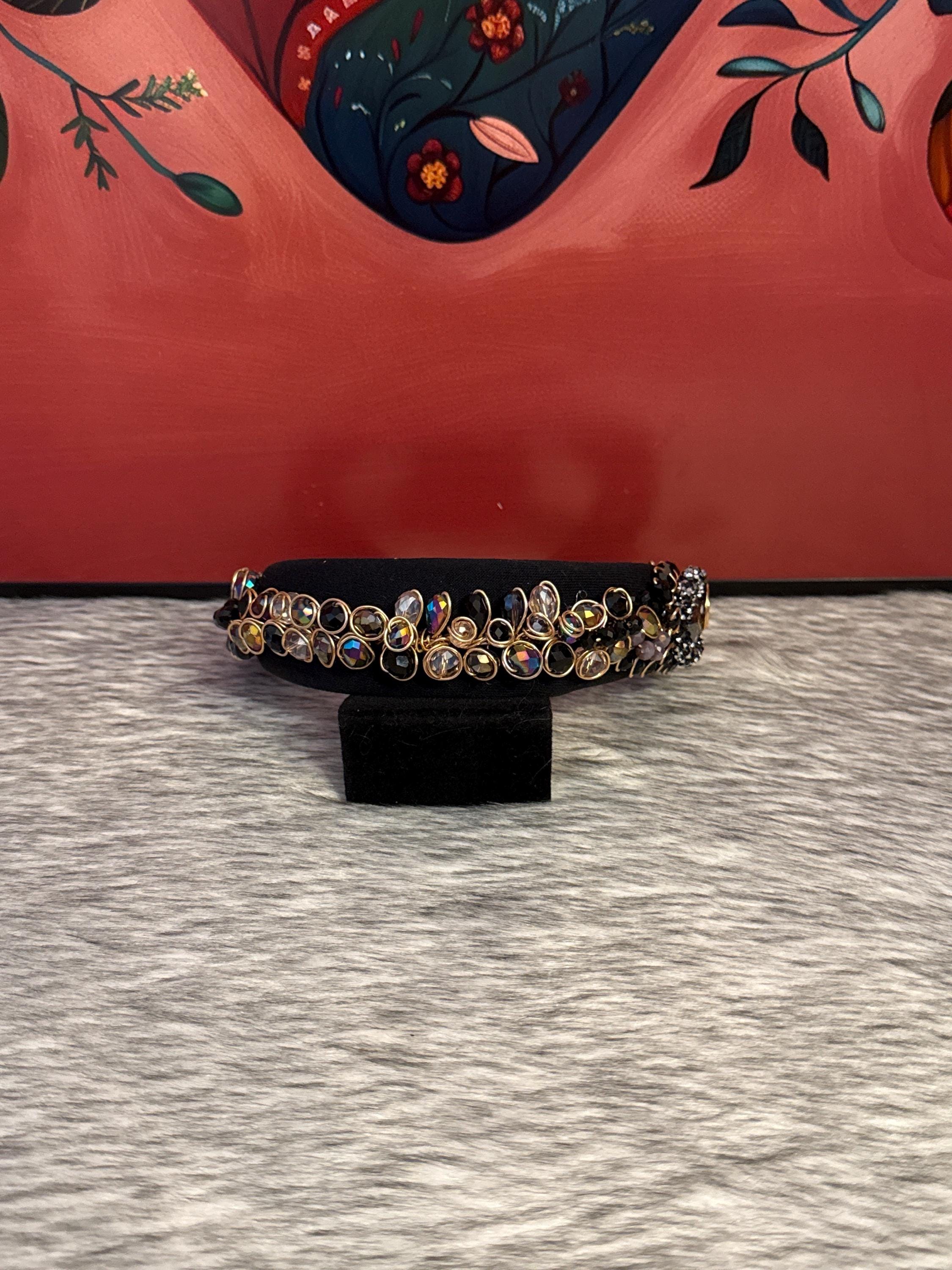 Beautiful velvet headband embroidered with crystals using the wire wrapping technique, handmade by Mexican artisans, includes free earrings.