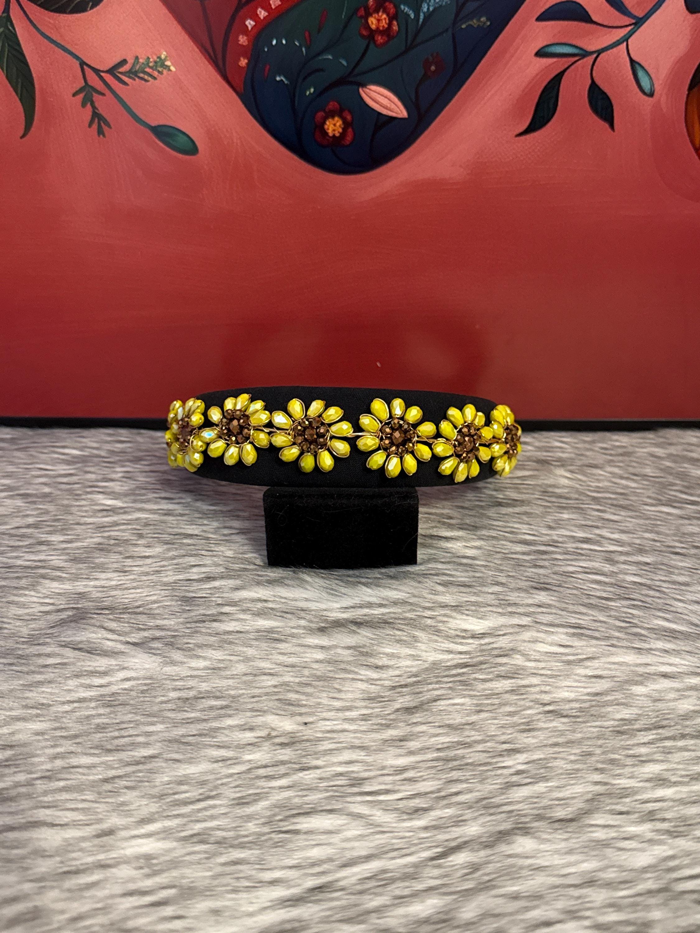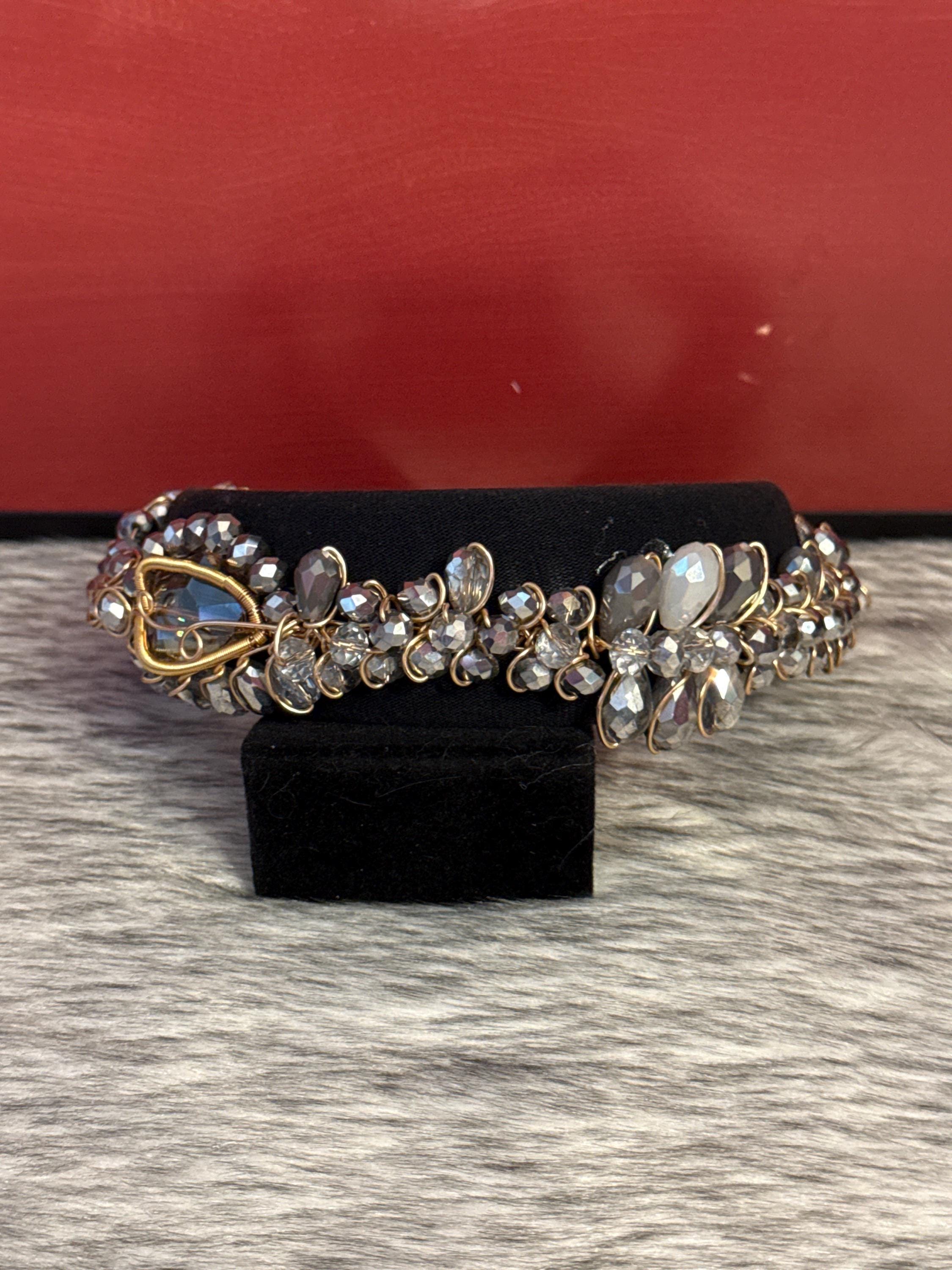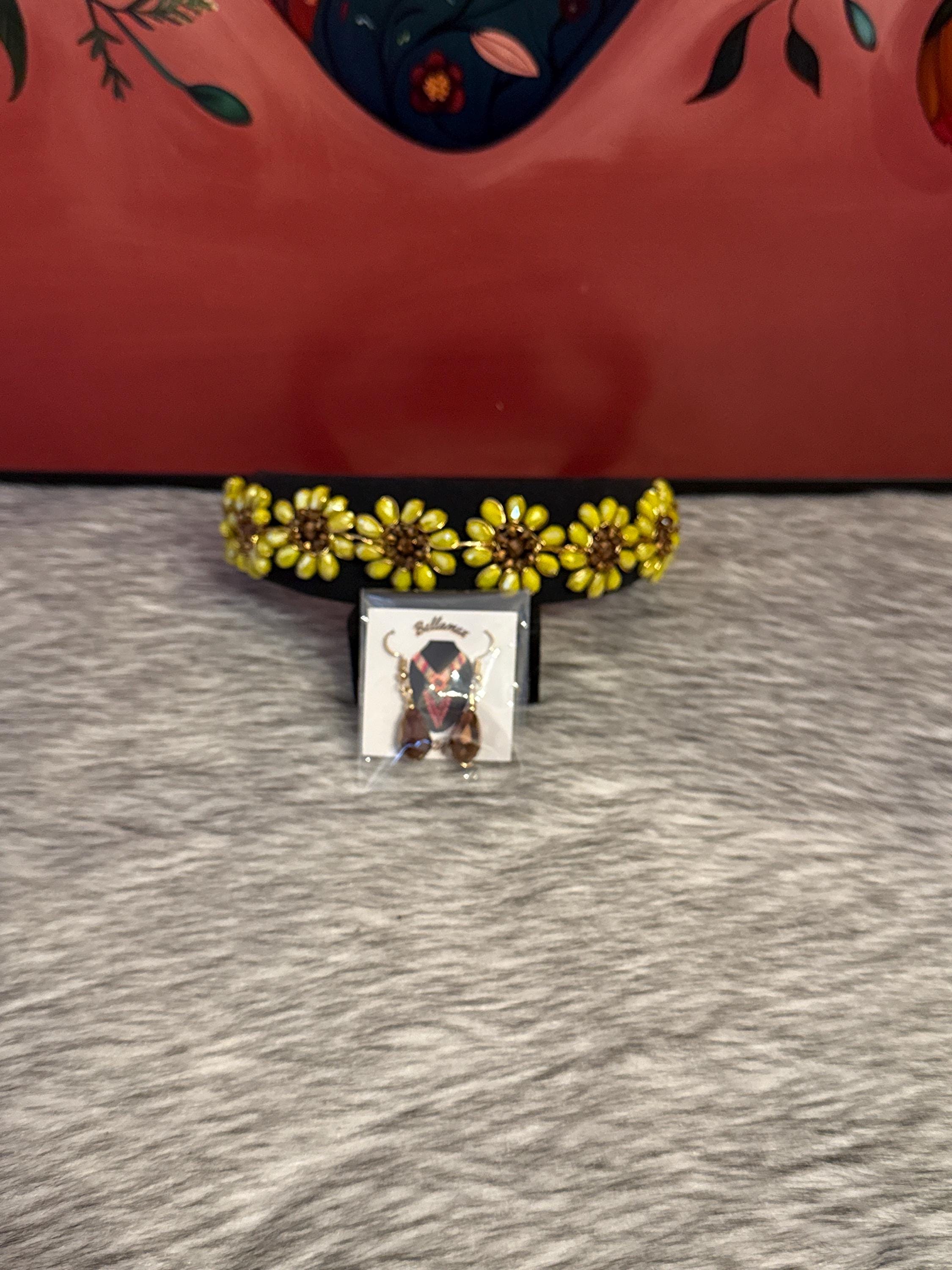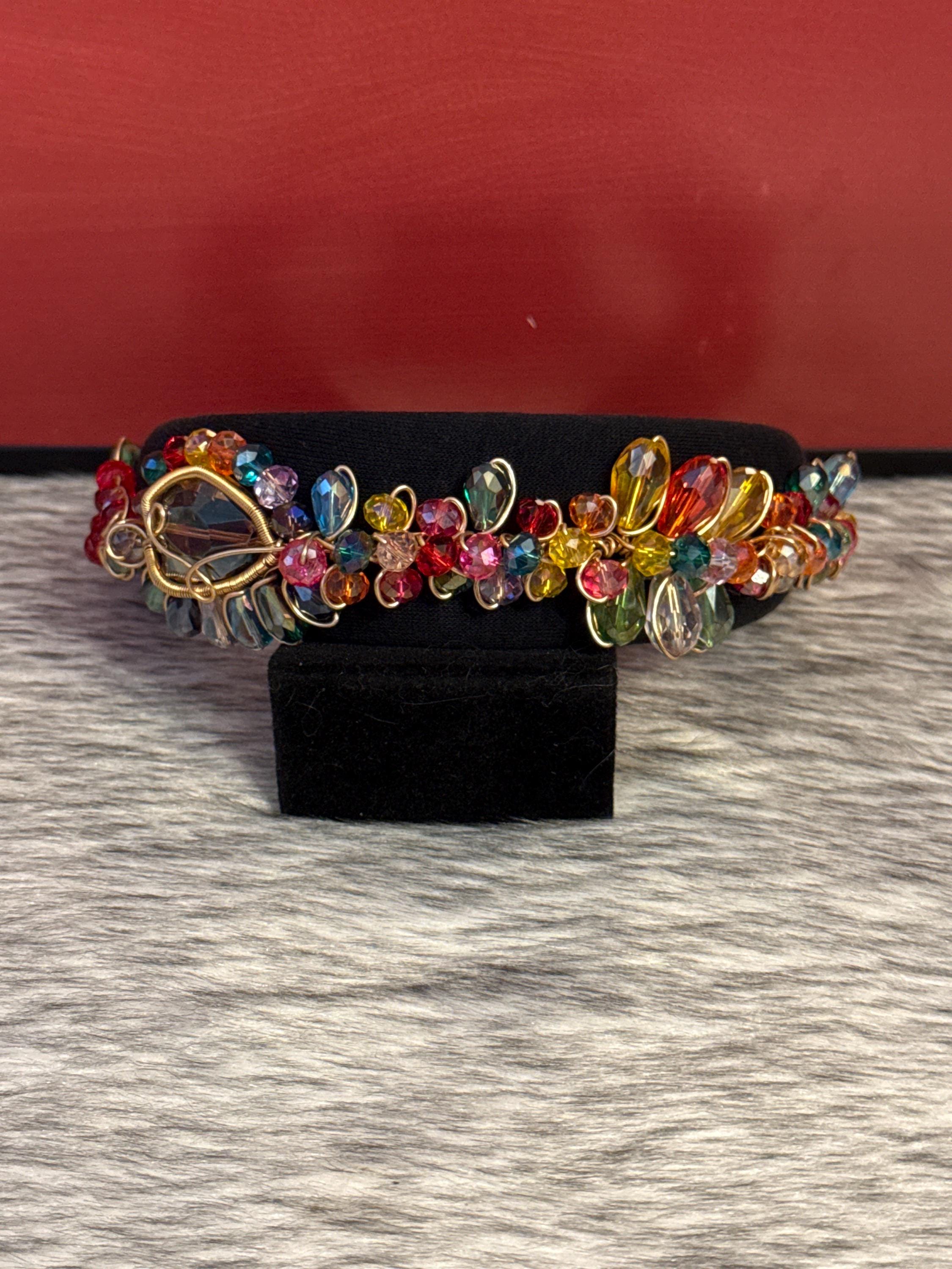 Beautiful velvet headband embroidered with crystals using the wire wrapping technique, handmade by Mexican artisans, includes free earrings.