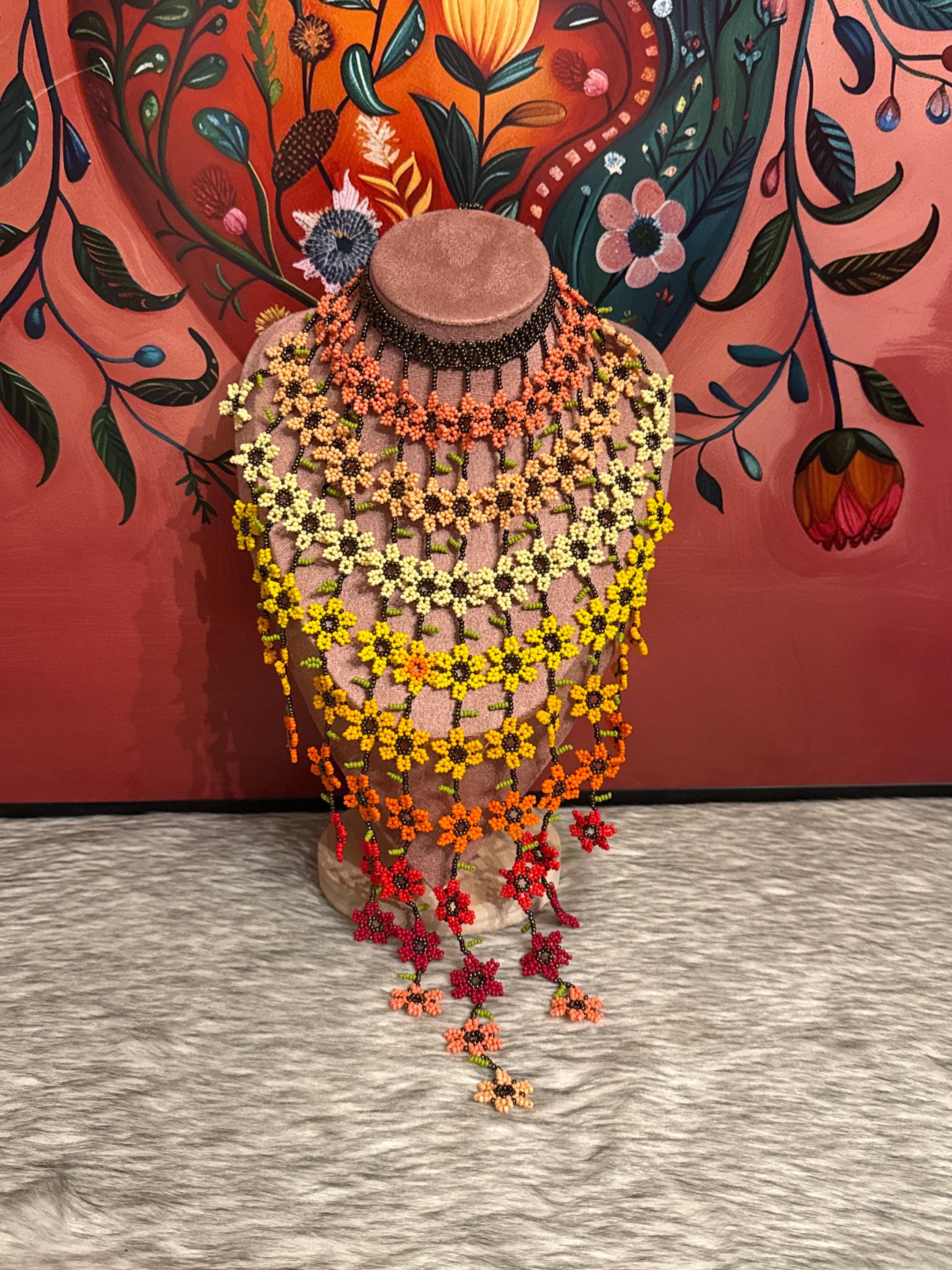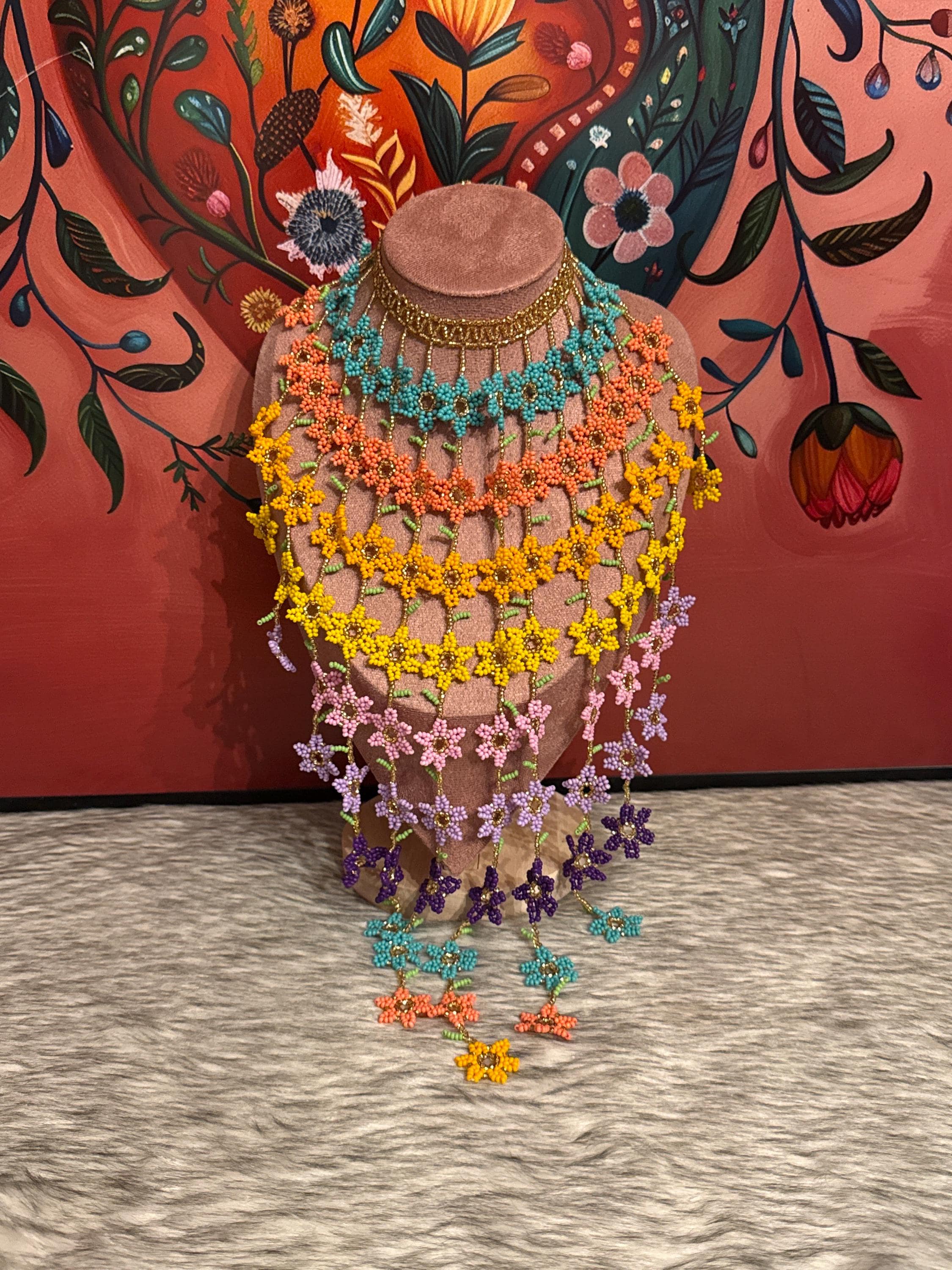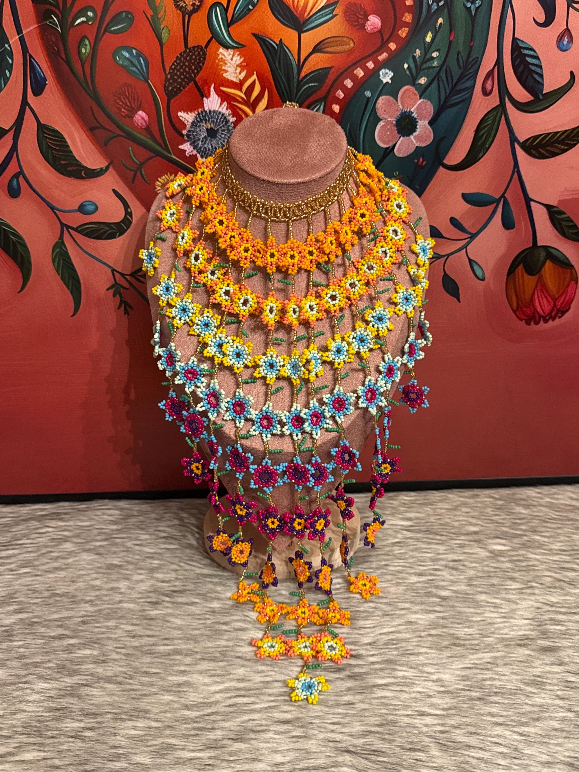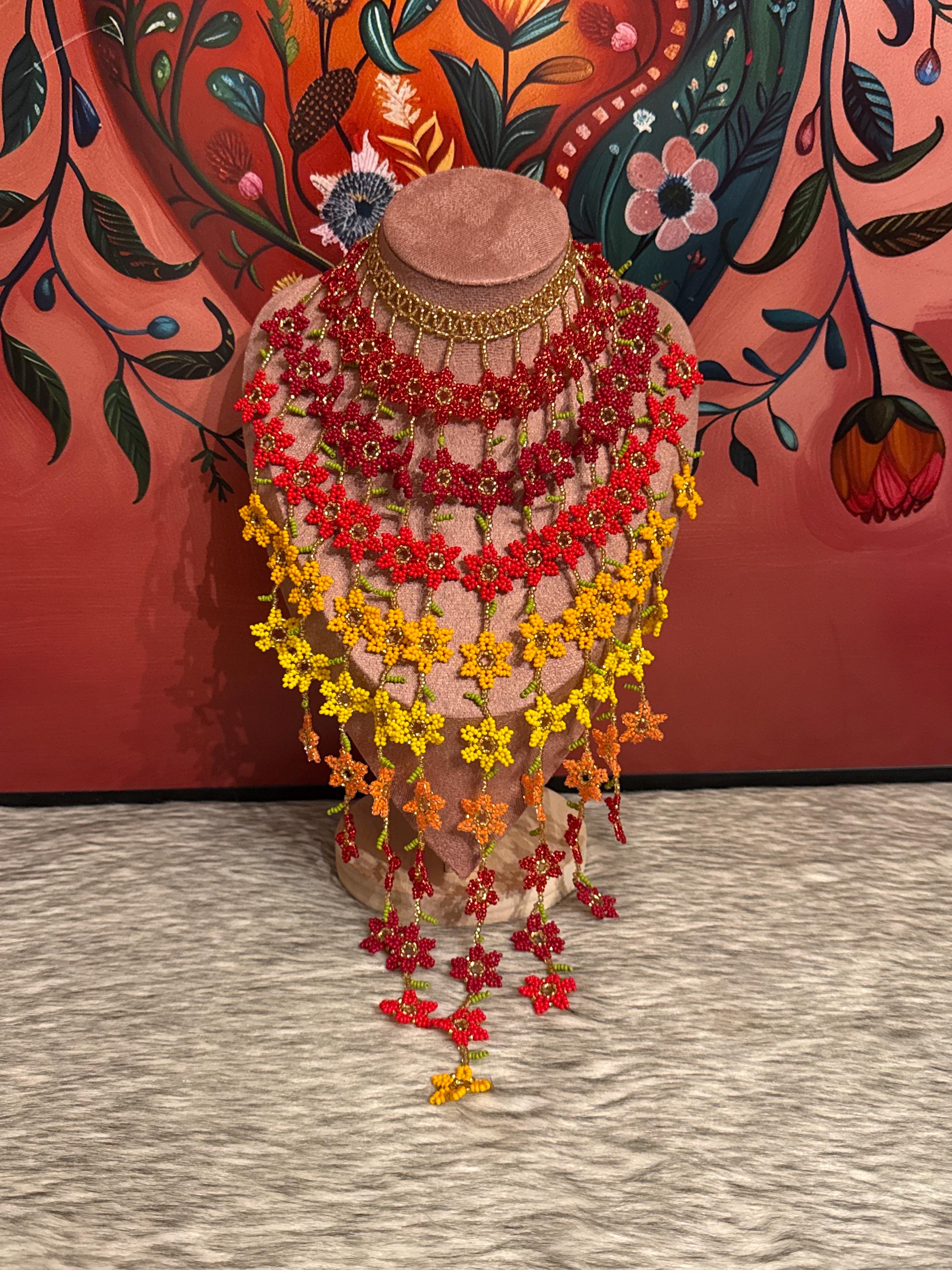 Beautiful set of flower waterfall necklace with earrings and bracelet, handmade by Mexican artisans, the necklace has approximately 100 flowers.