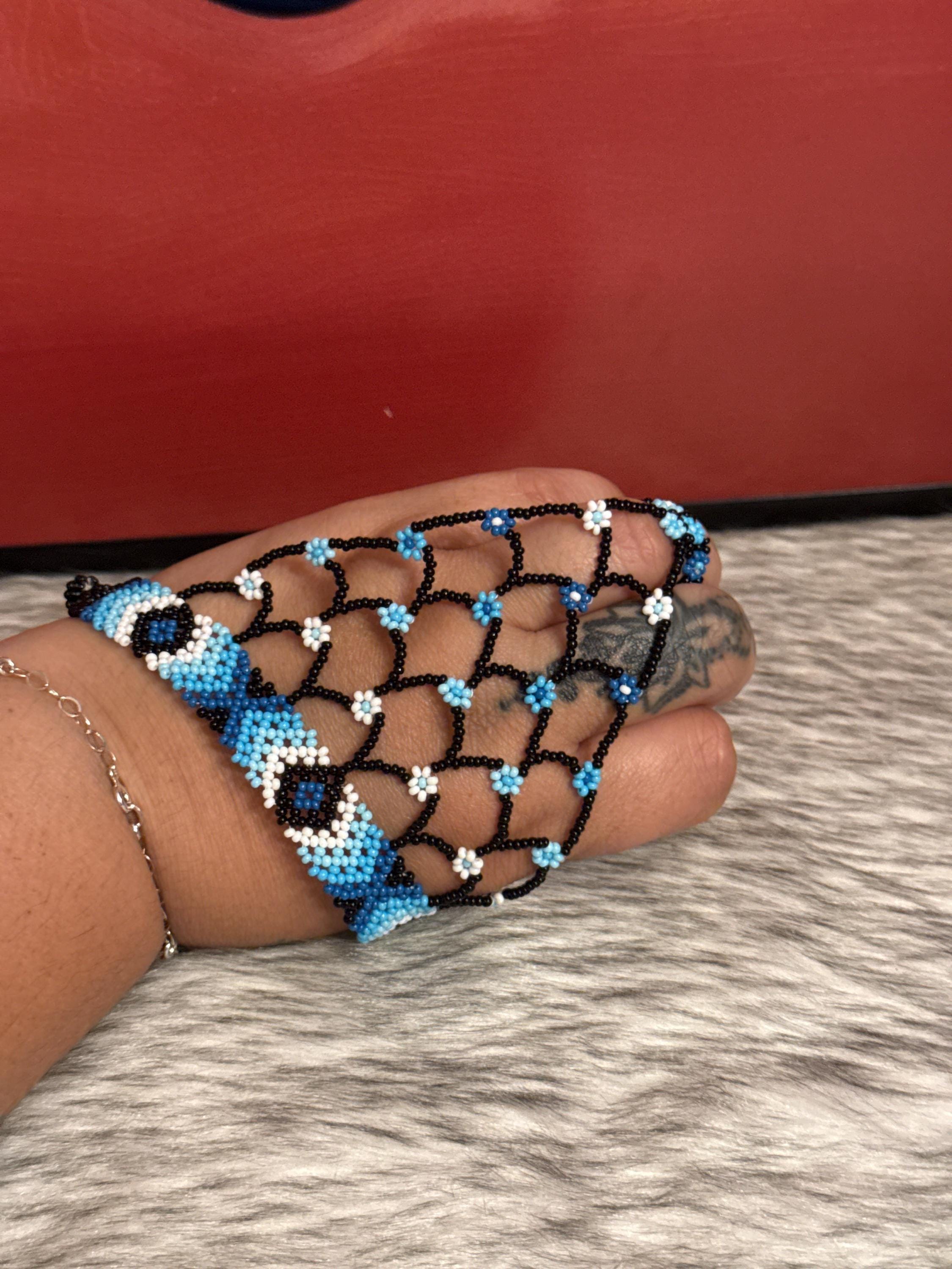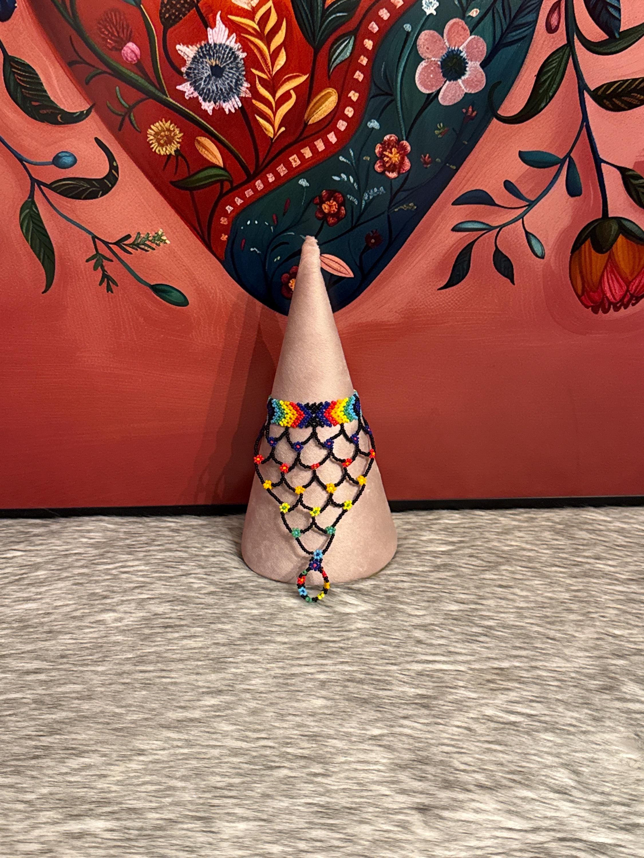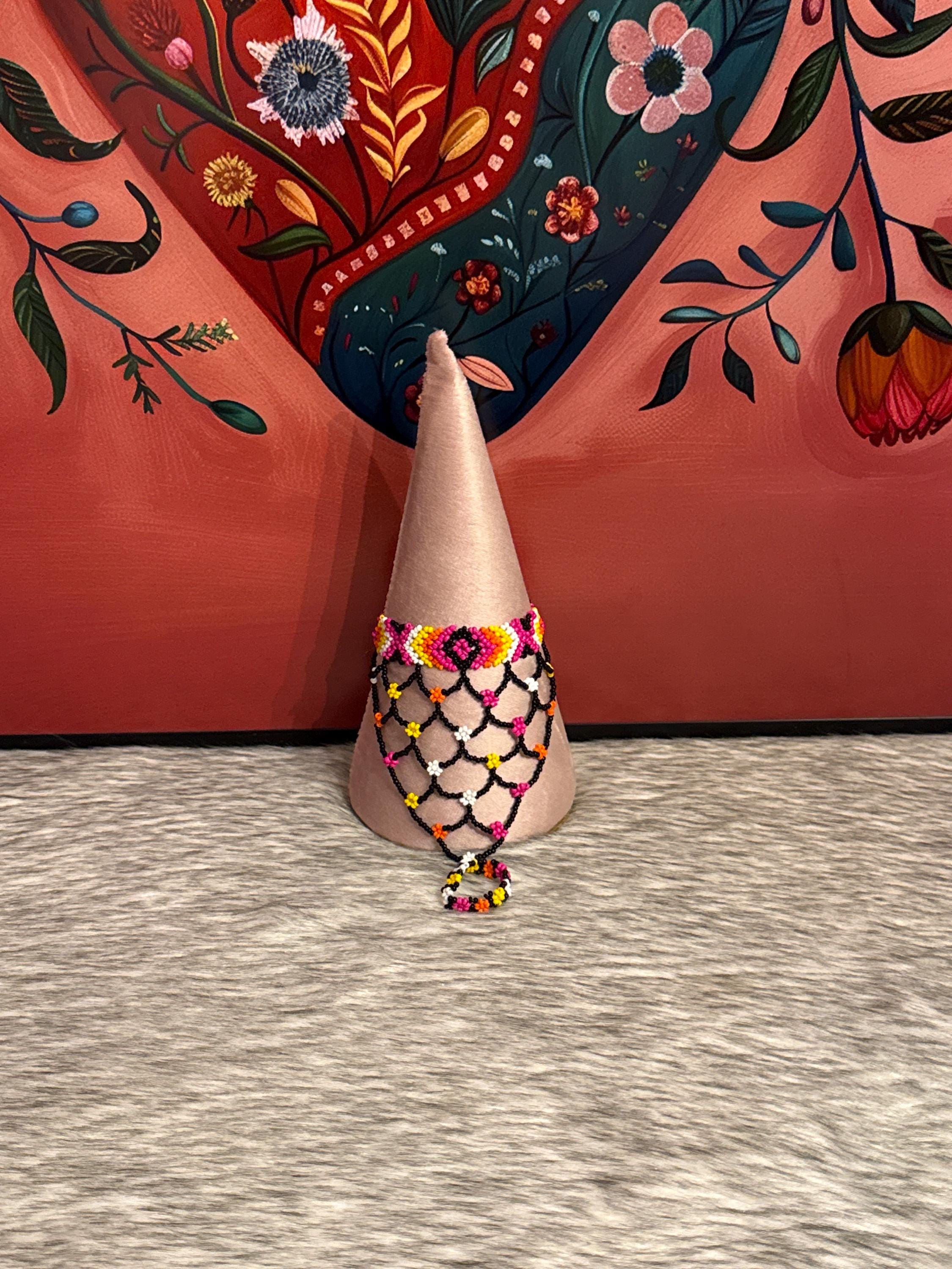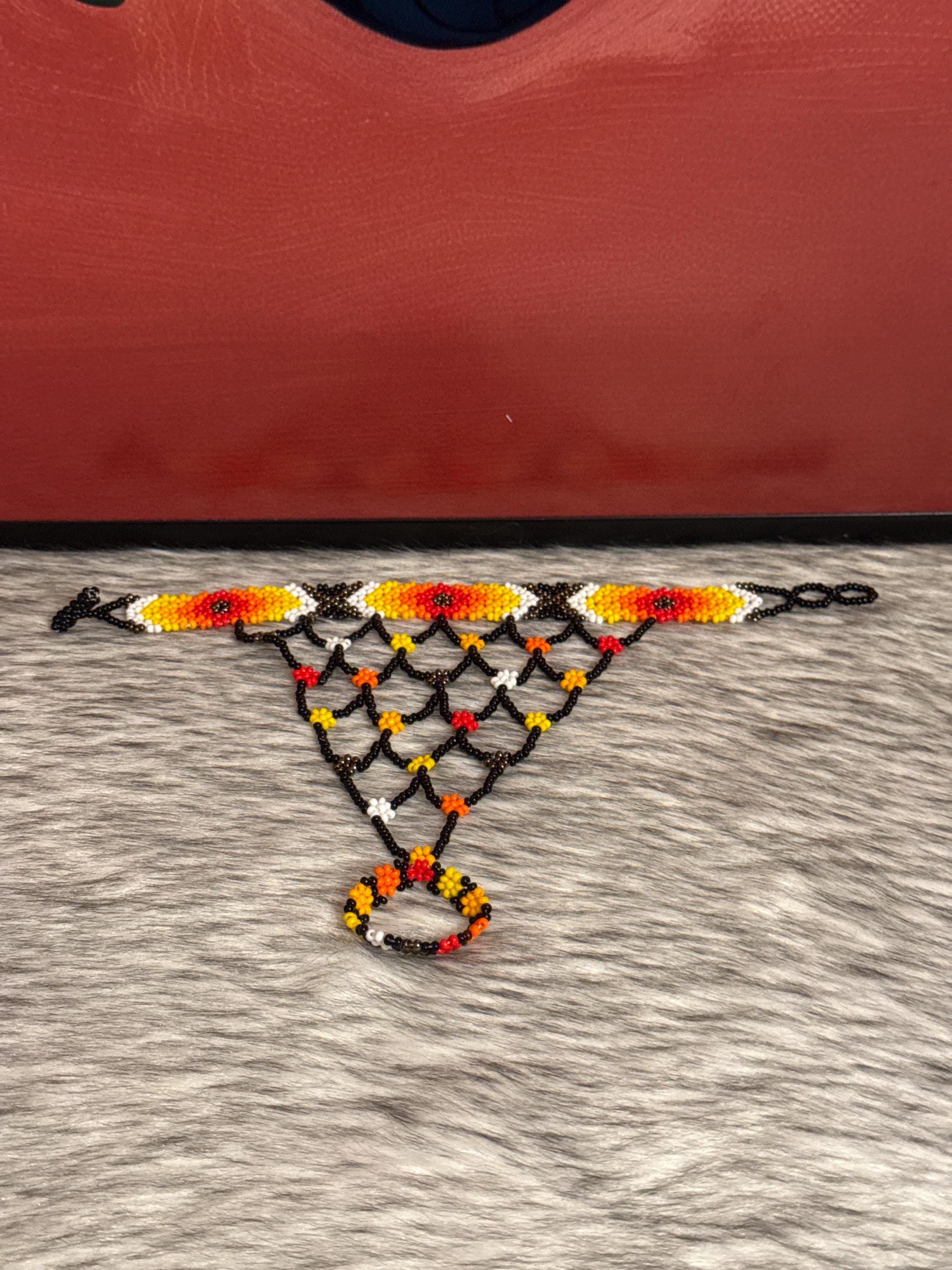 Beautiful Mayan-shaped bracelet with integrated ring, handmade with beads, the bracelets measure approximately 7 inches long and the rings vary in size.