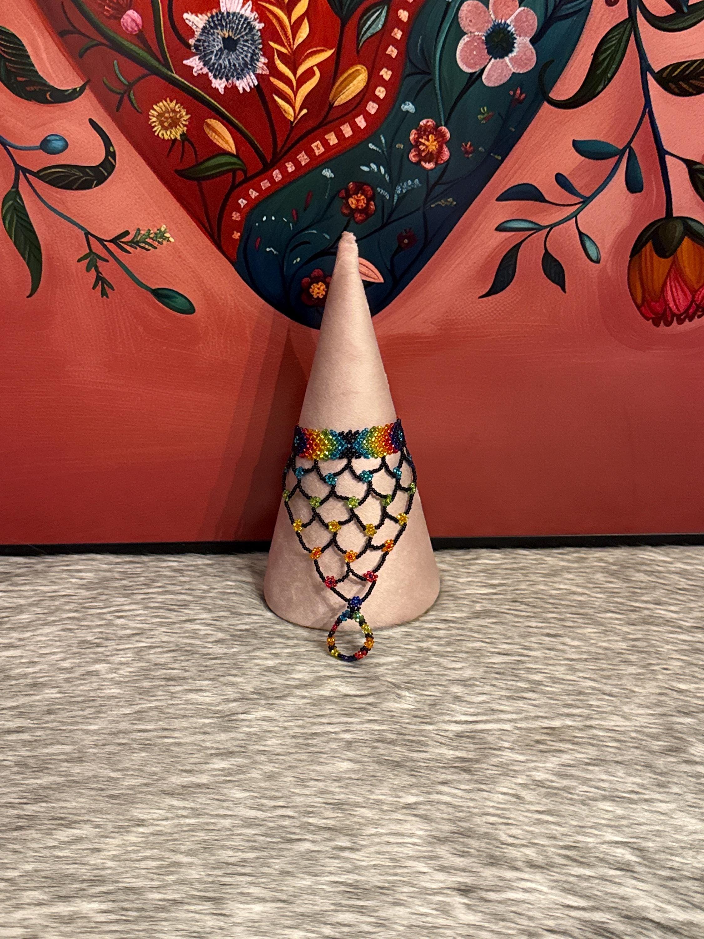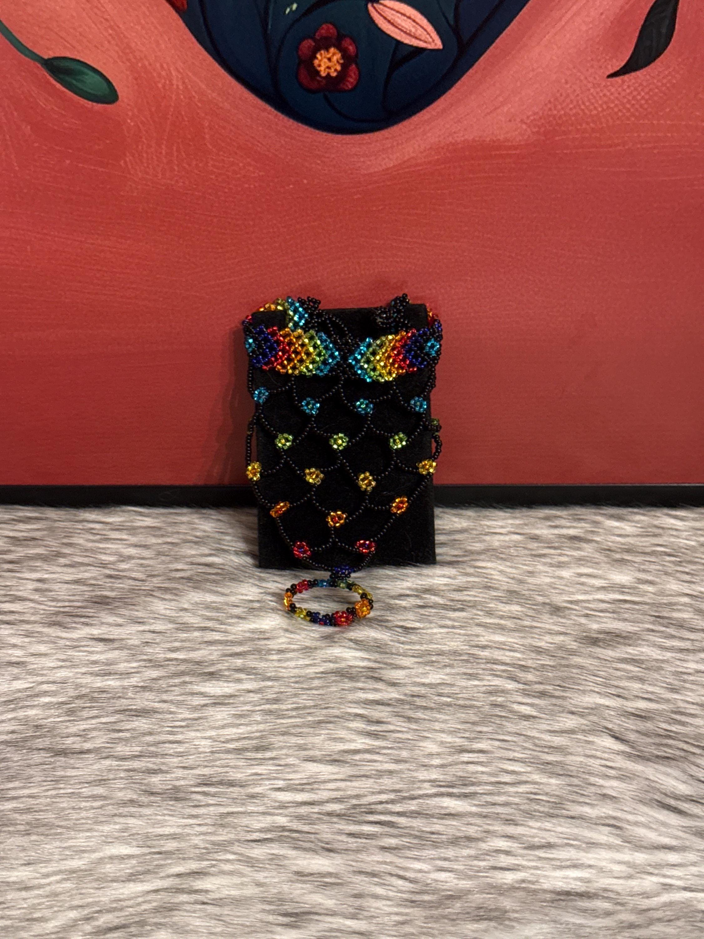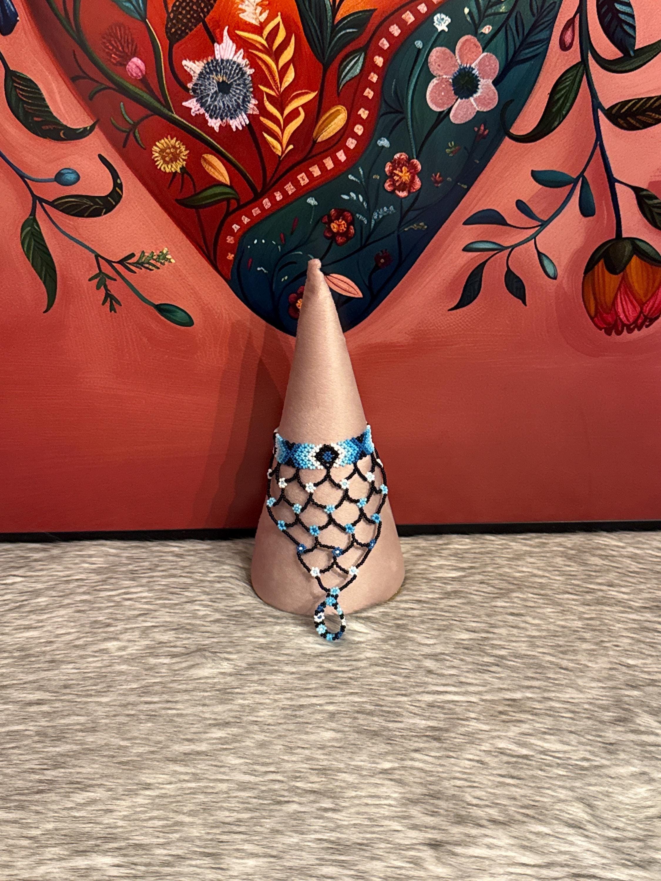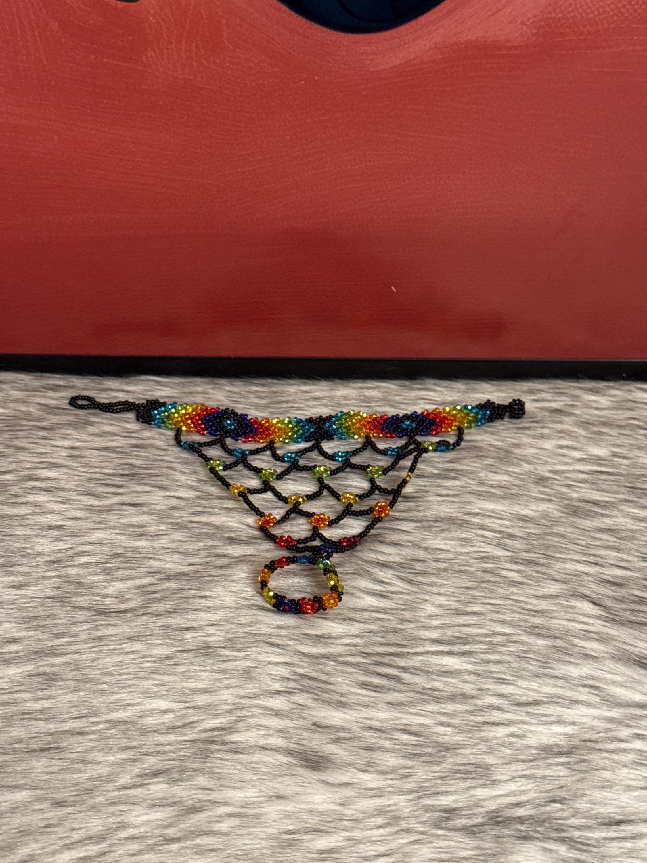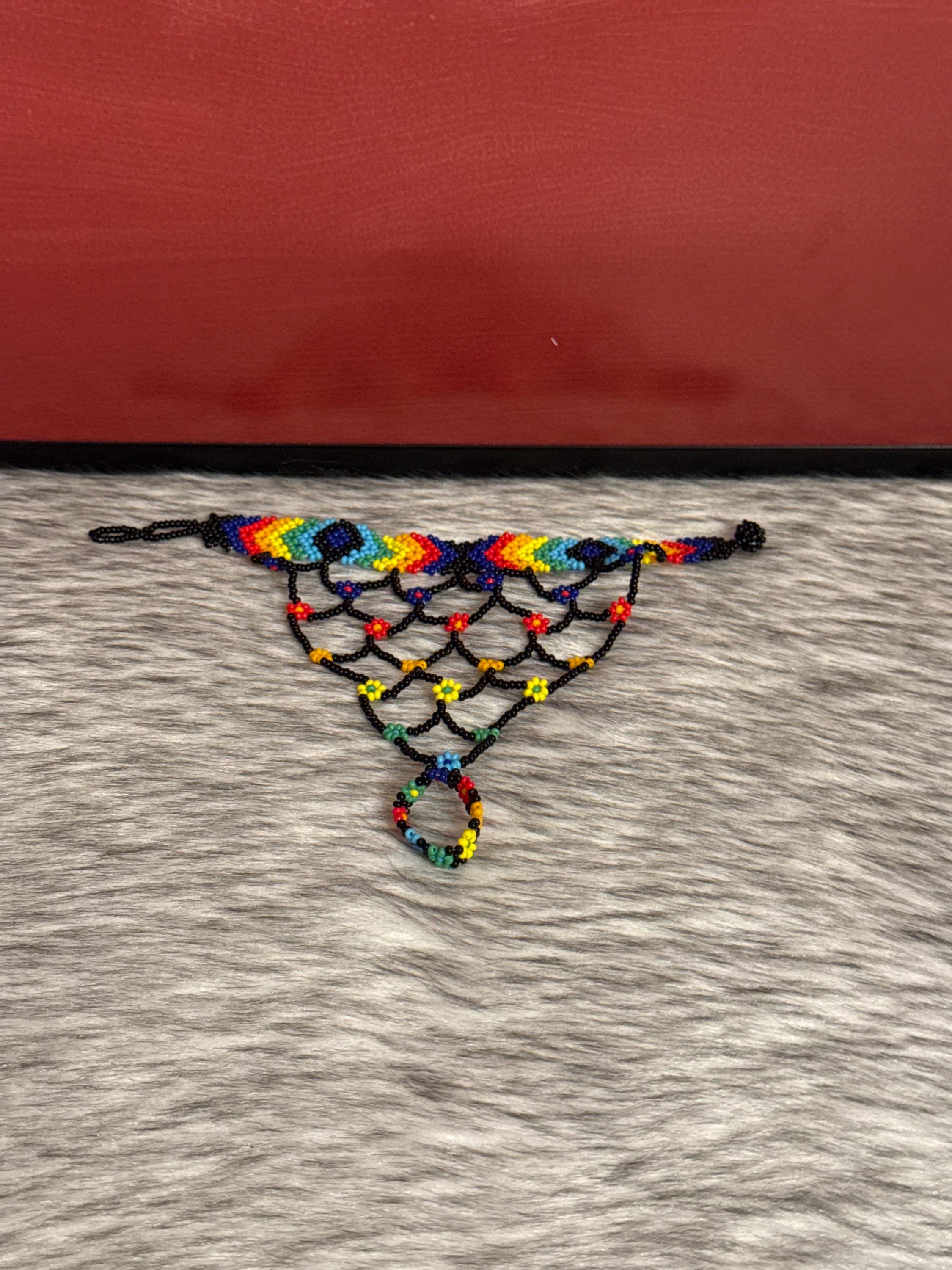 Beautiful Mayan-shaped bracelet with integrated ring, handmade with beads, the bracelets measure approximately 7 inches long and the rings vary in size.