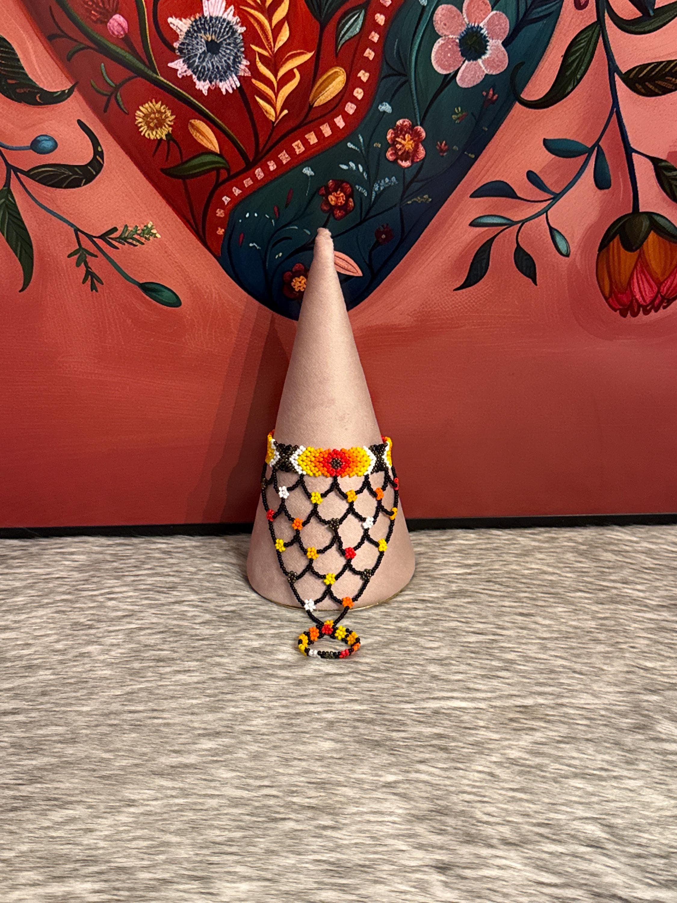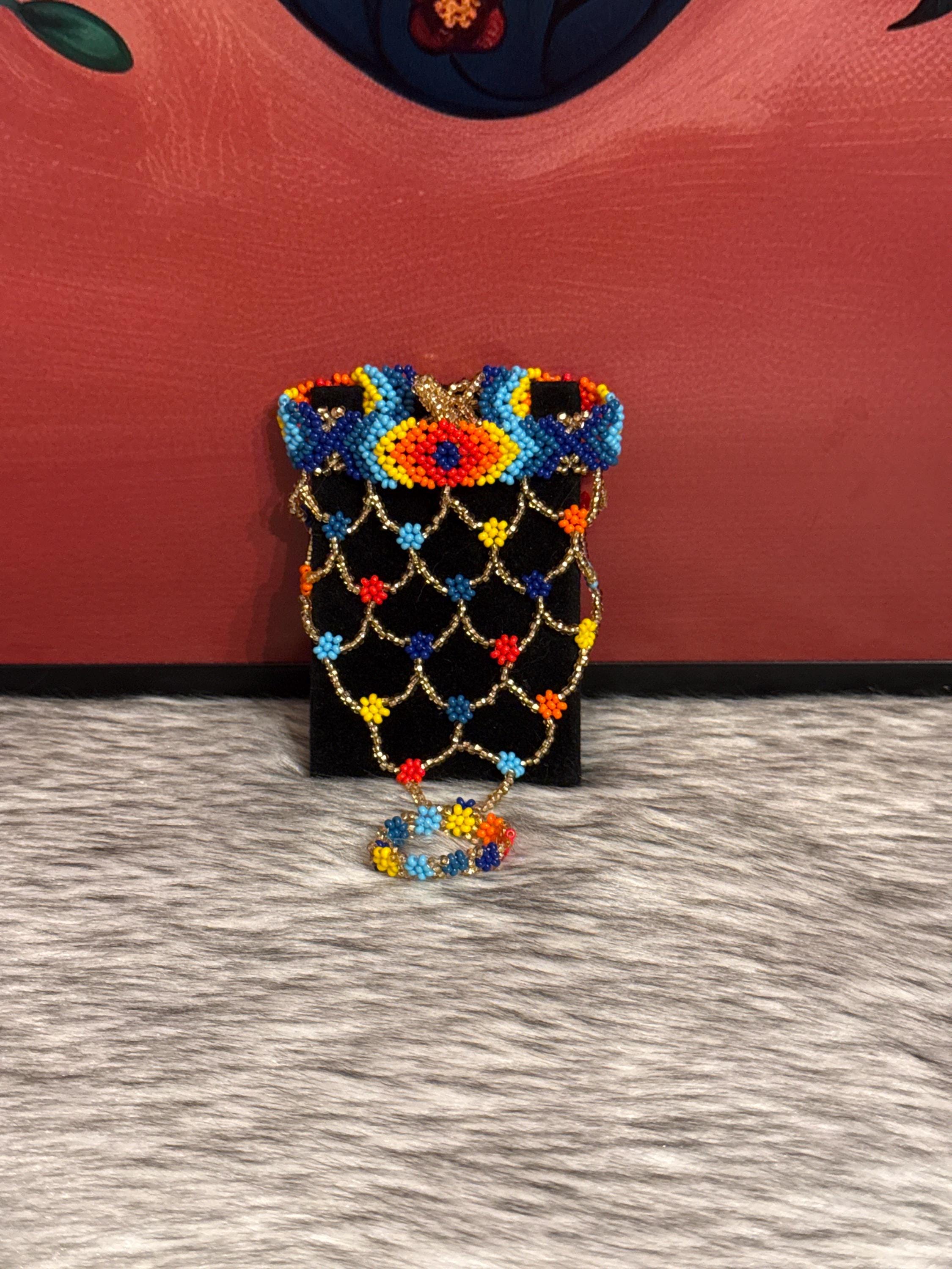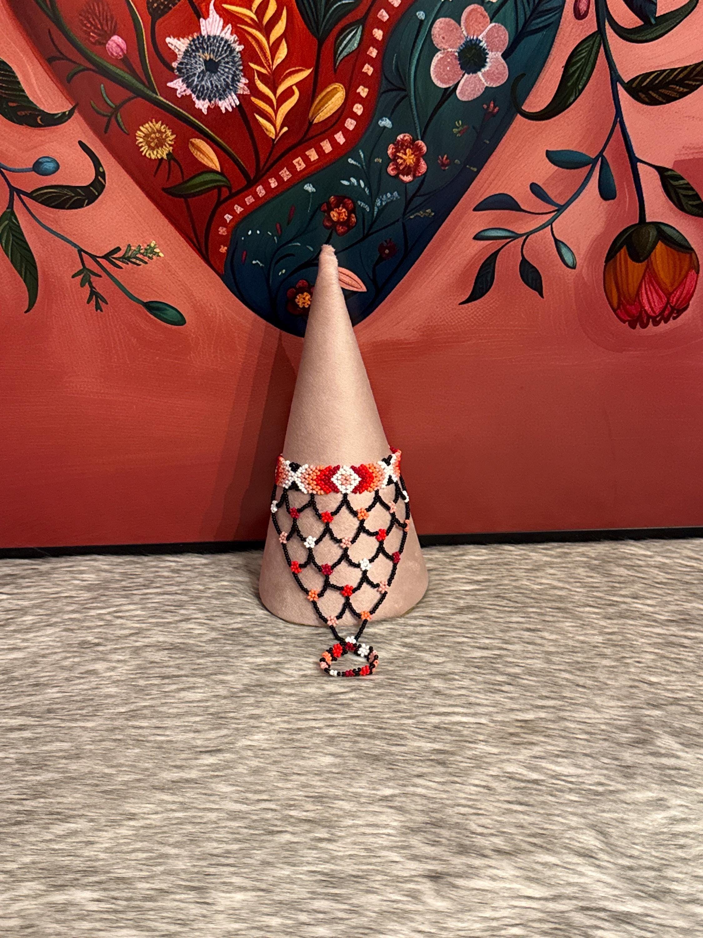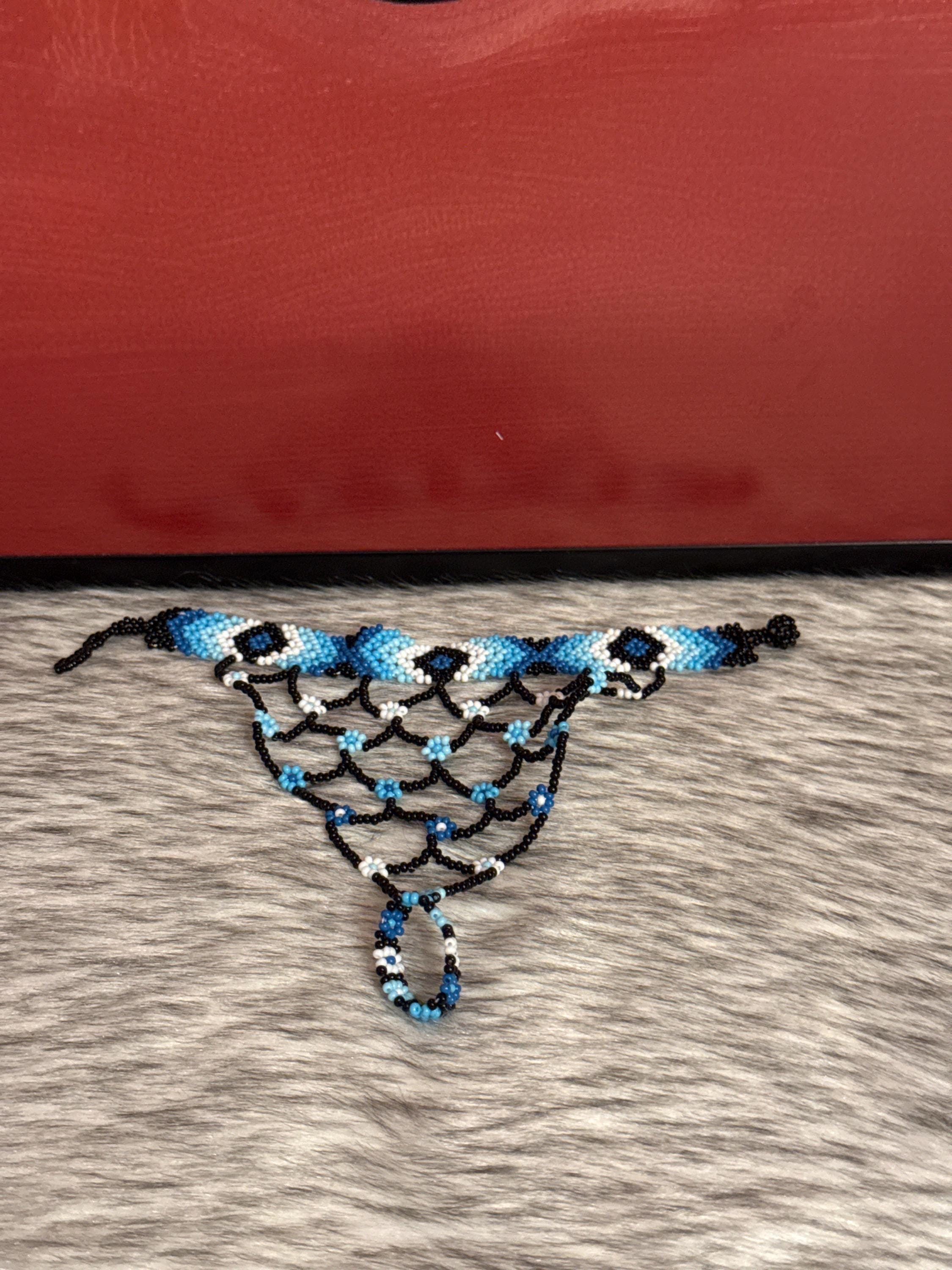 Beautiful Mayan-shaped bracelet with integrated ring, handmade with beads, the bracelets measure approximately 7 inches long and the rings vary in size.