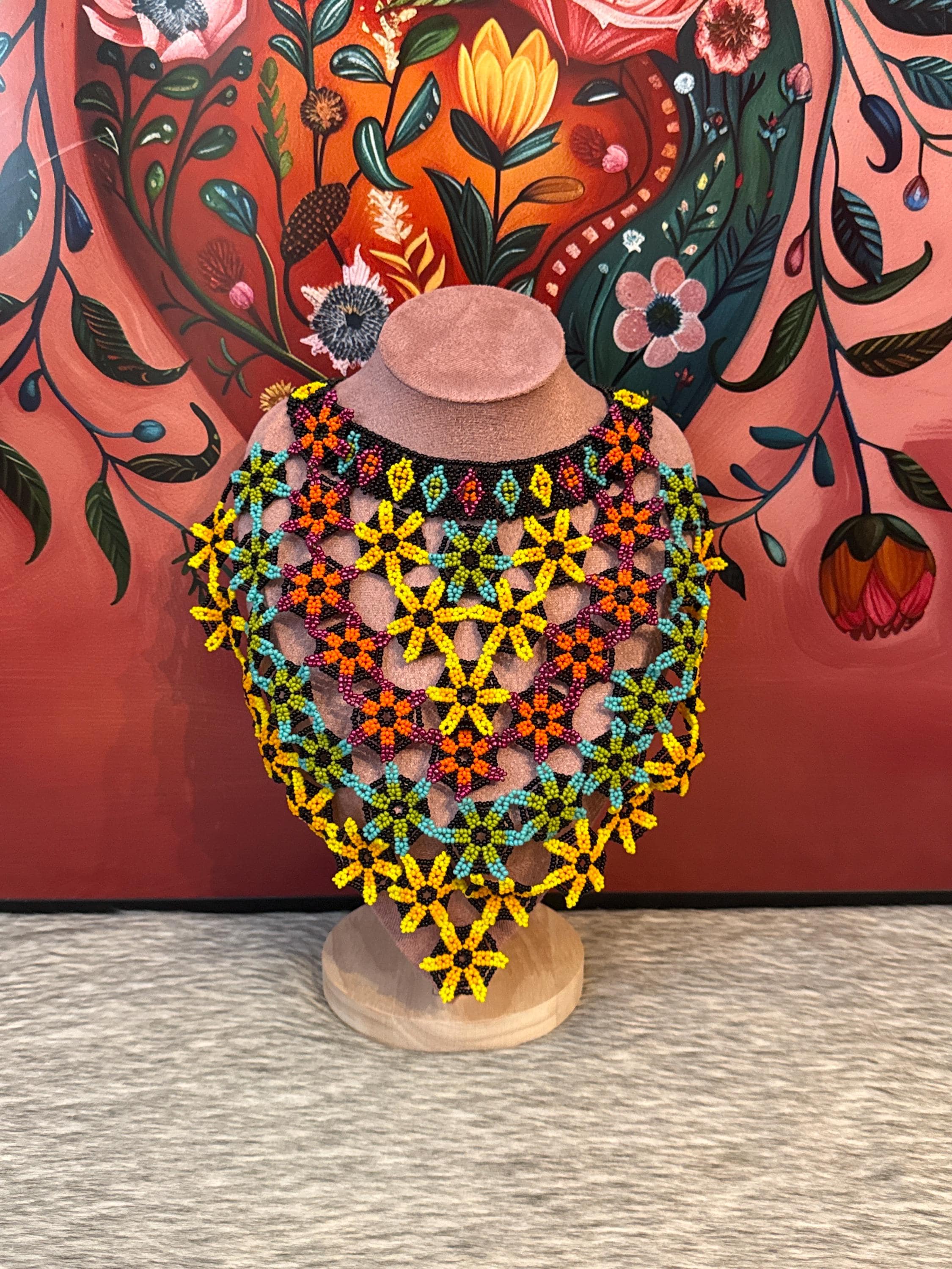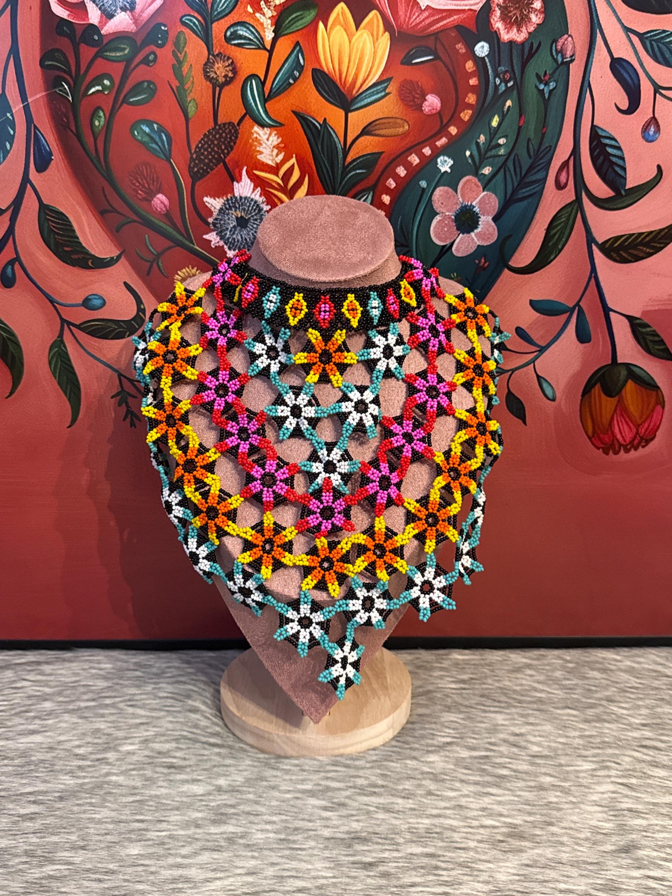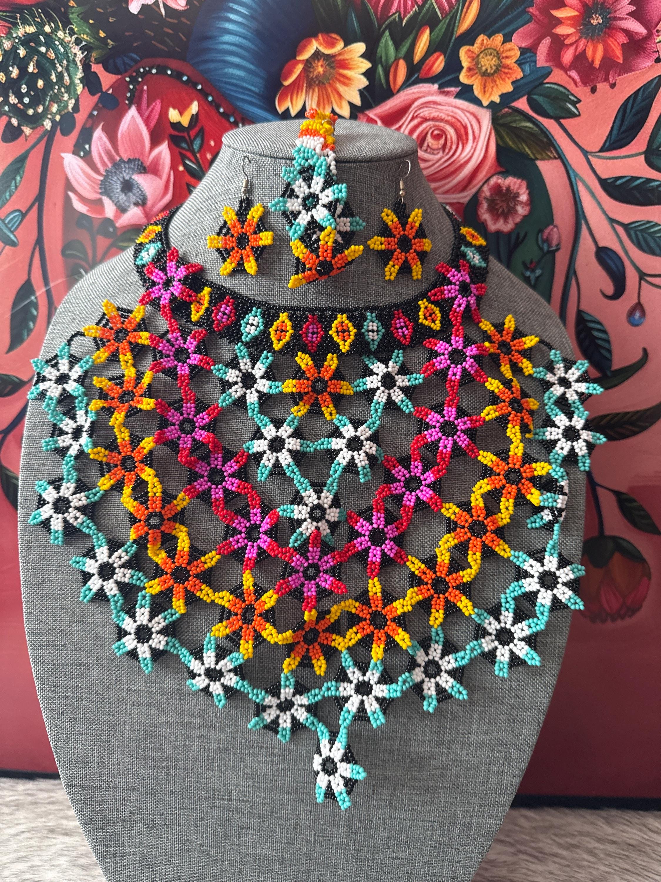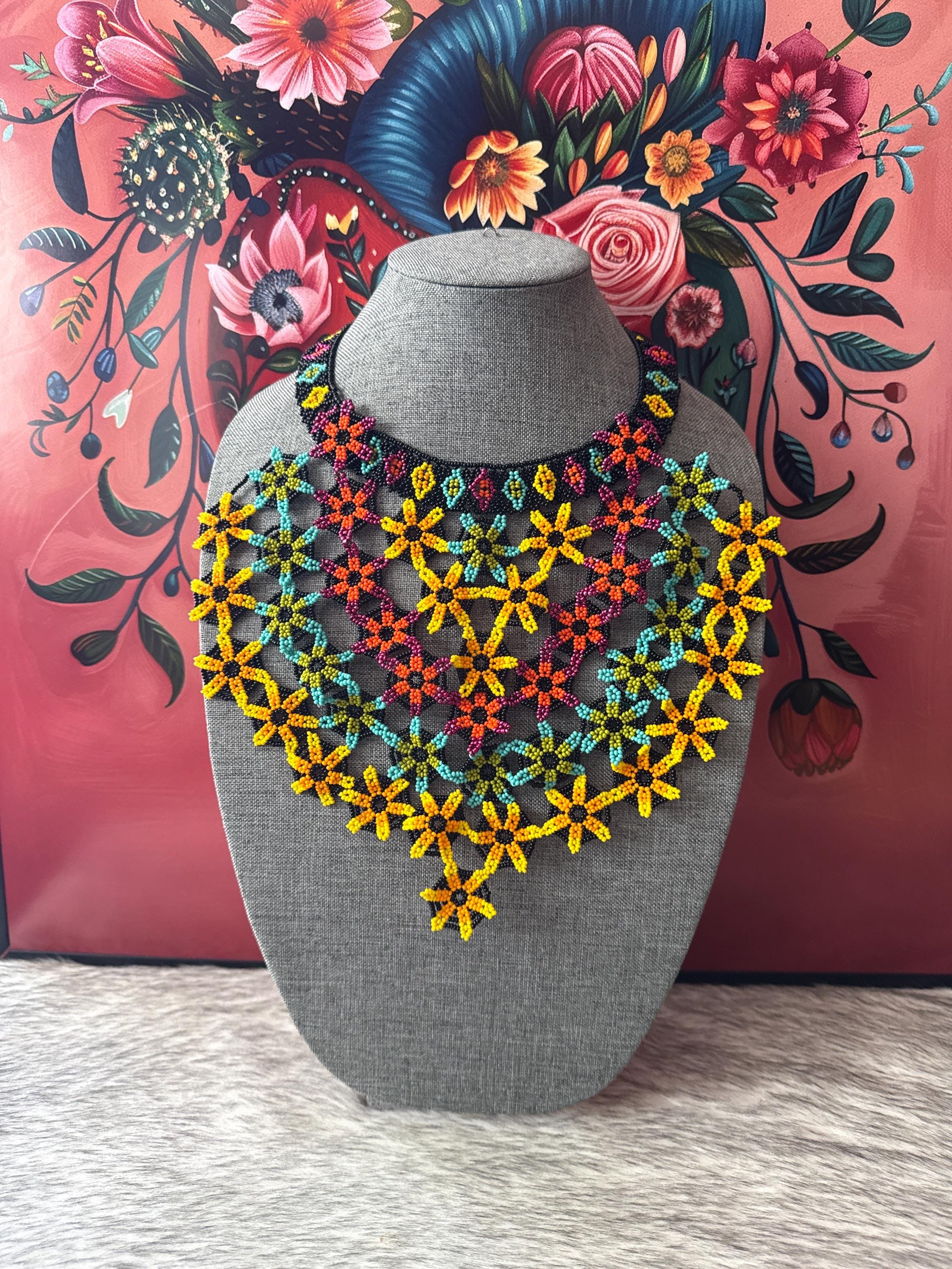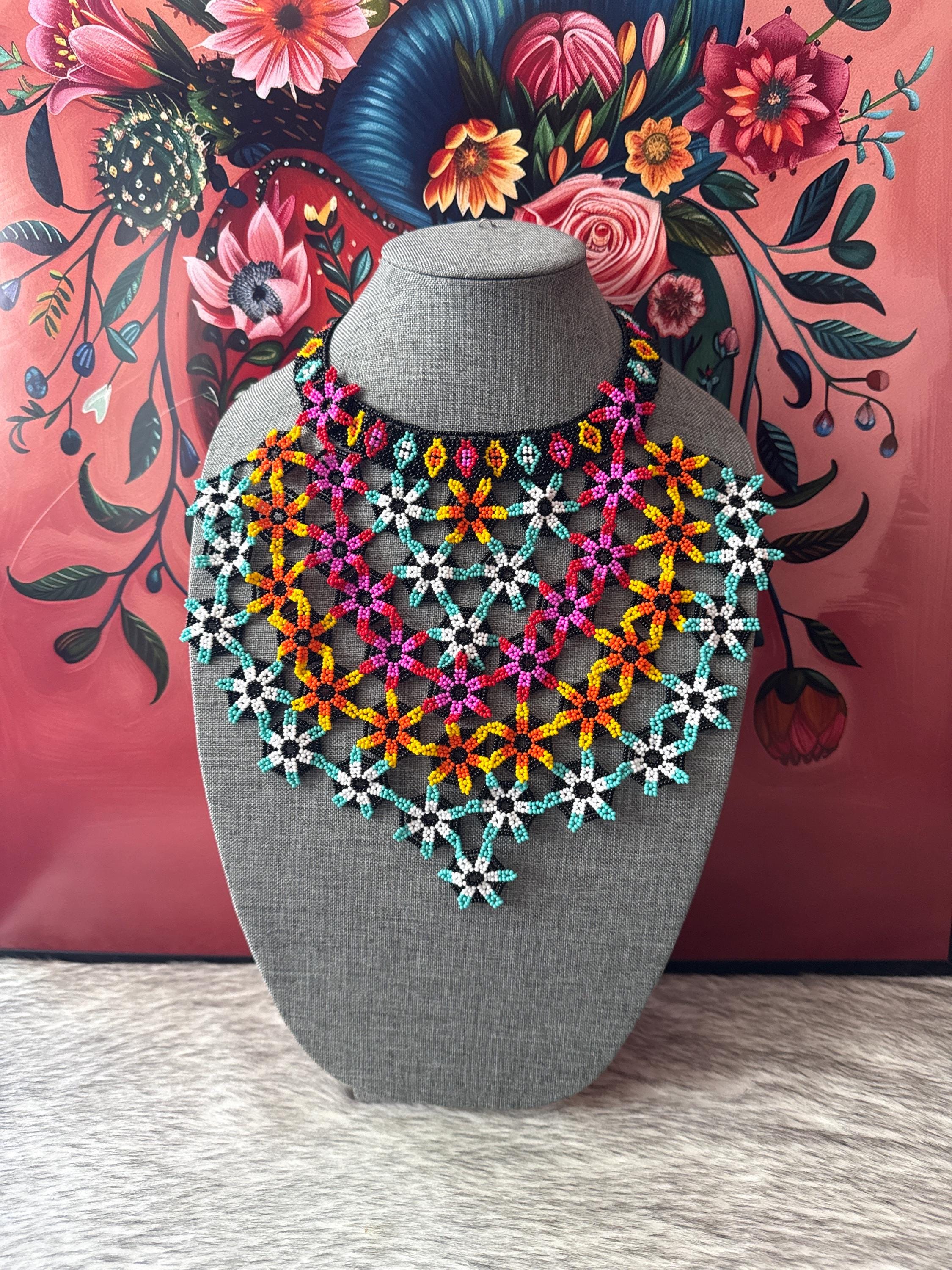 Beautiful Mexican artisan necklace made with glass beads called chaquiras, handmade.