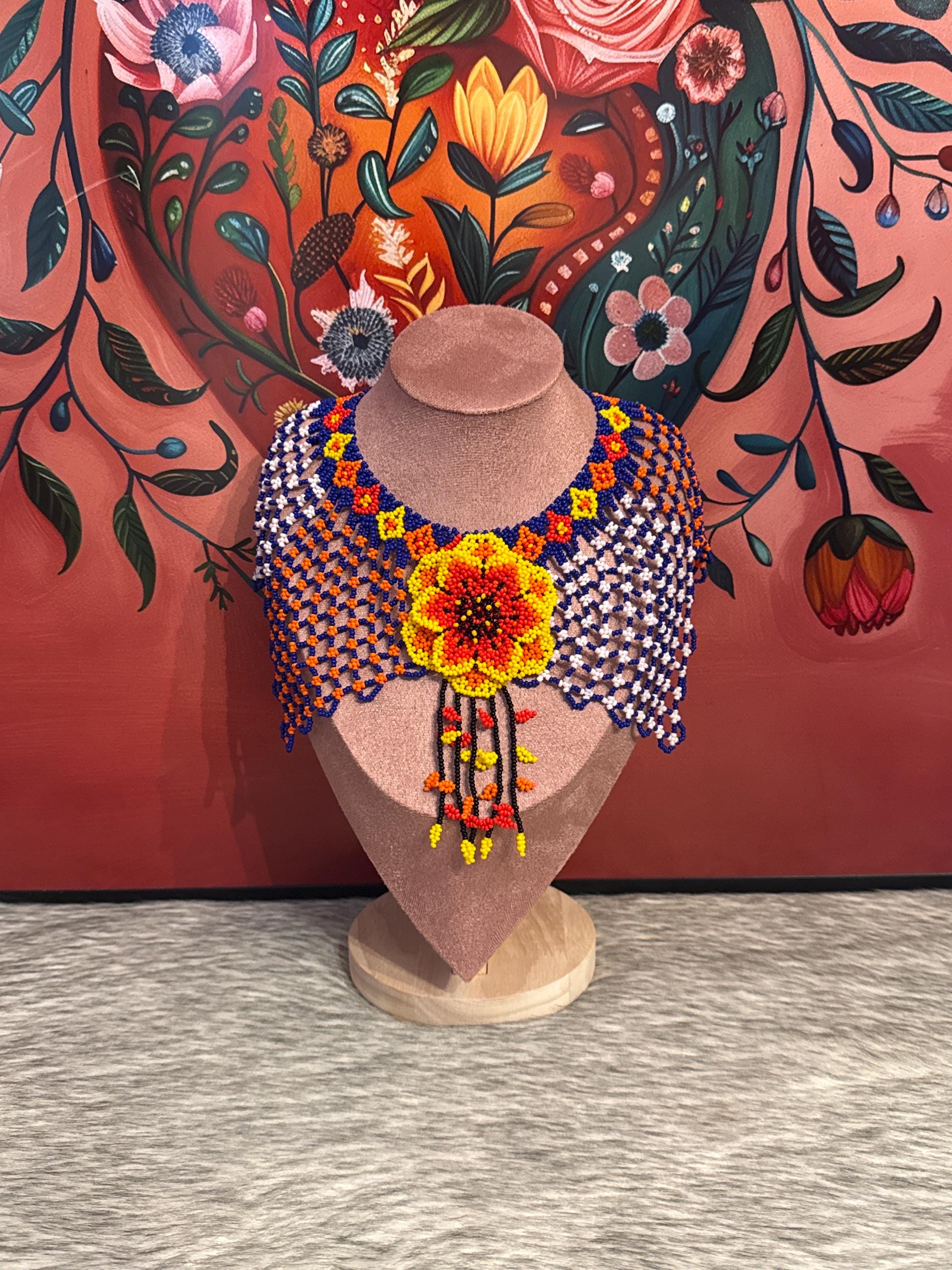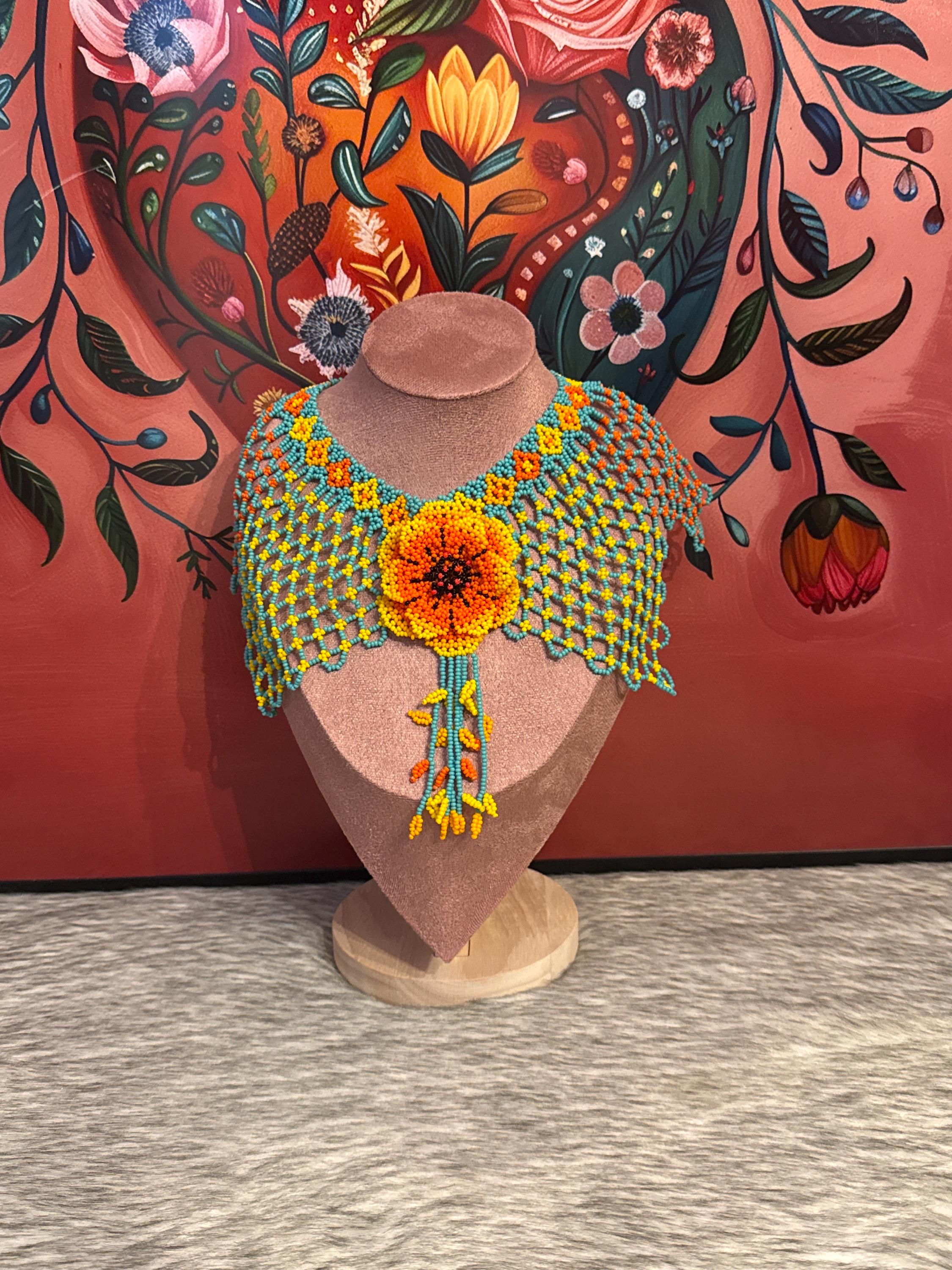 Beautiful set of necklace, earrings and bracelet handmade with glass beads called chaquiras, made by Mexican artisans.